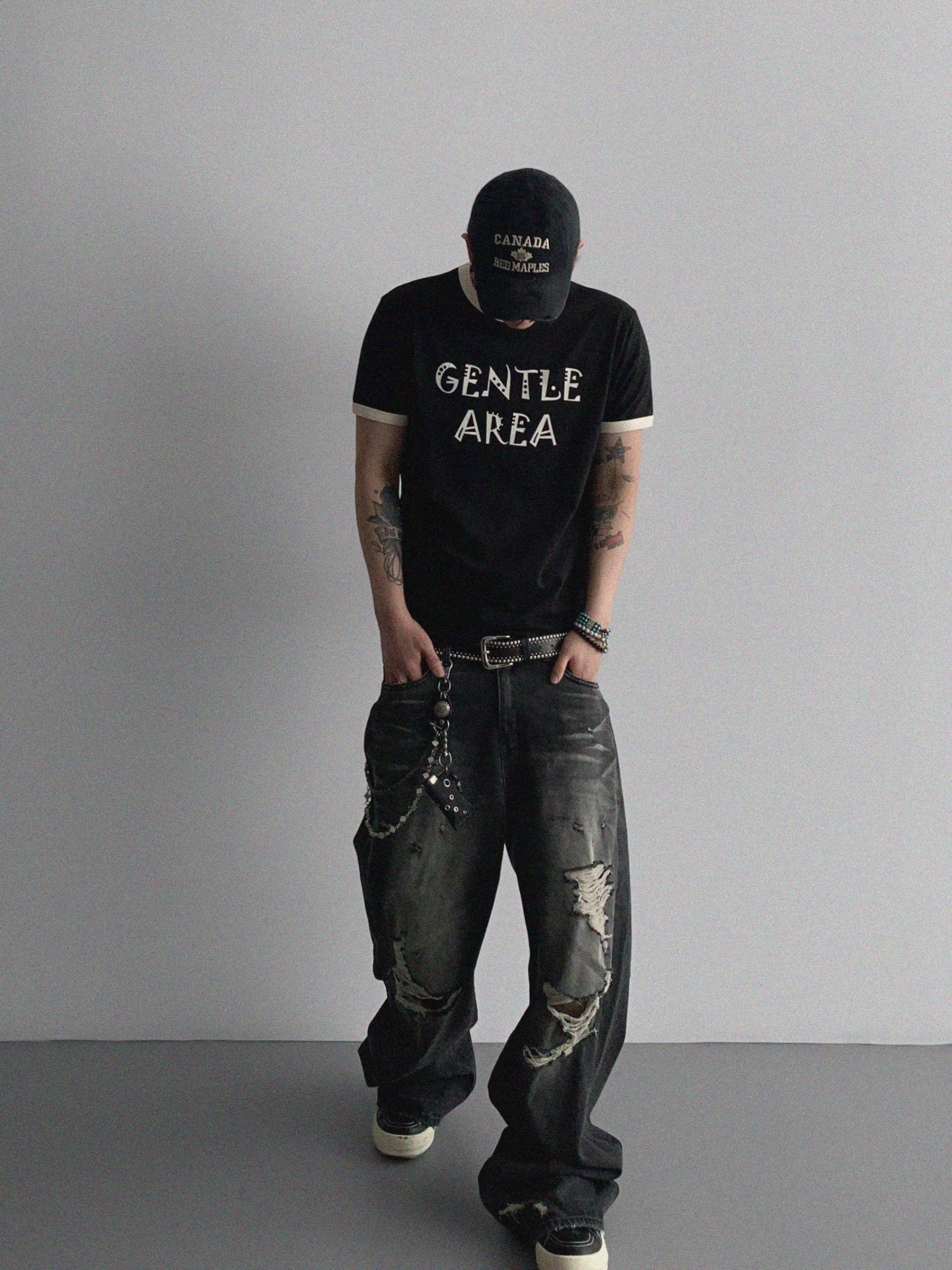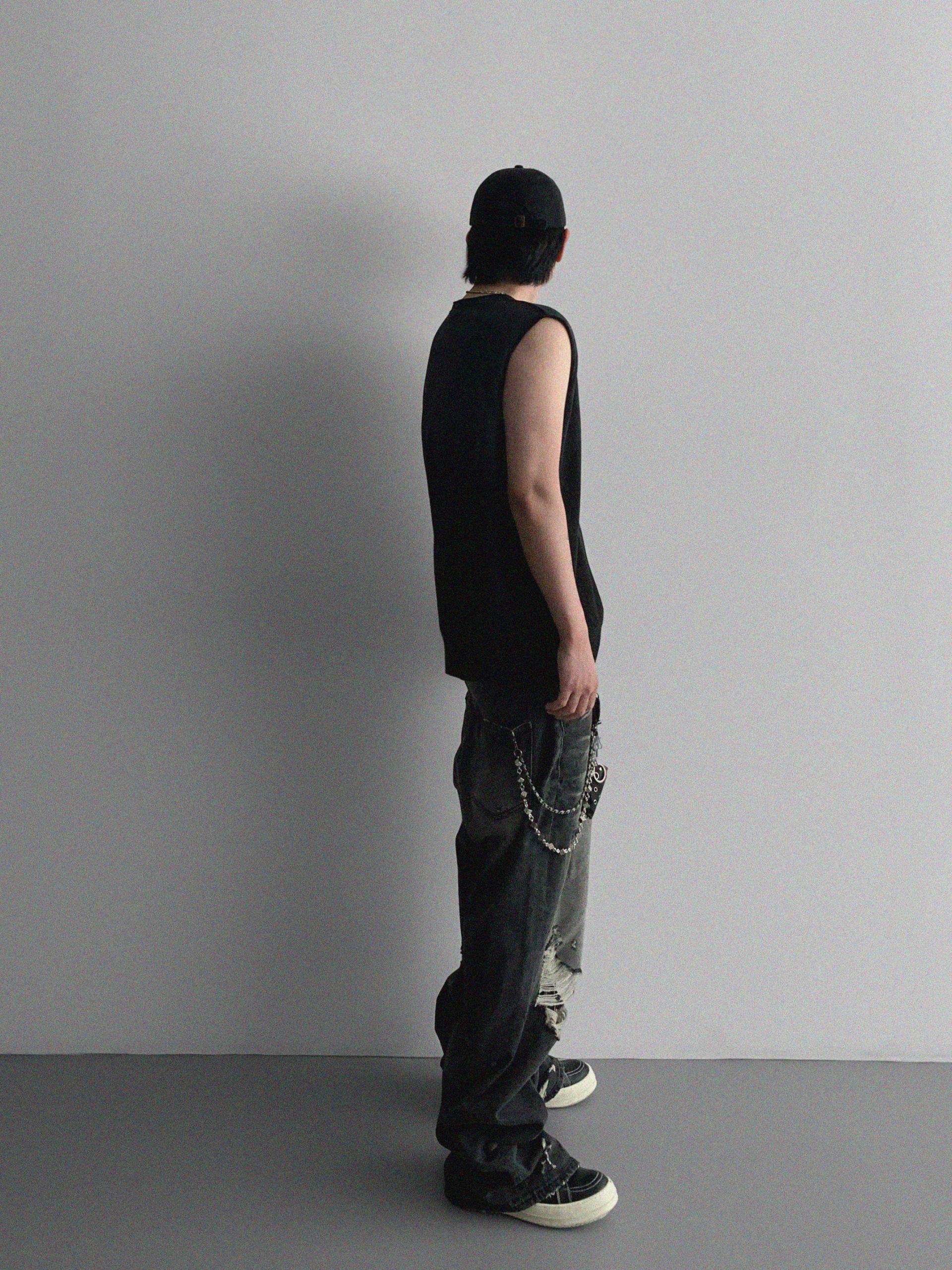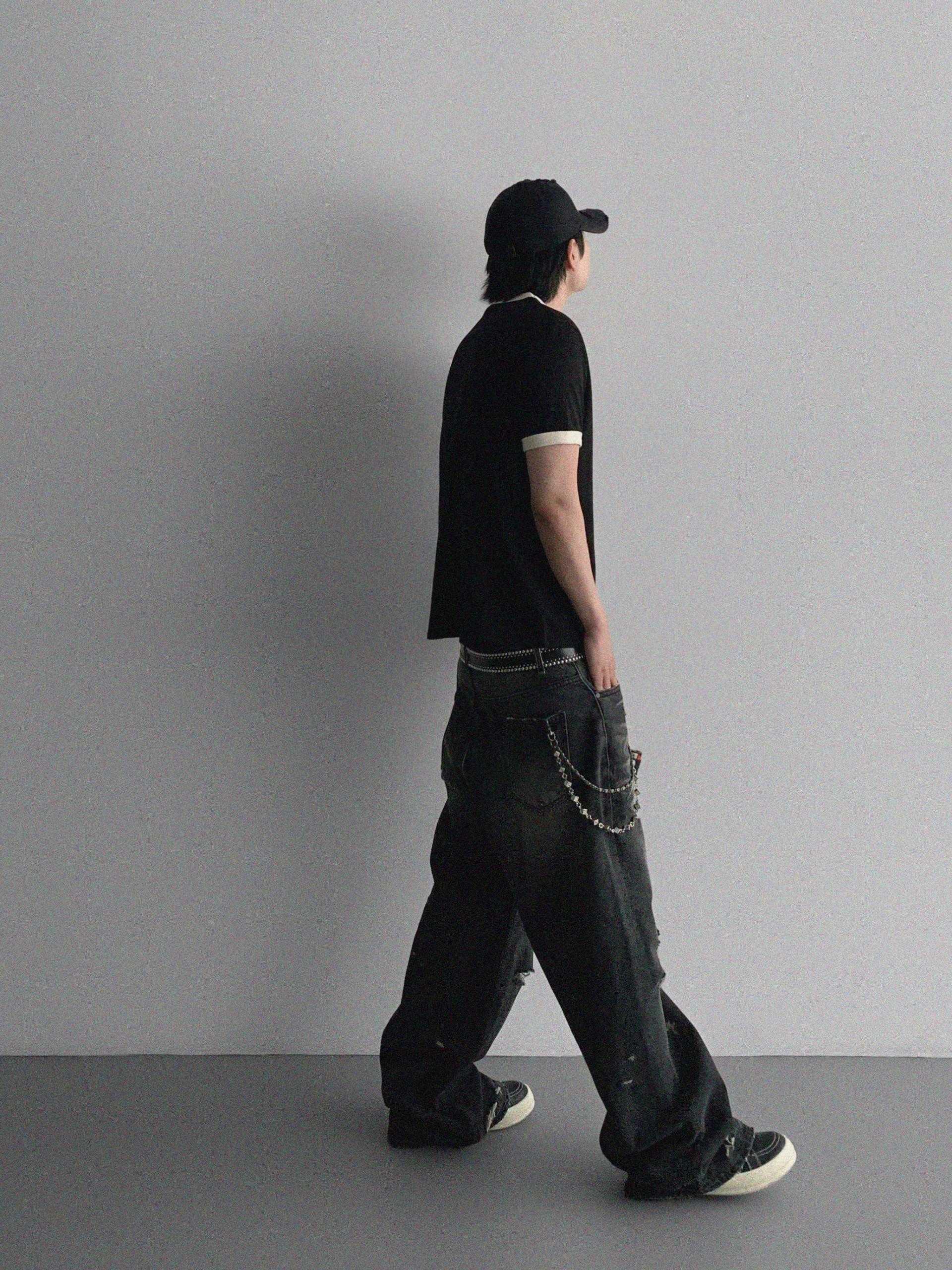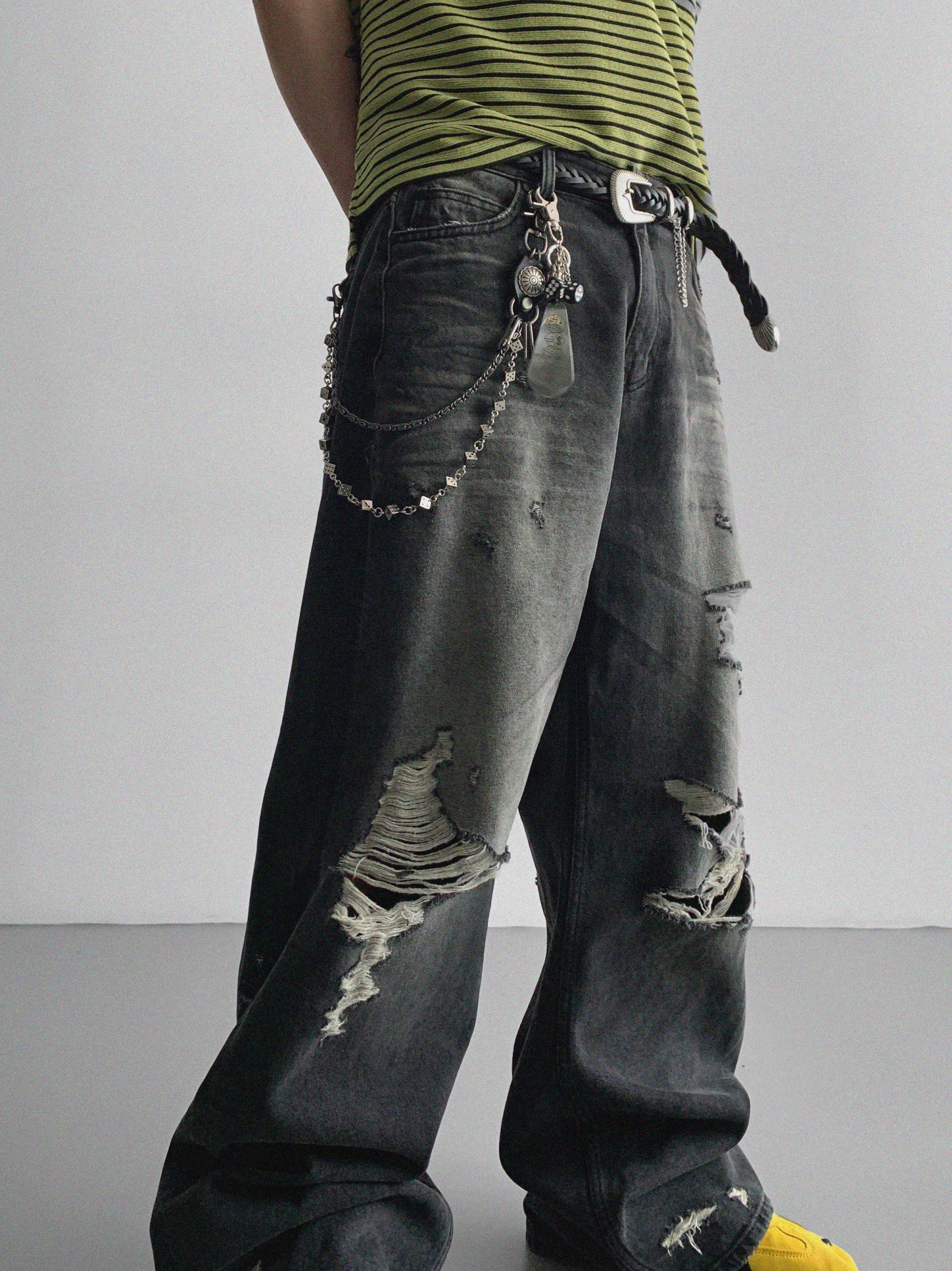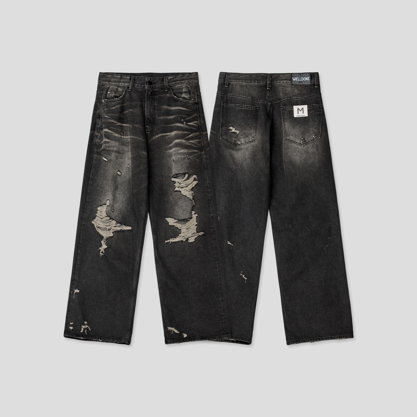 슈퍼 디스트로이드 블랙 데님 팬츠