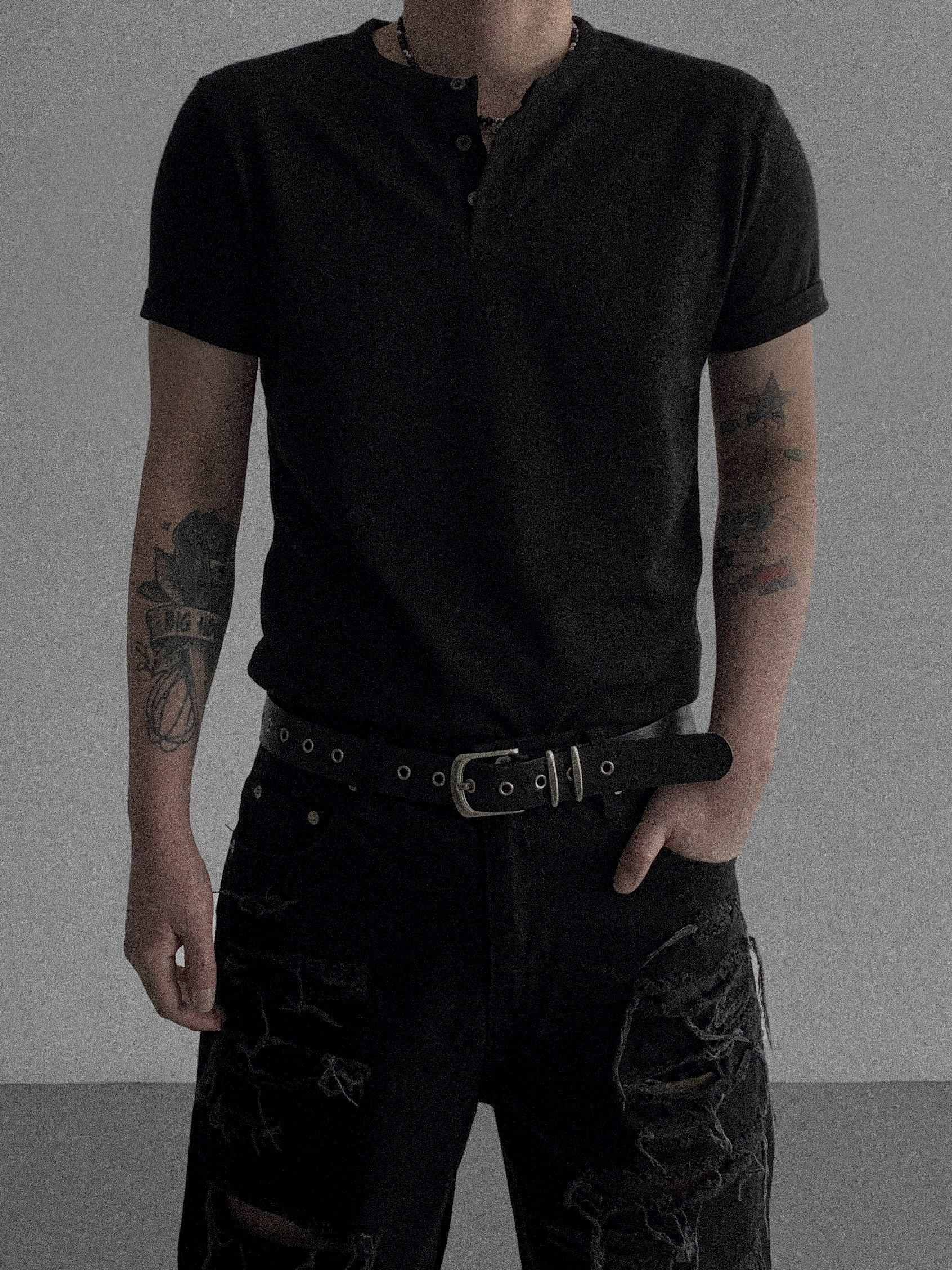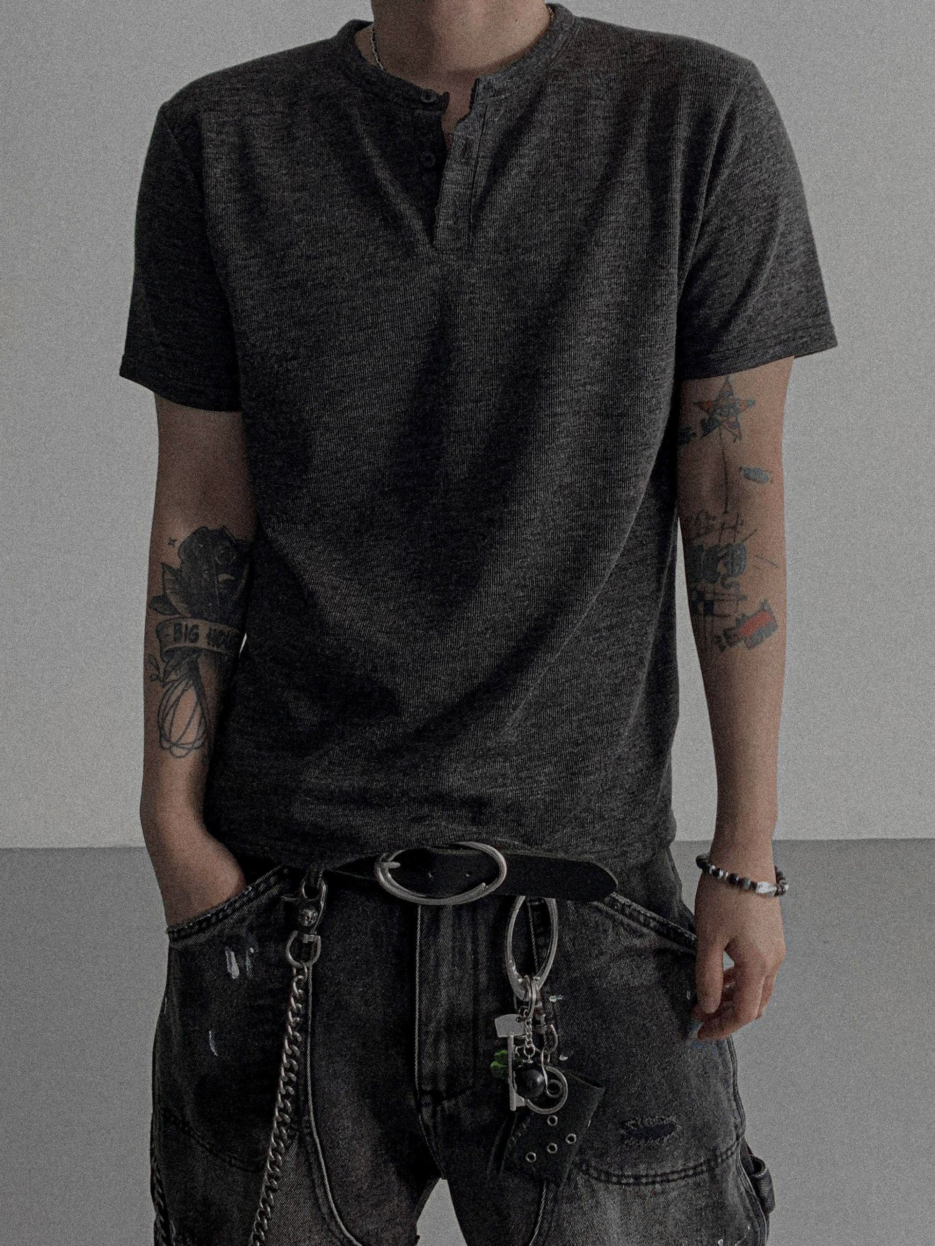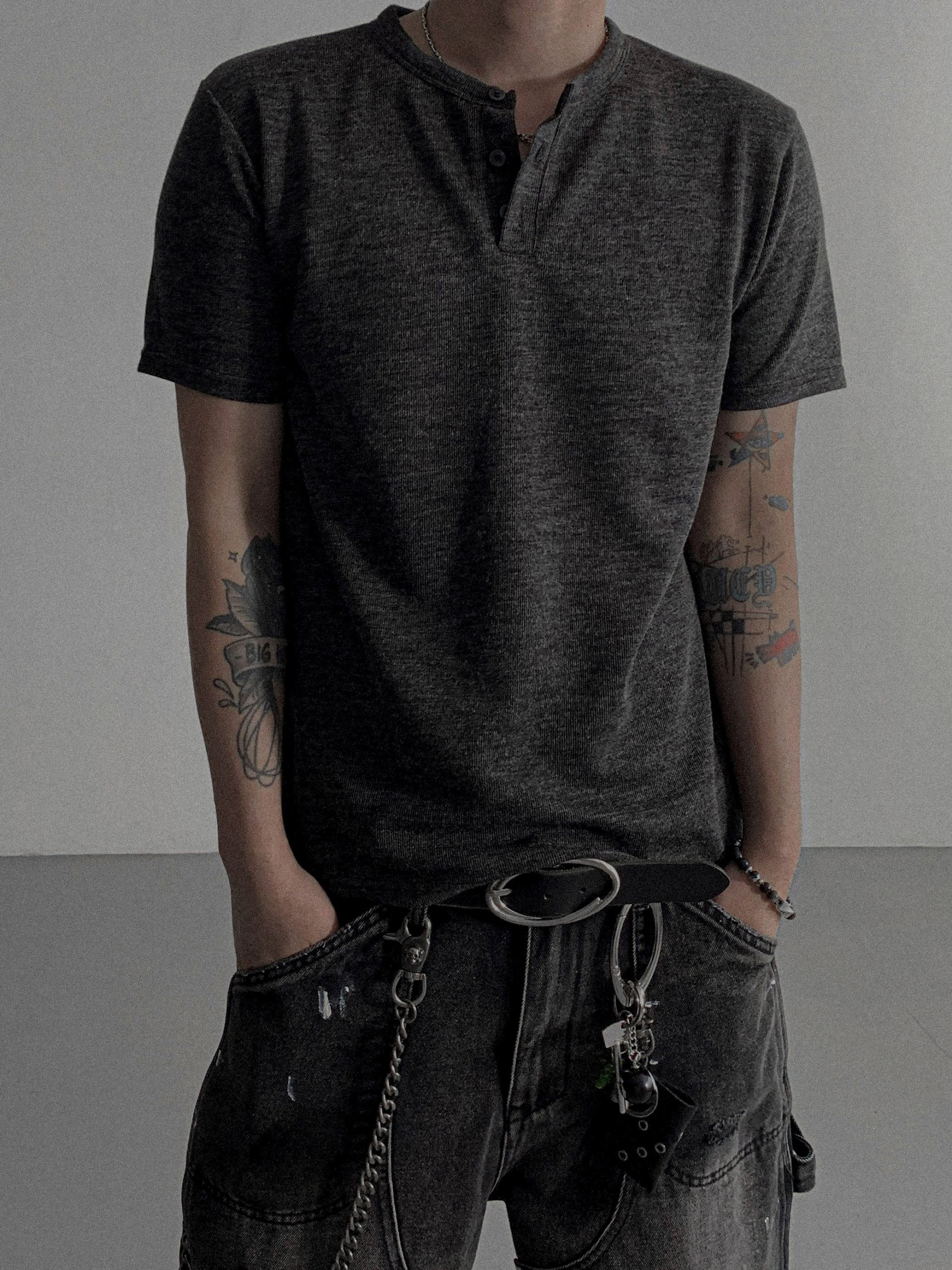 [1+1] 골지 헨리넥 머슬핏 반팔티