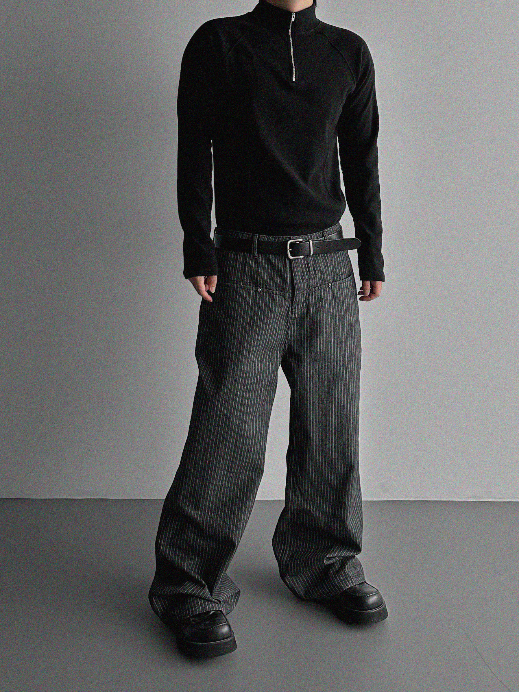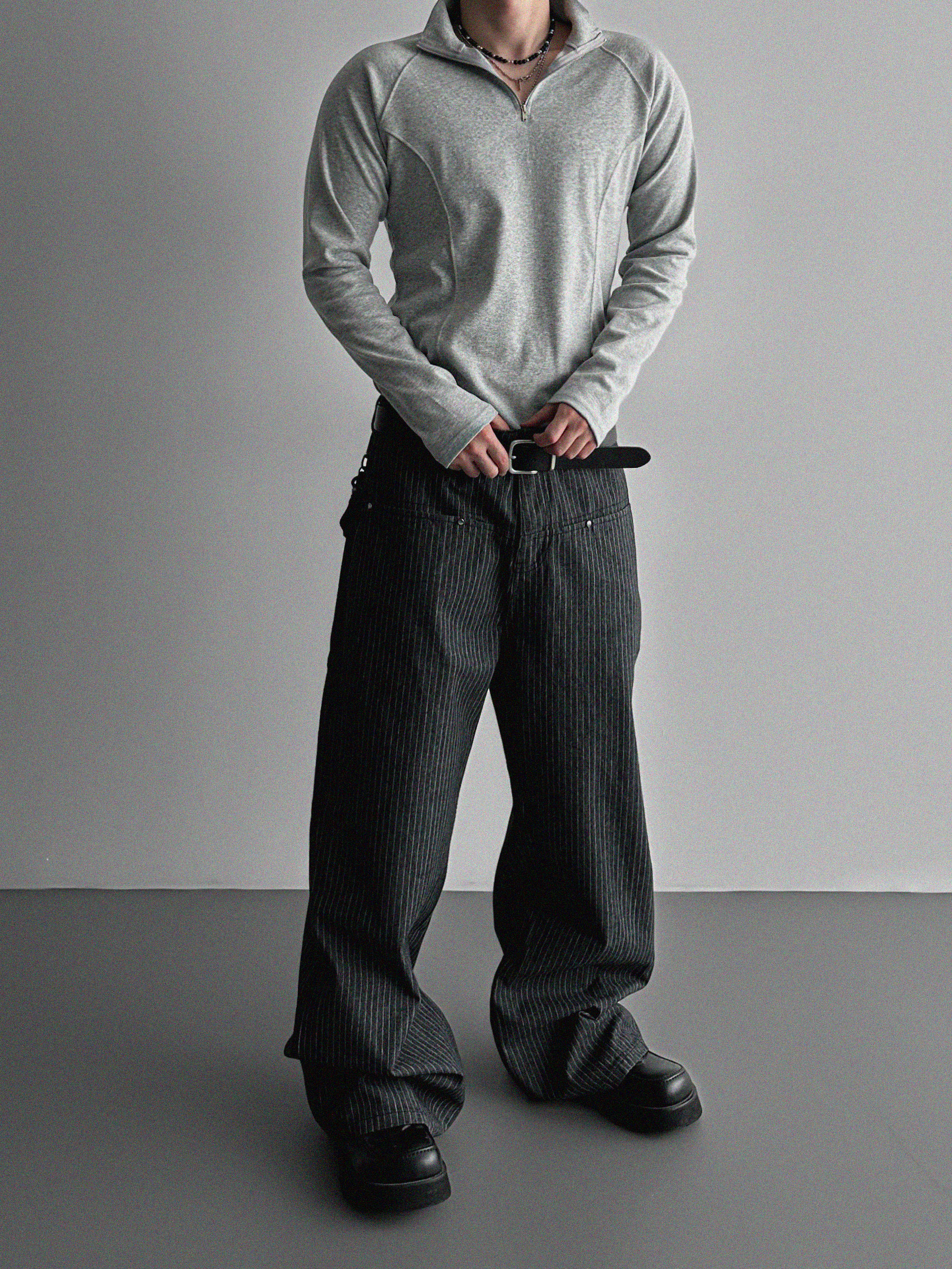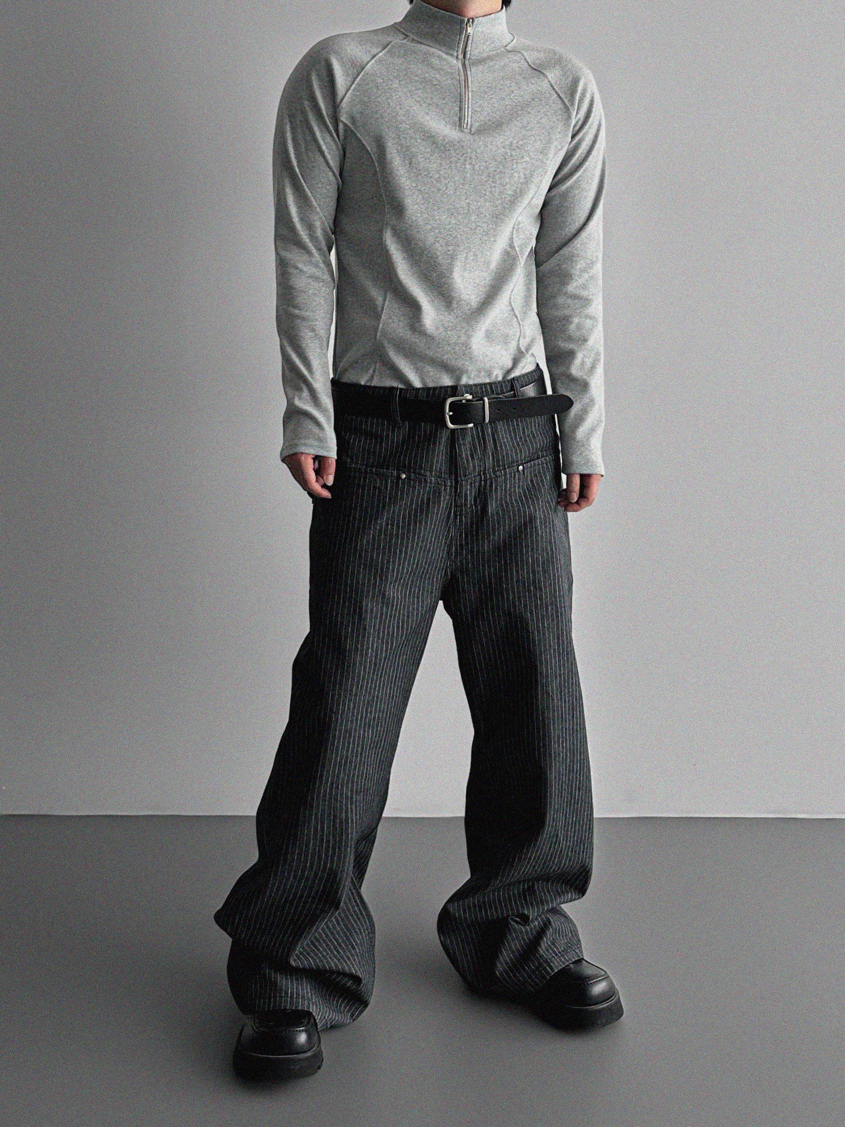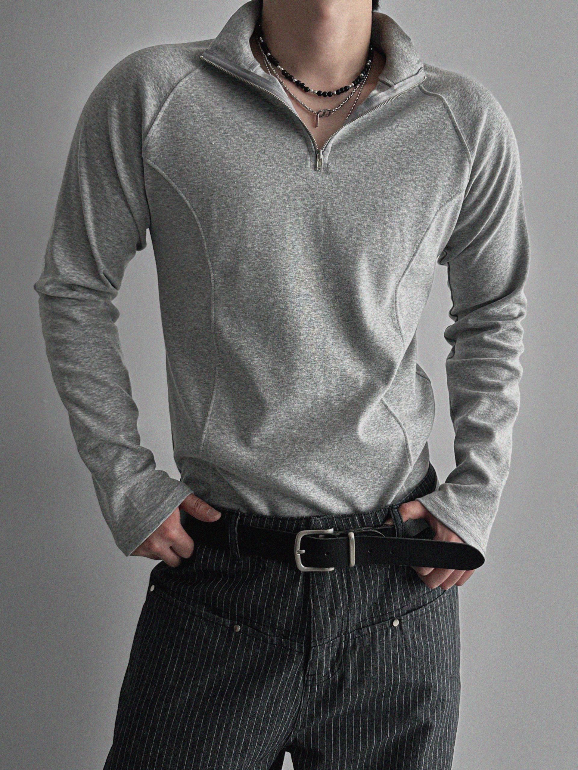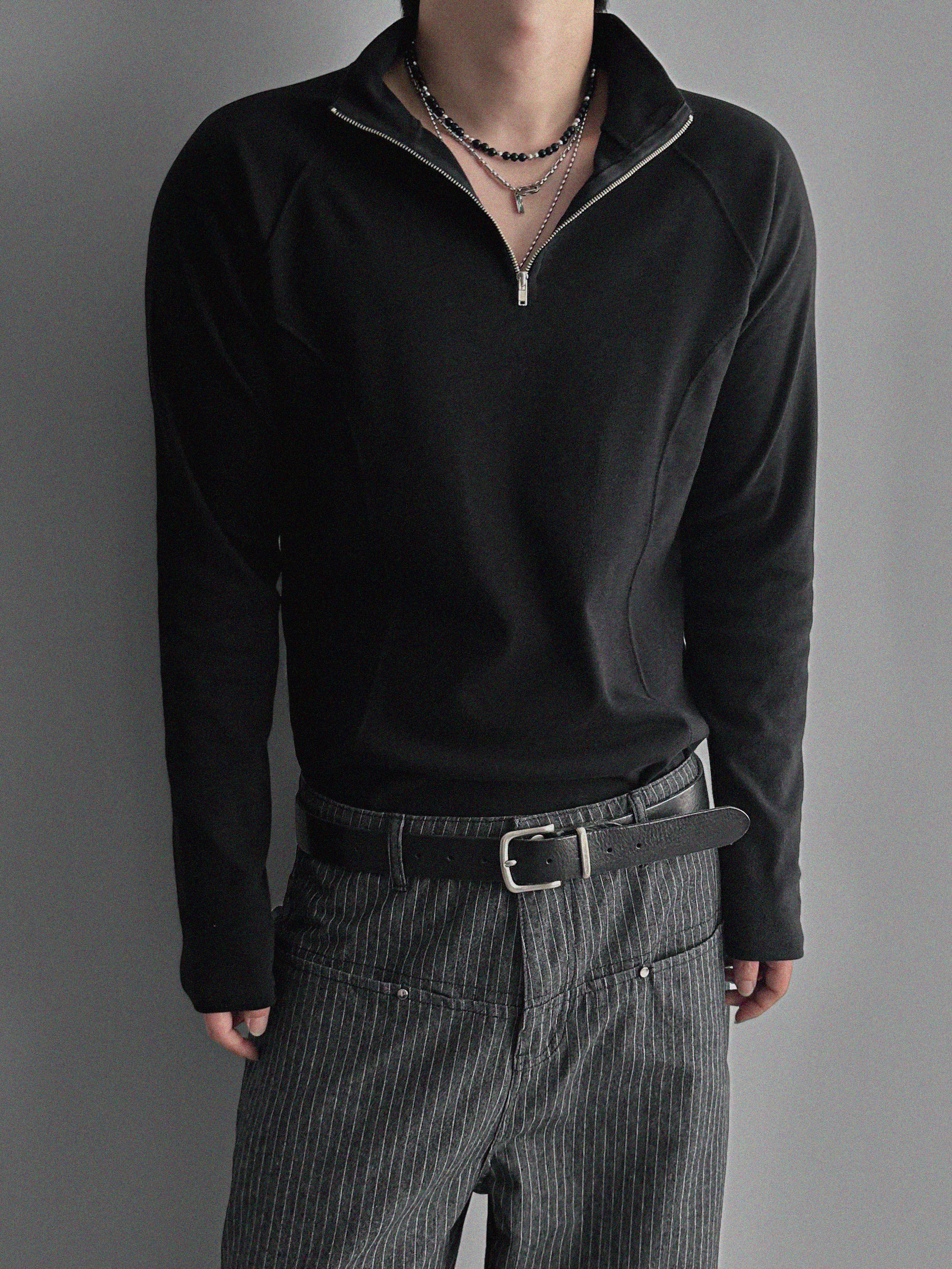 프론트컷 지퍼 폴라 머슬티