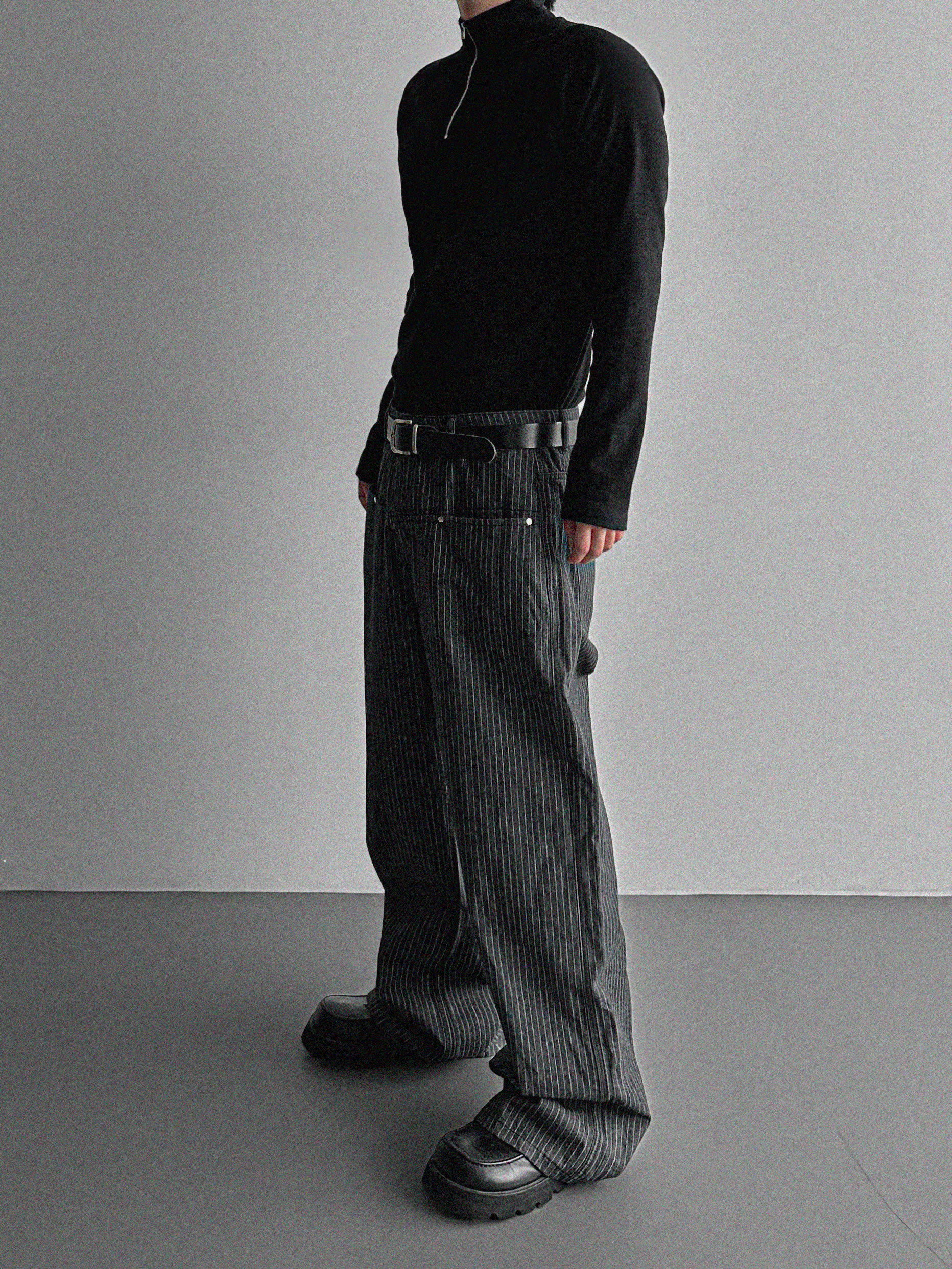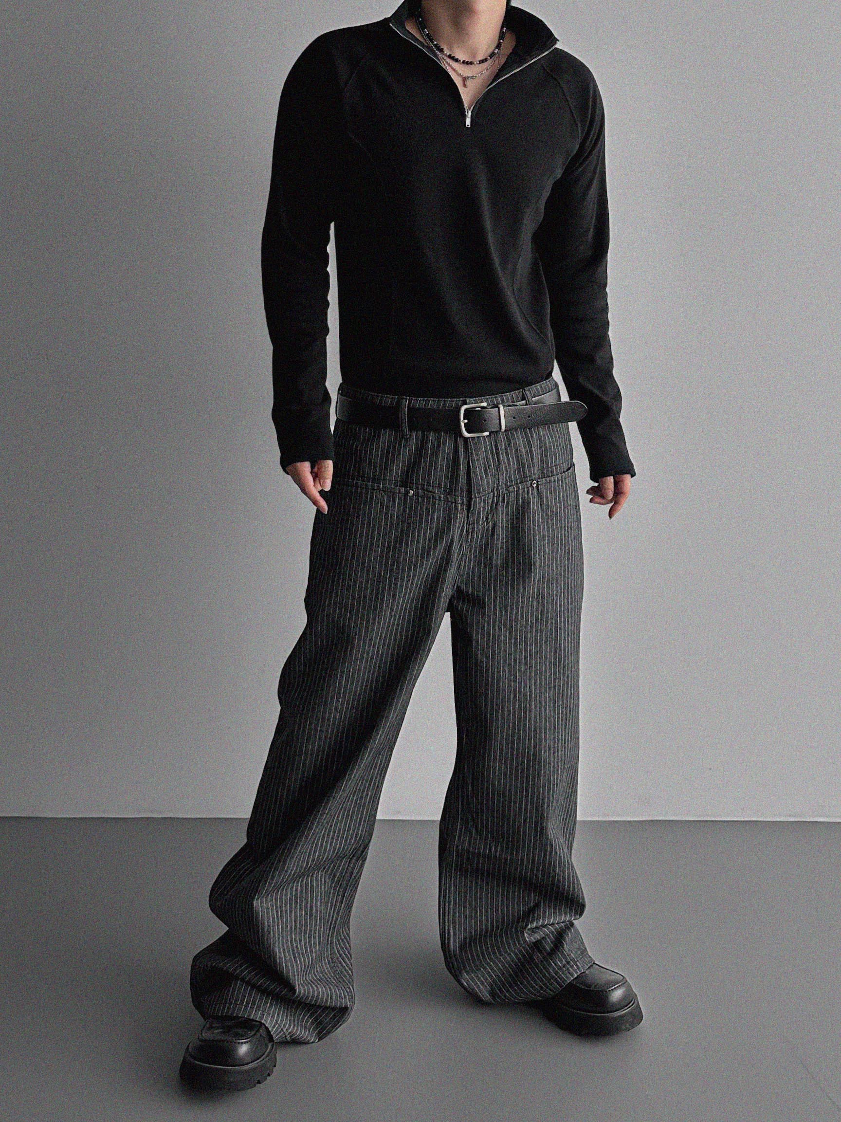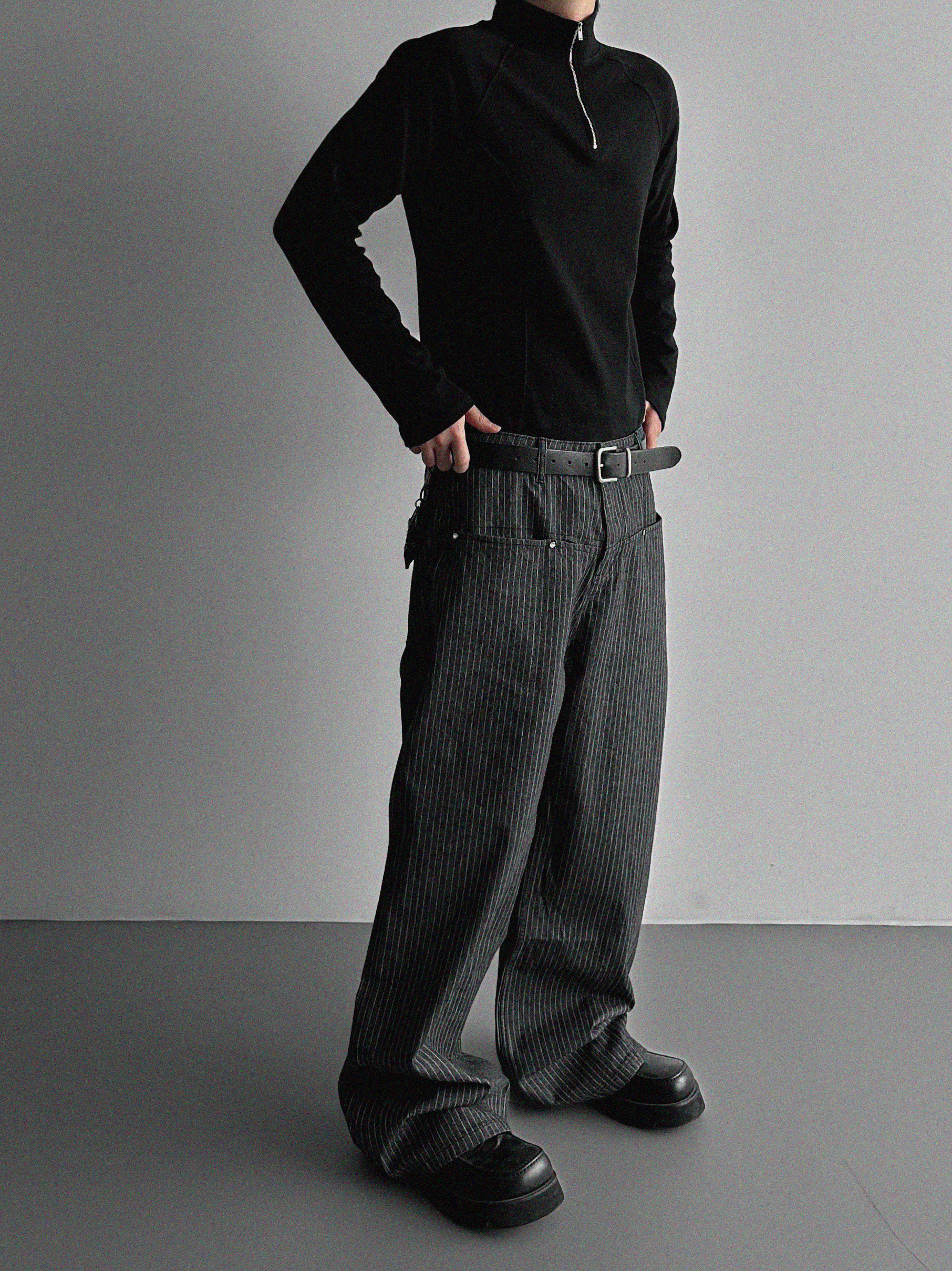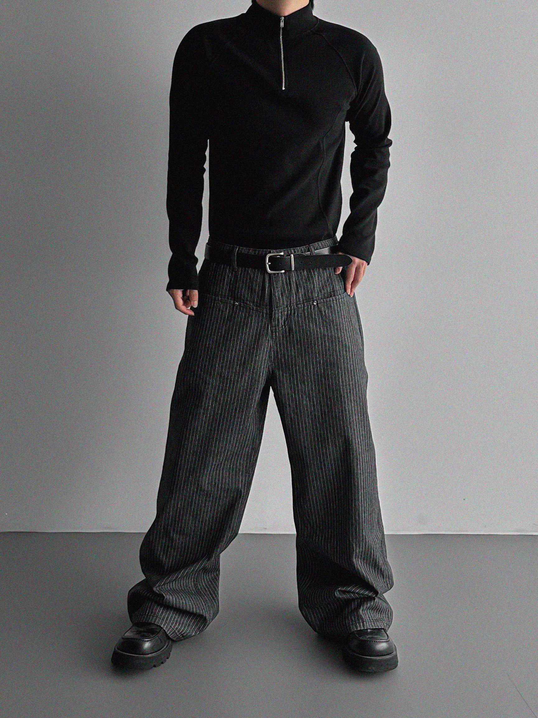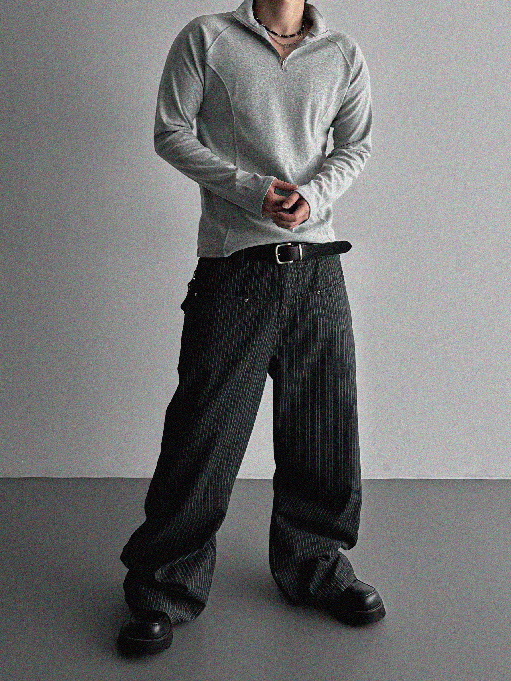 프론트컷 지퍼 폴라 머슬티