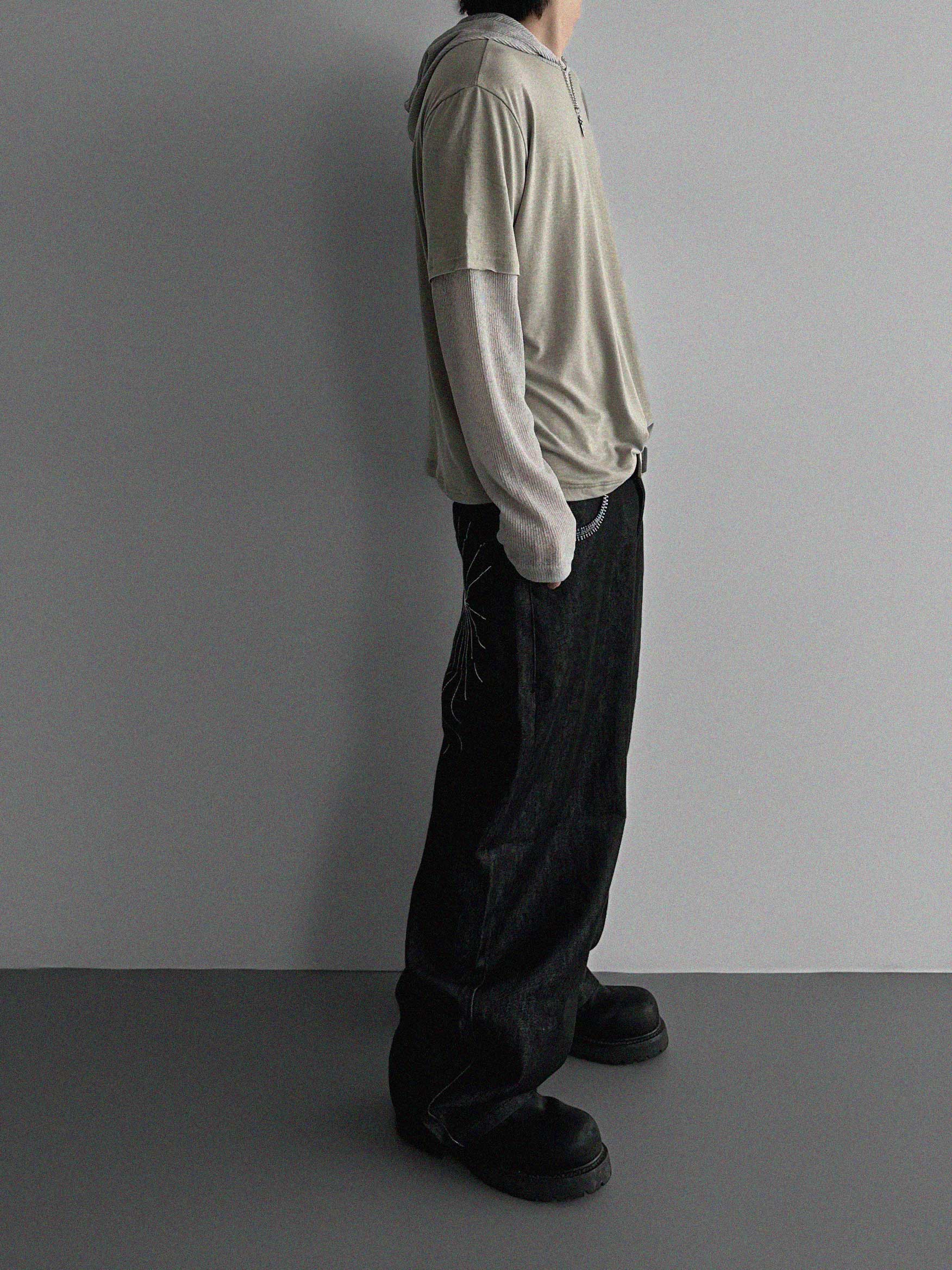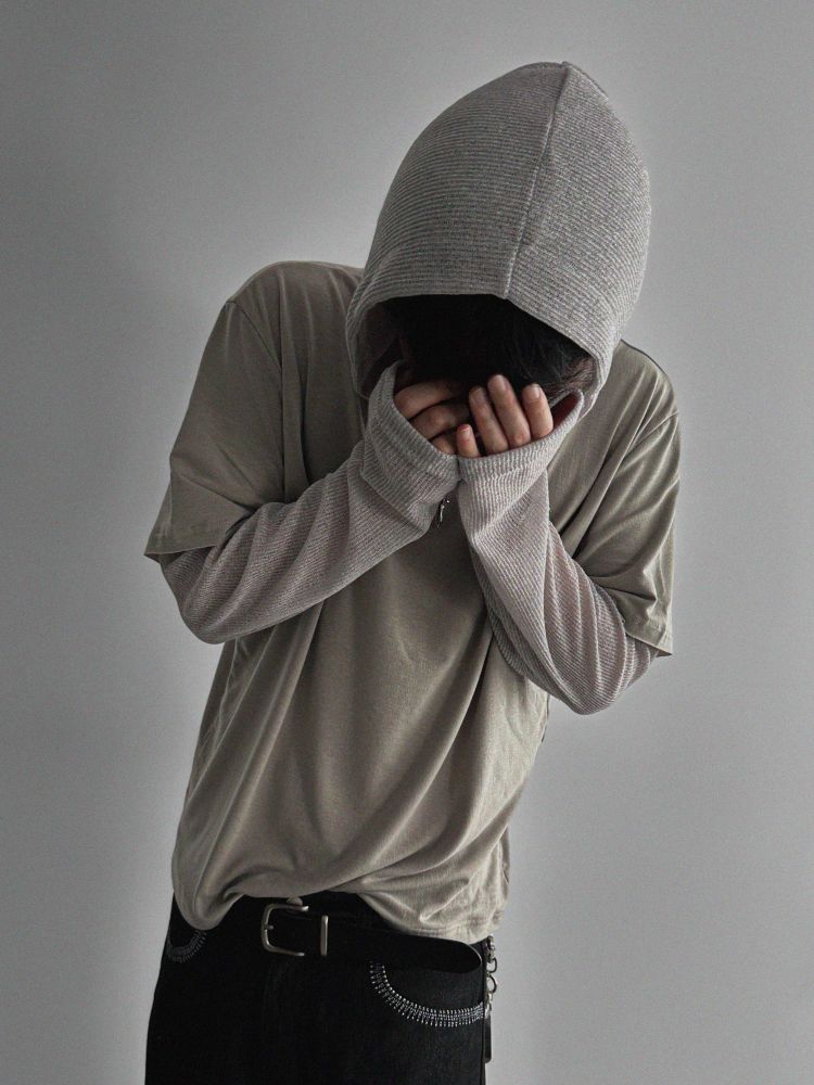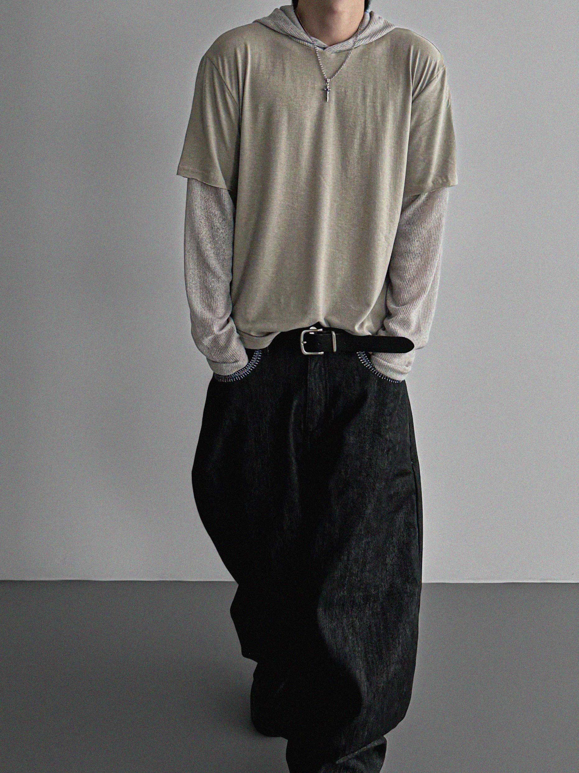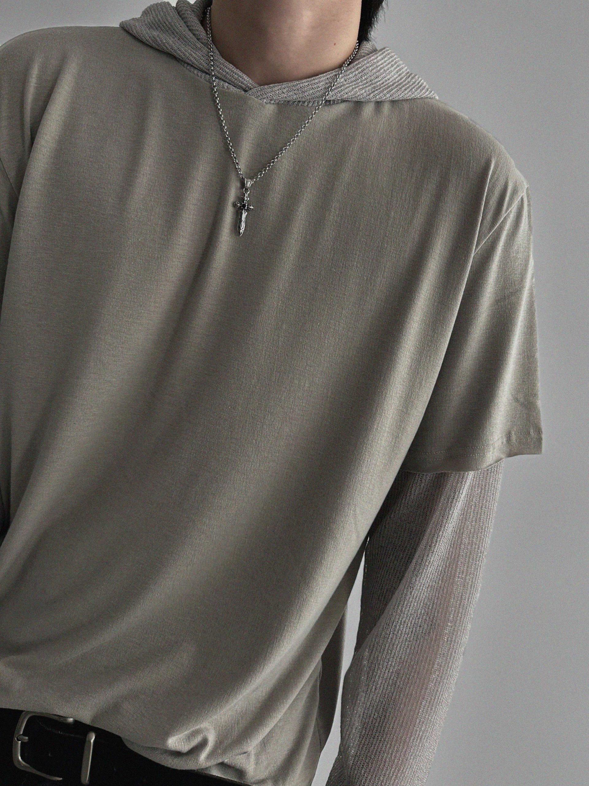 -소매, 후드, 밑단 얇은 니트 레이어드 포인트