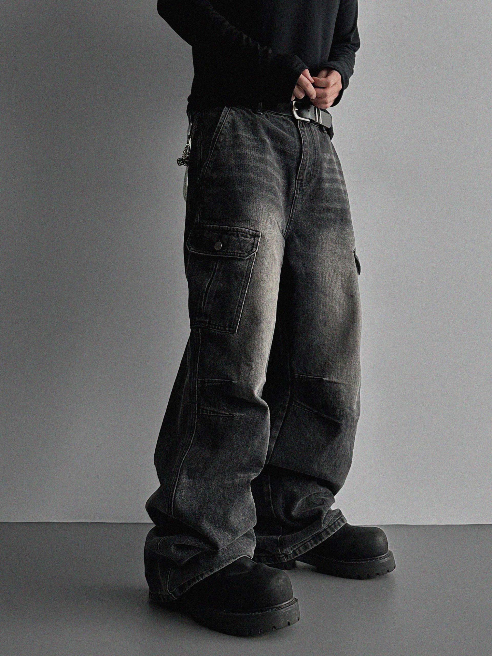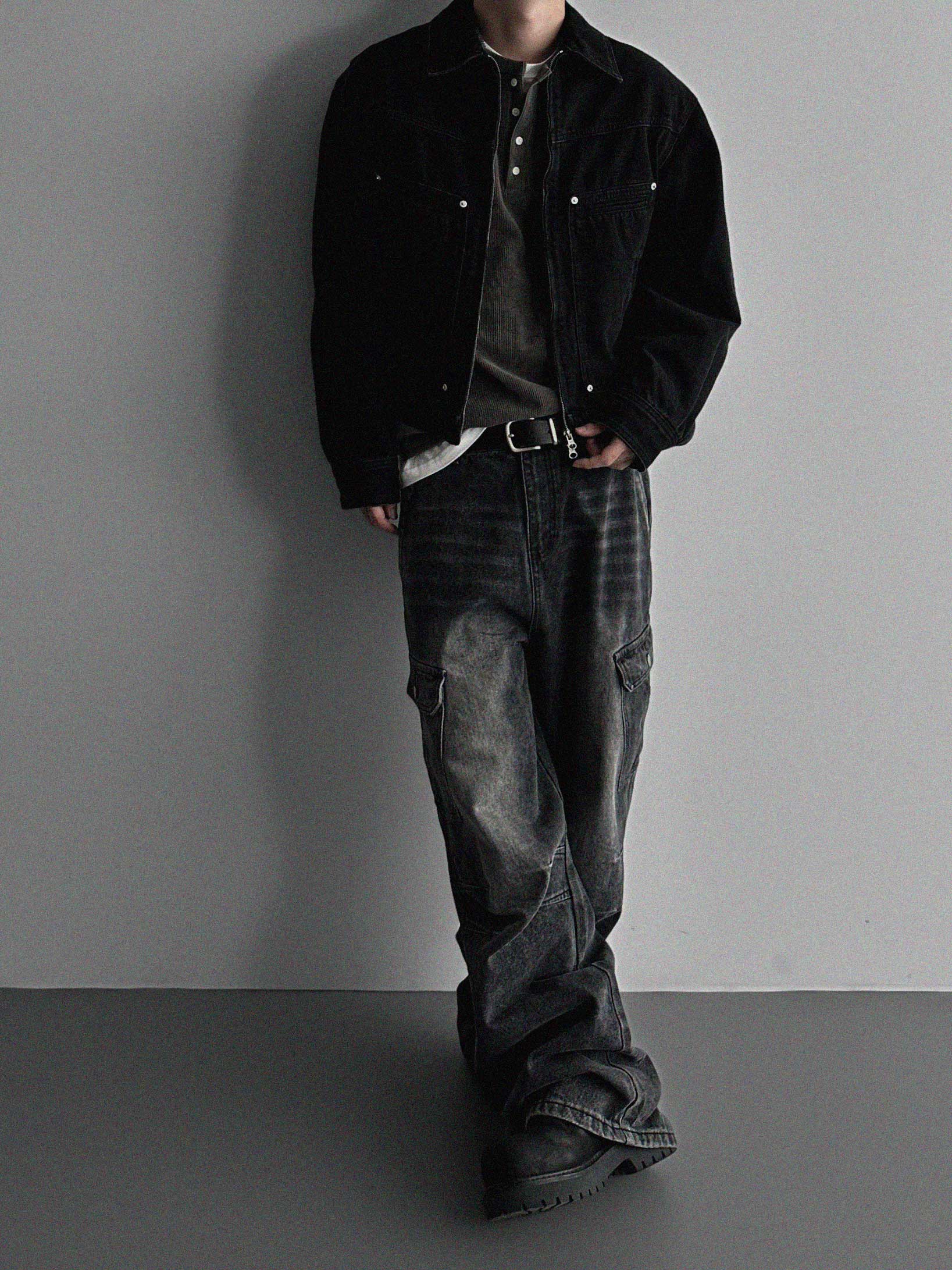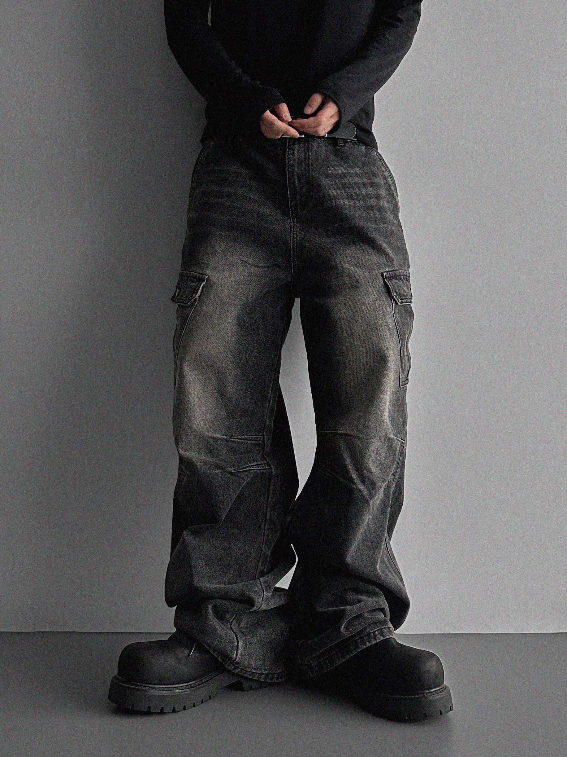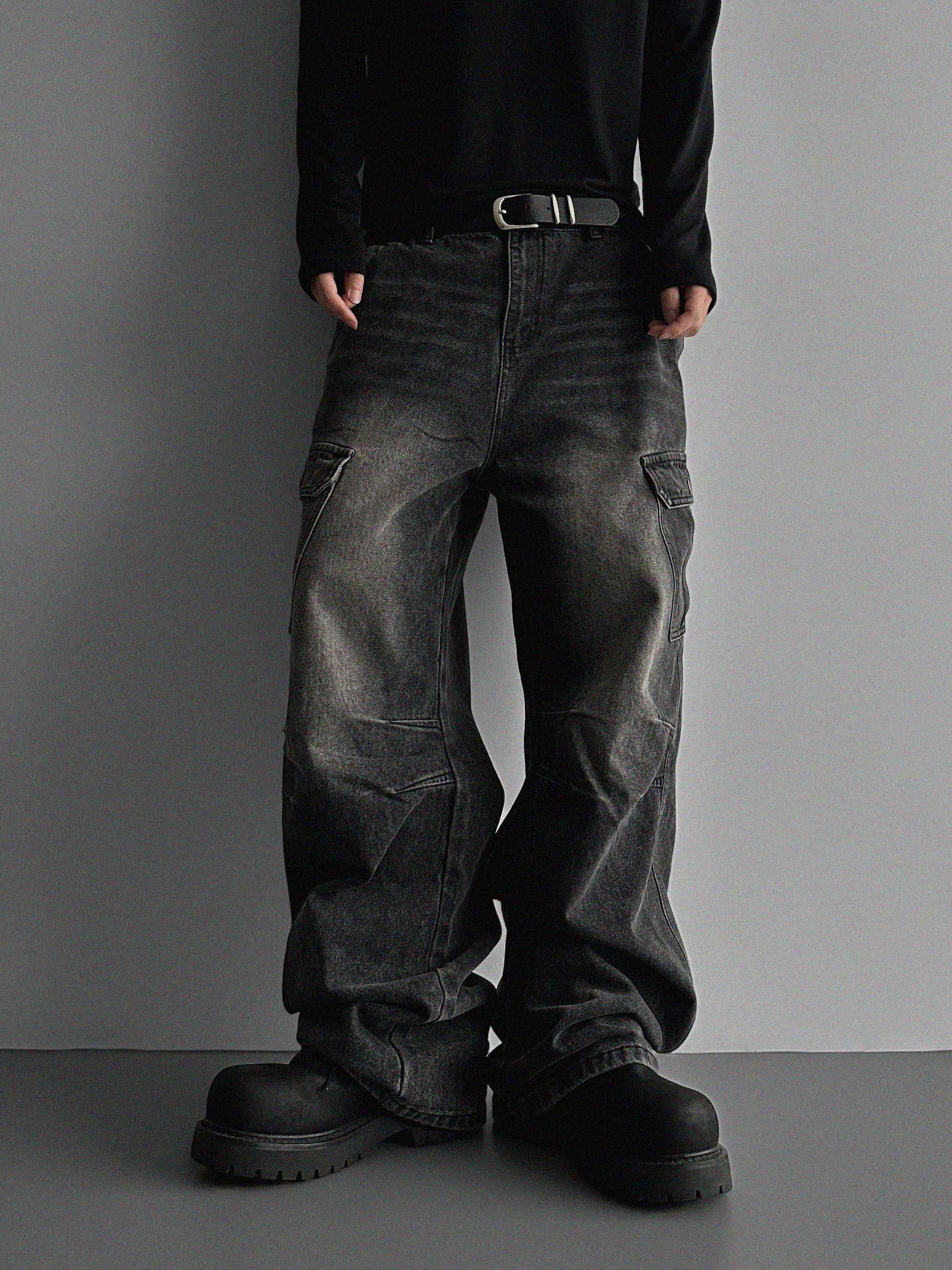 더블 다트 카고 데님 팬츠