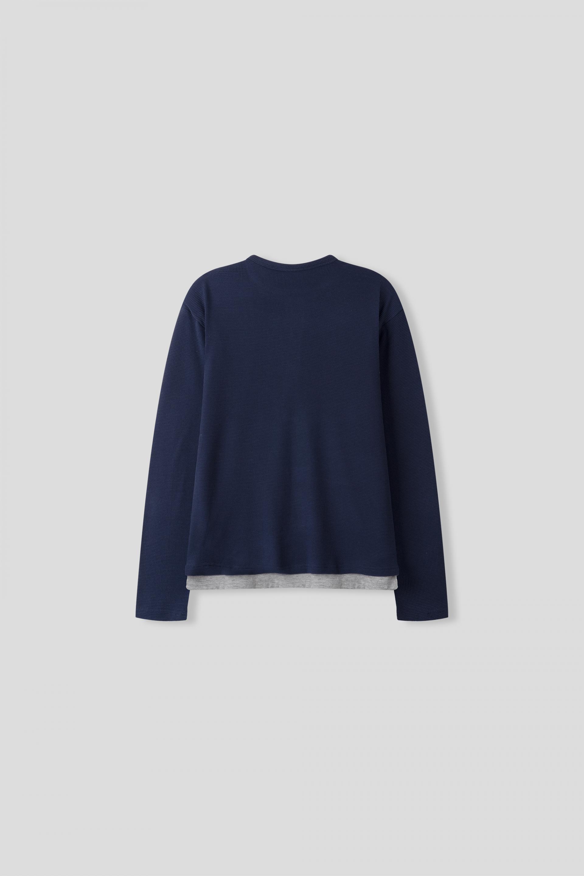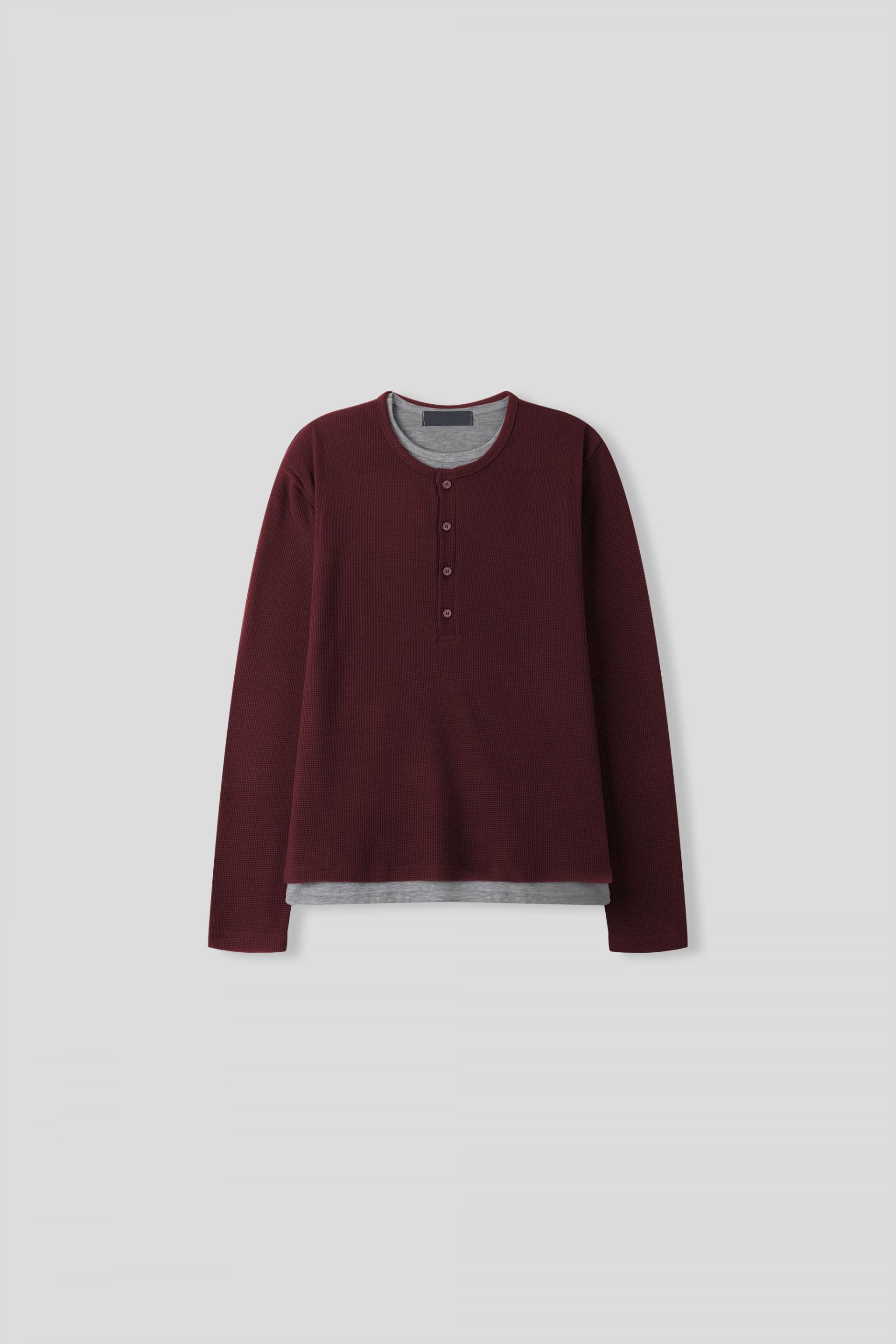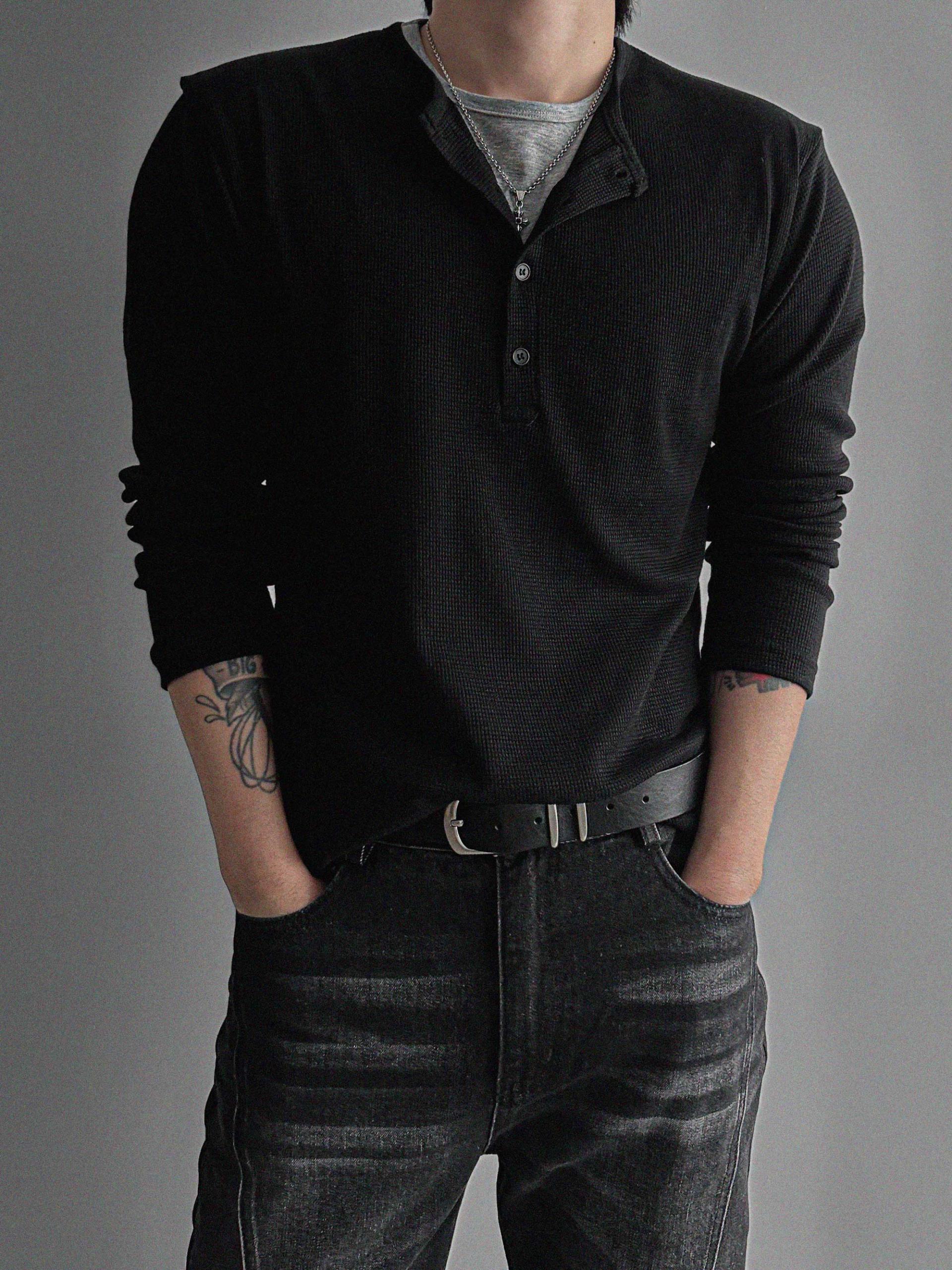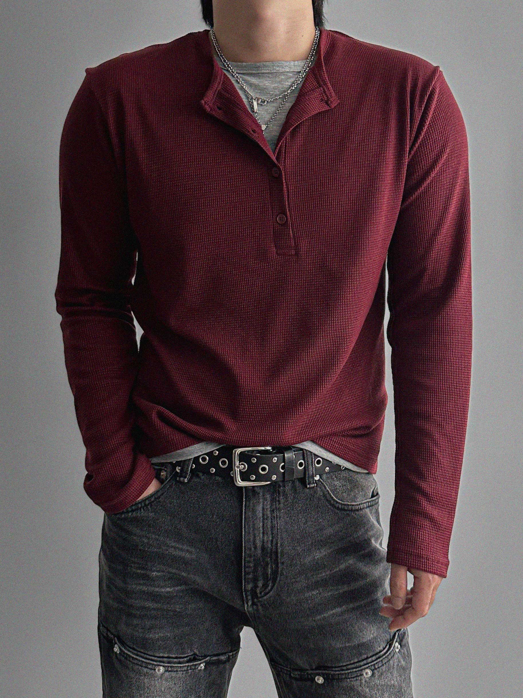 레이어링 와플 헨리넥 크롭 롱슬리브