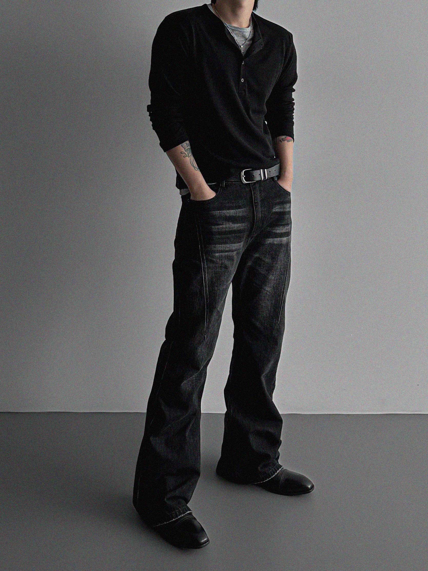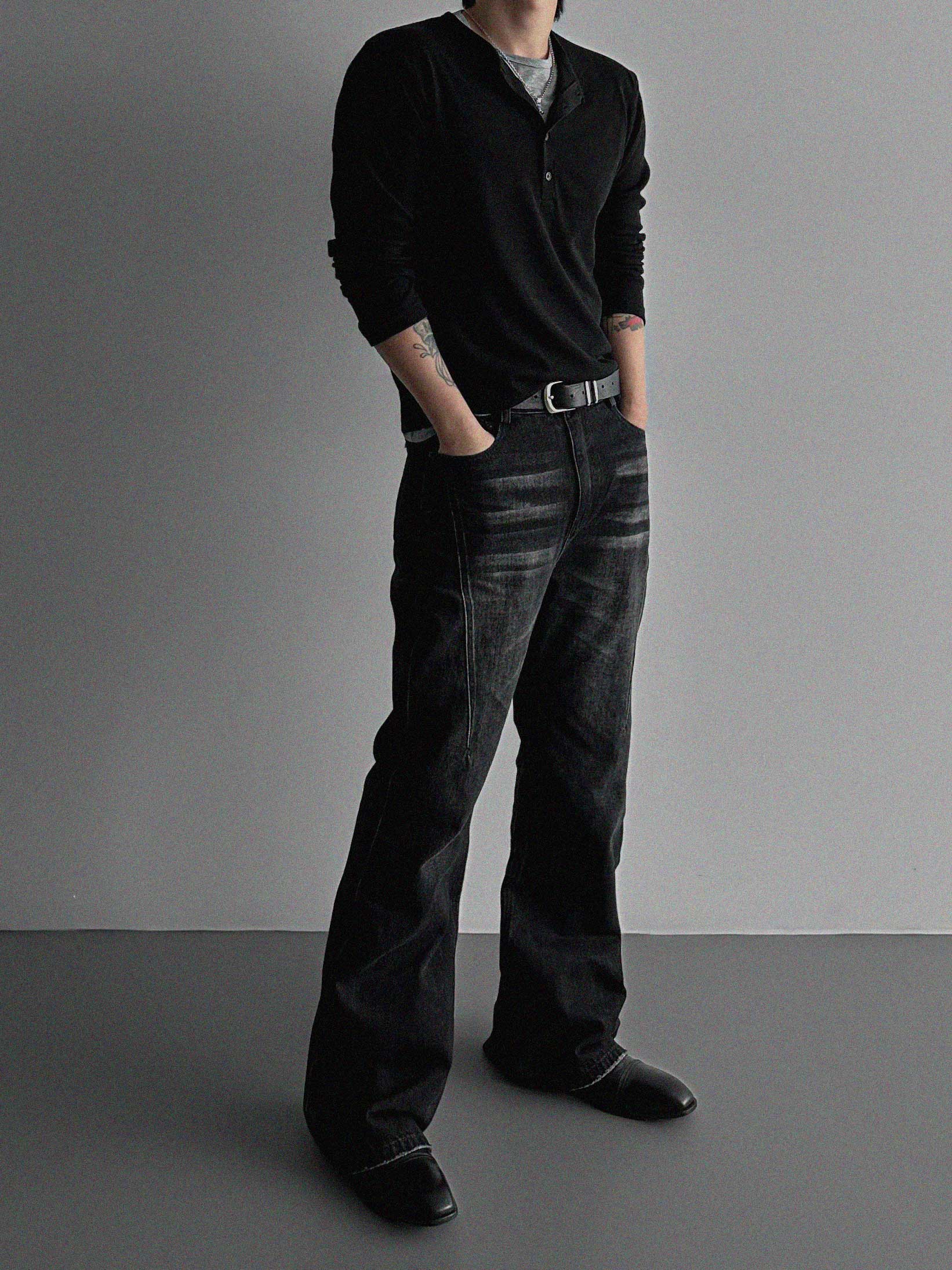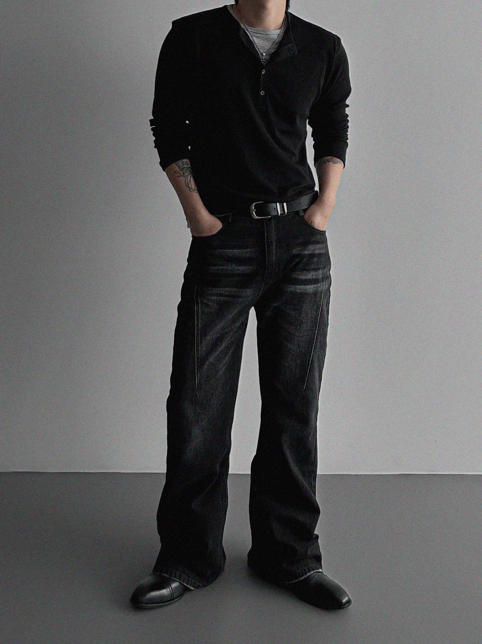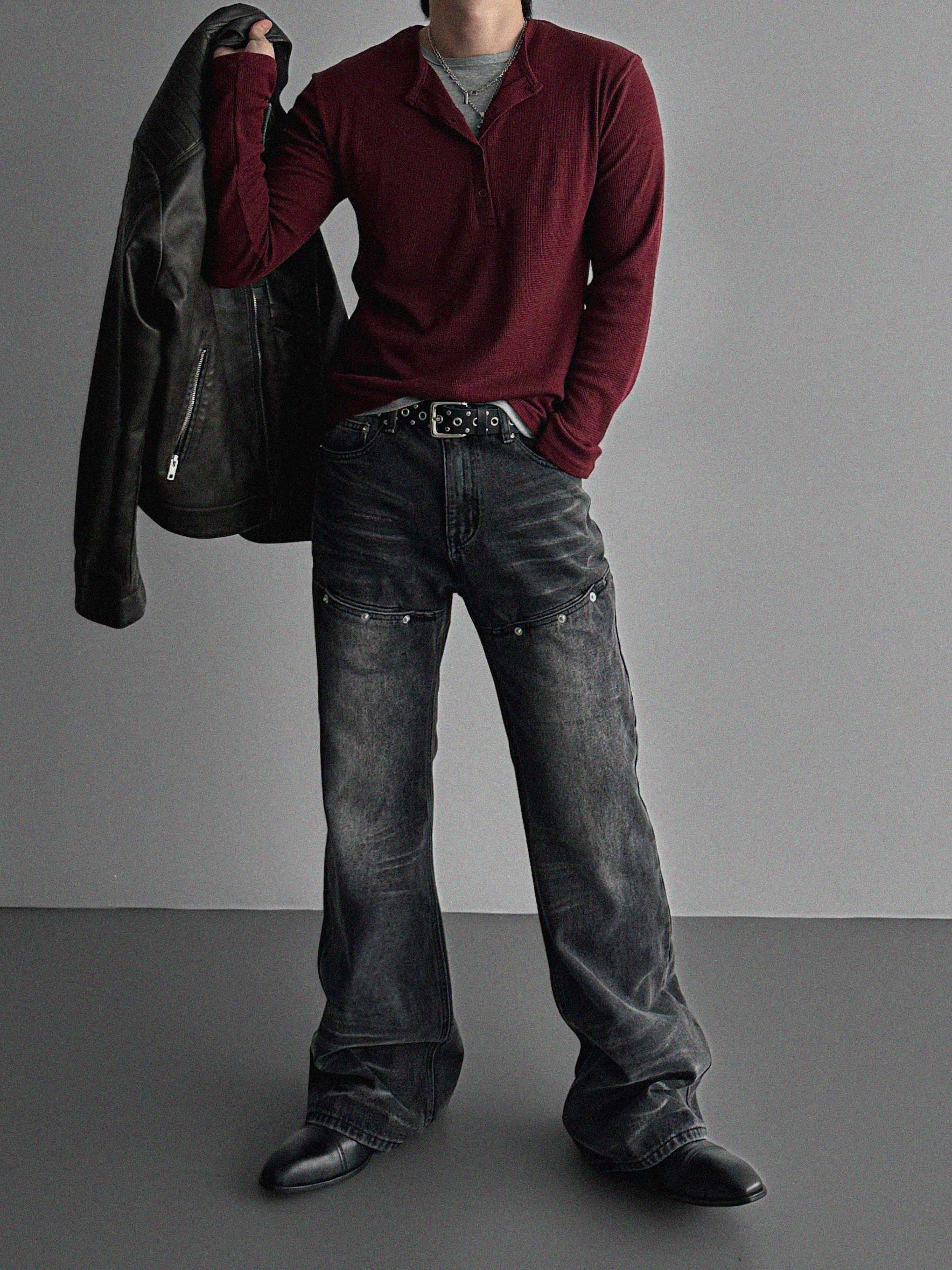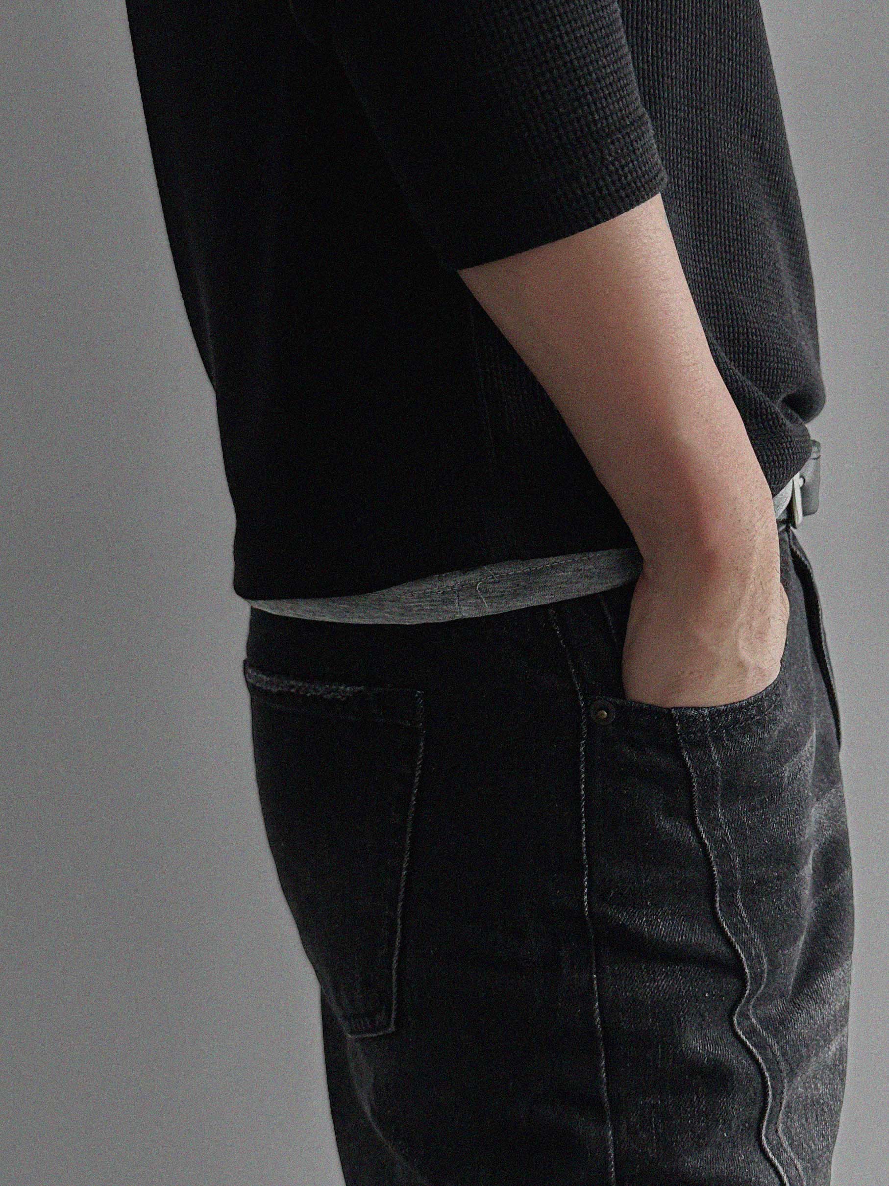 레이어링 와플 헨리넥 크롭 롱슬리브
