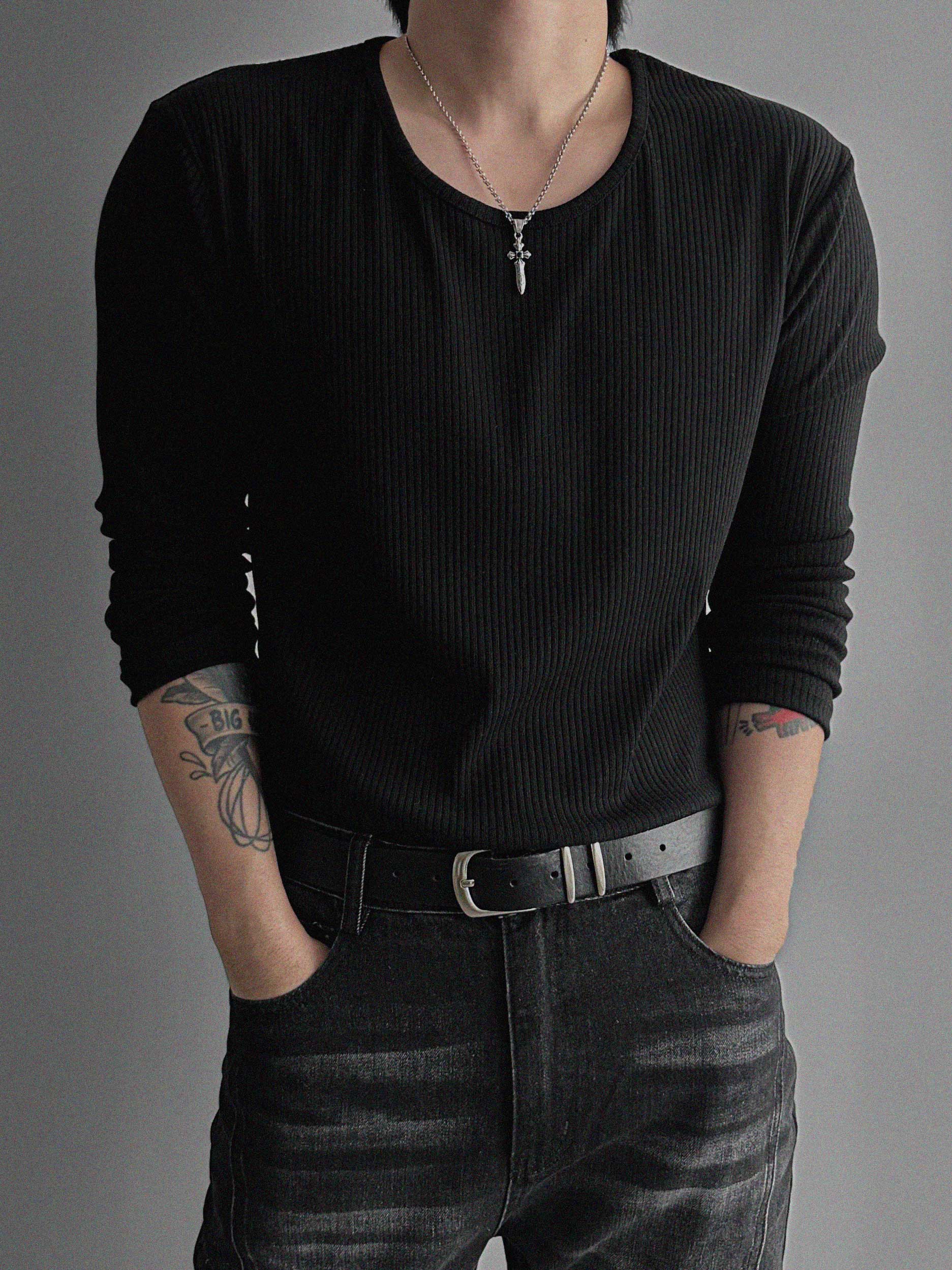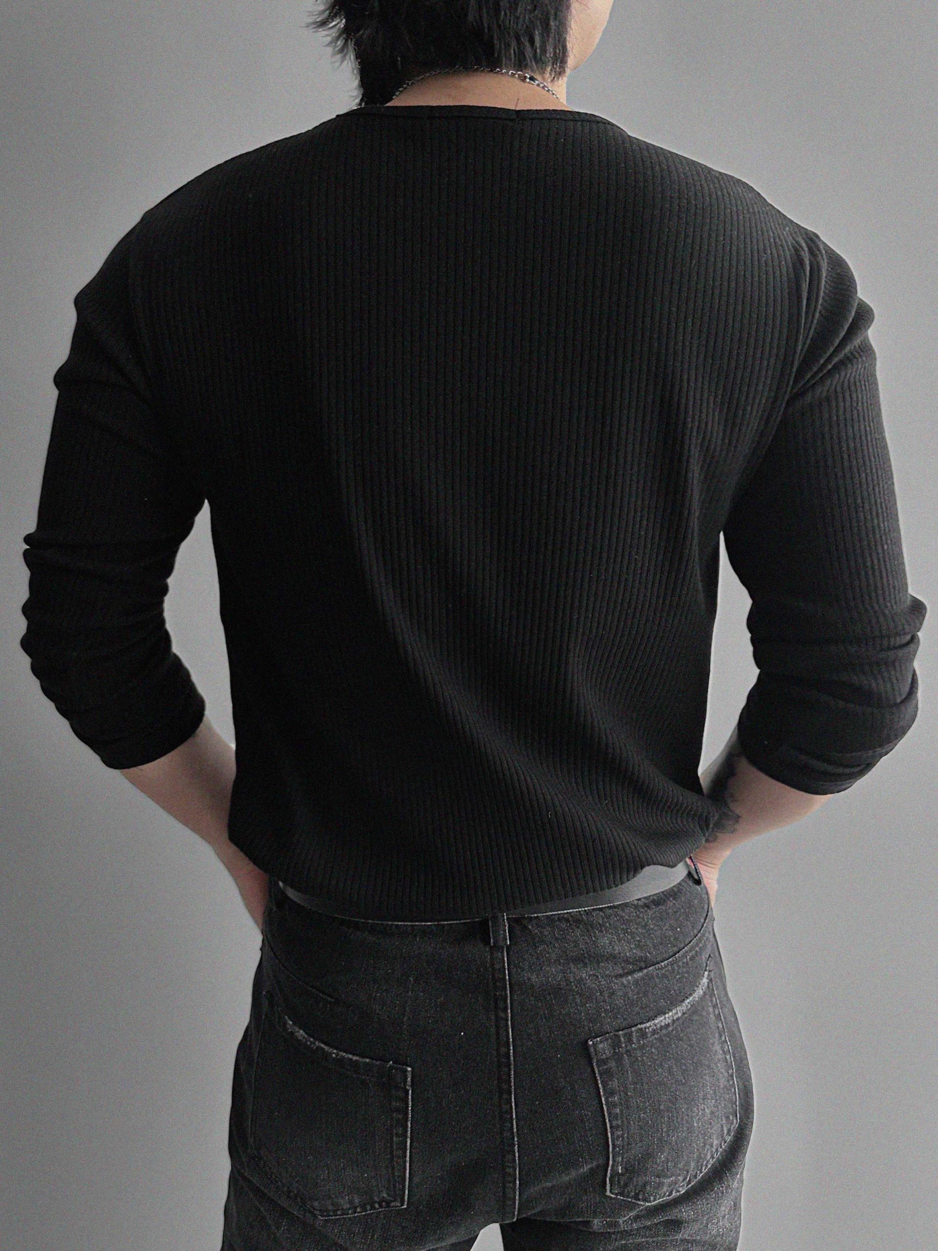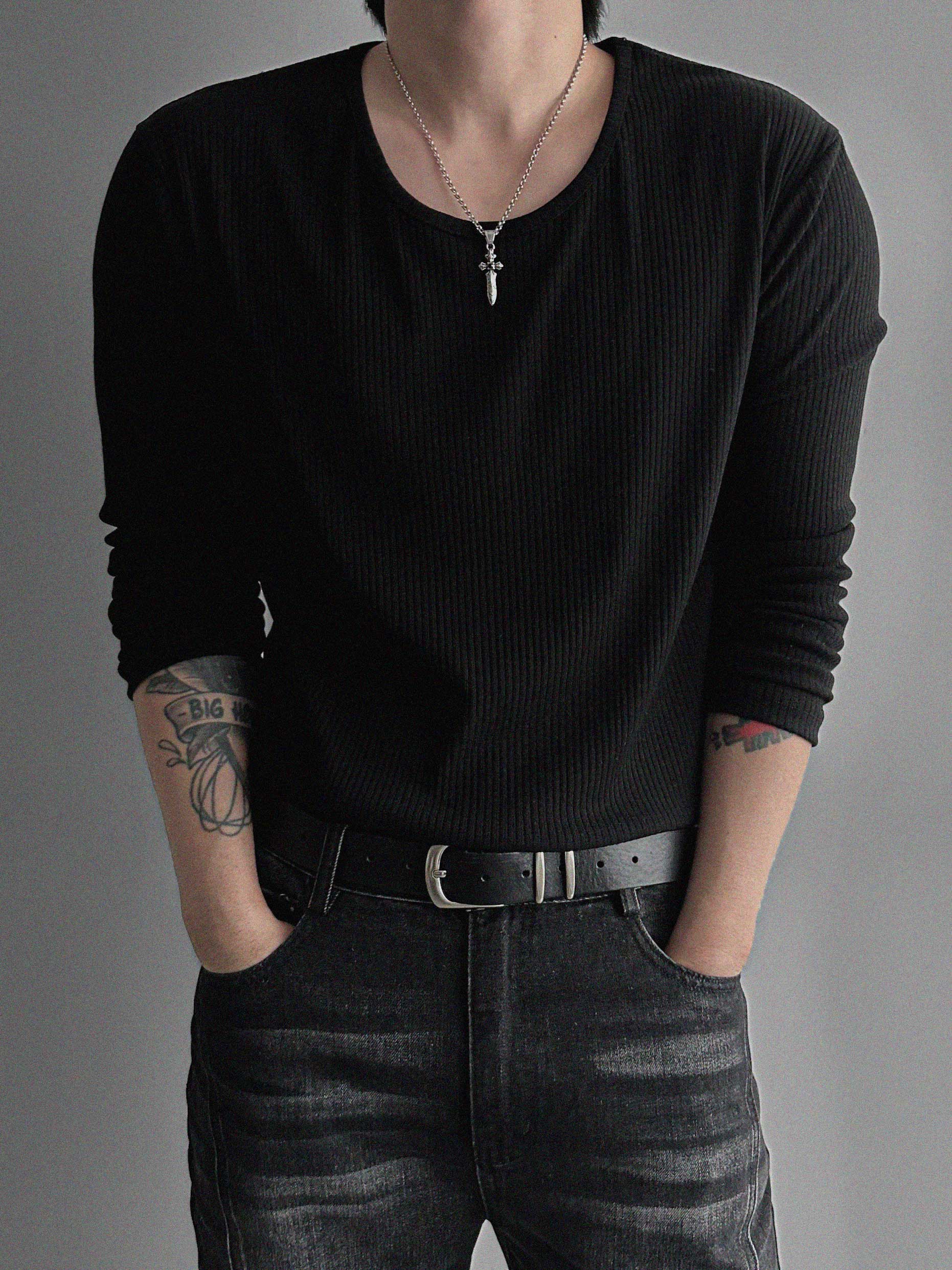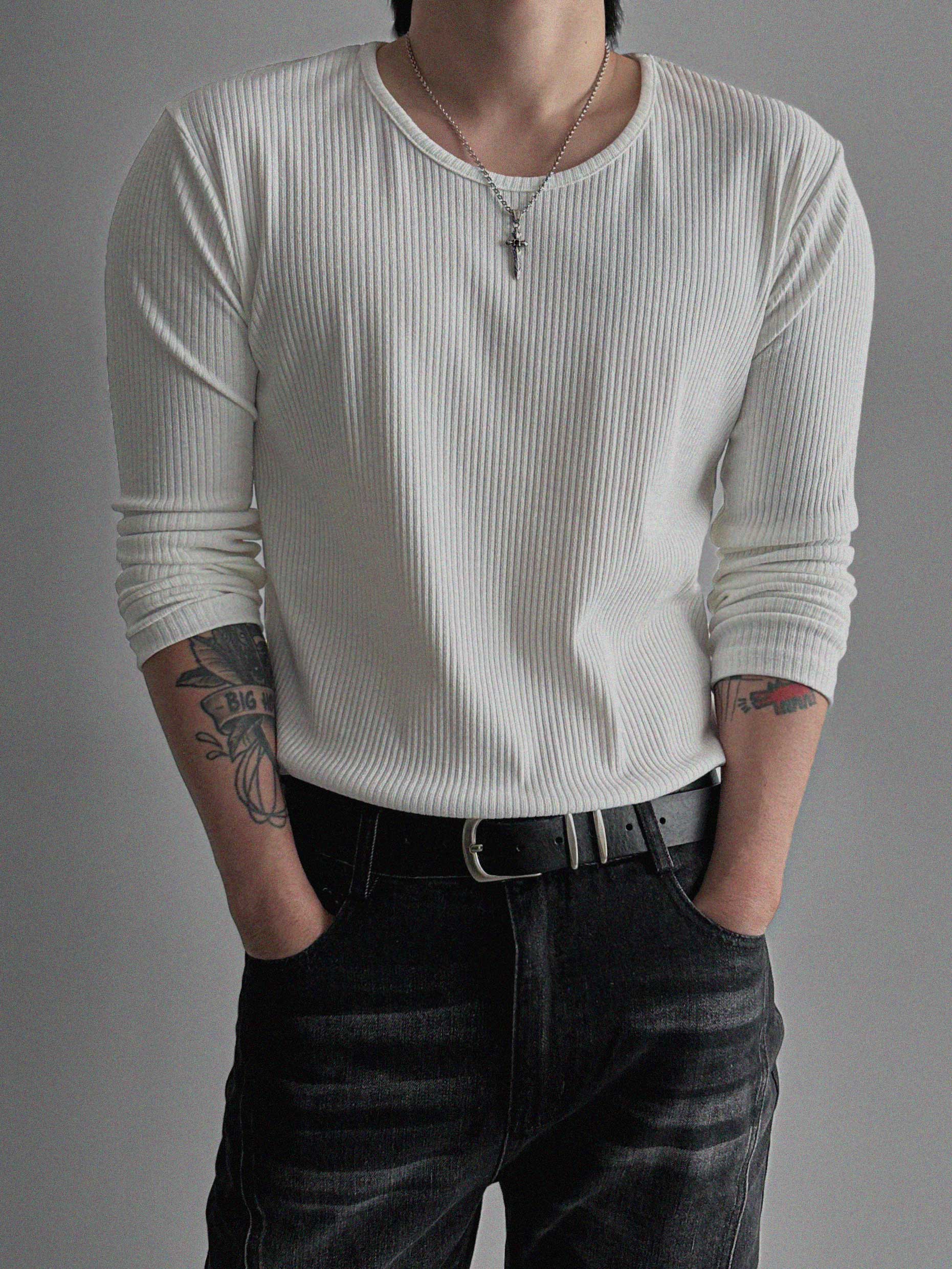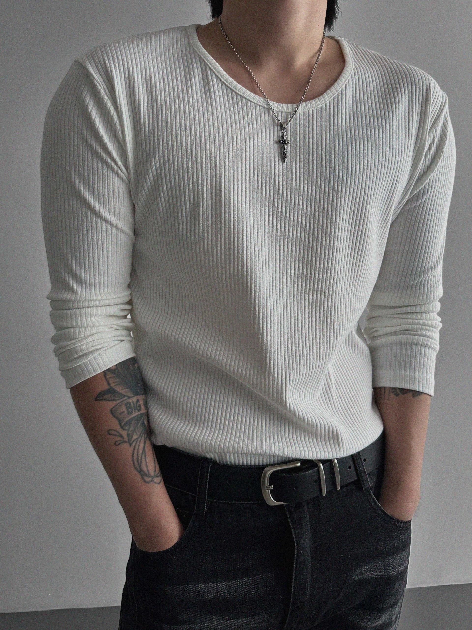 머슬 골지 U넥 롱슬리브