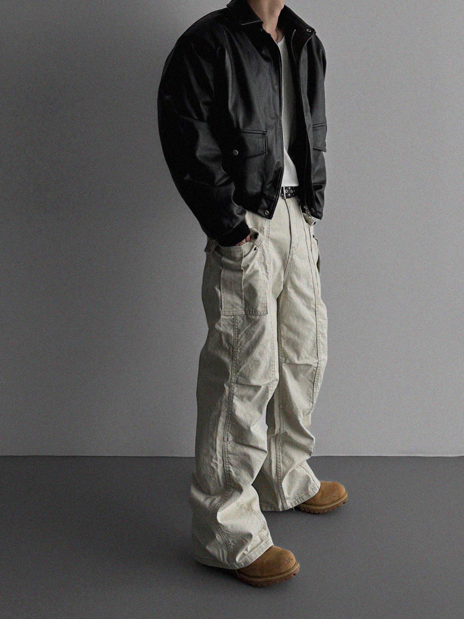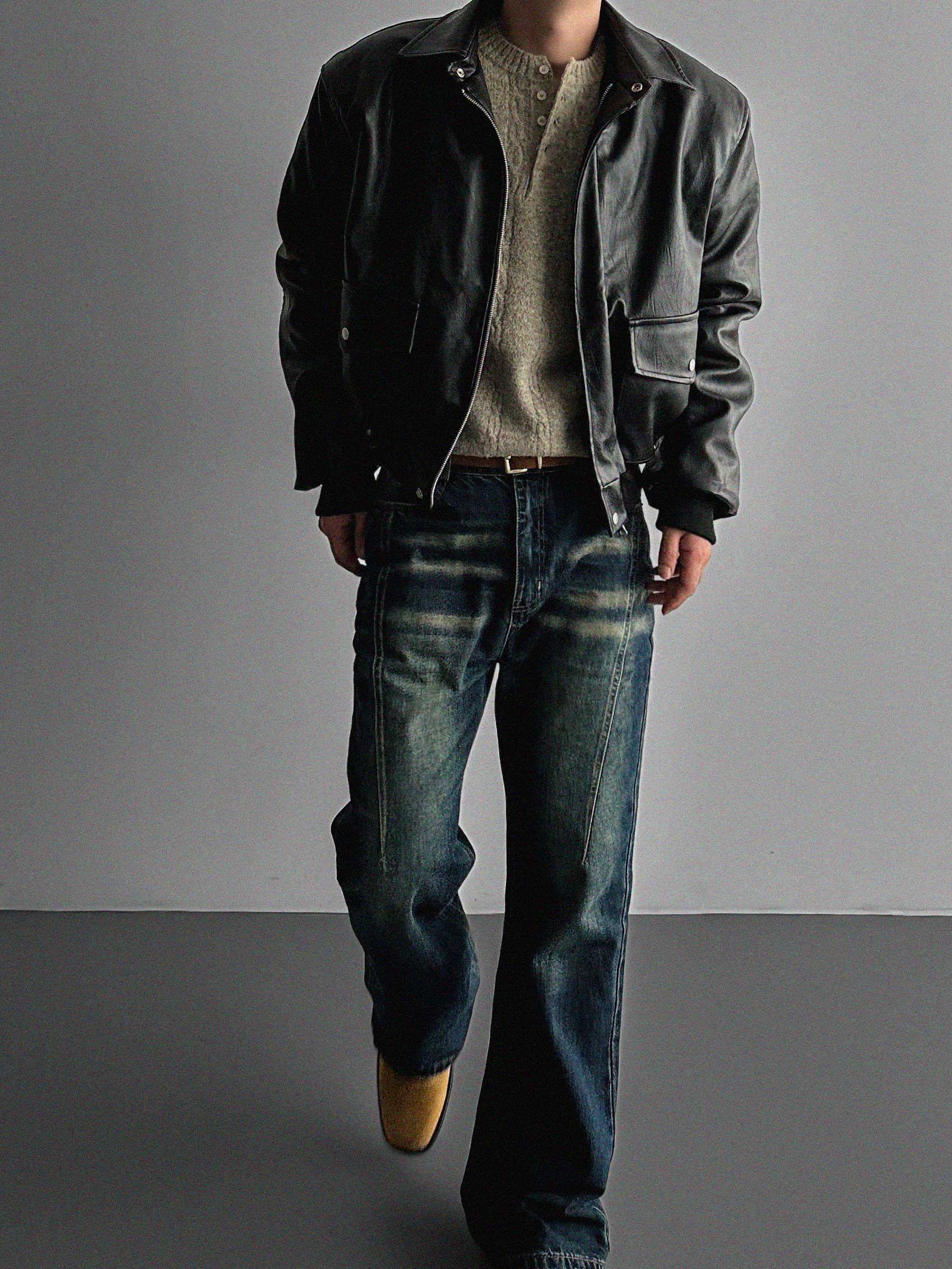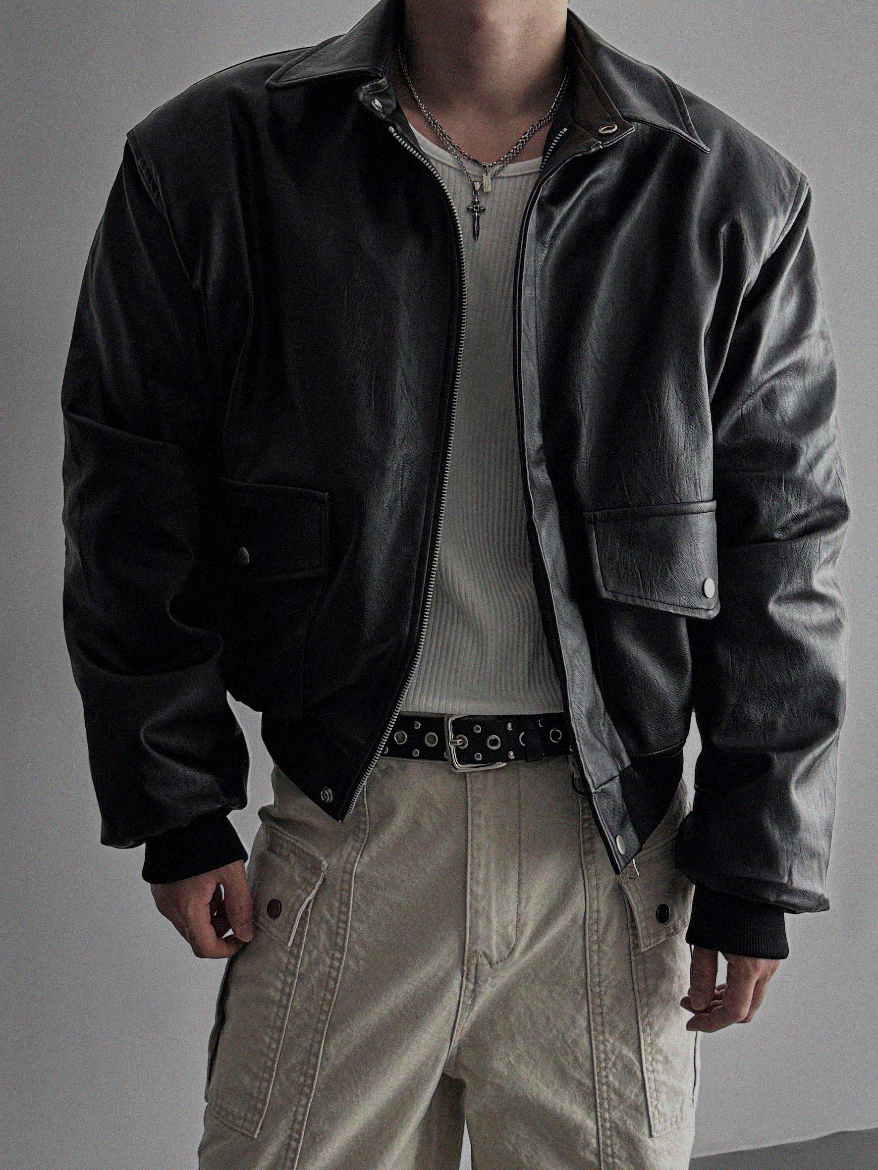 -러프한 매력의 레더 봄버 패딩 점퍼