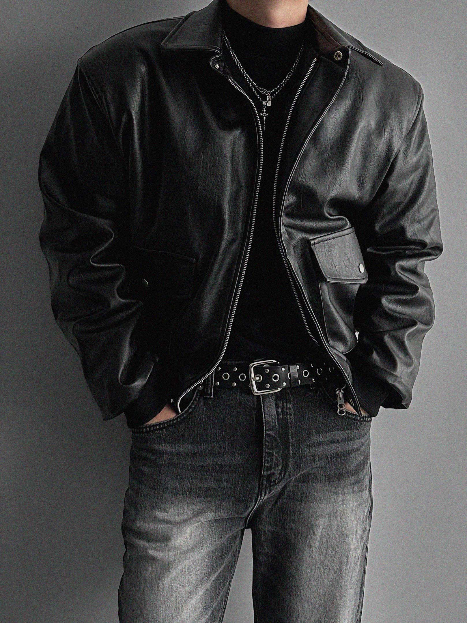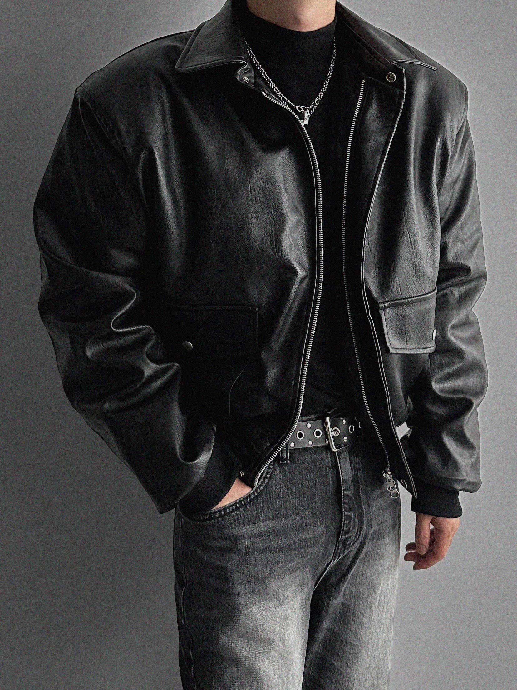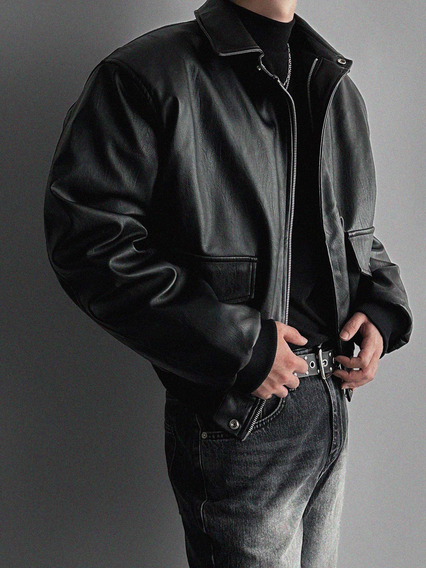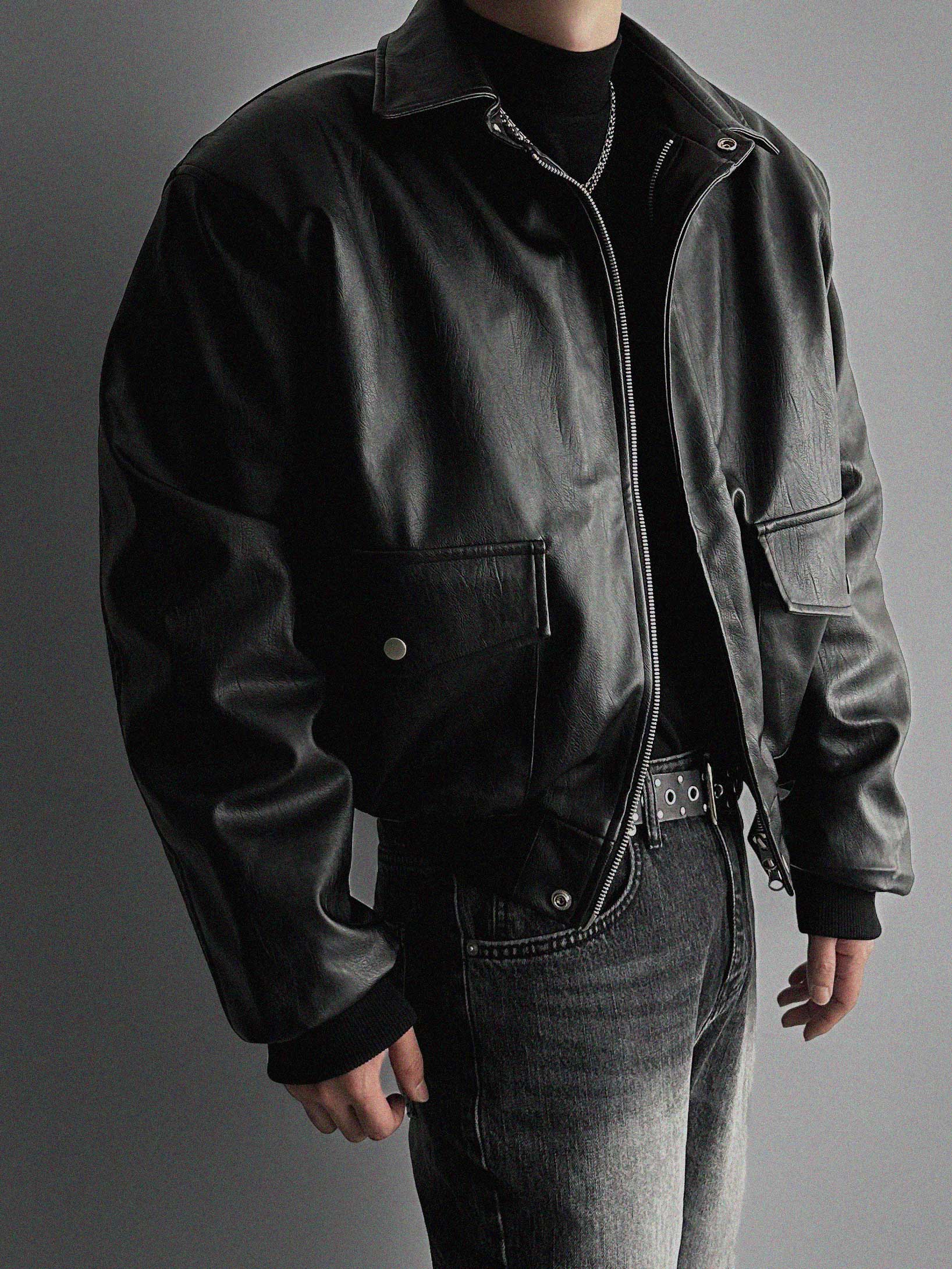 -러프한 매력의 레더 봄버 패딩 점퍼