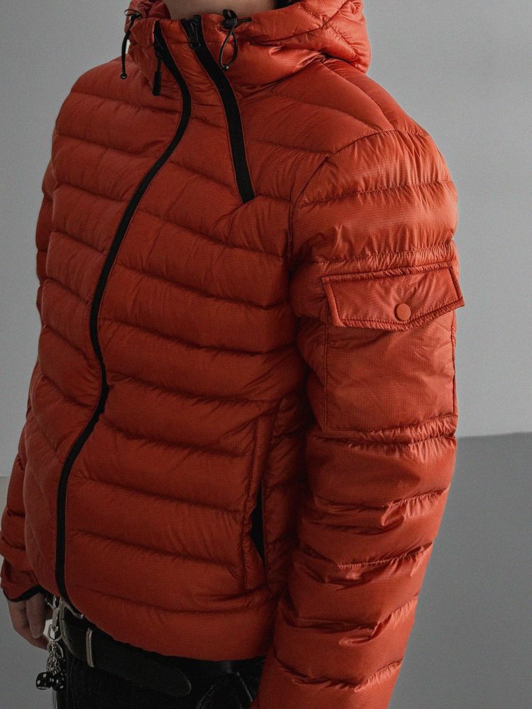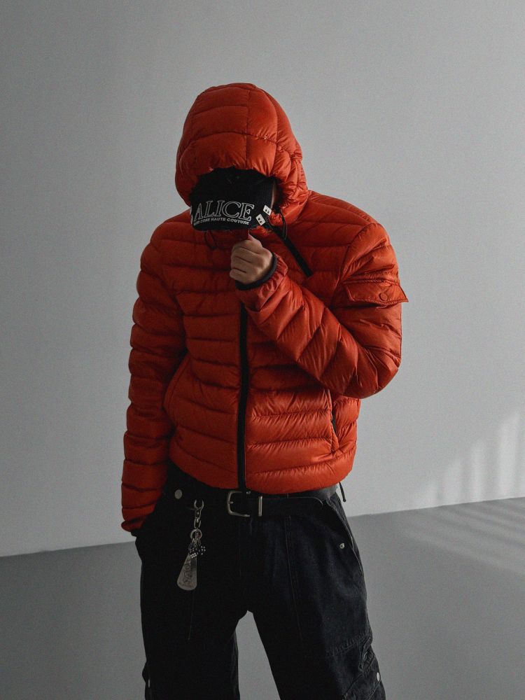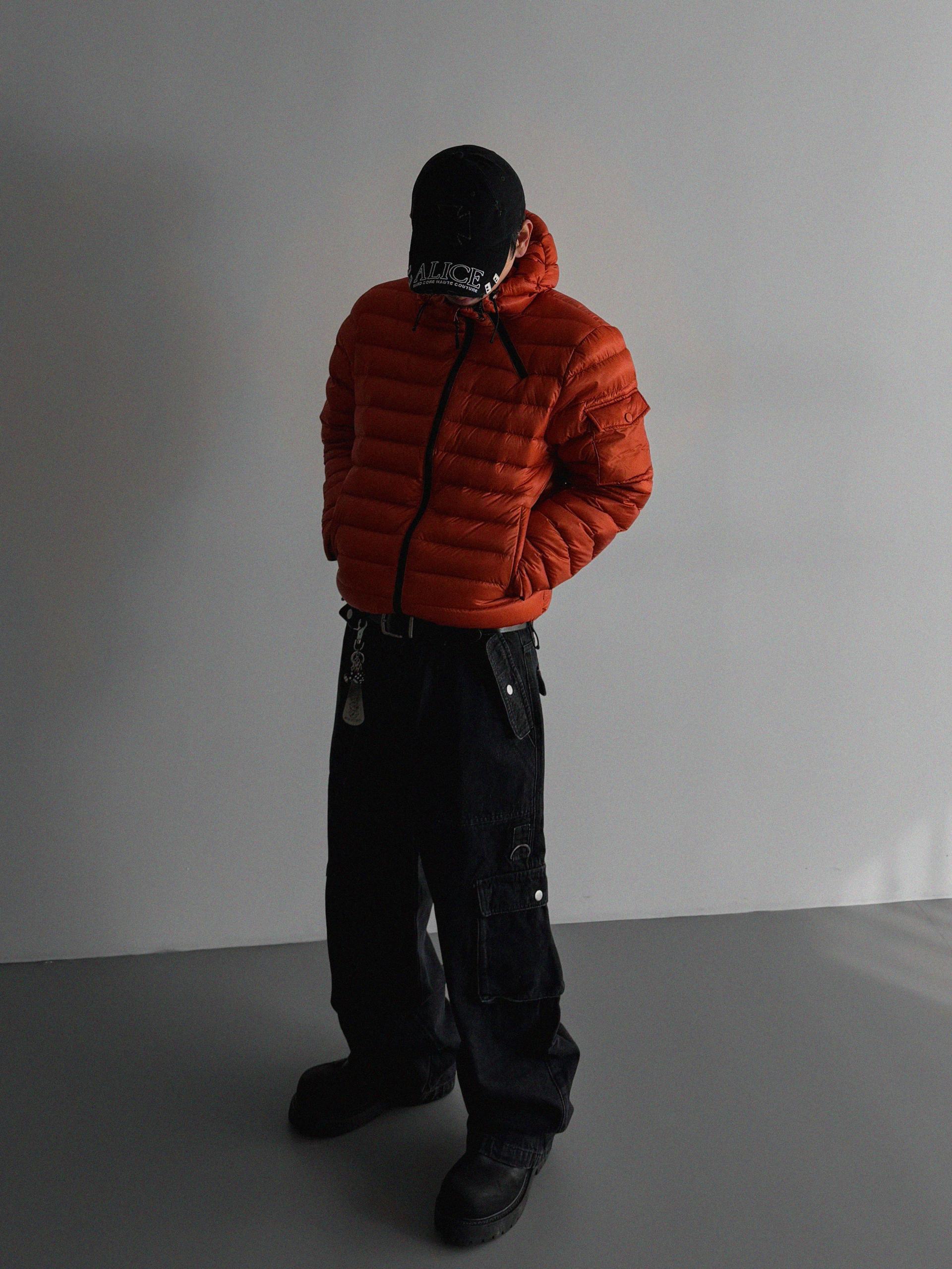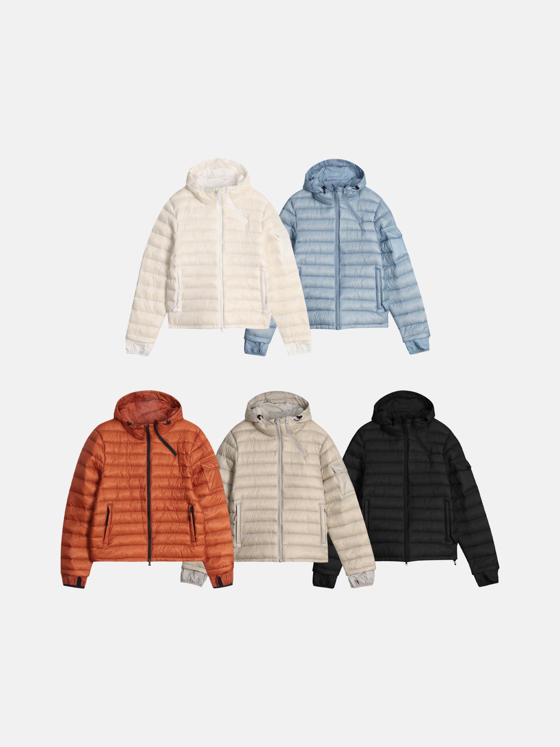 파이톤 덕다운 크롭 후드 경량 패딩