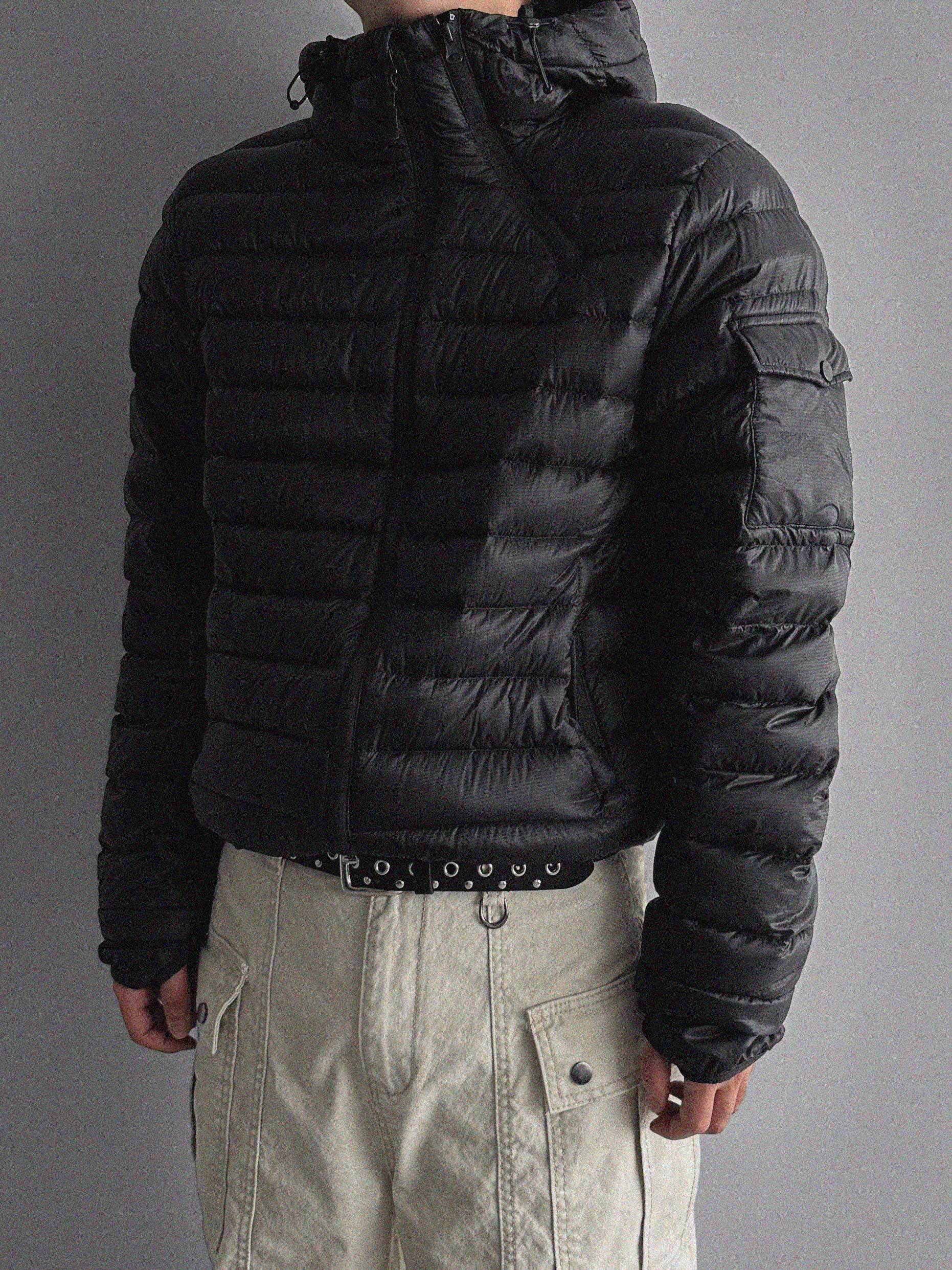 -하이넥 후드. 스토퍼로 사이즈 조절 기능