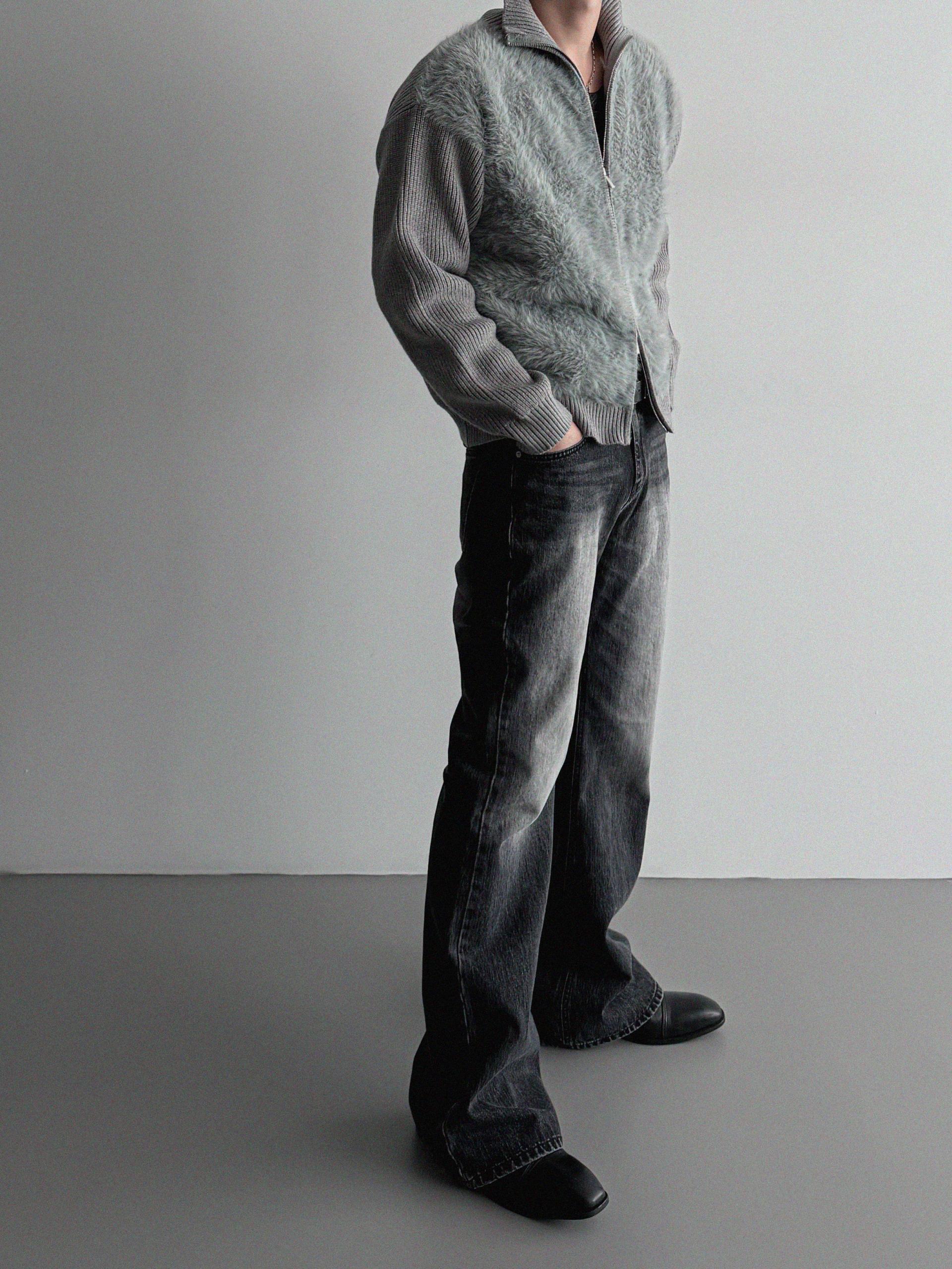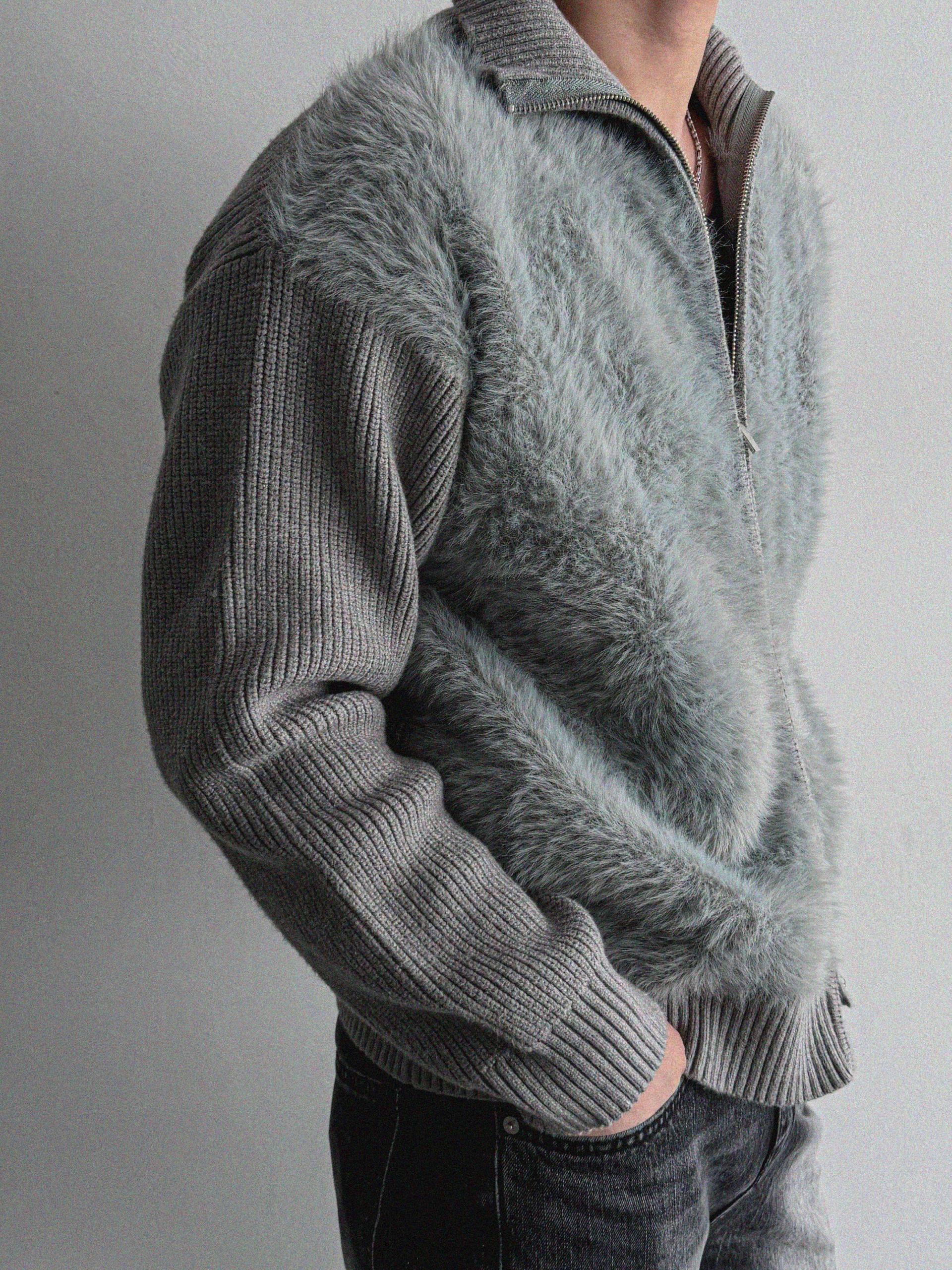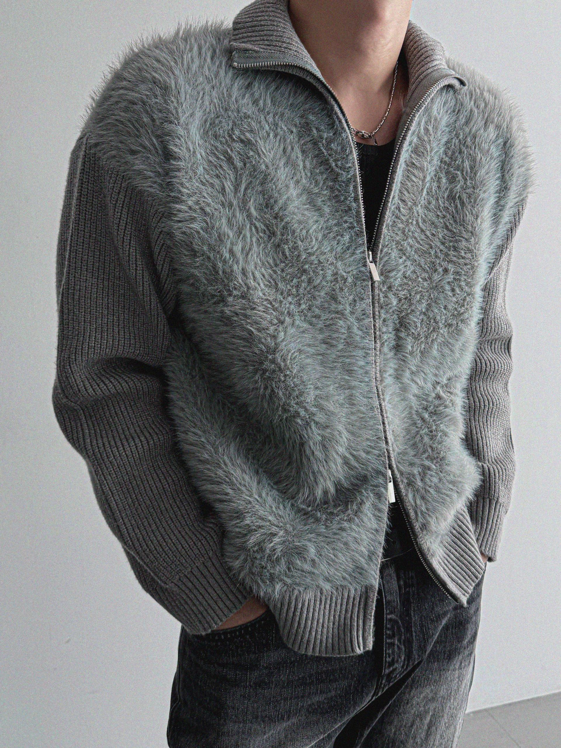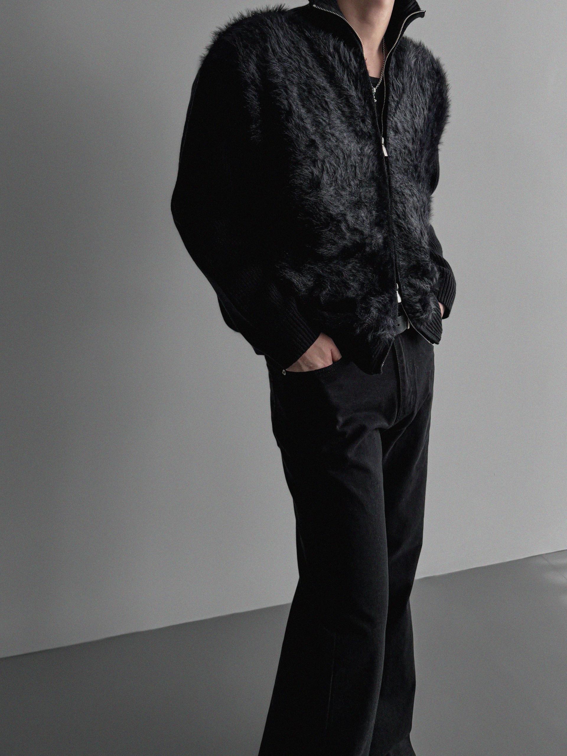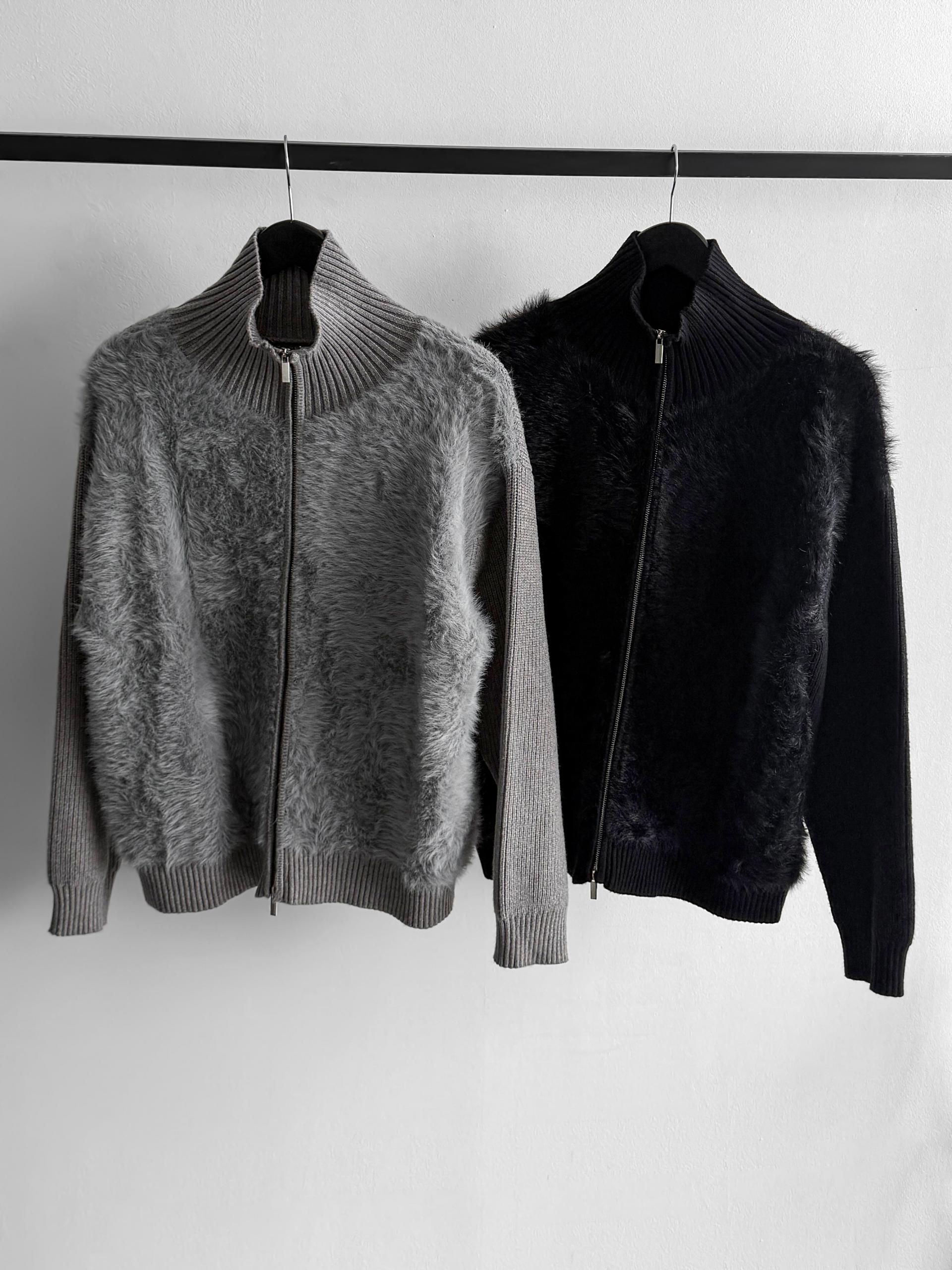 - 두툼한 골지 니트에 전면부 앙고라 포인트