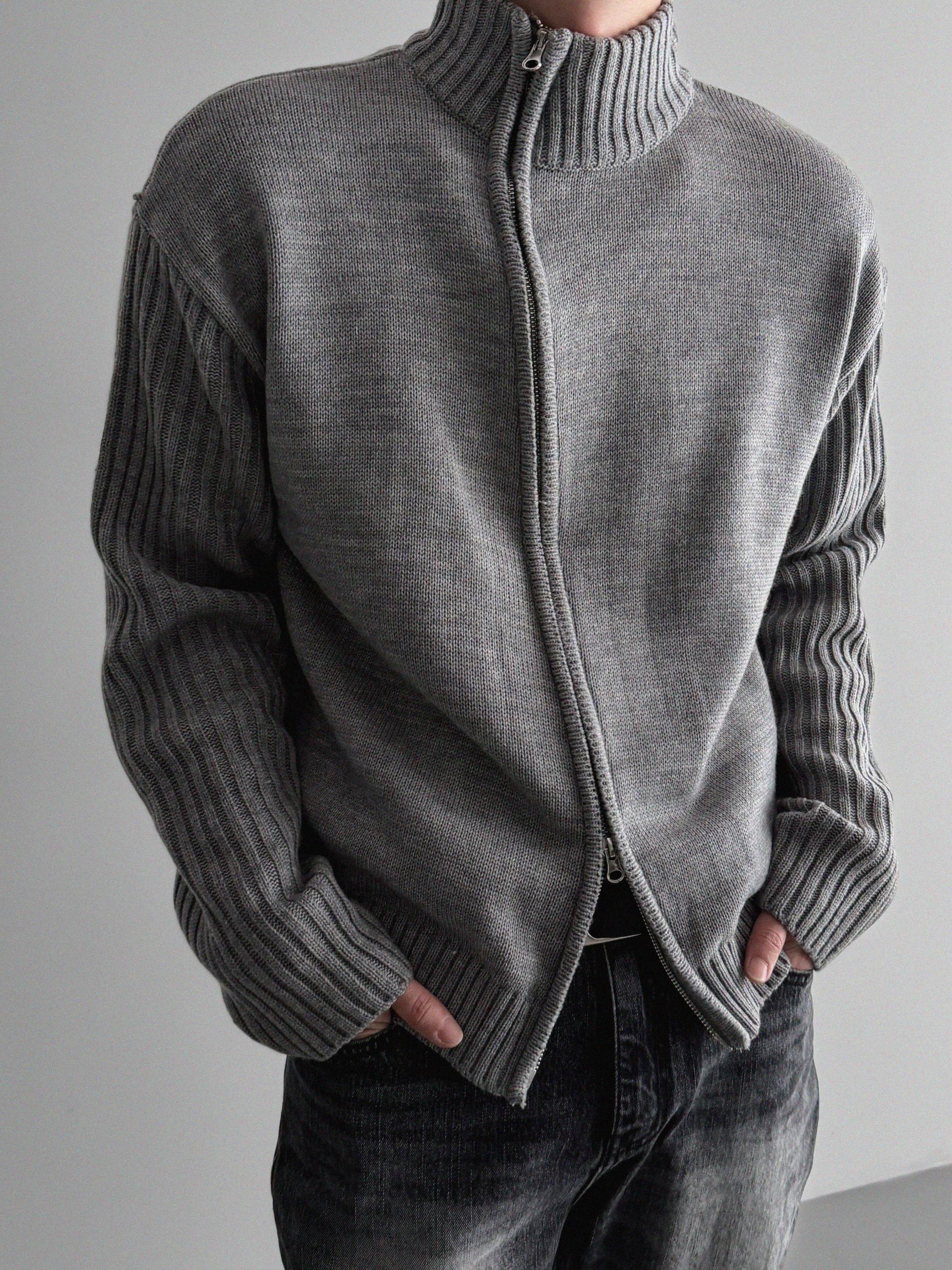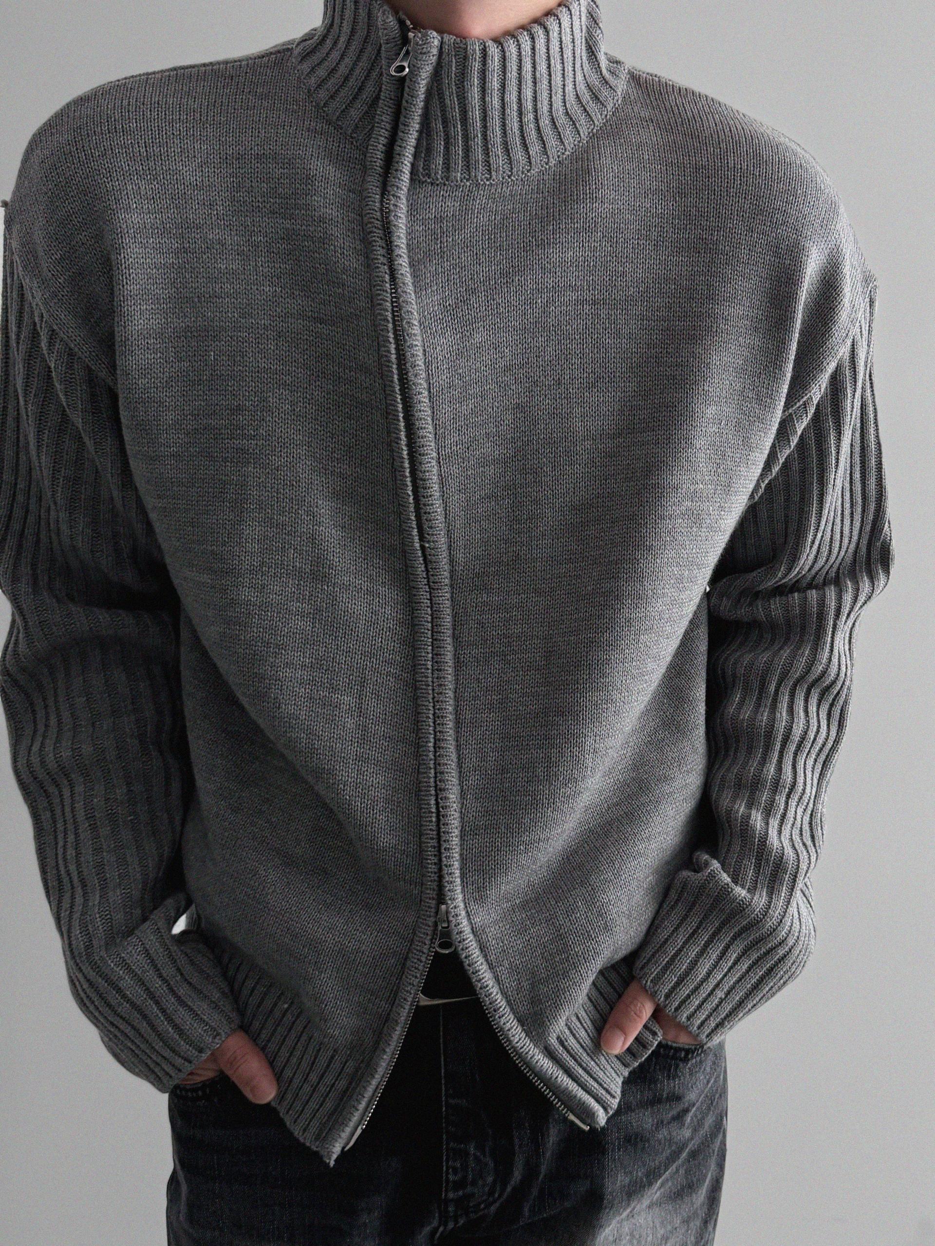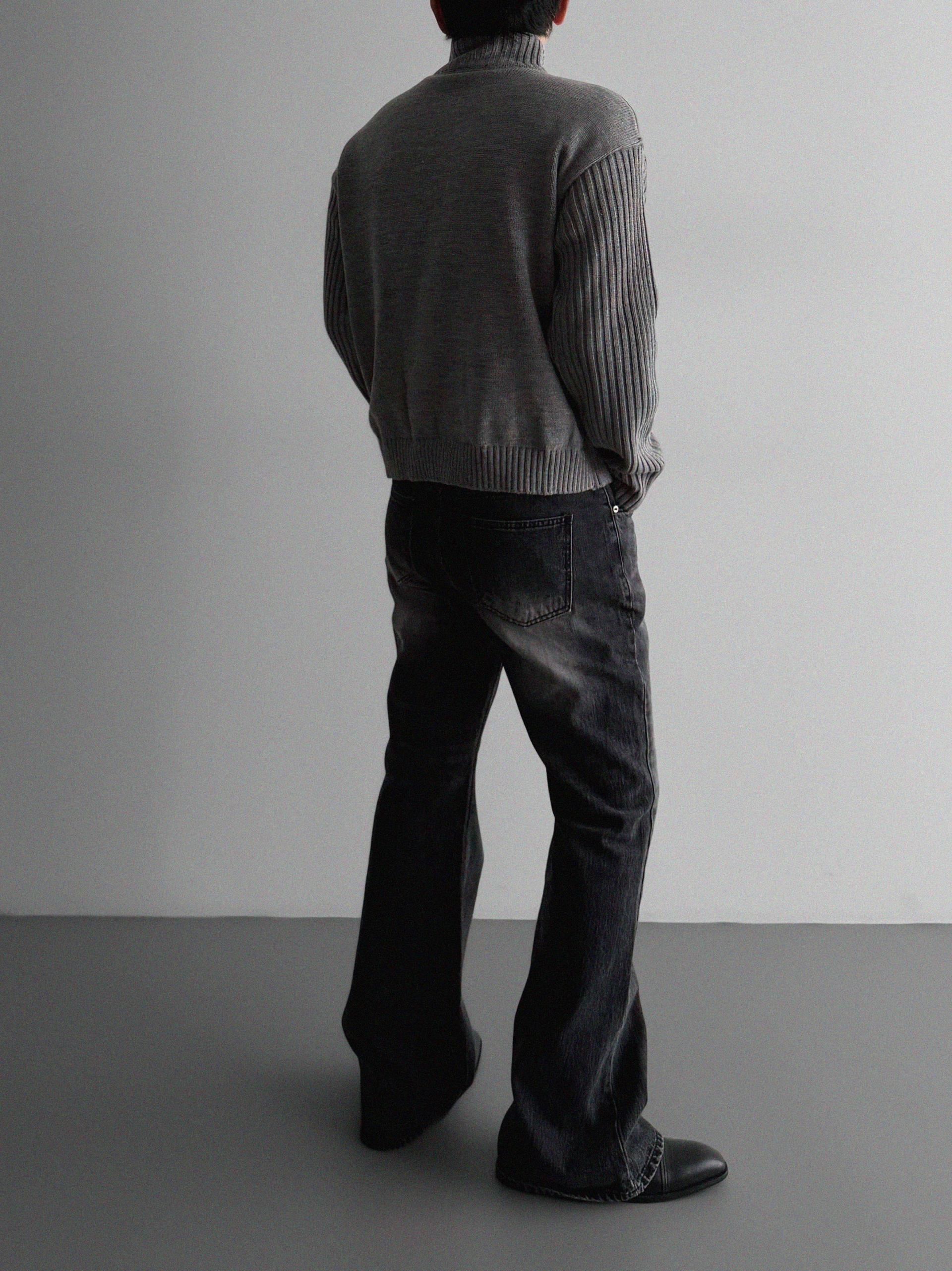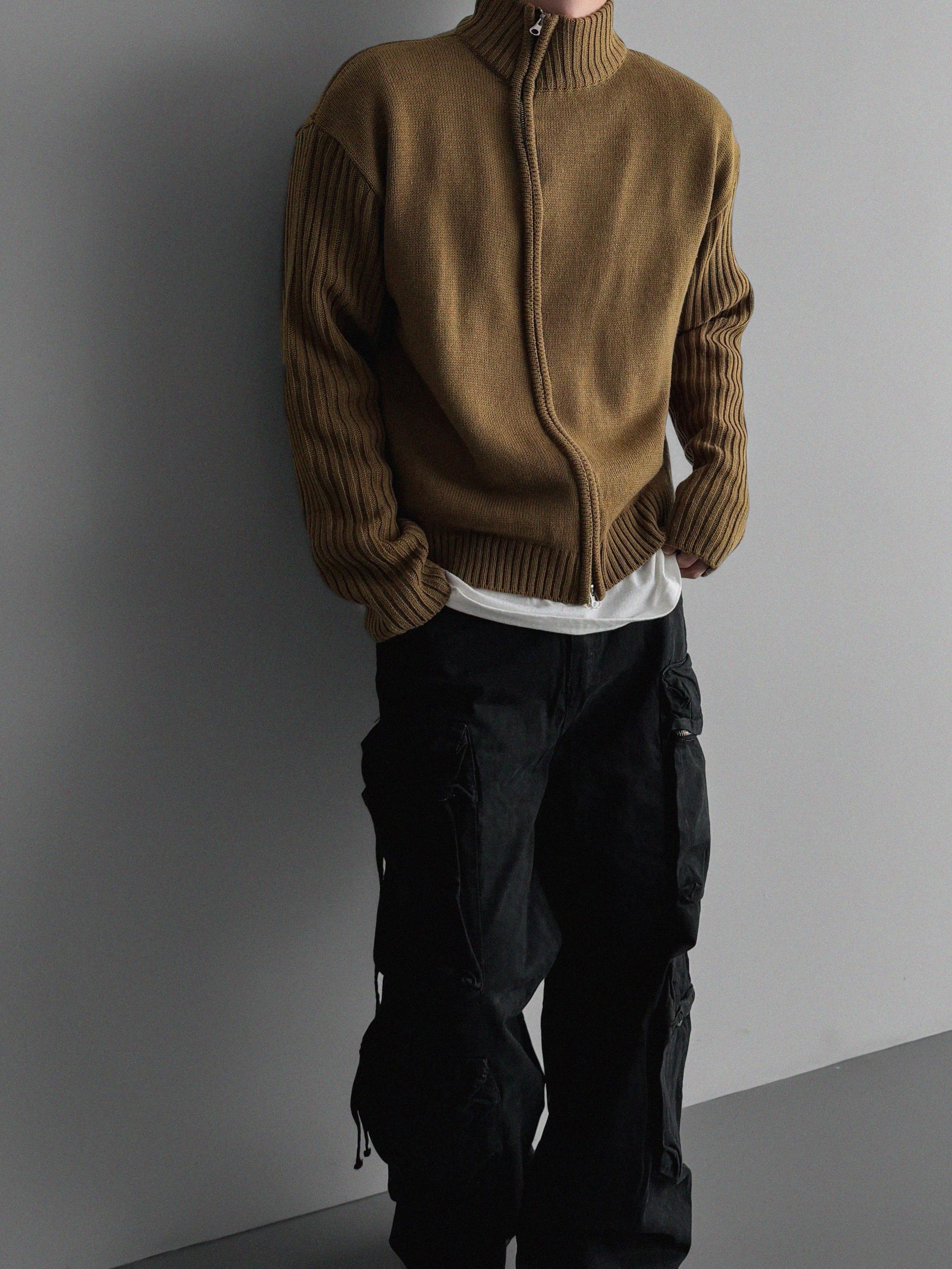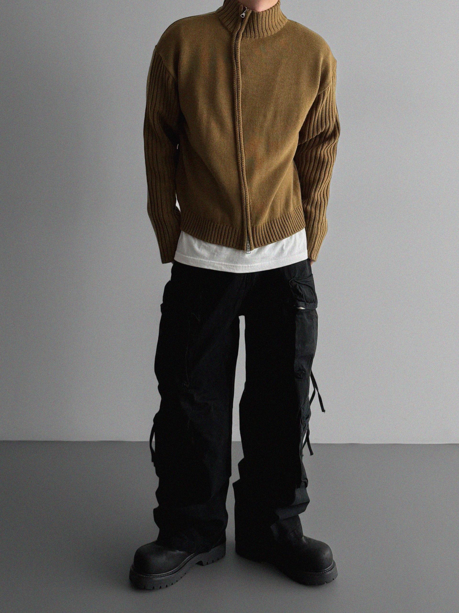 - 하이넥, 슬리브, 밑단 스트라이프 시보리