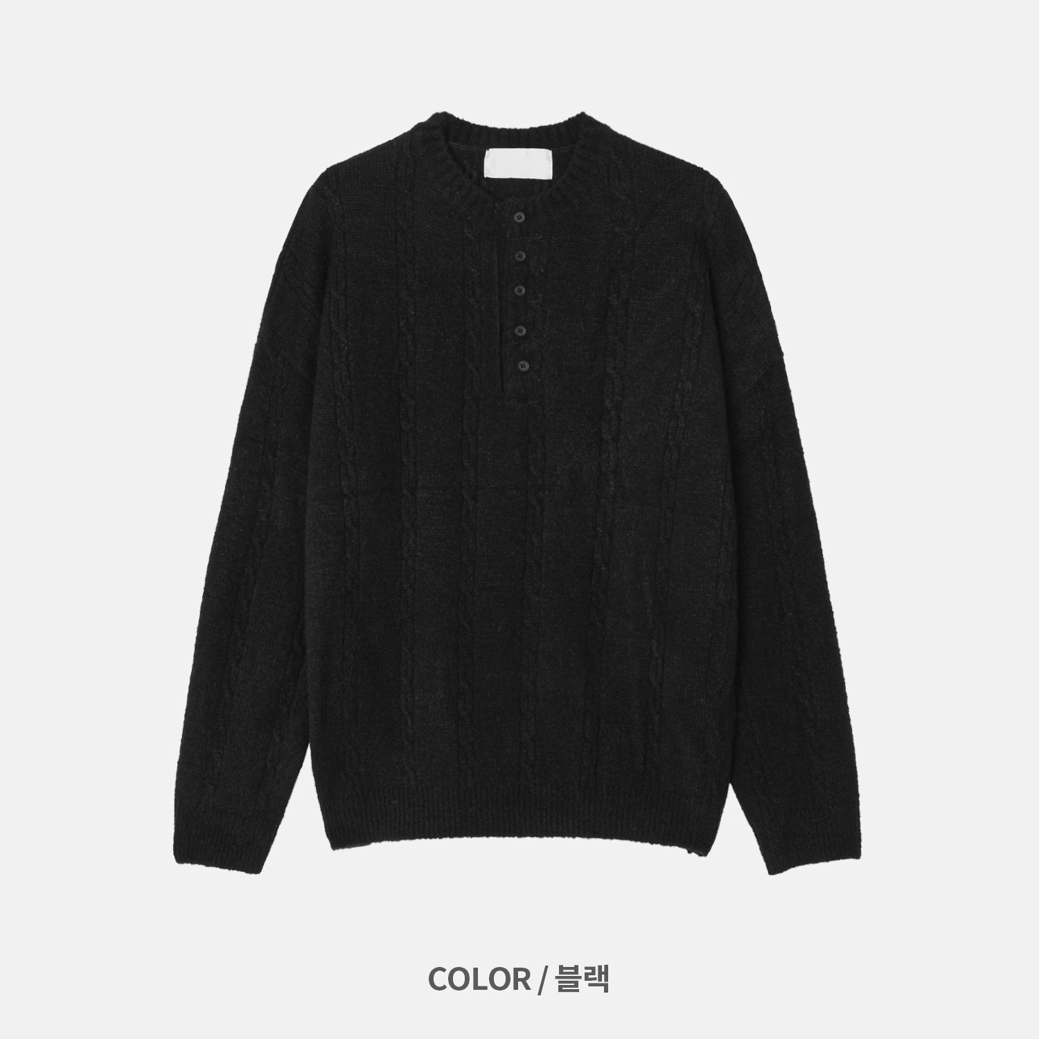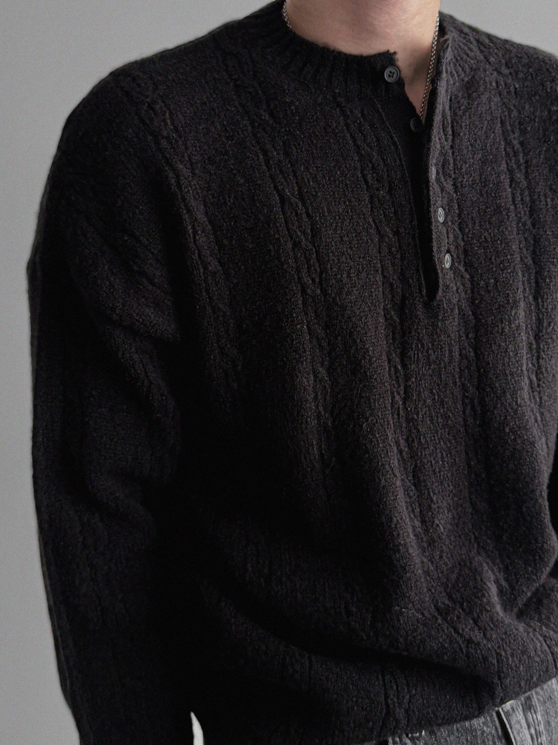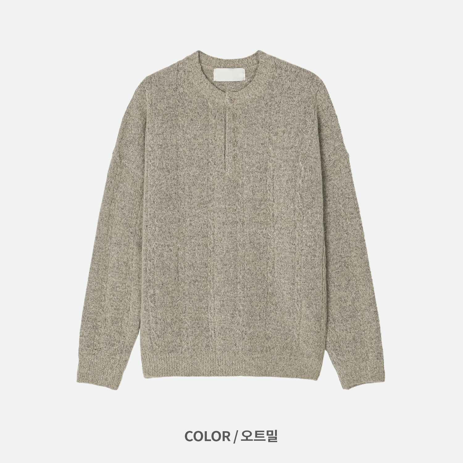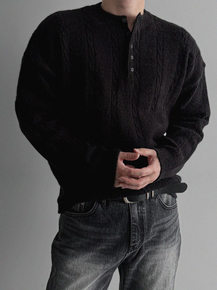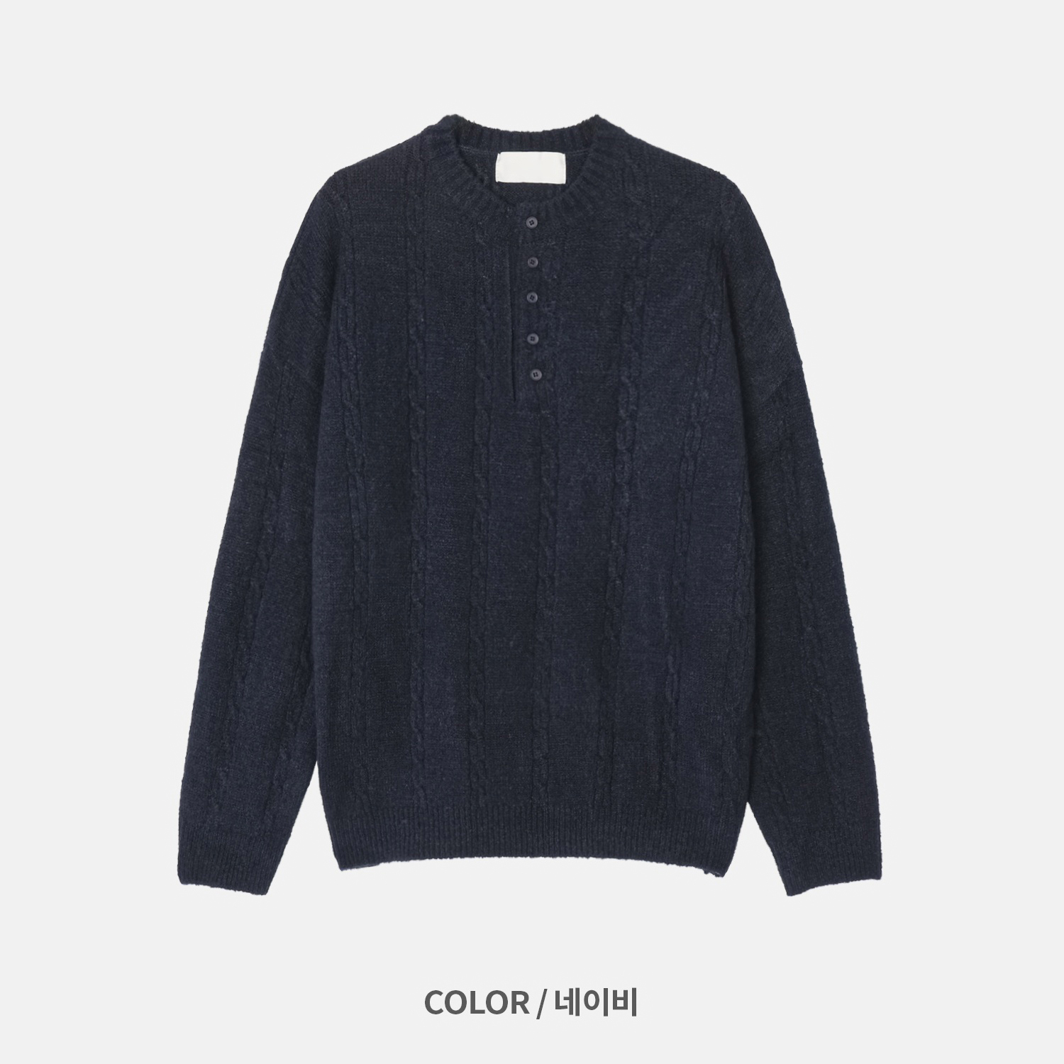 무드 케이블 헨리넥 니트