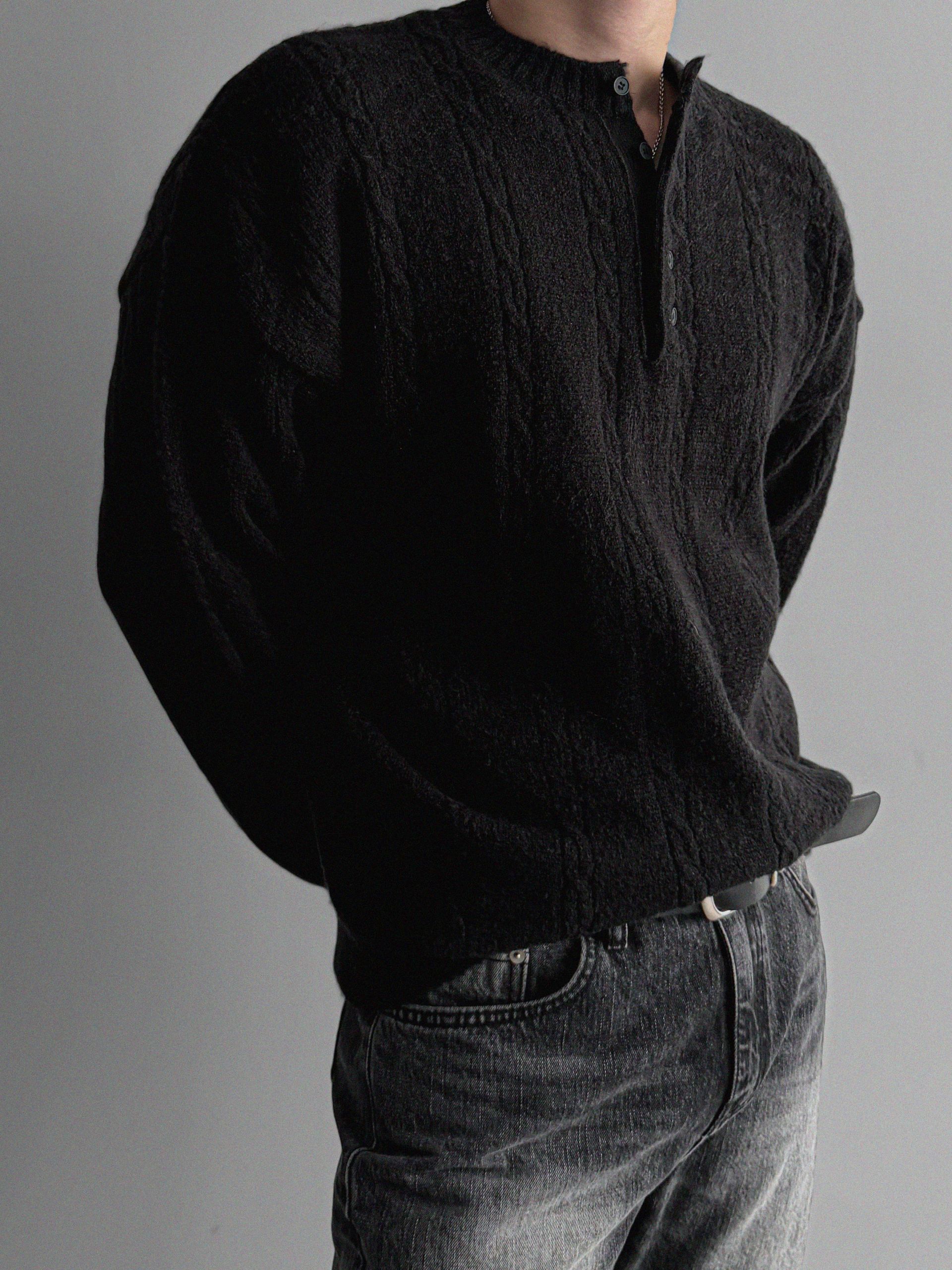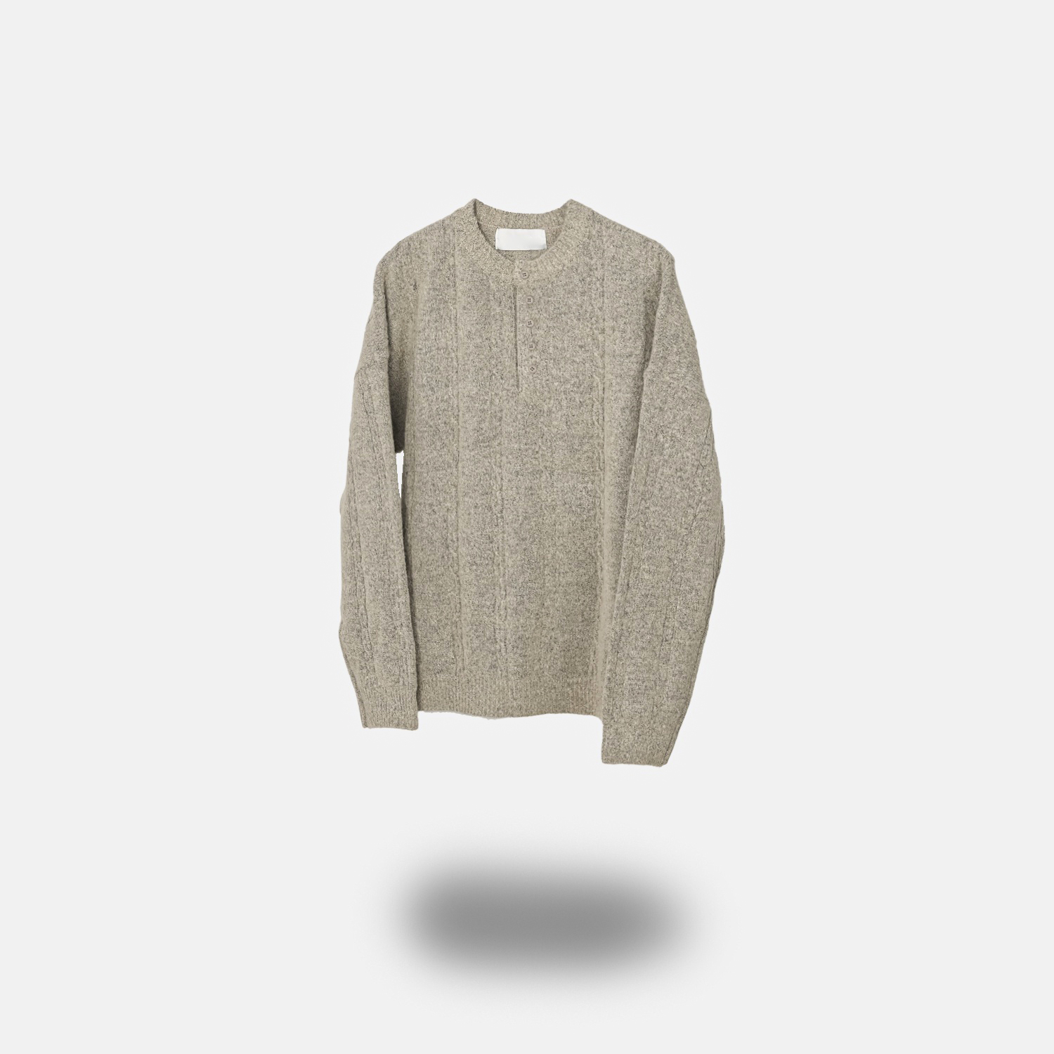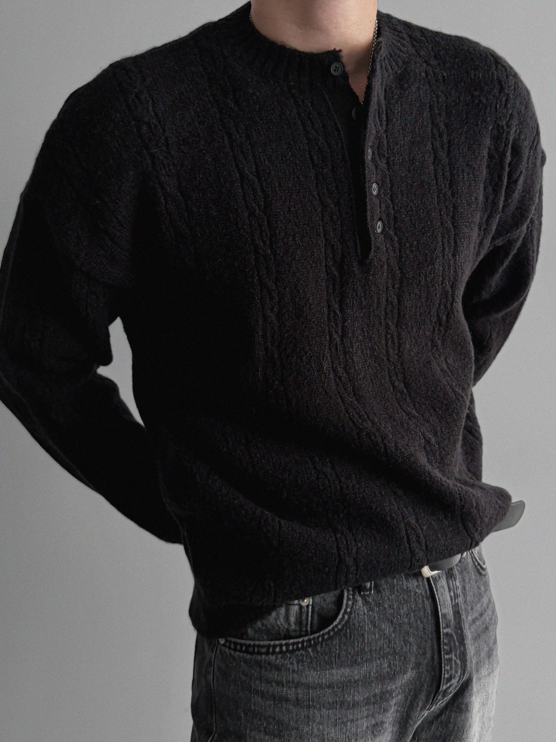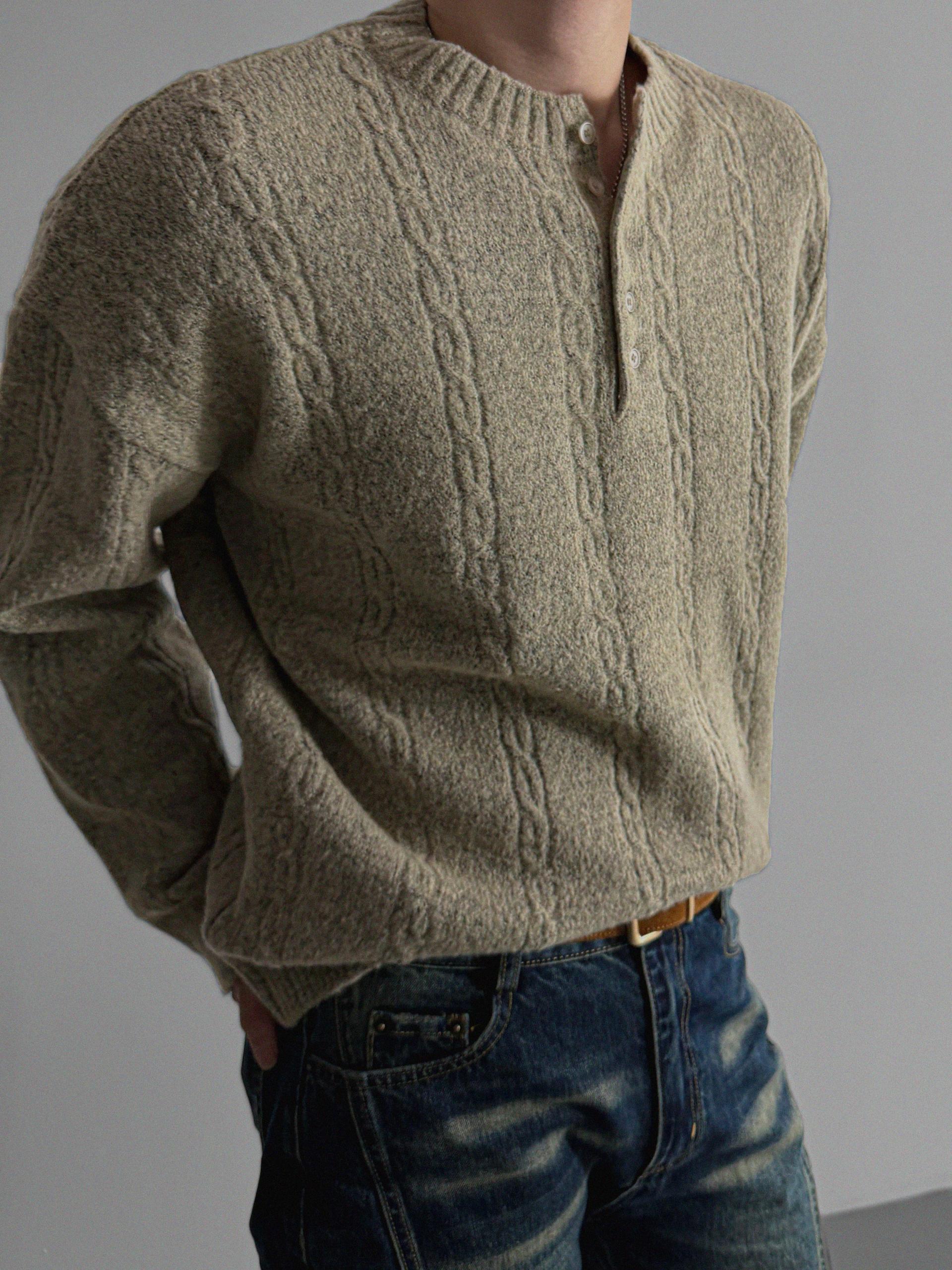 무드 케이블 헨리넥 니트