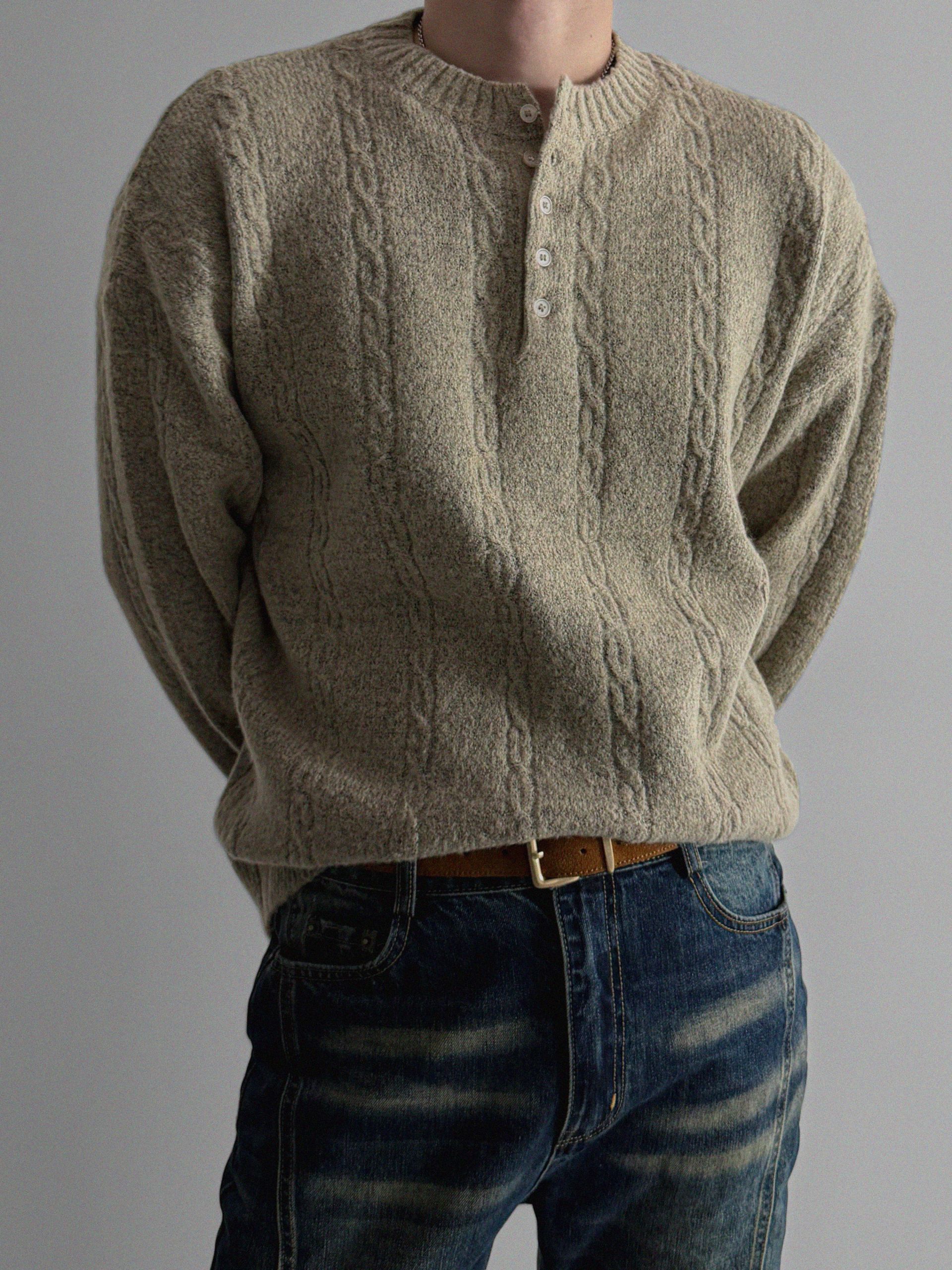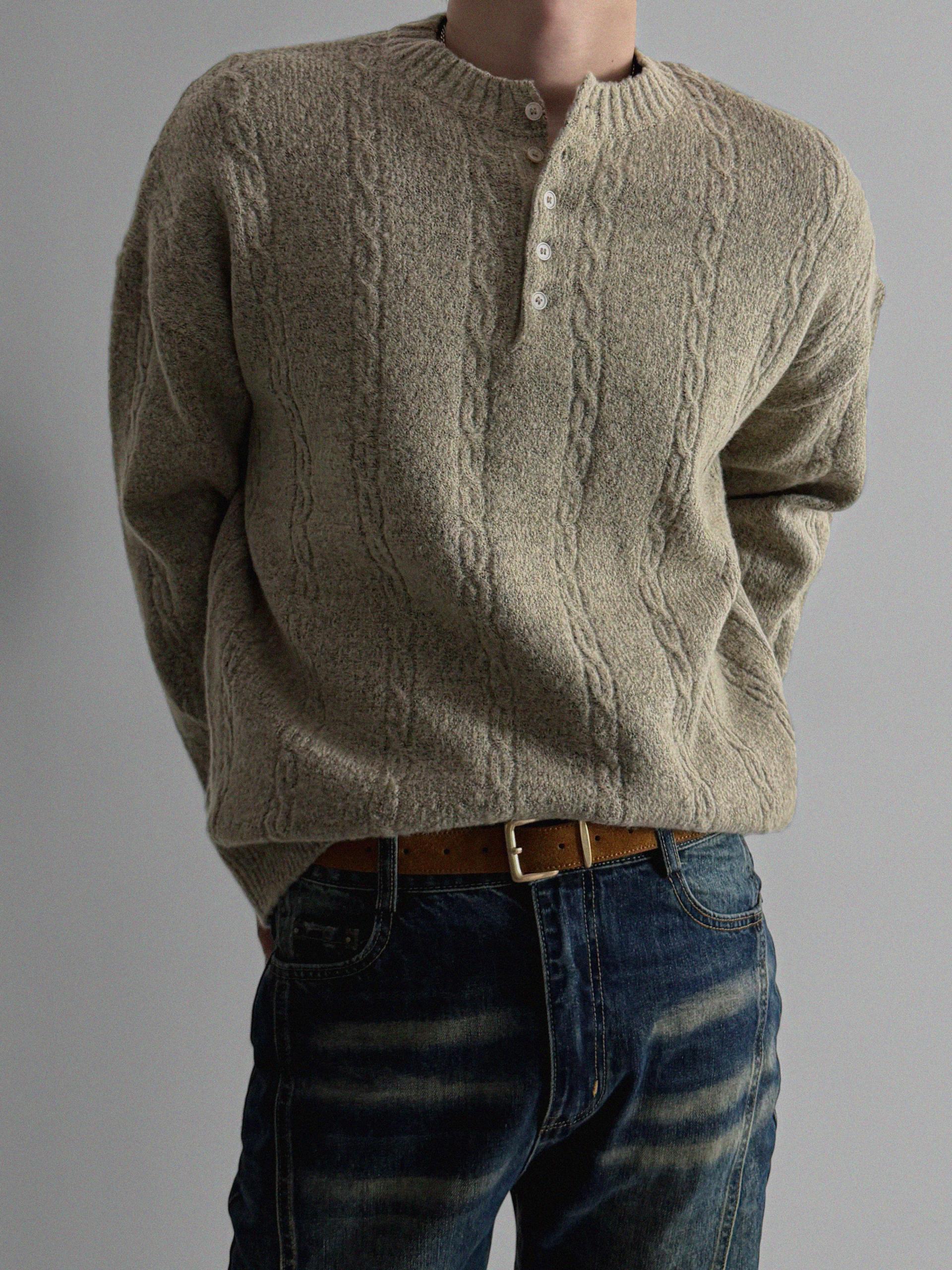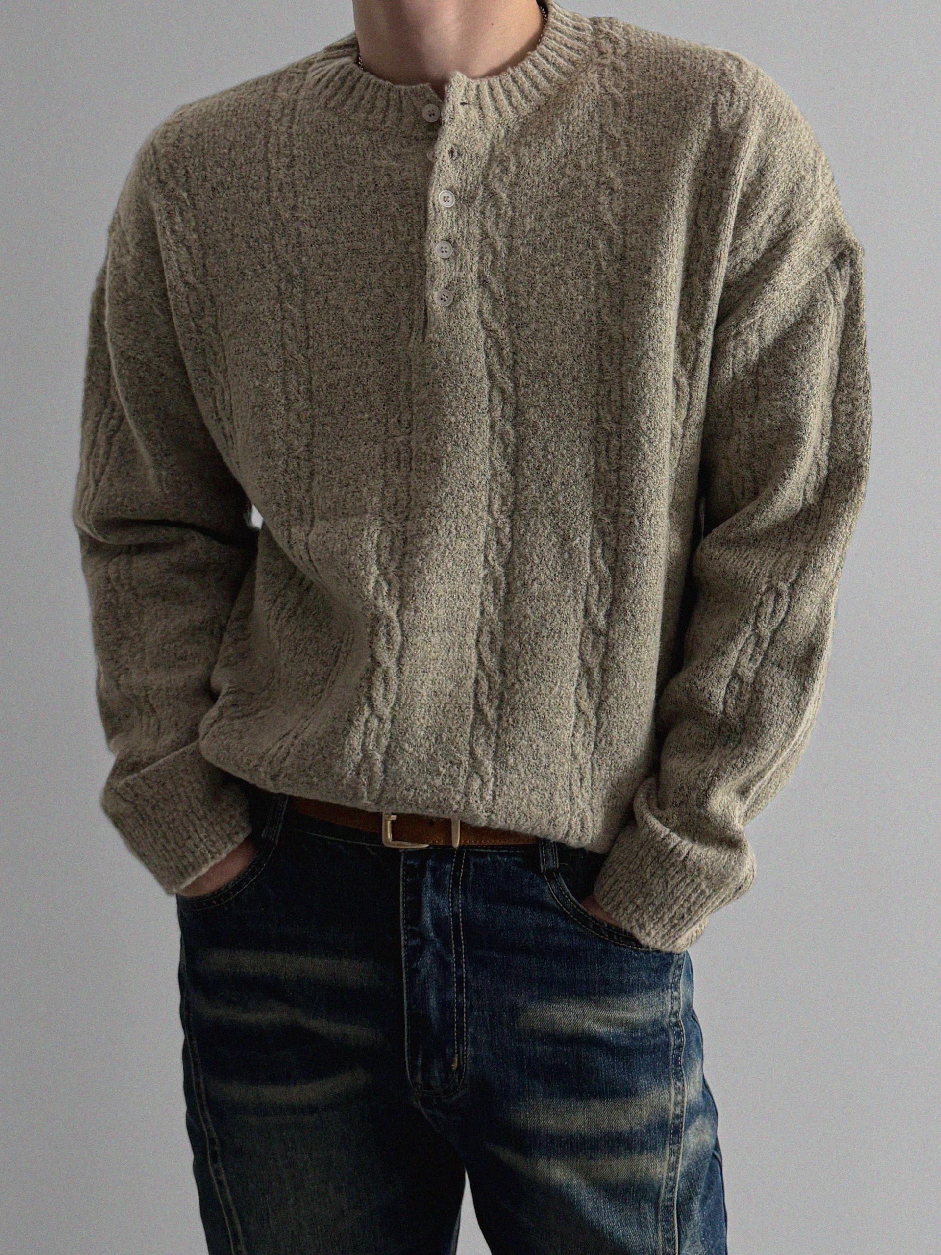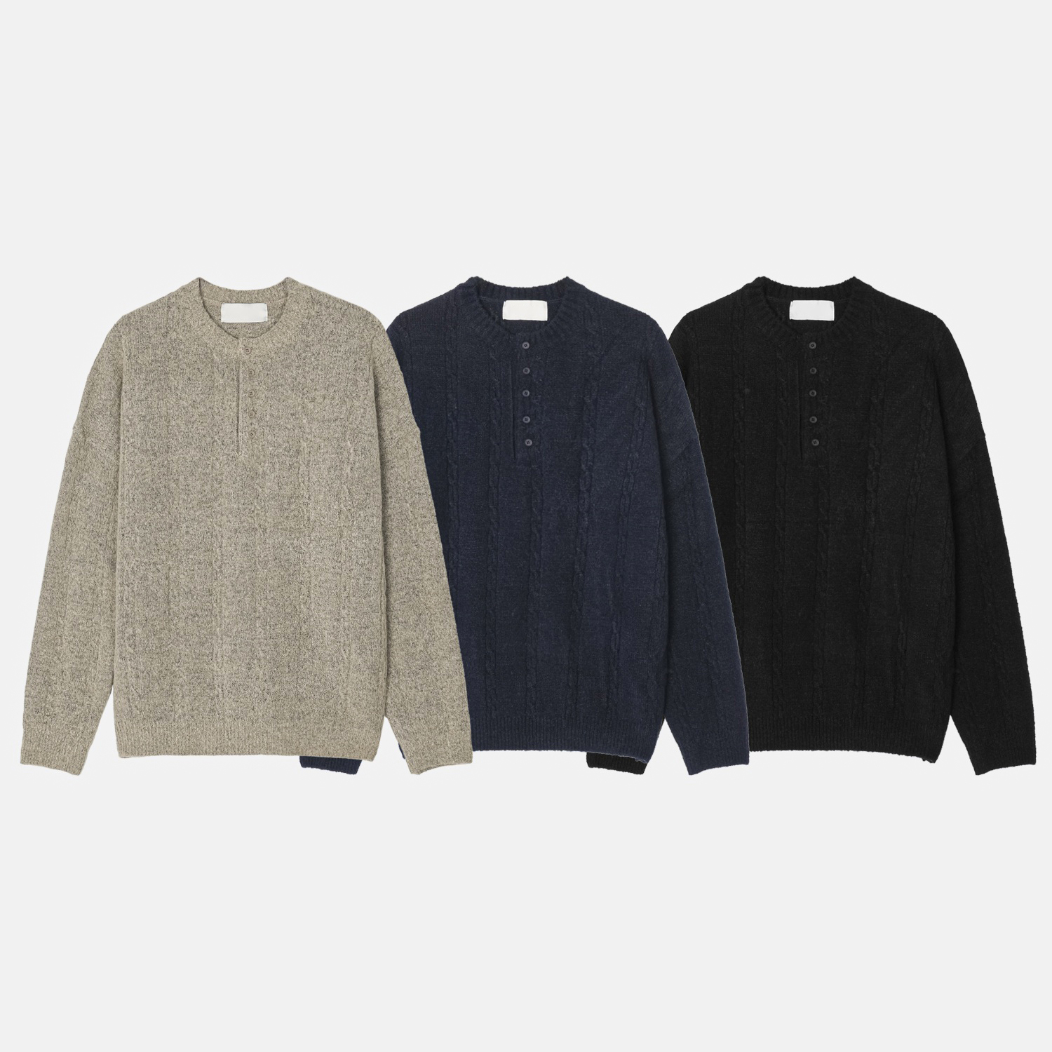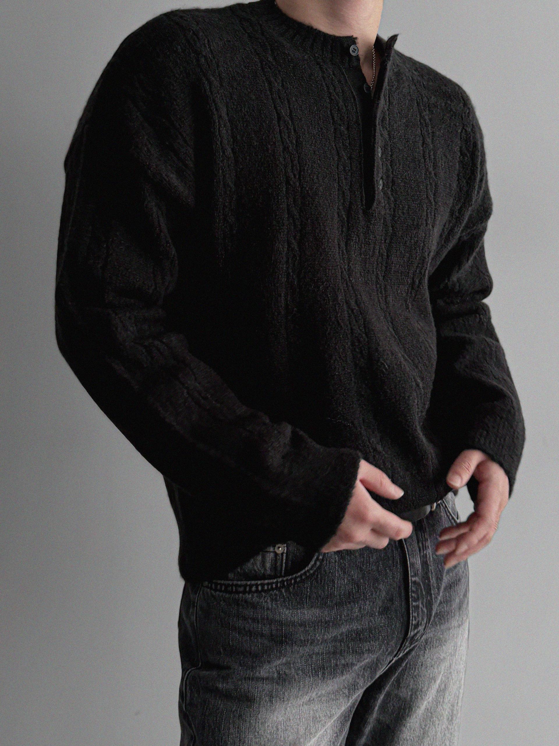 무드 케이블 헨리넥 니트