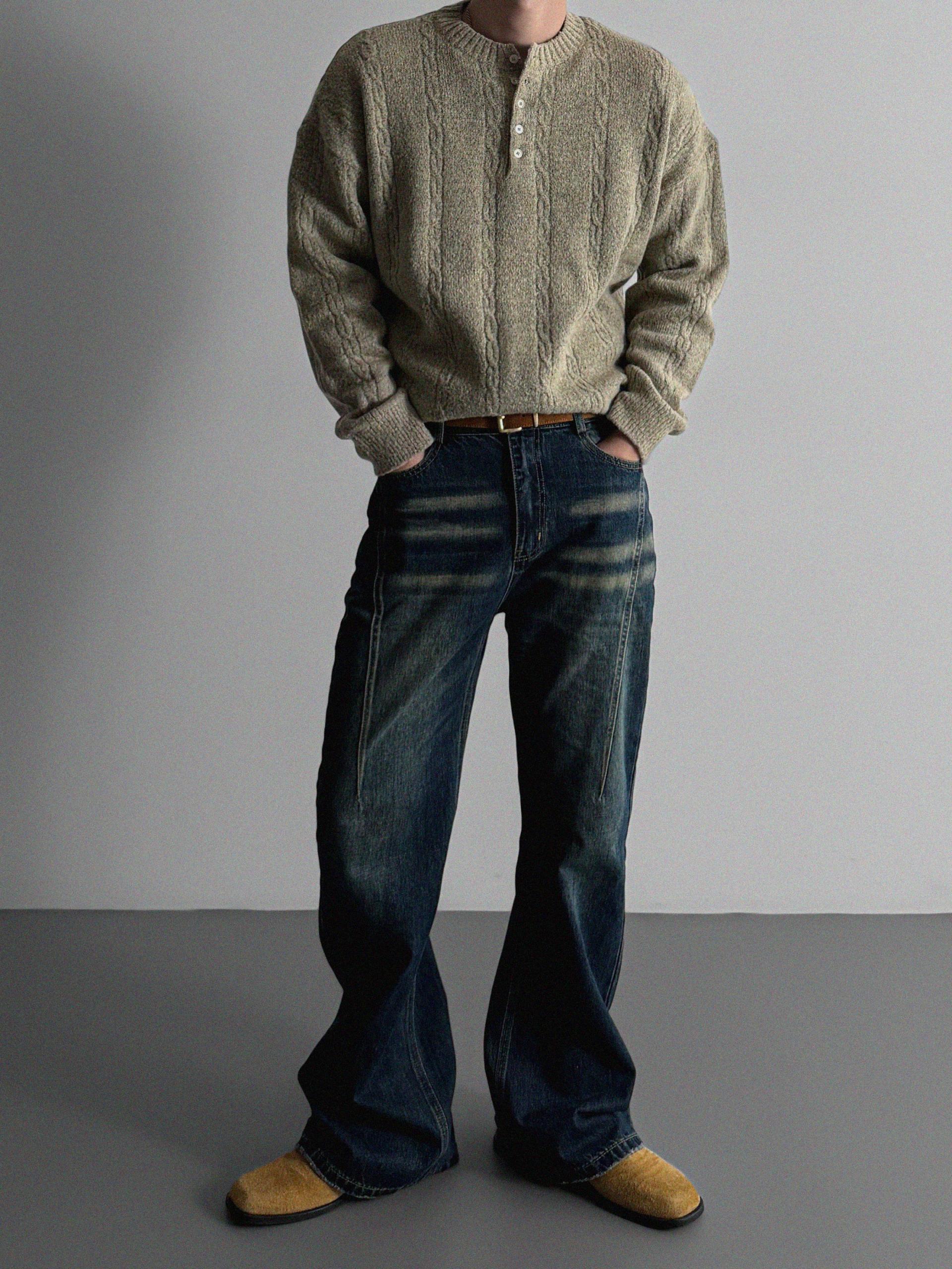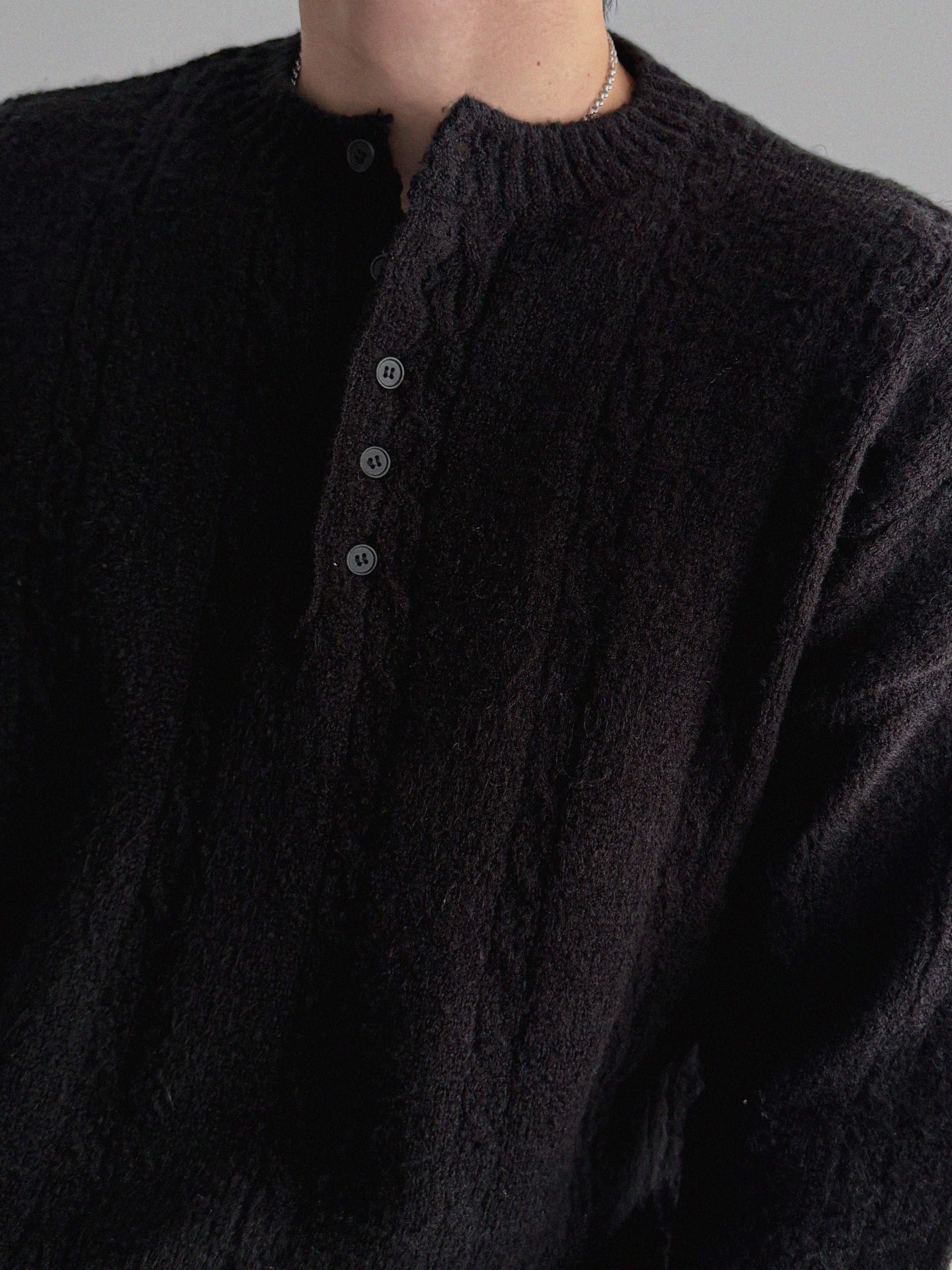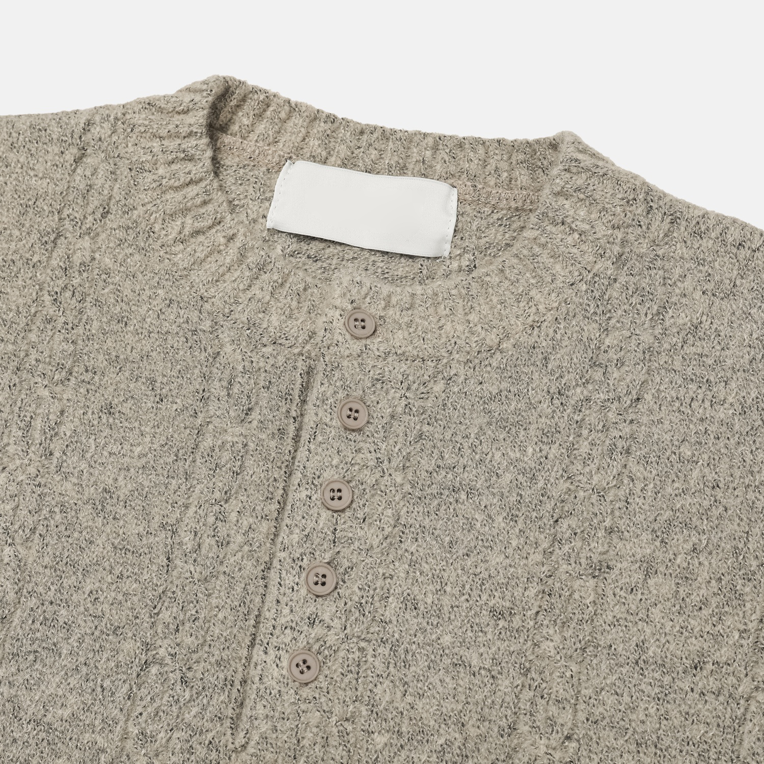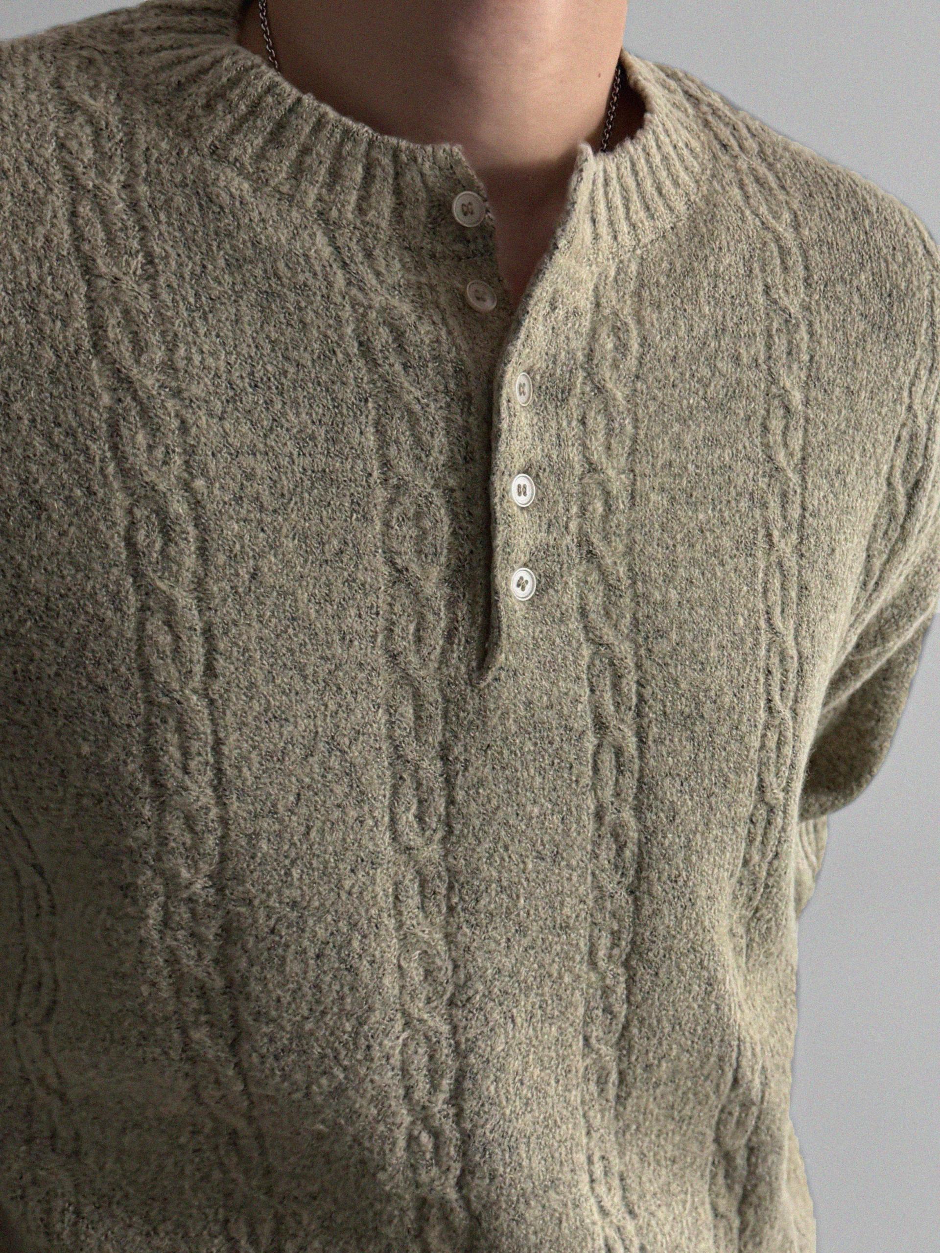 무드 케이블 헨리넥 니트