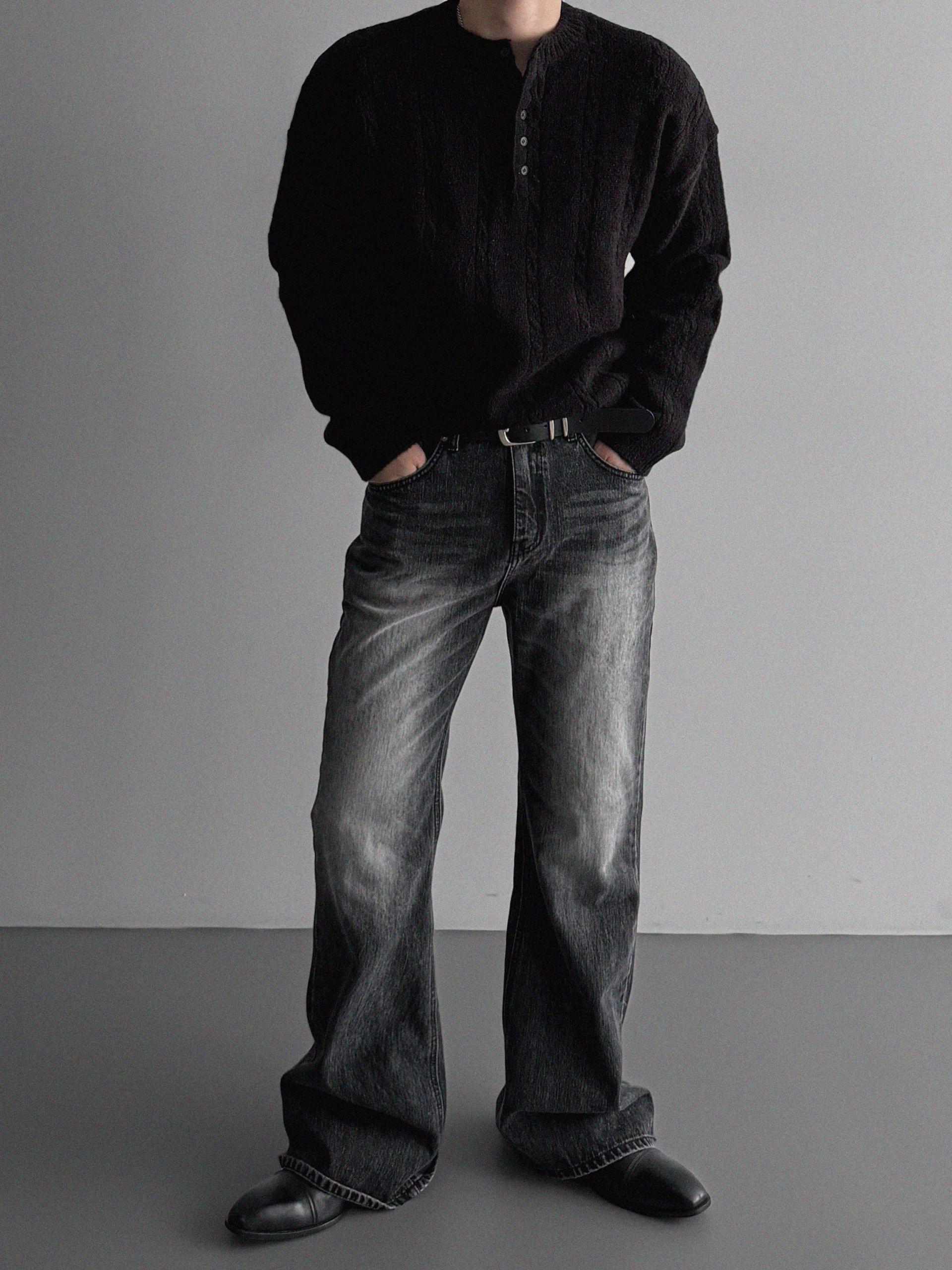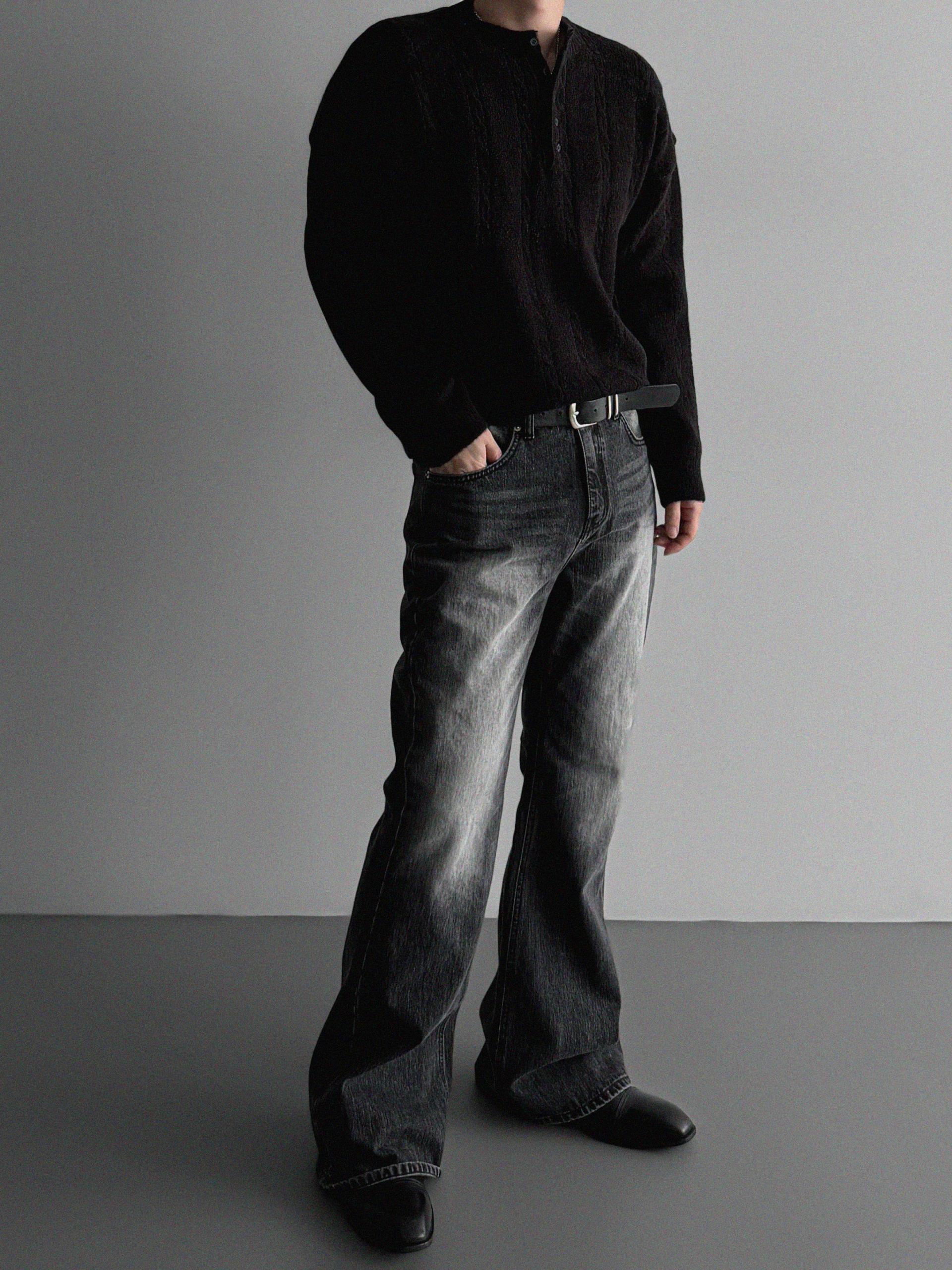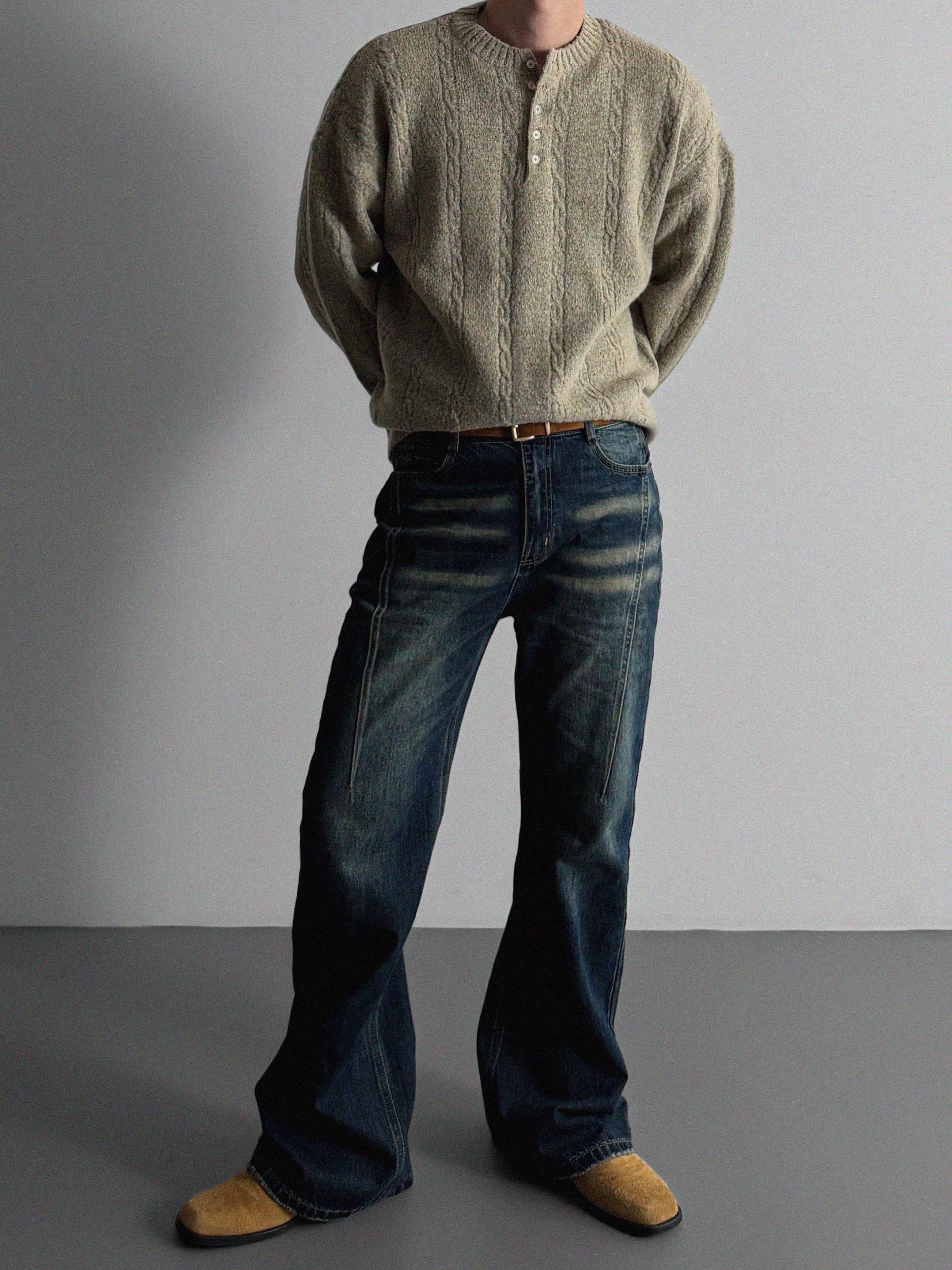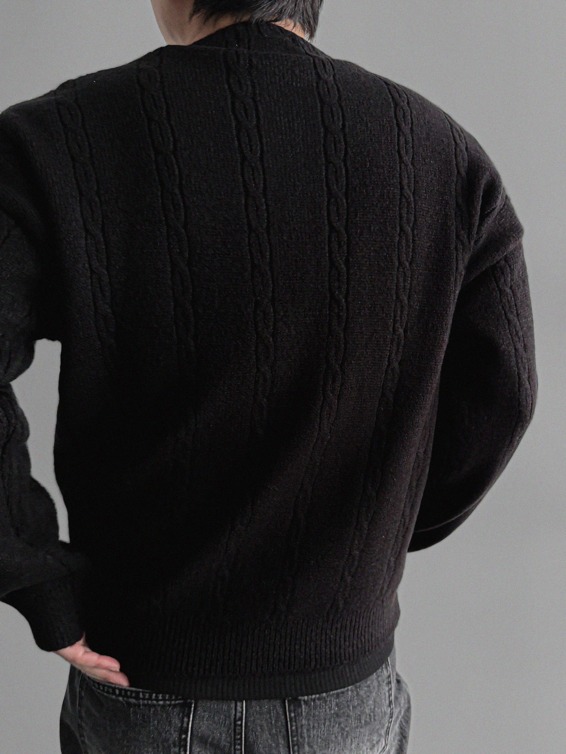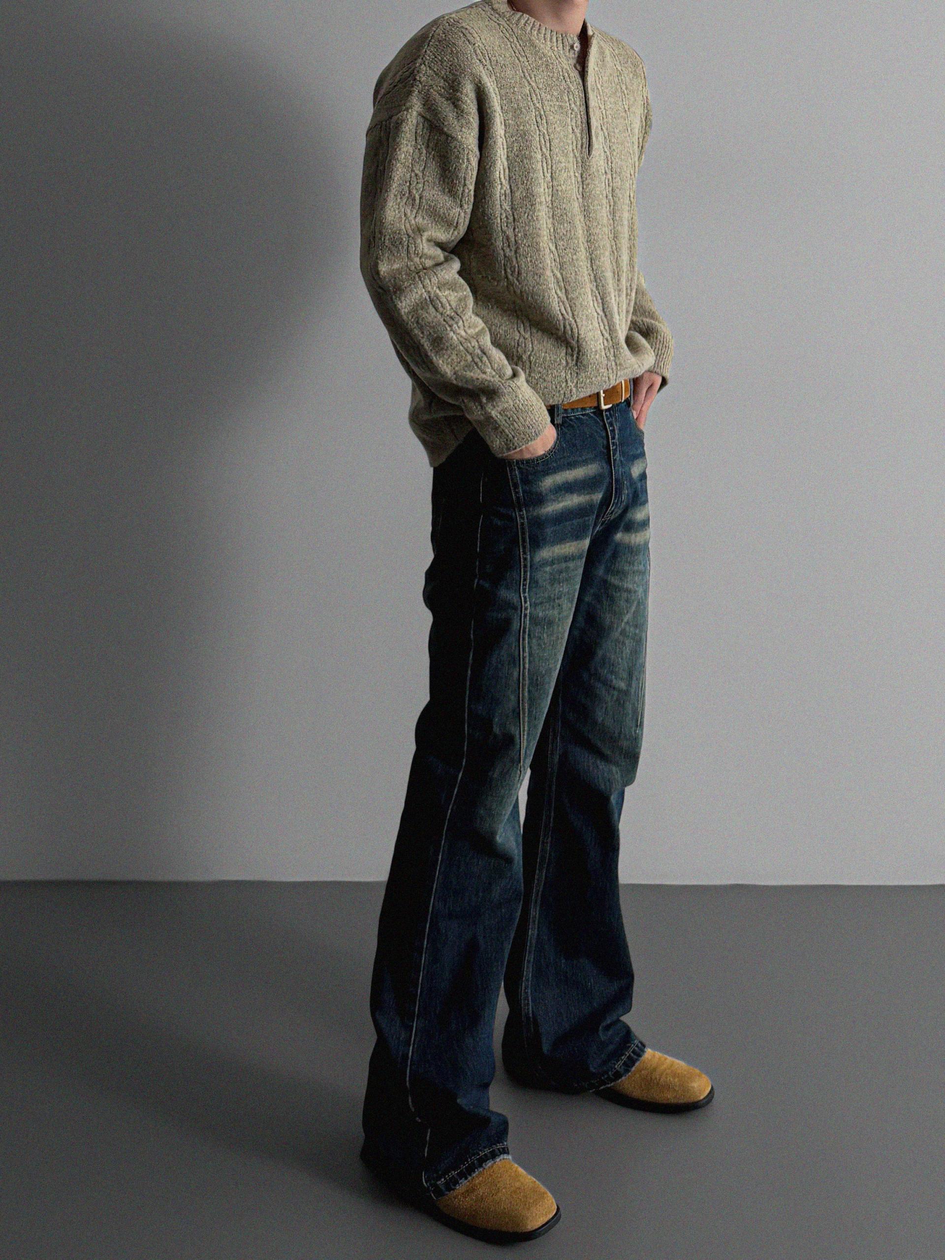 무드 케이블 헨리넥 니트