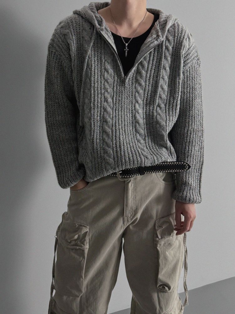 헤이즐 하프 집업 후드 니트