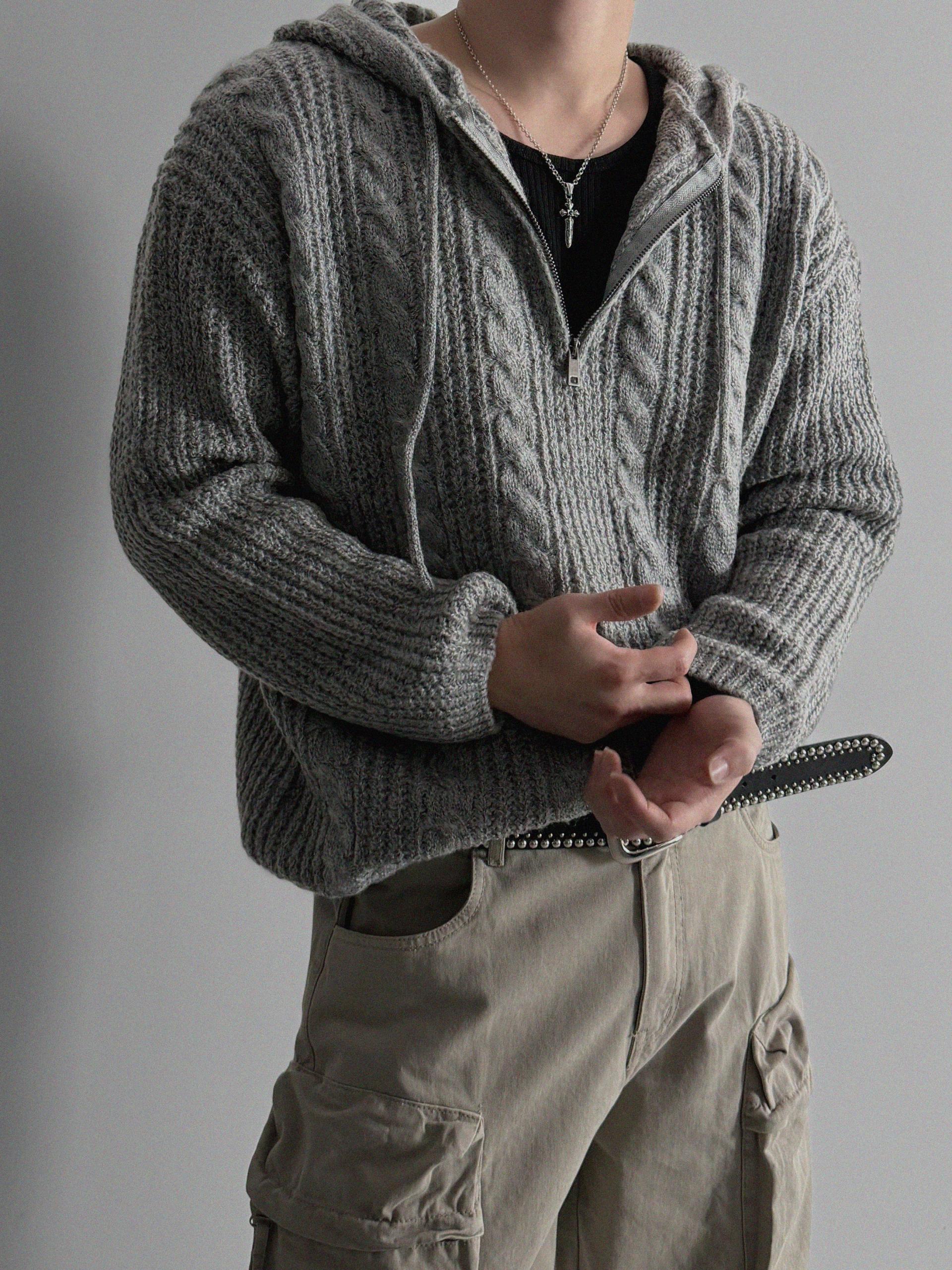 -케이블 패턴과 고밀도 니트 짜임 텍스처