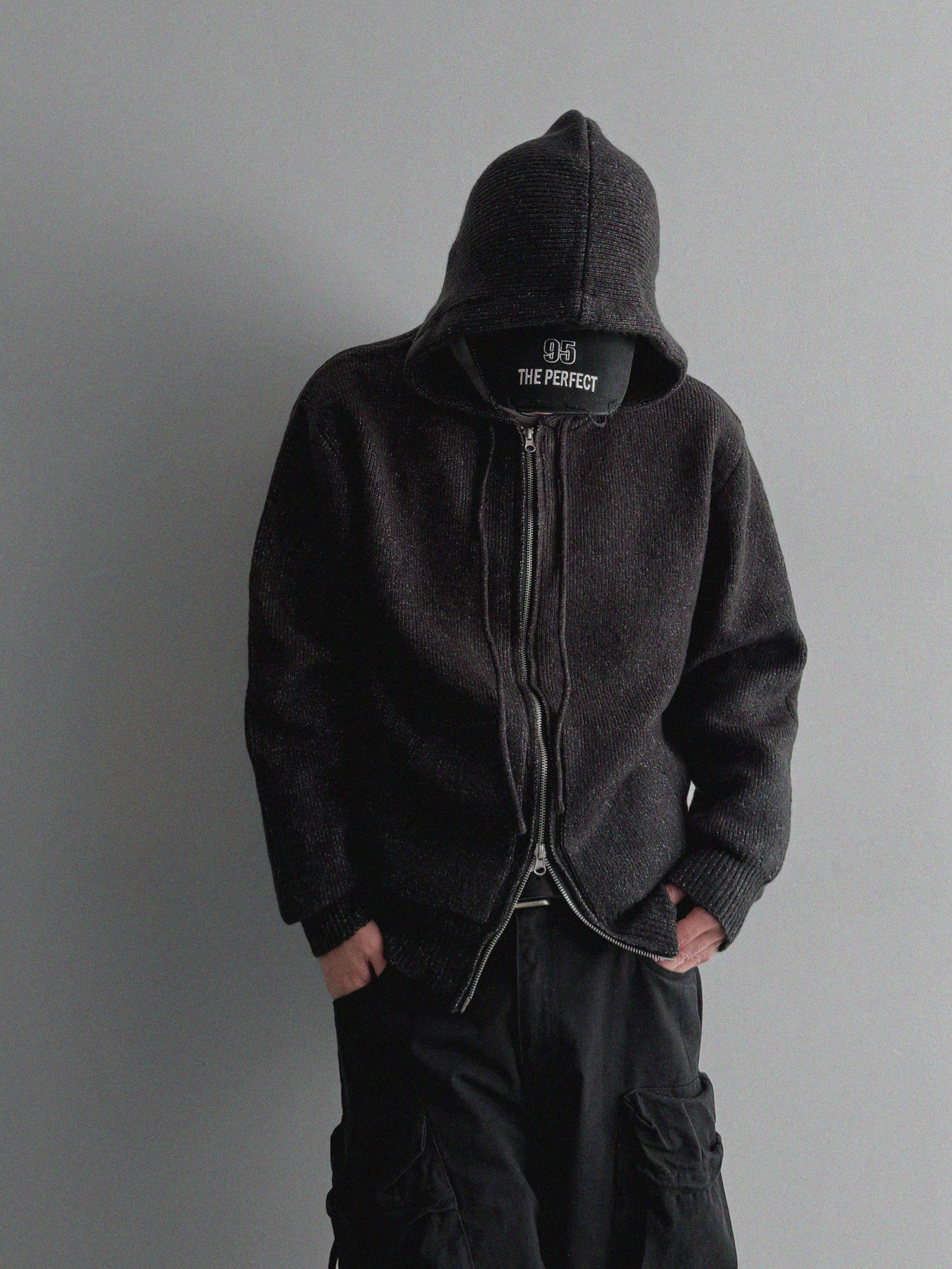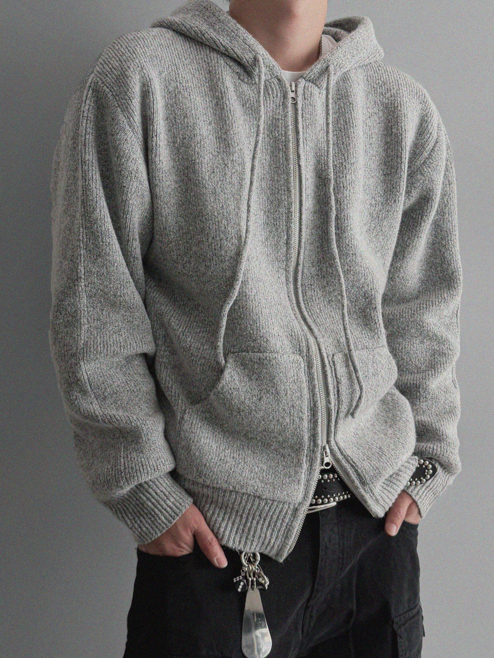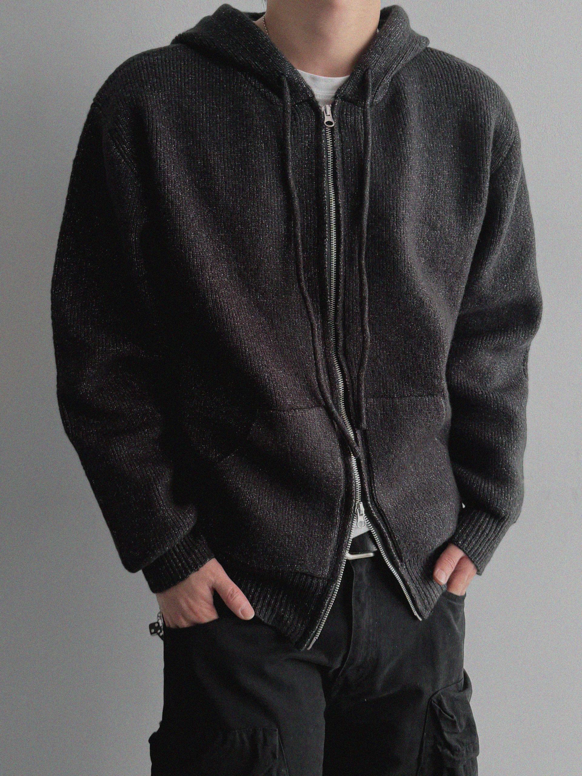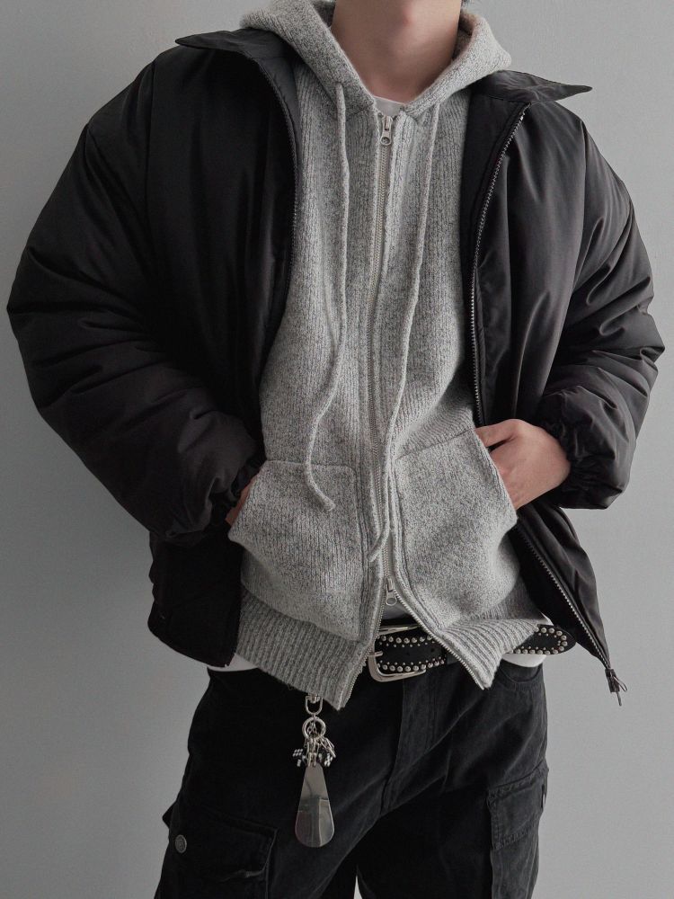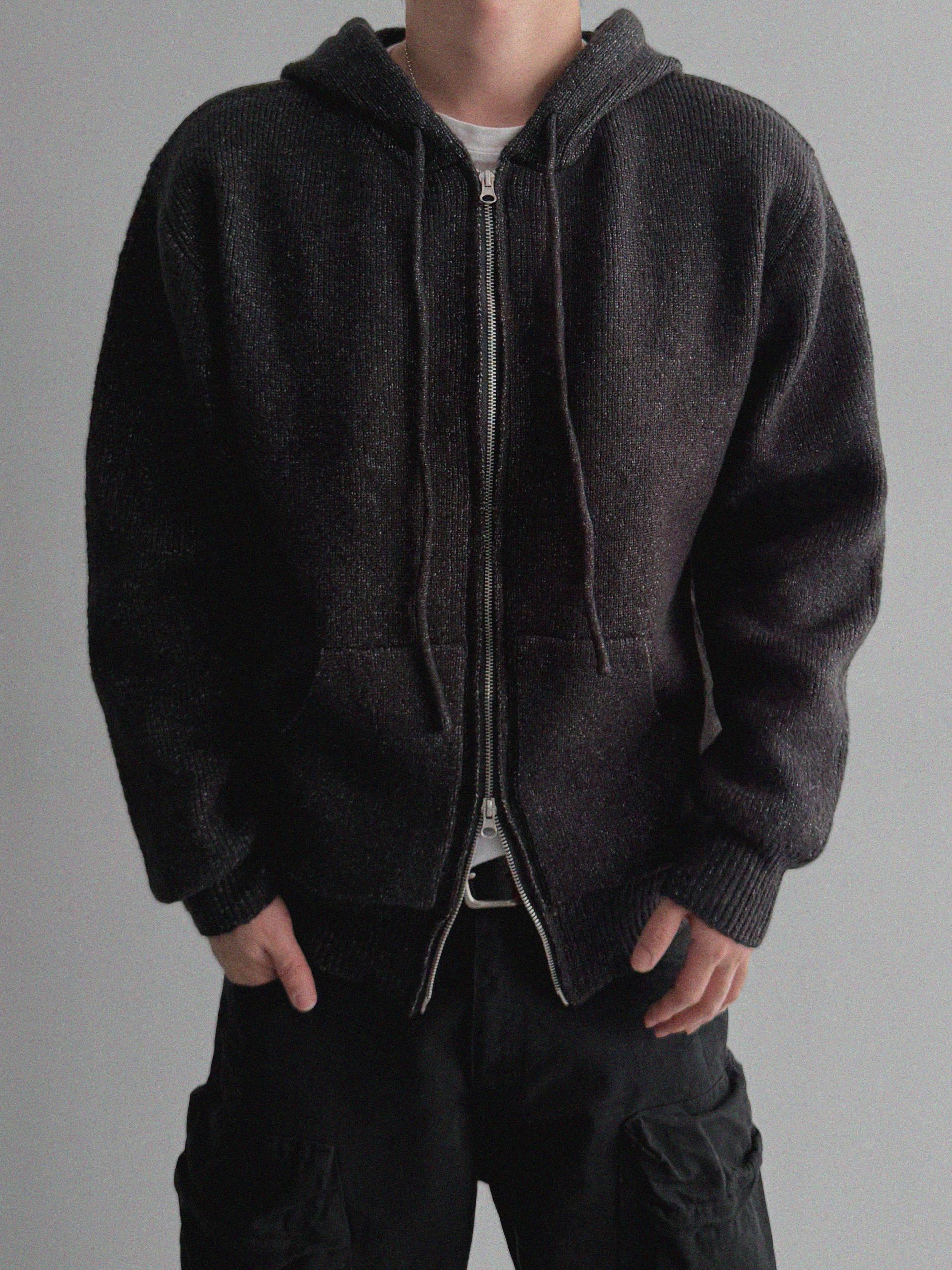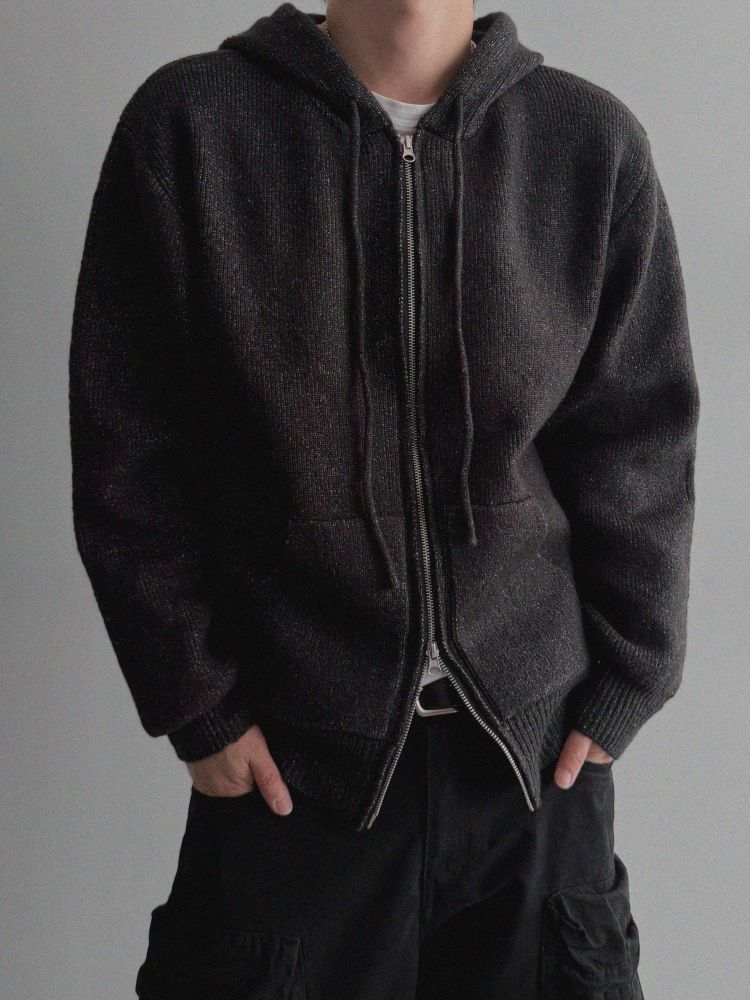 슬로건 니트 집업