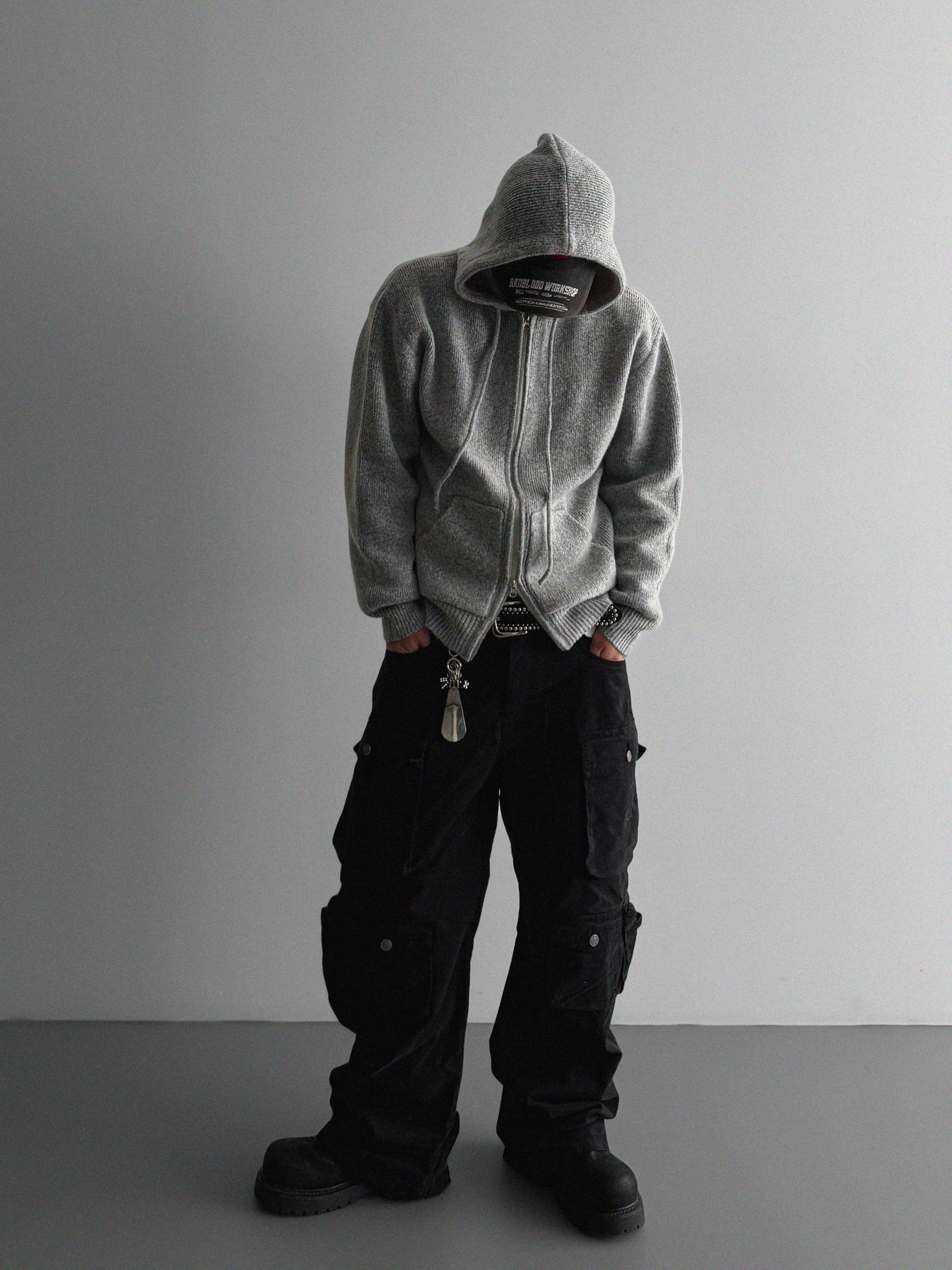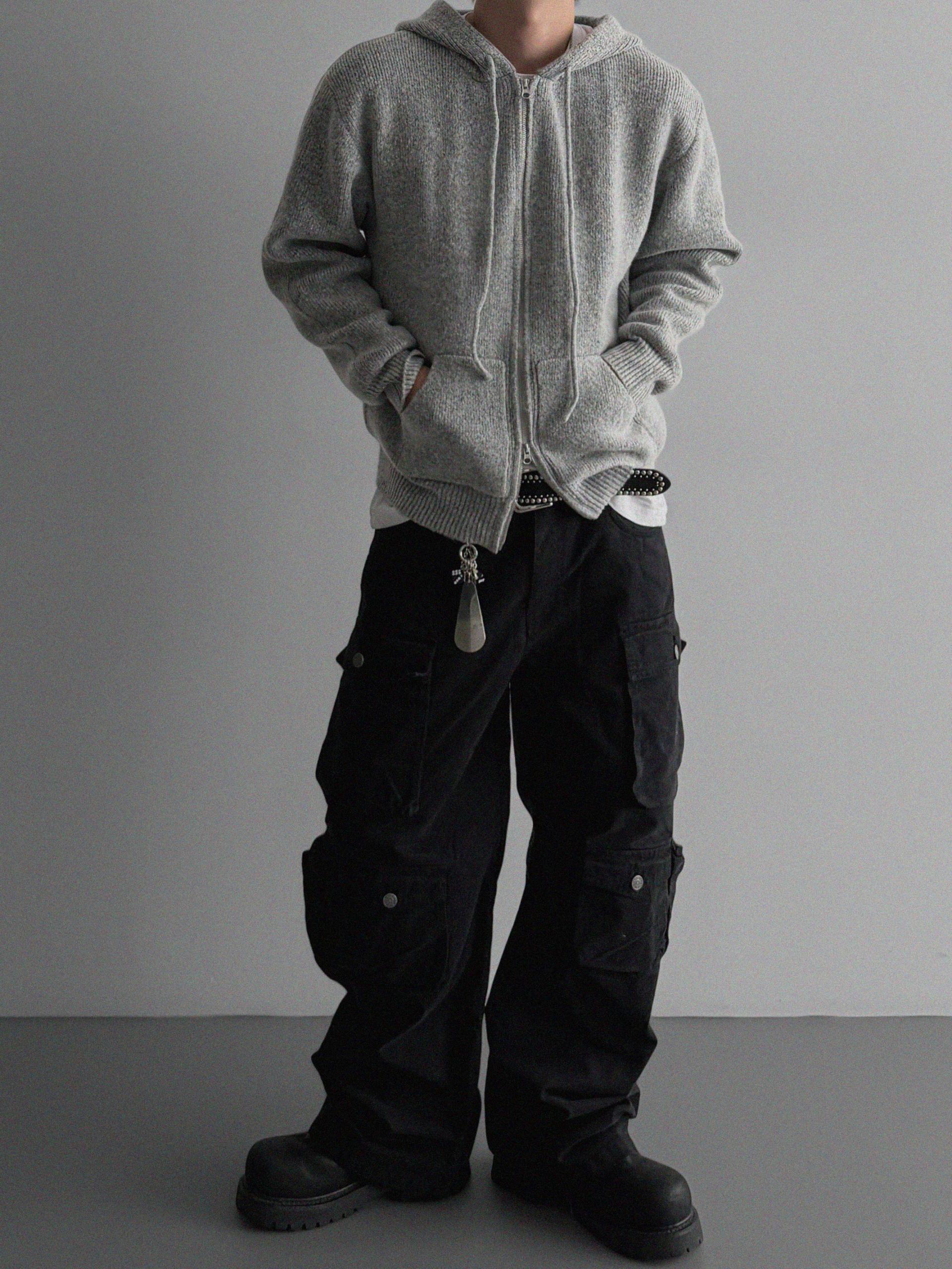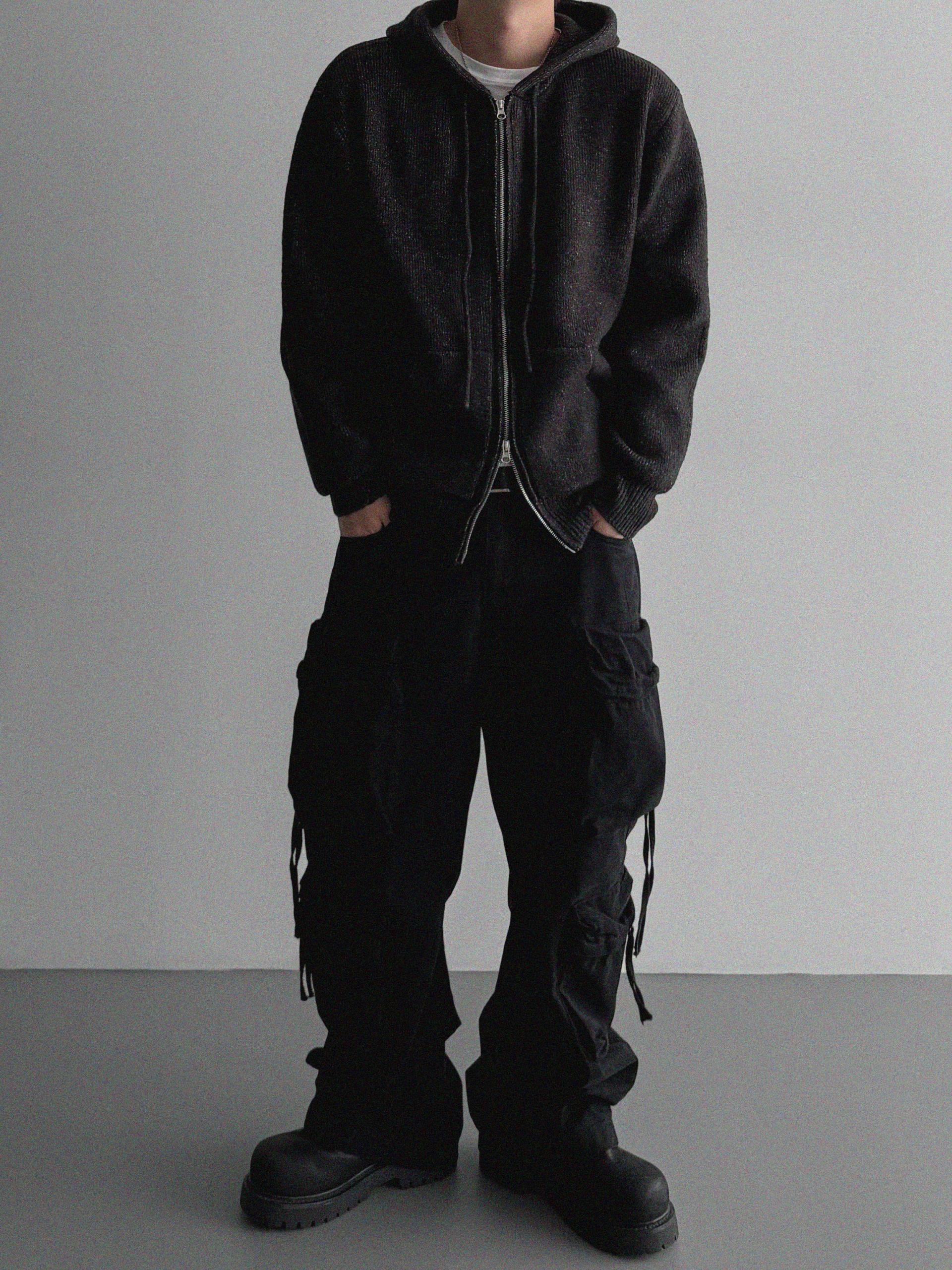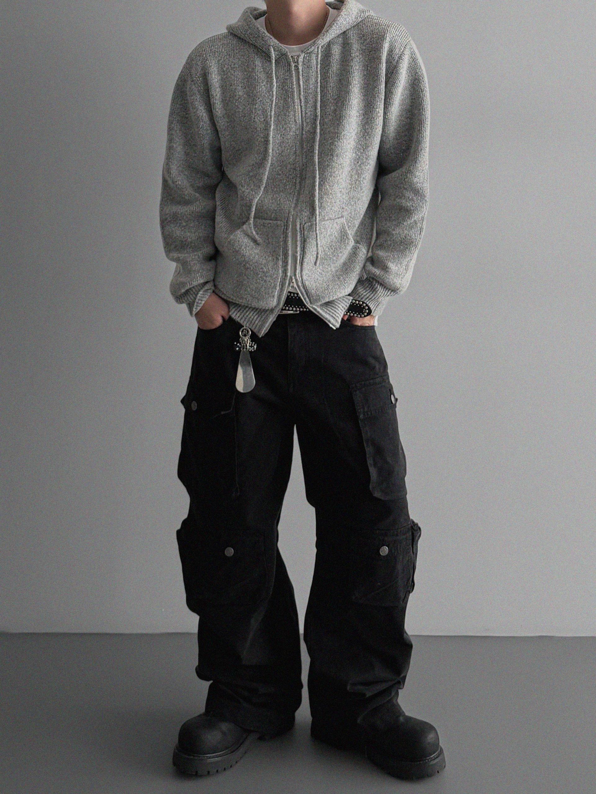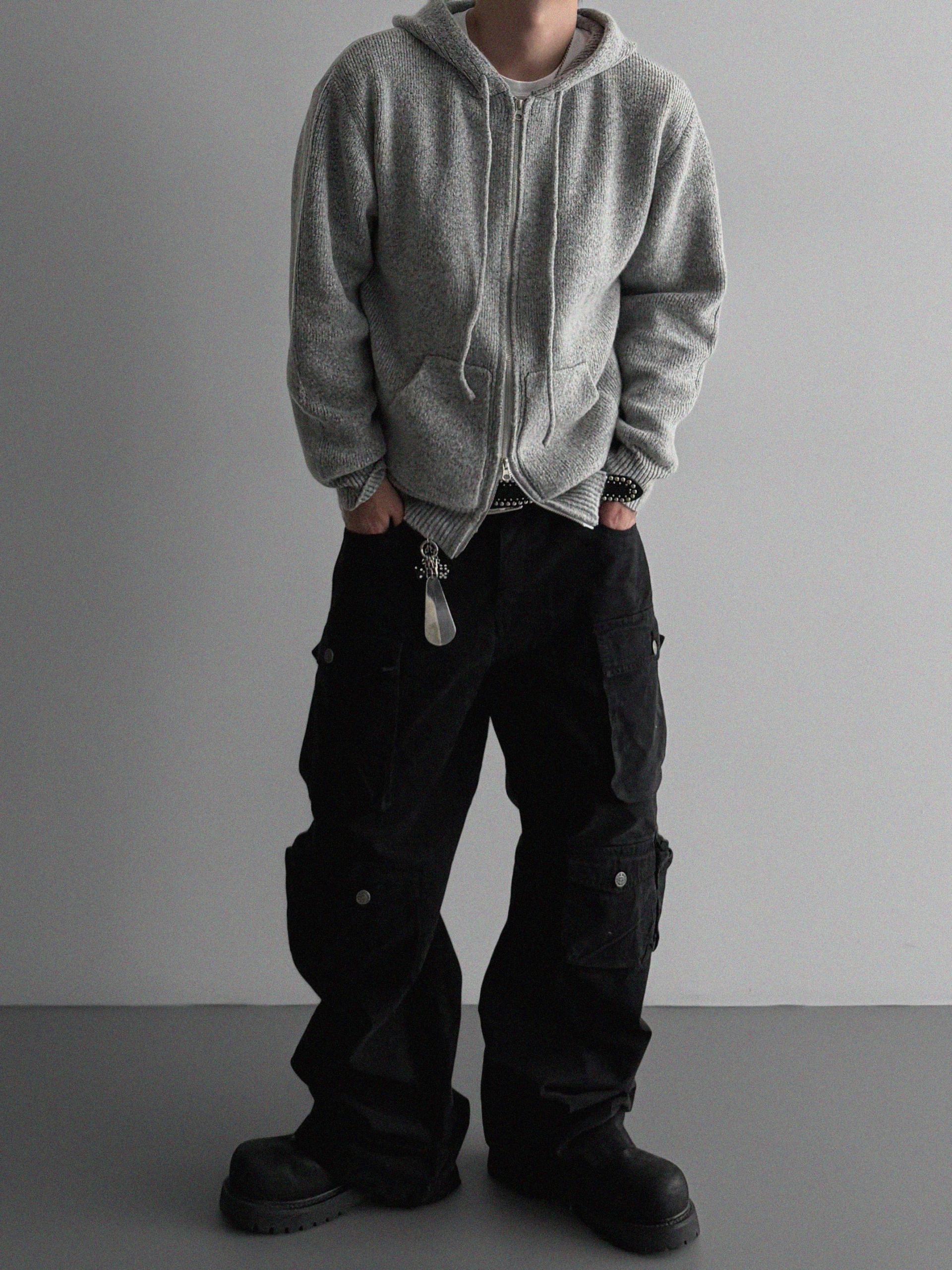 슬로건 니트 집업