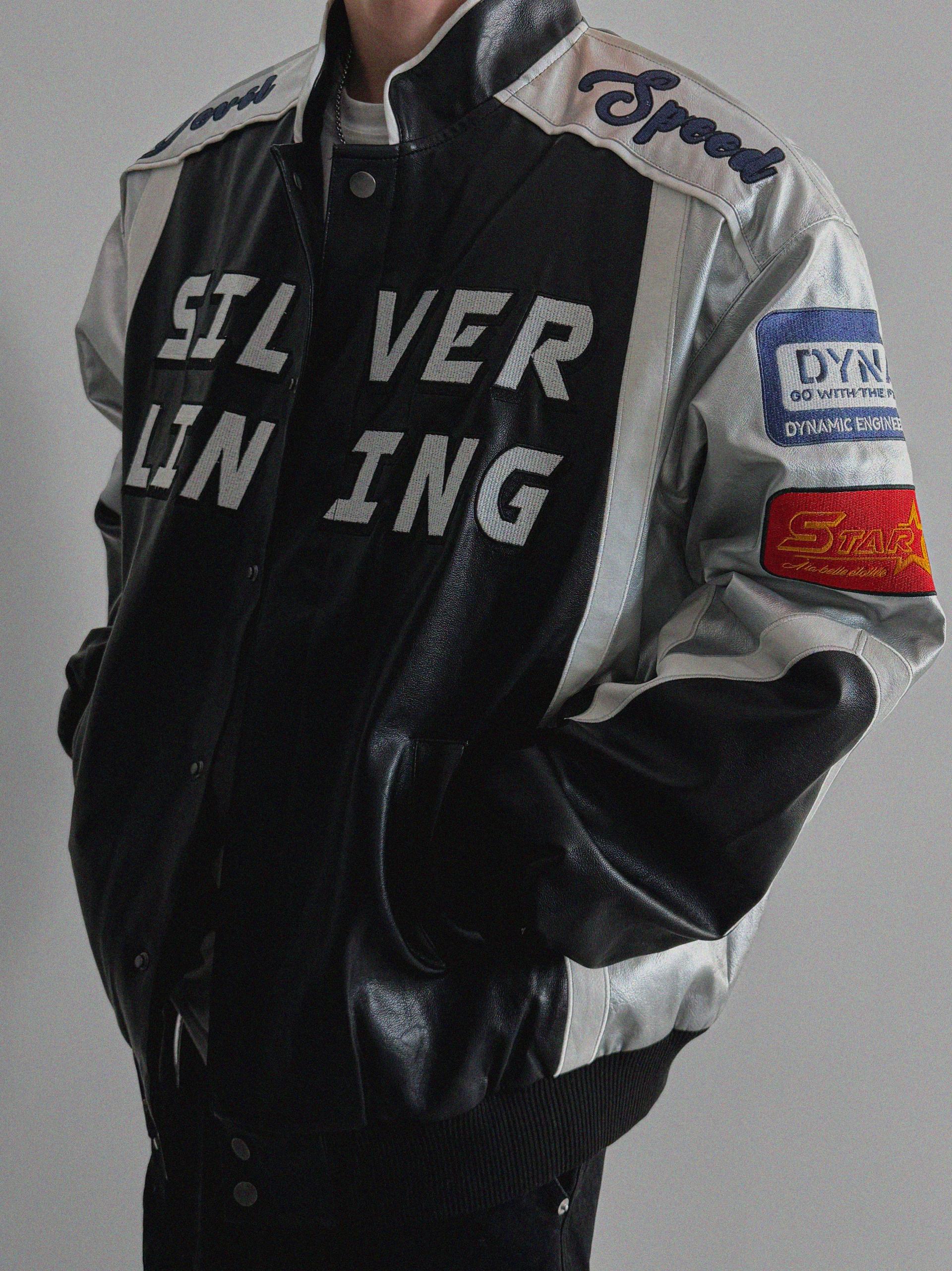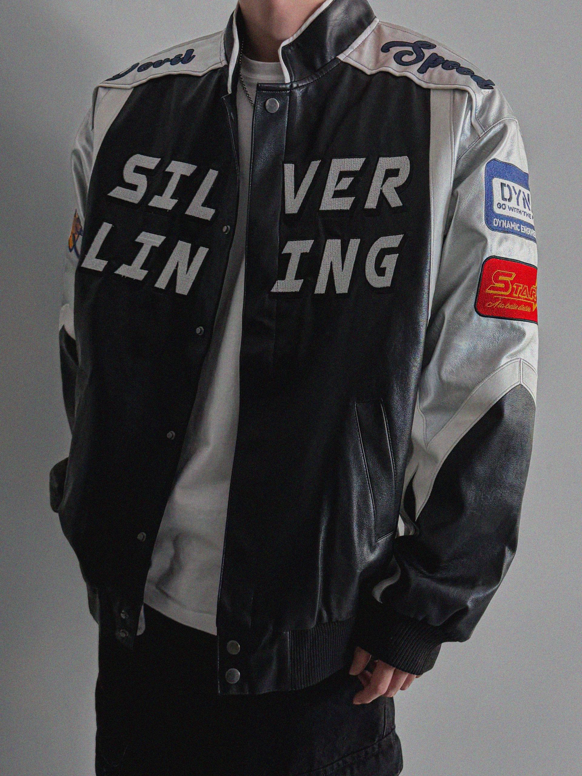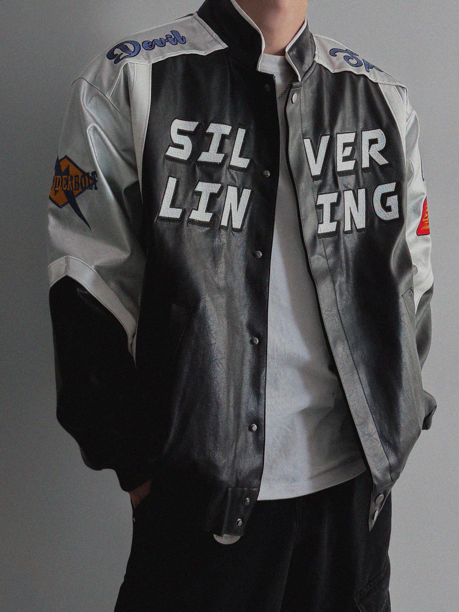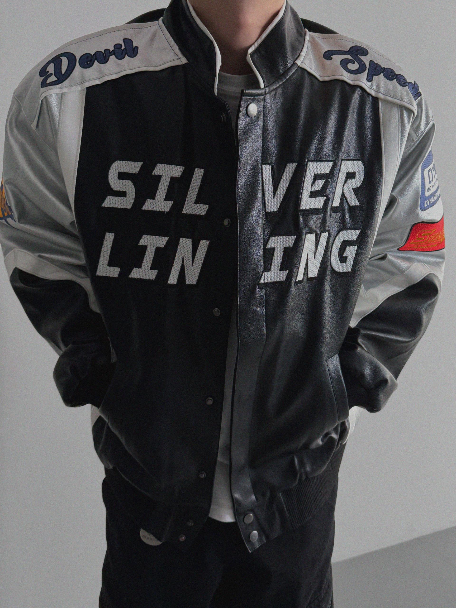 실버 라이닝 레더 봄버 자켓