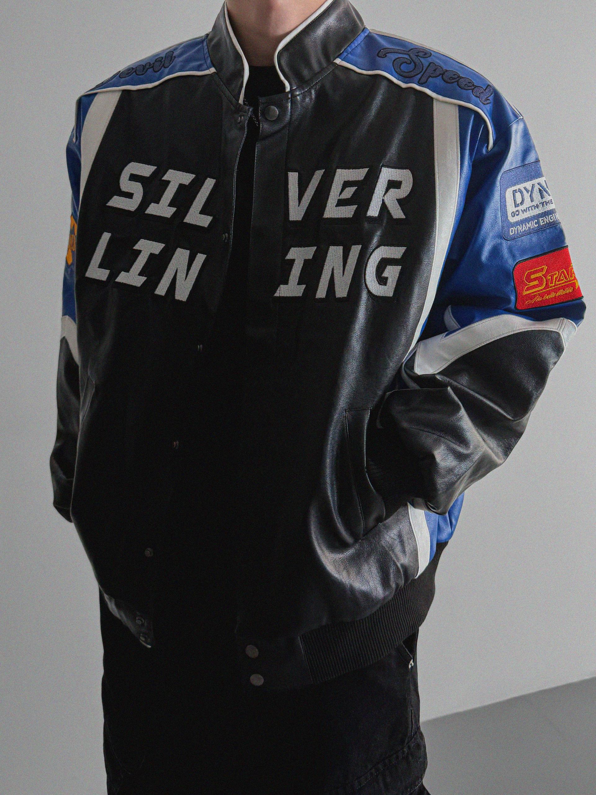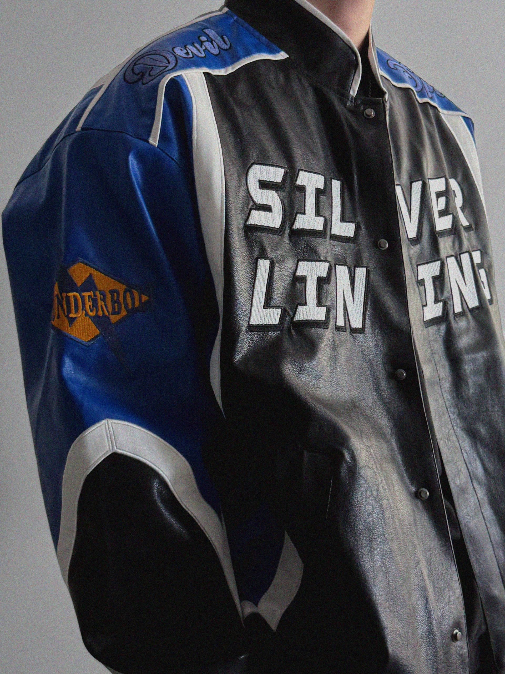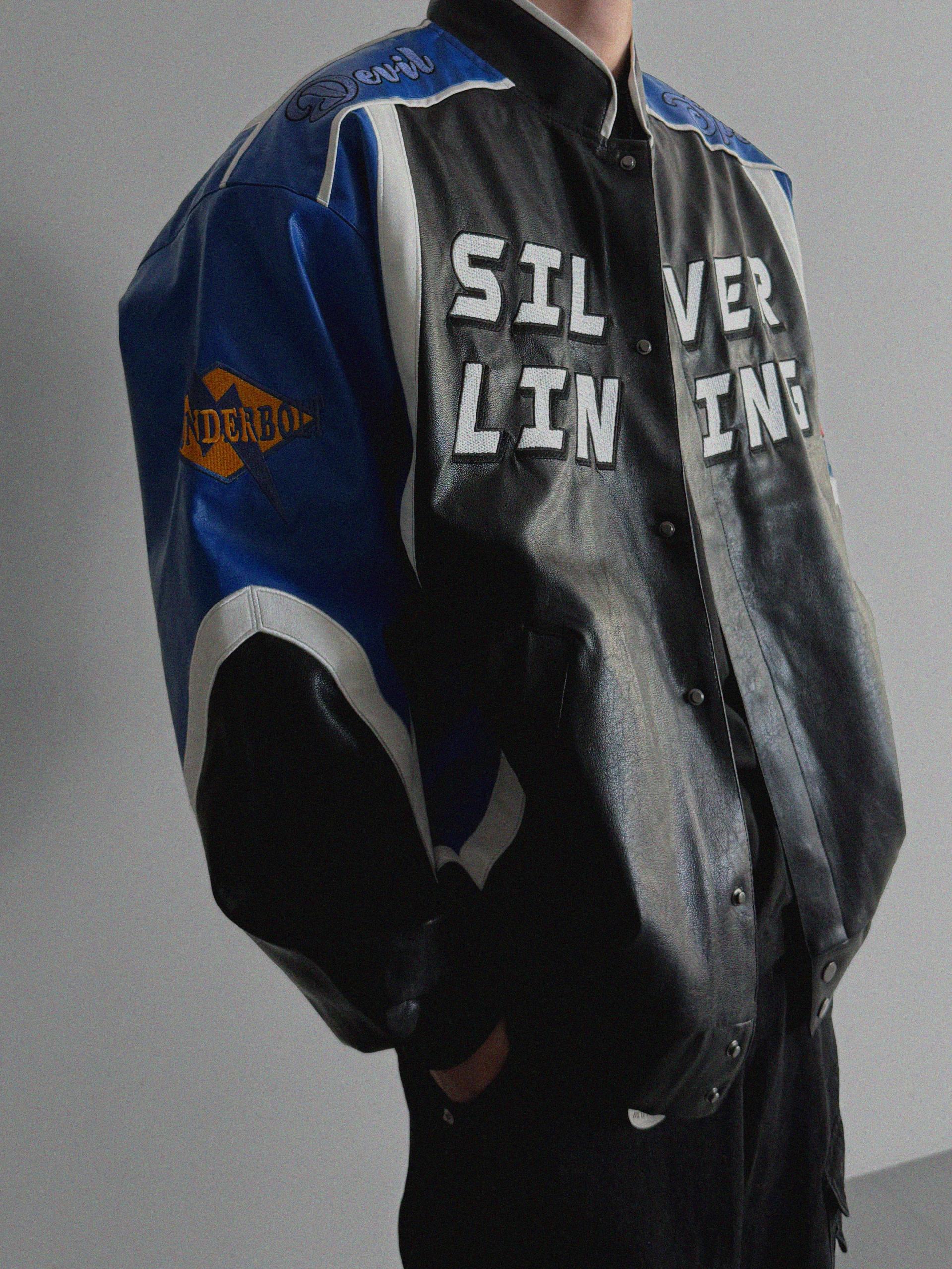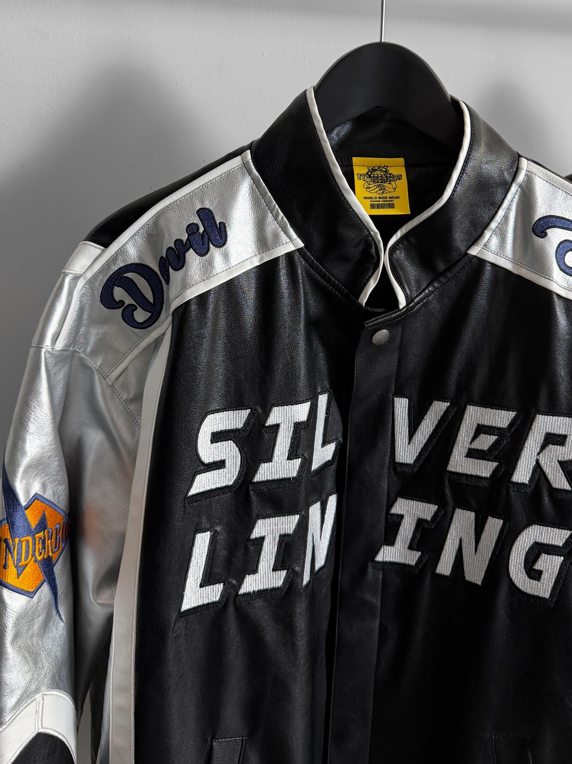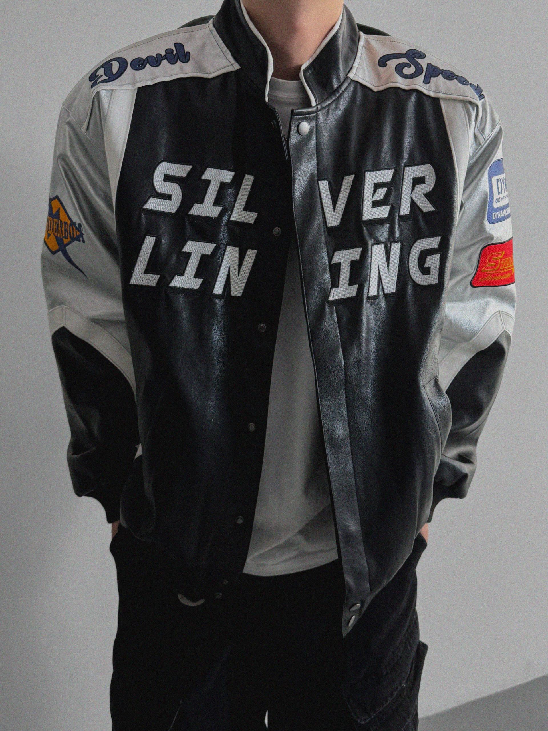 실버 라이닝 레더 봄버 자켓