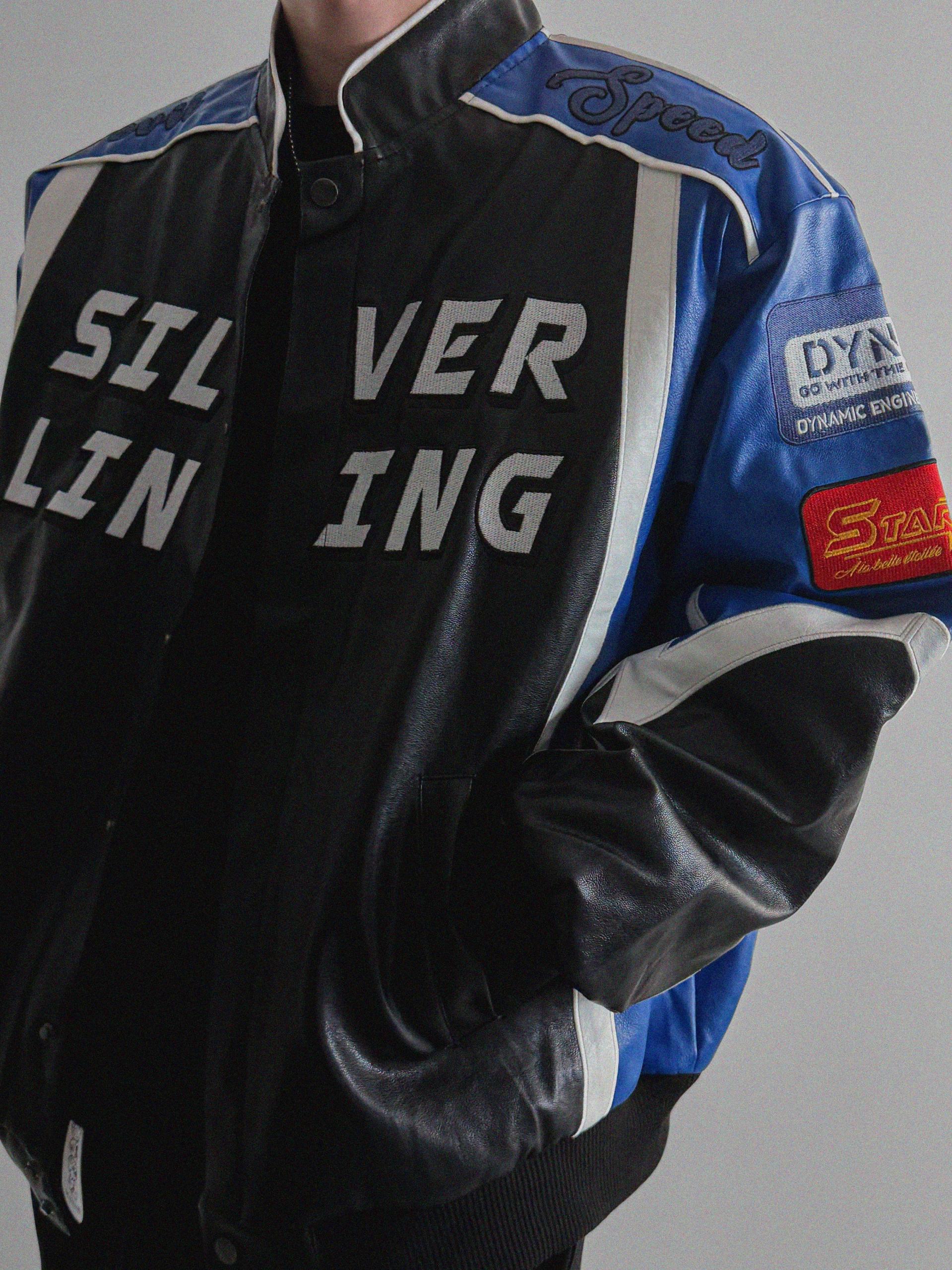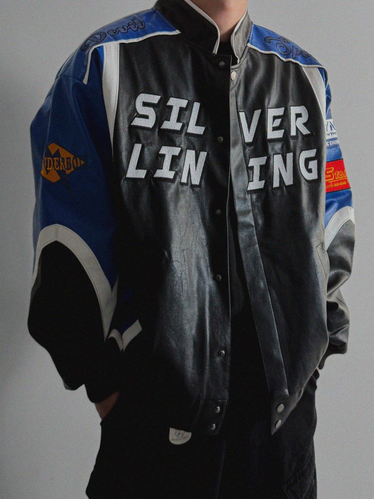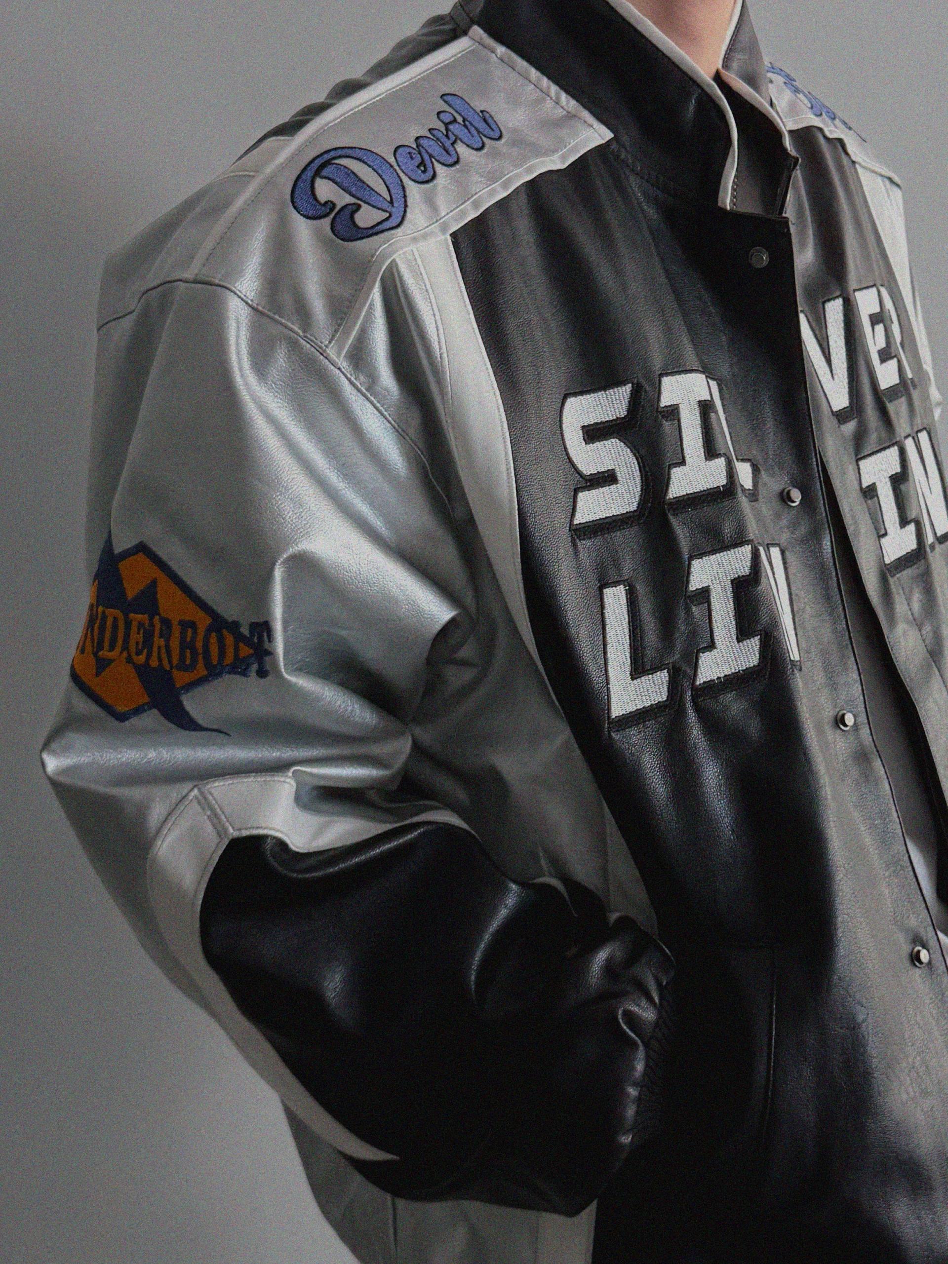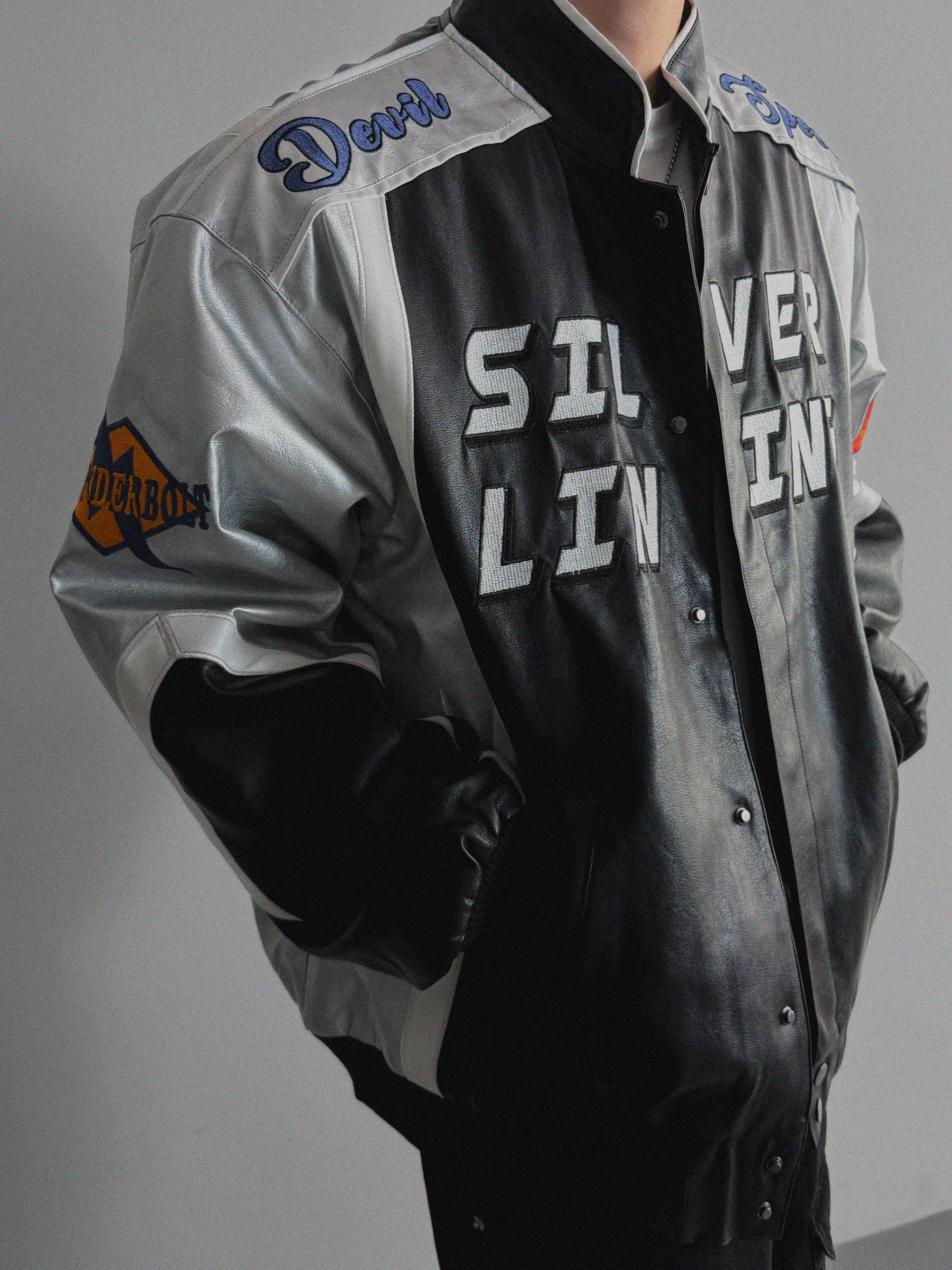 실버 라이닝 레더 봄버 자켓