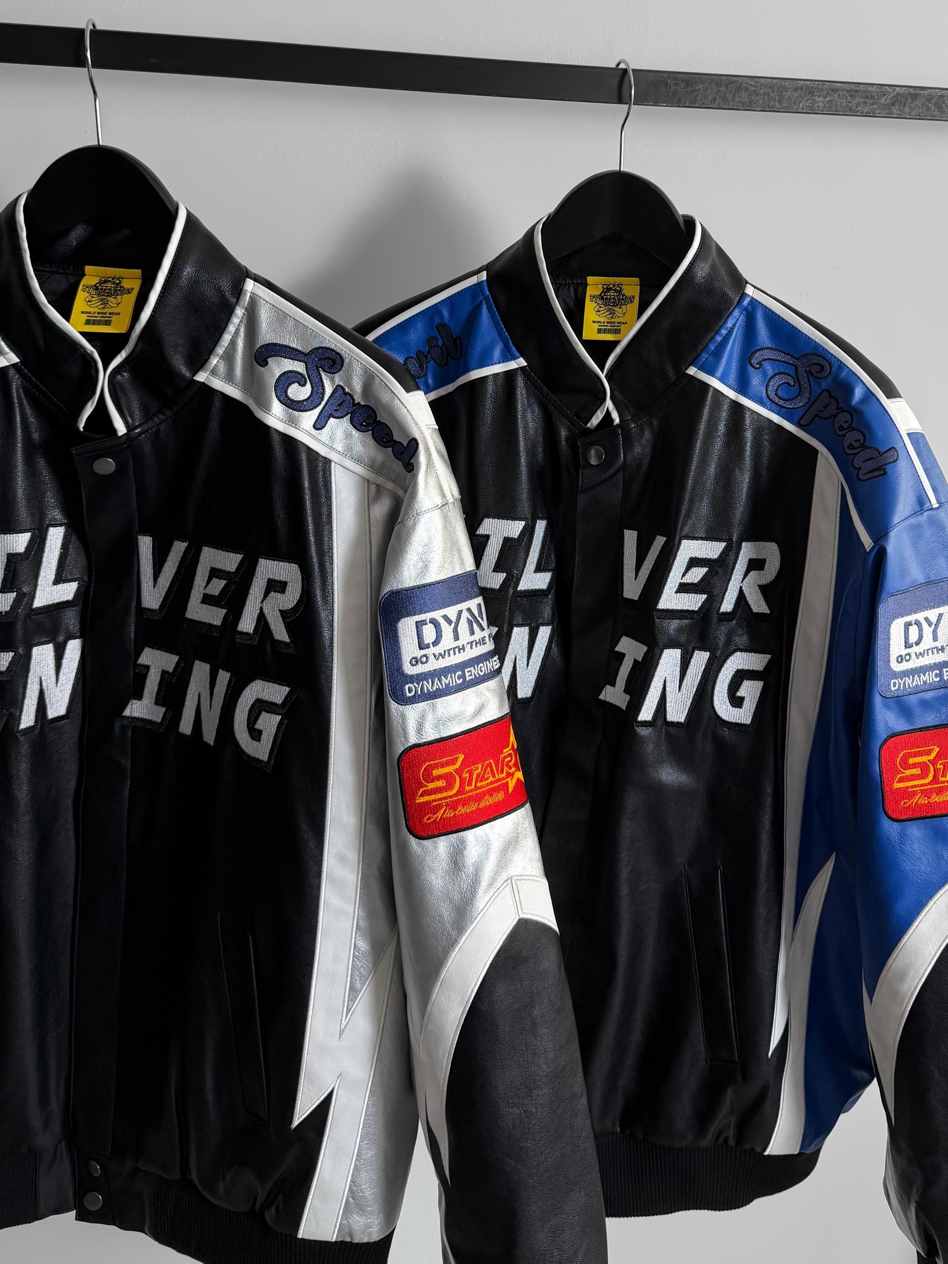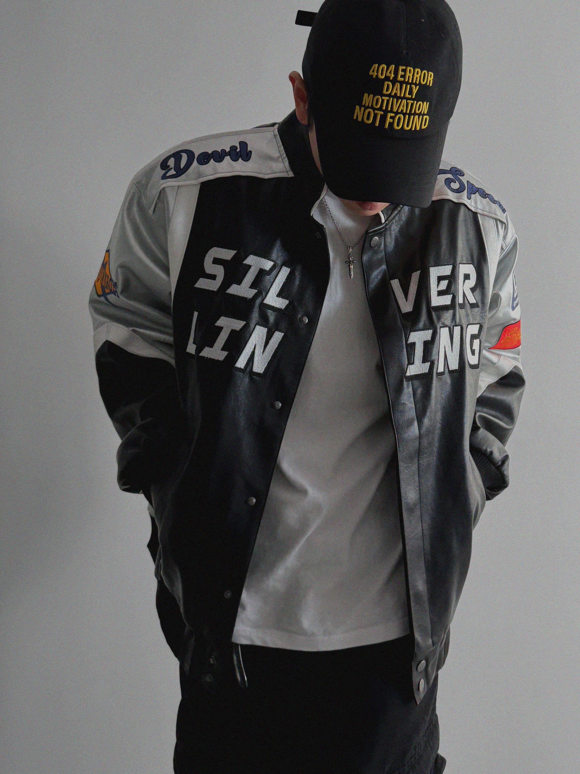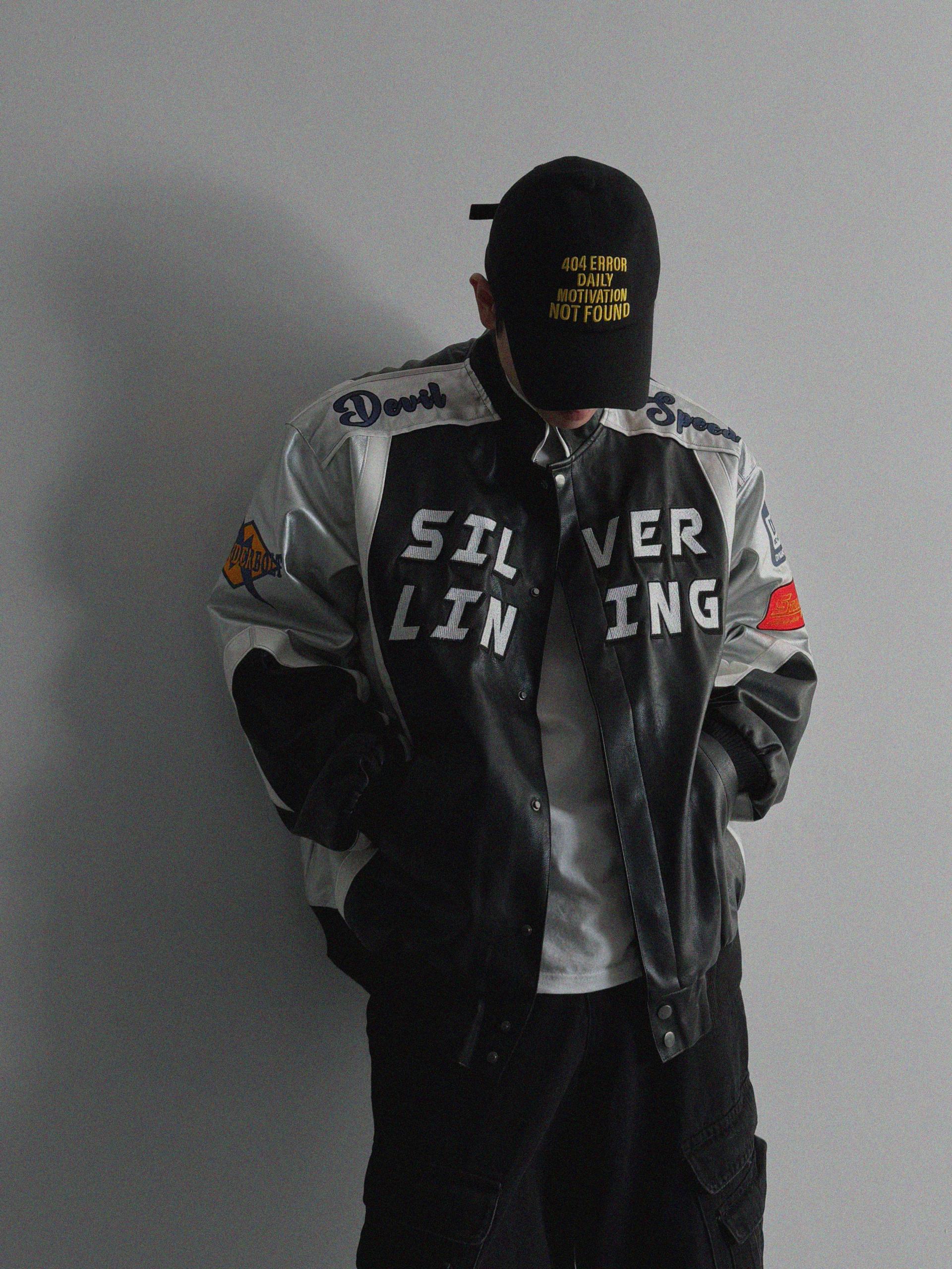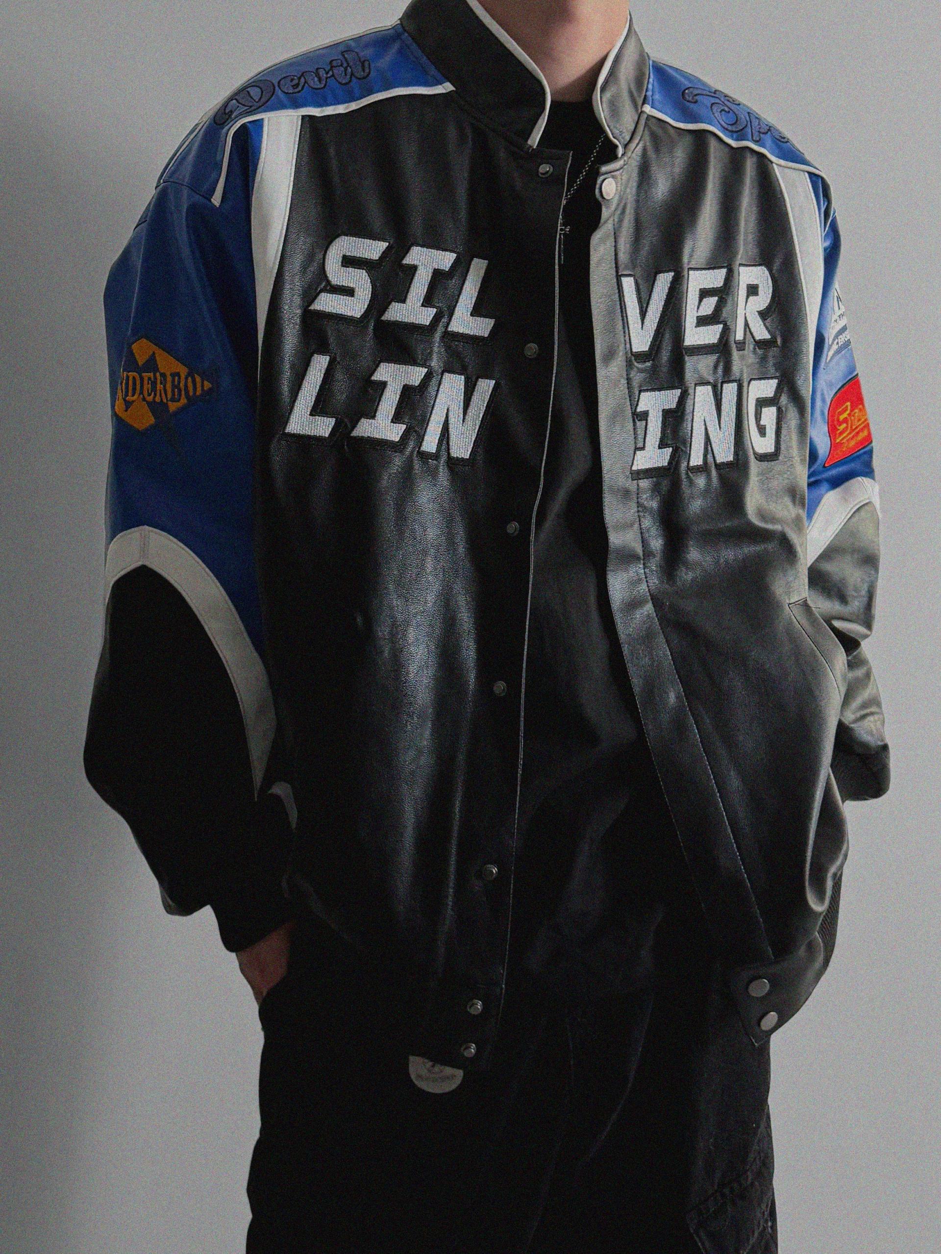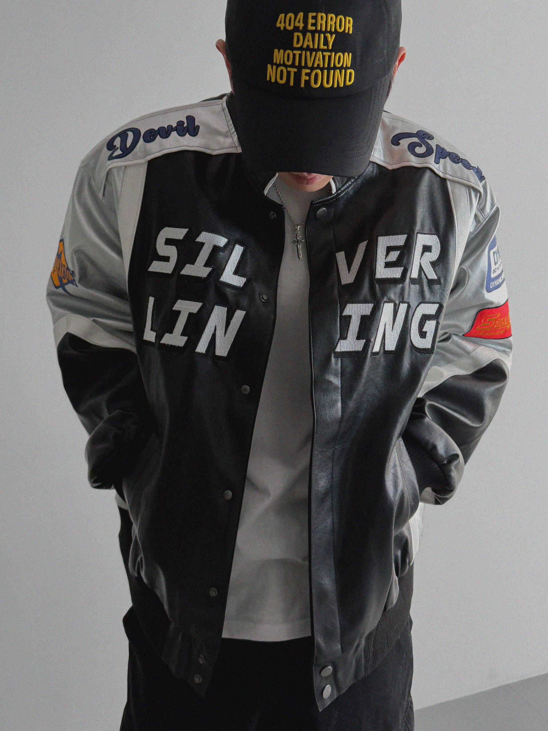 실버 라이닝 레더 봄버 자켓