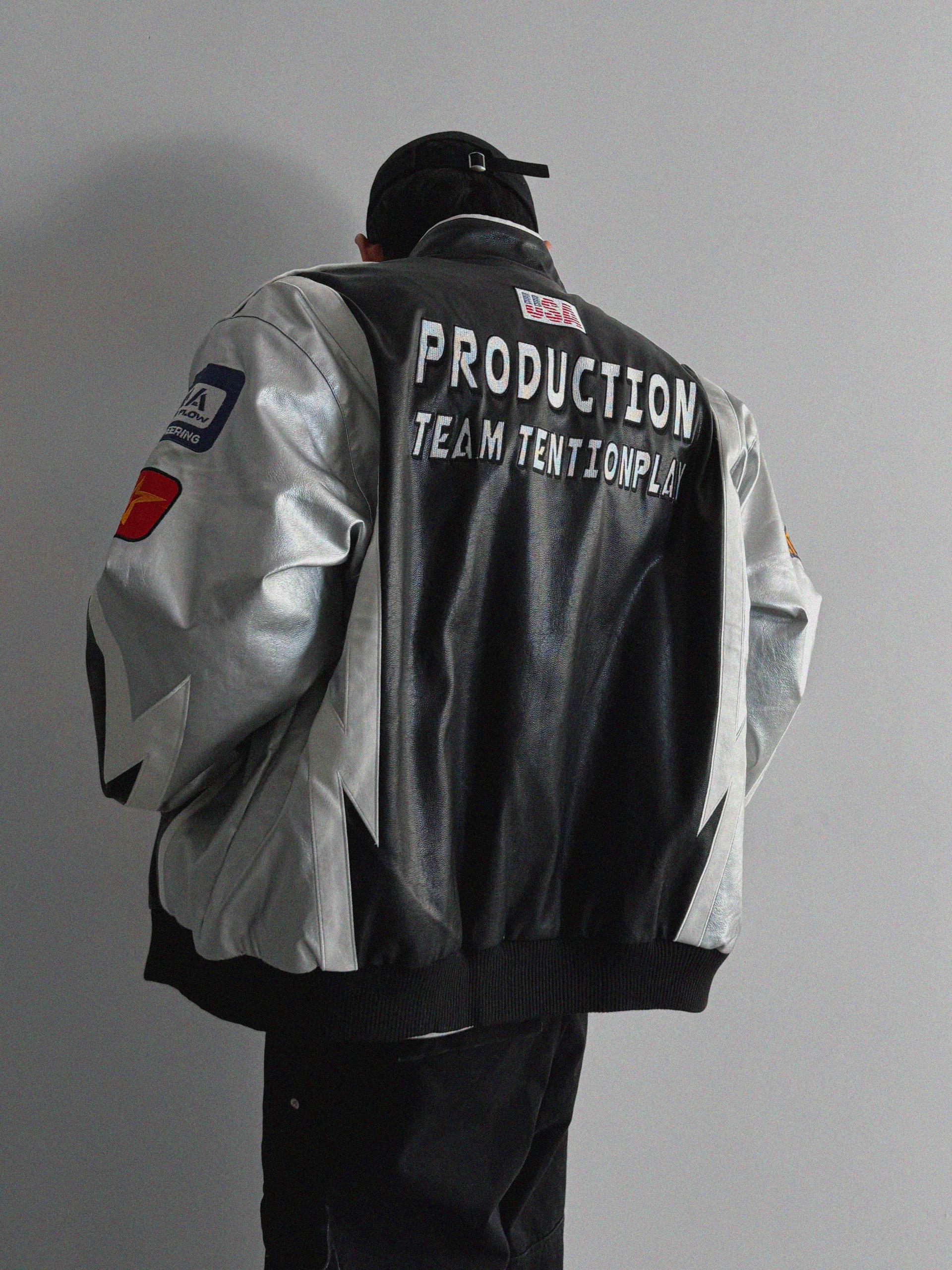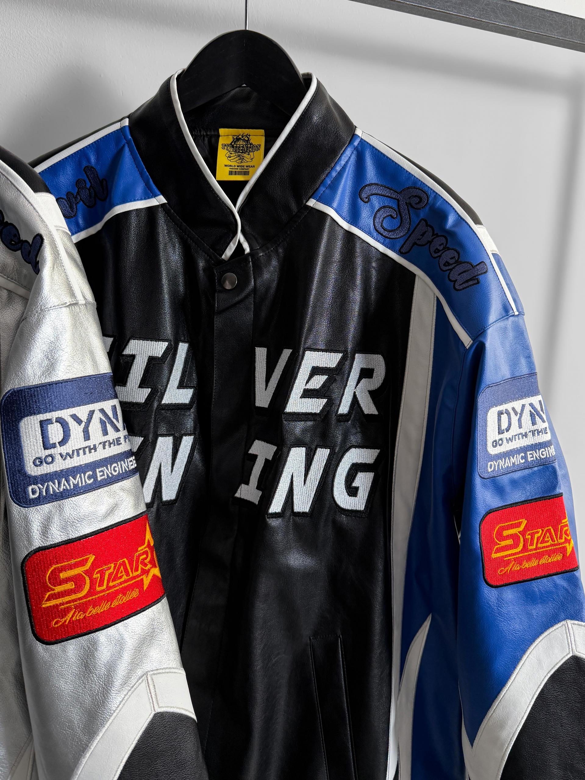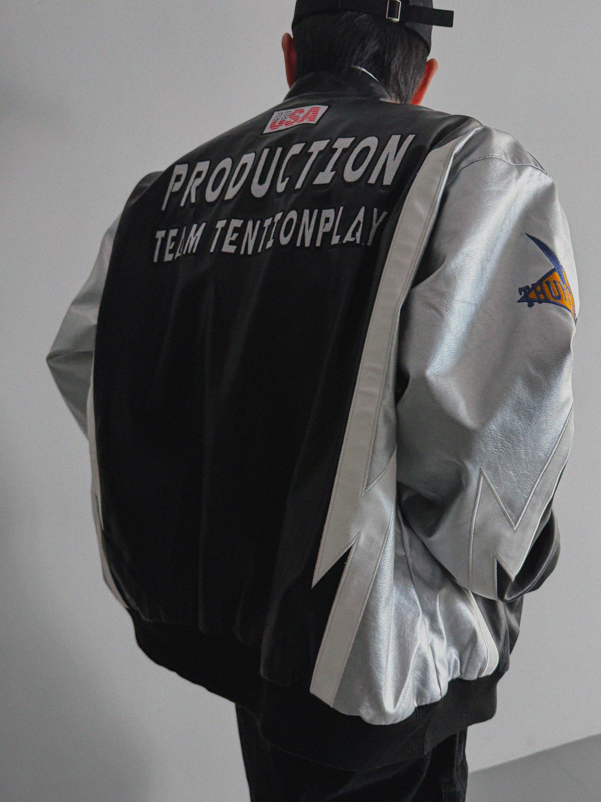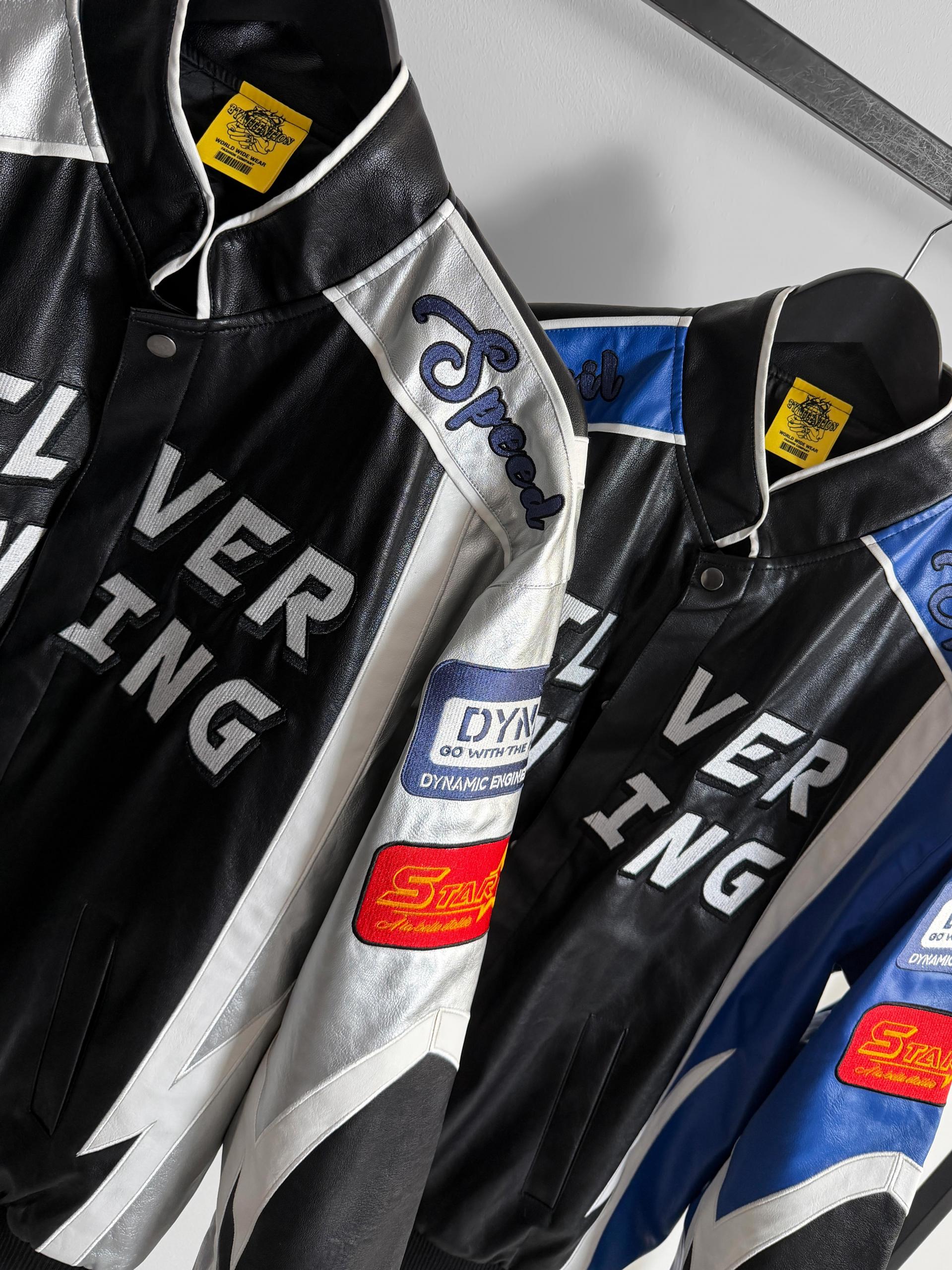 실버 라이닝 레더 봄버 자켓