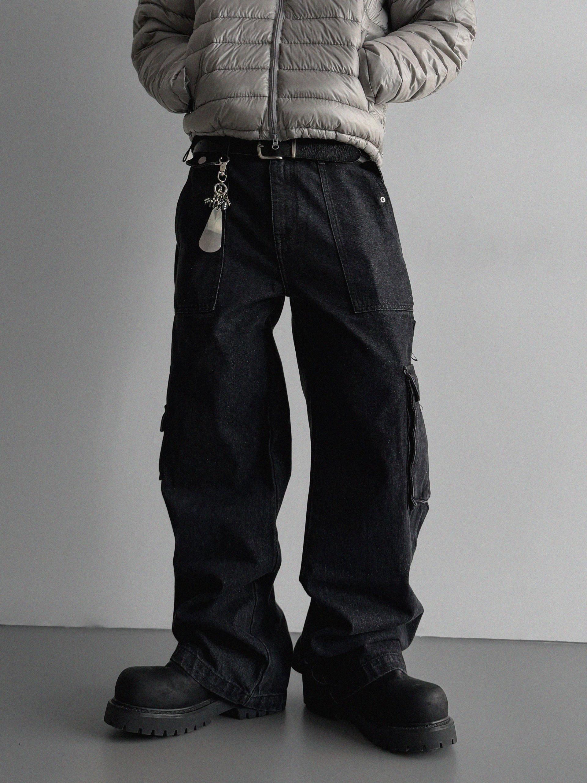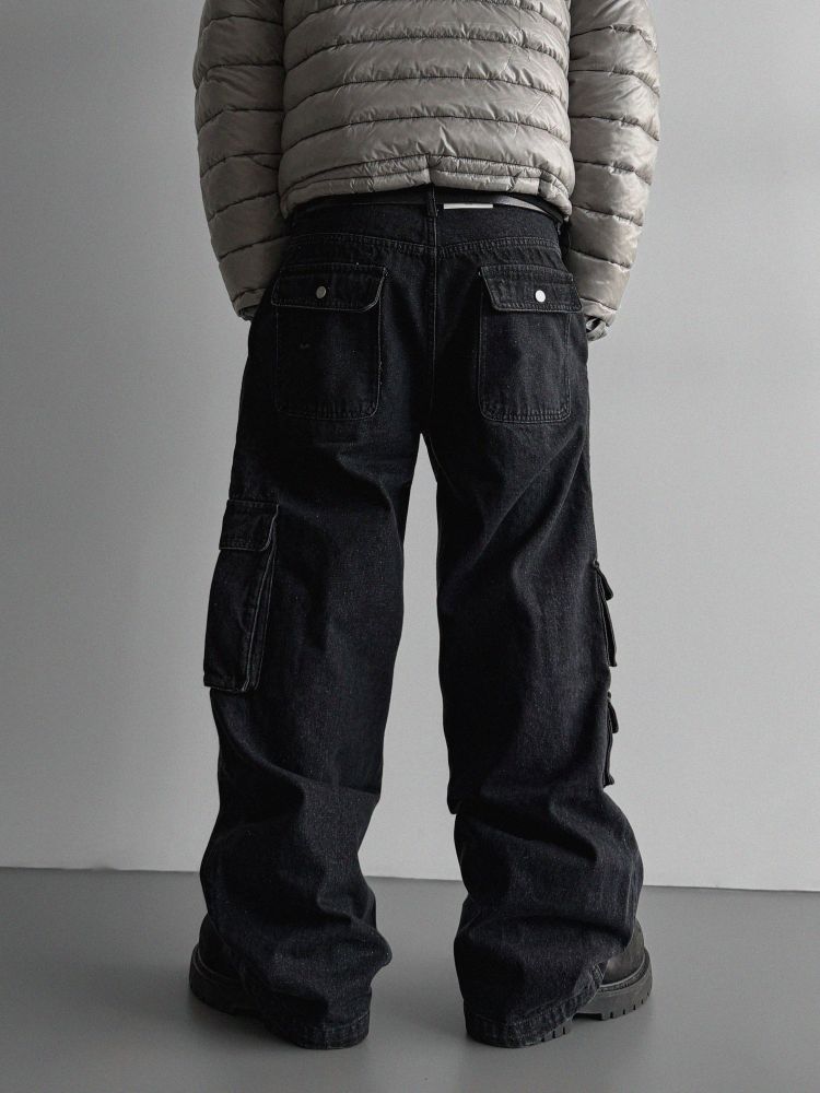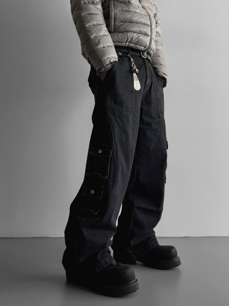 디링 언발 포켓 카고 데님 팬츠
