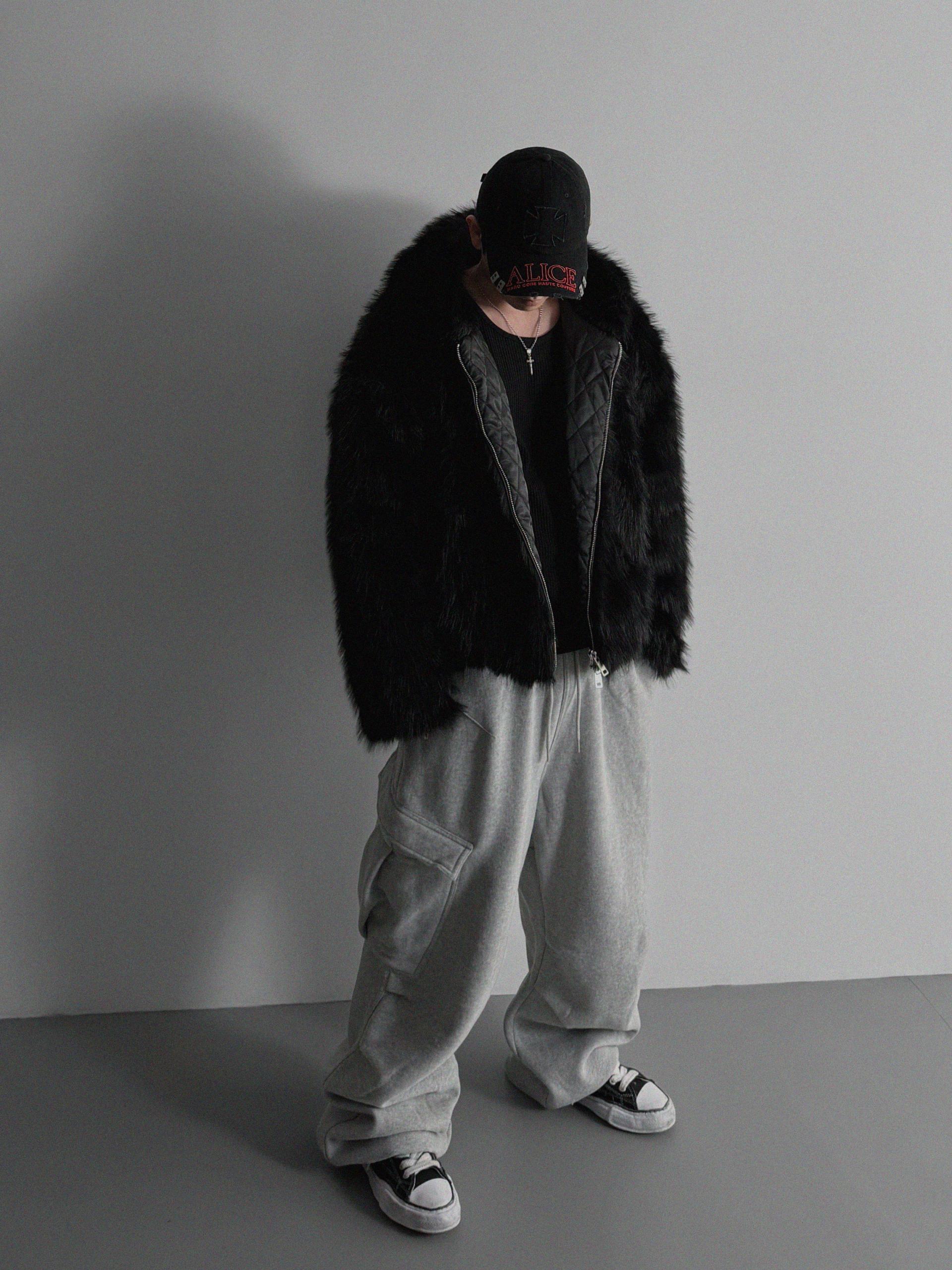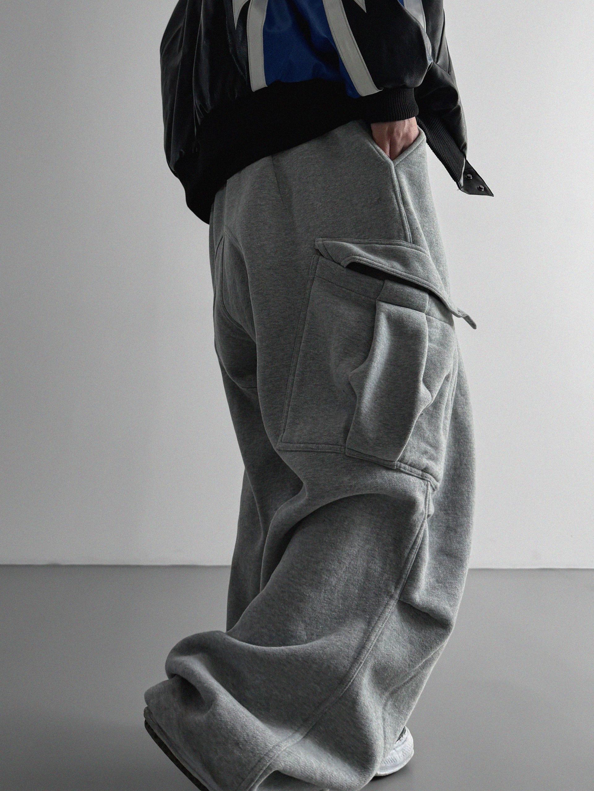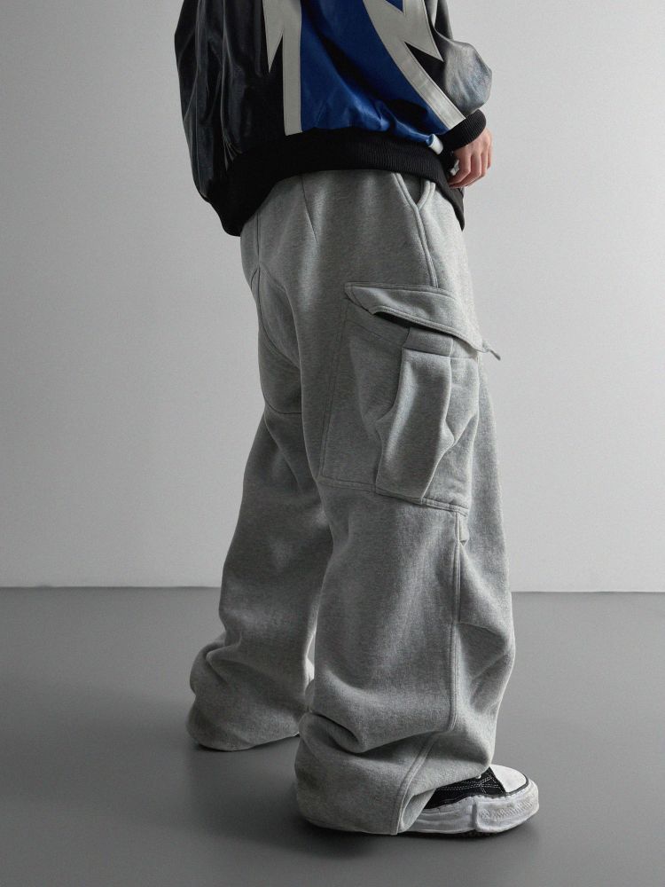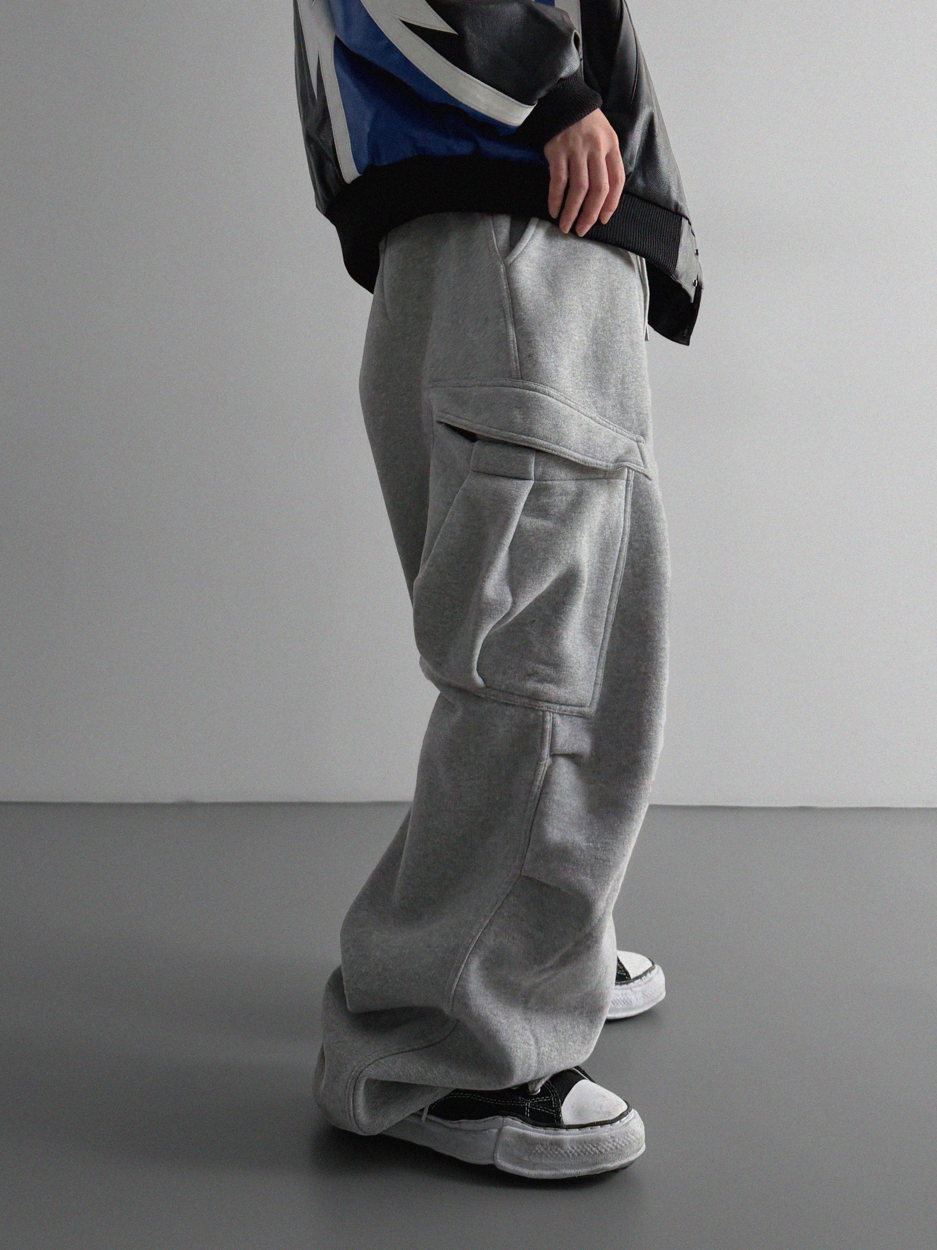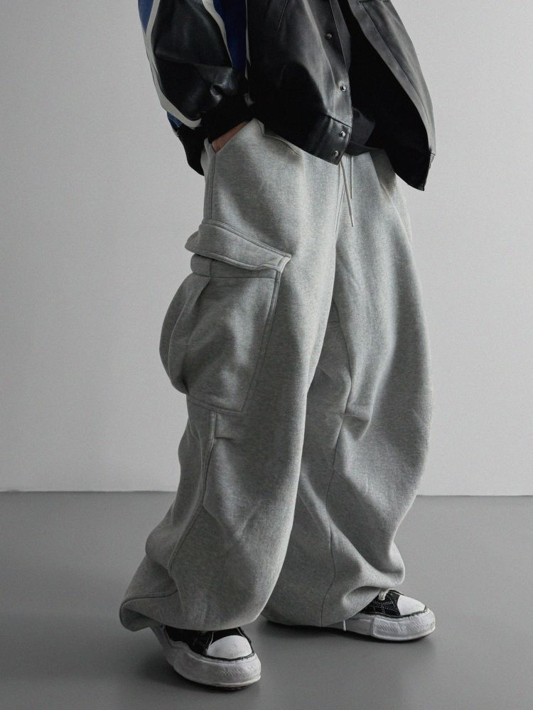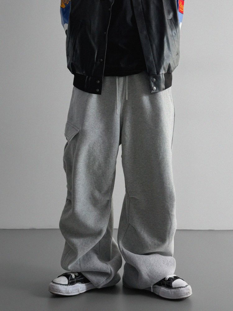 양기모 언발 카고 와이드 스웻 팬츠