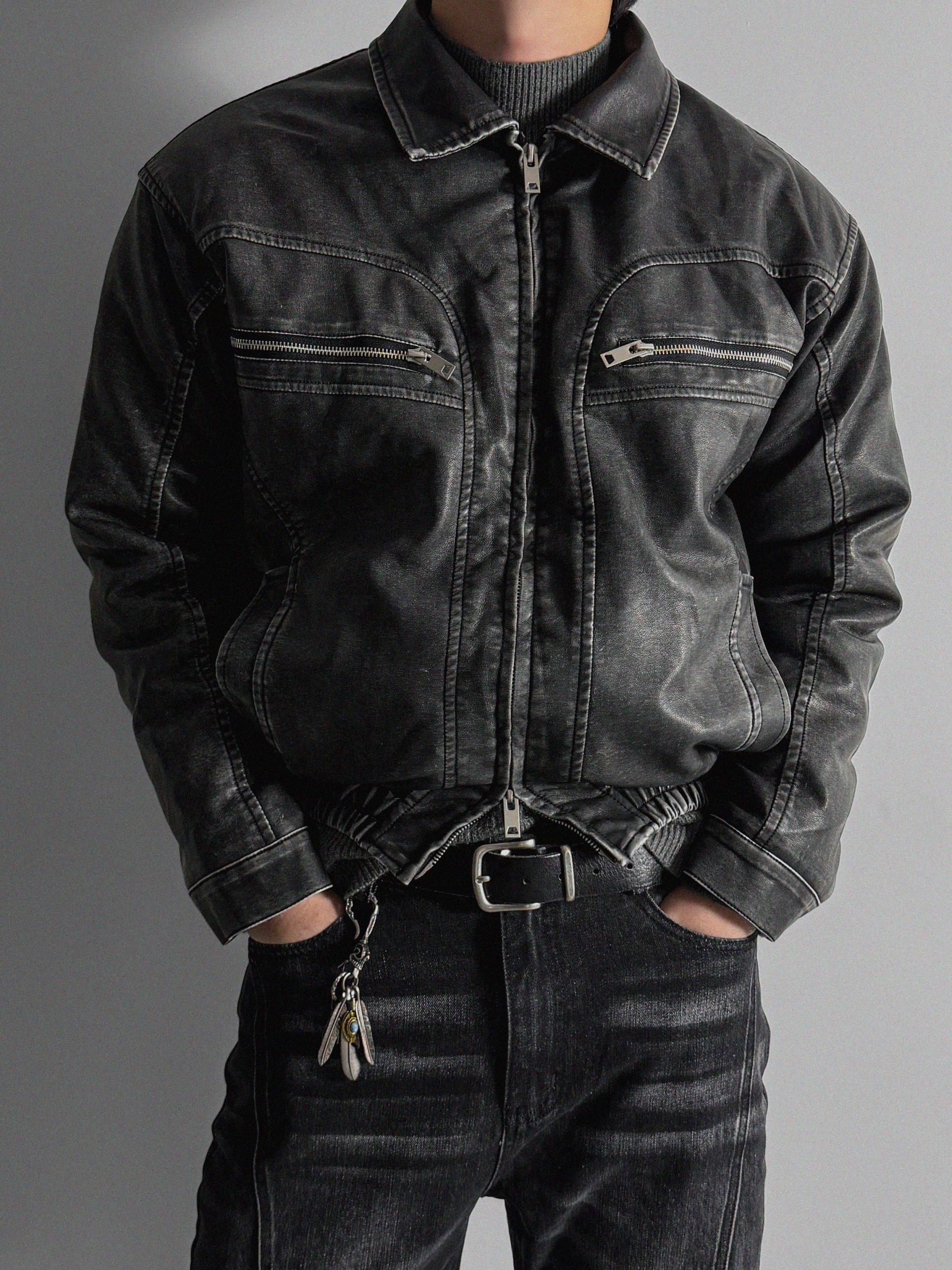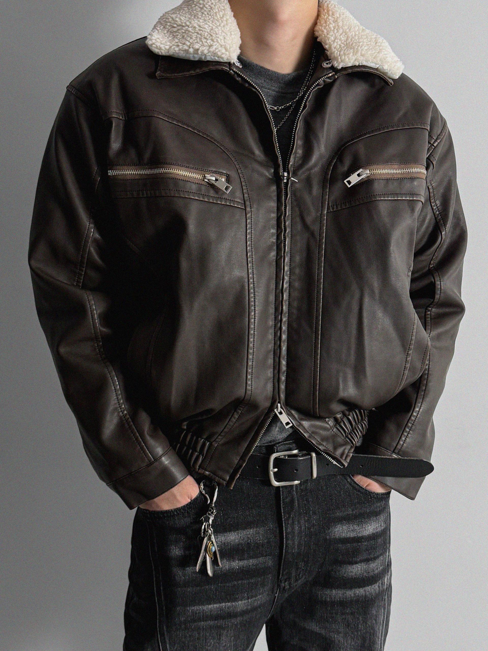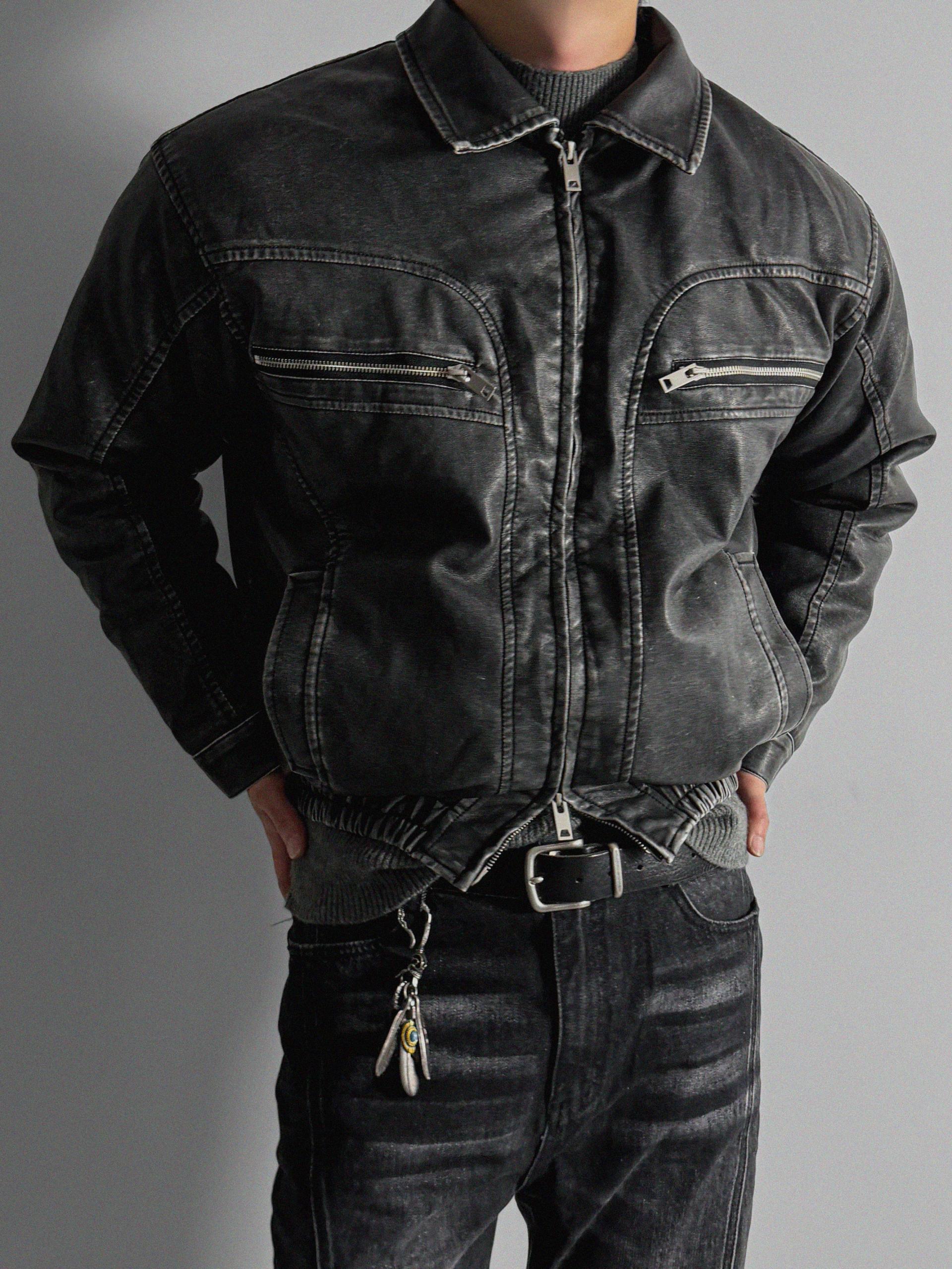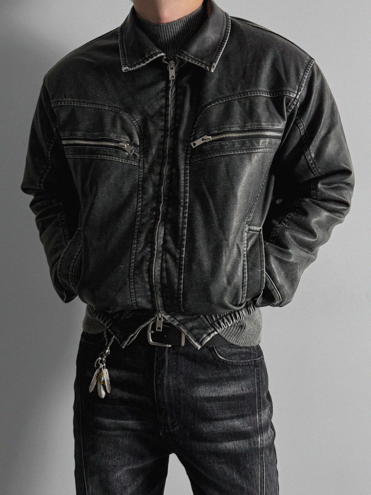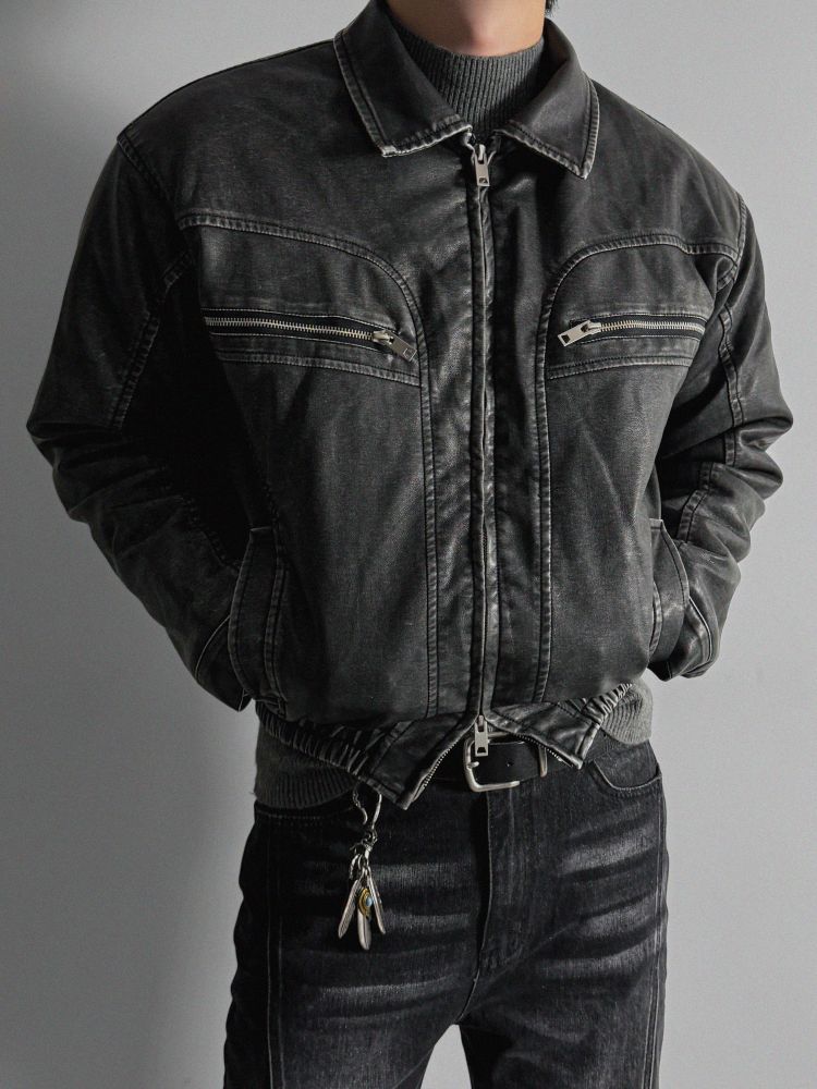 -러프한 원담감의 레더 패딩 자켓