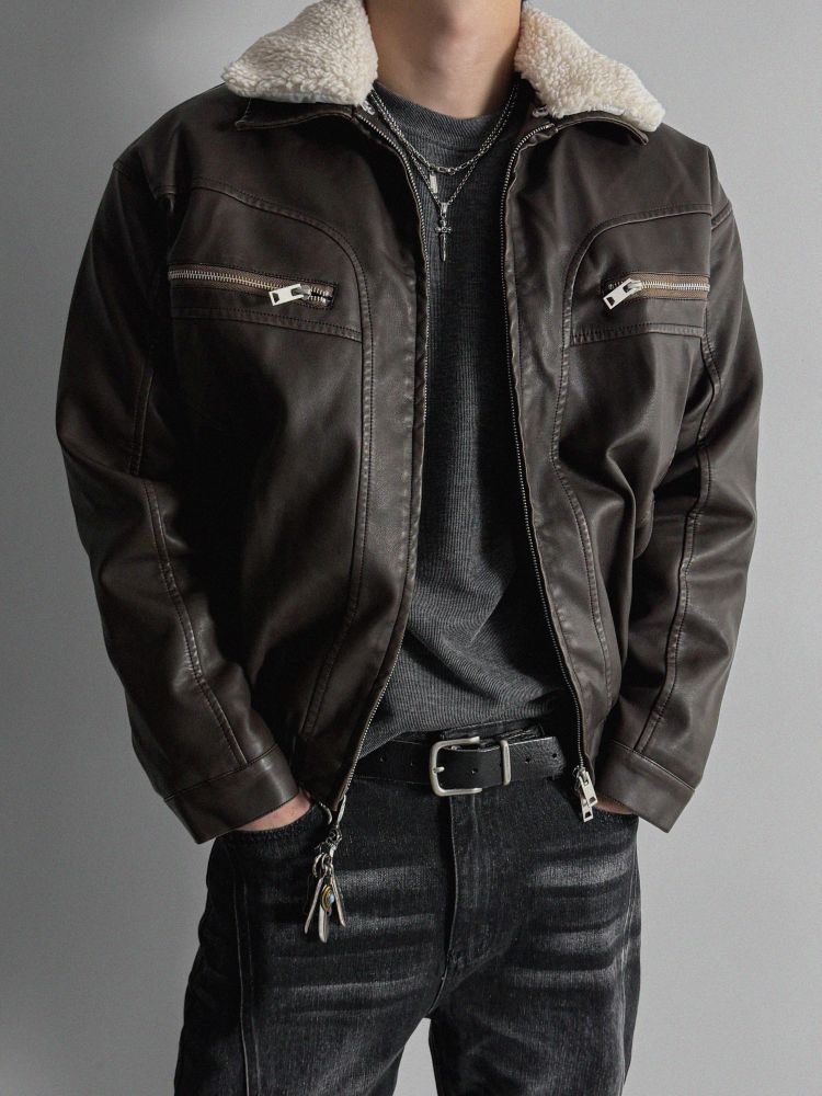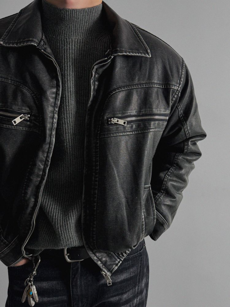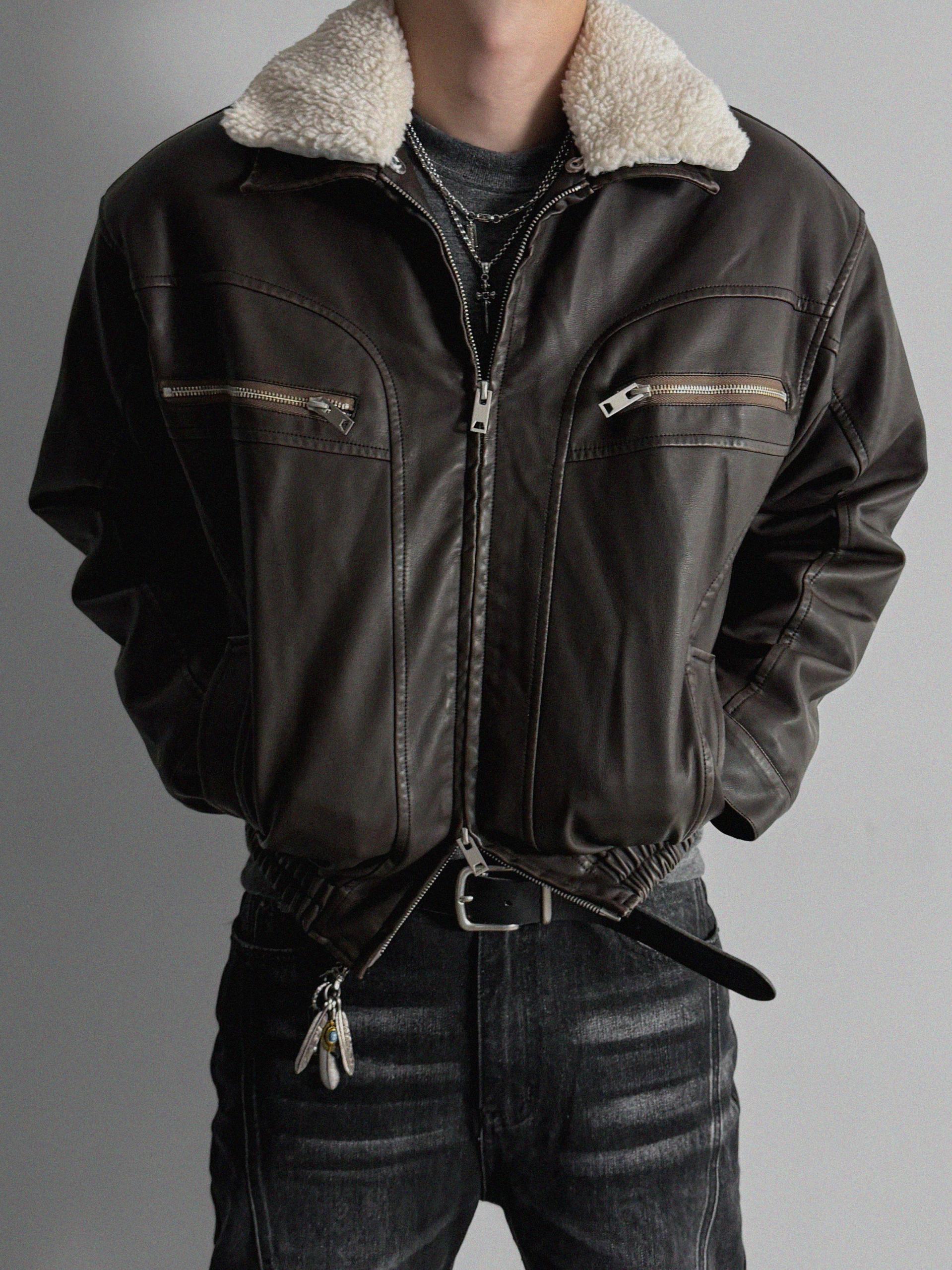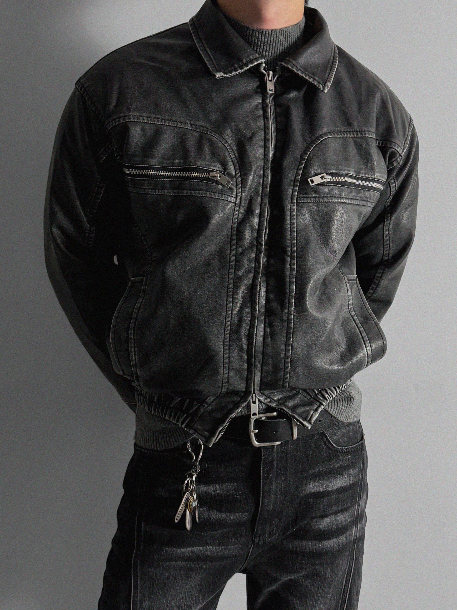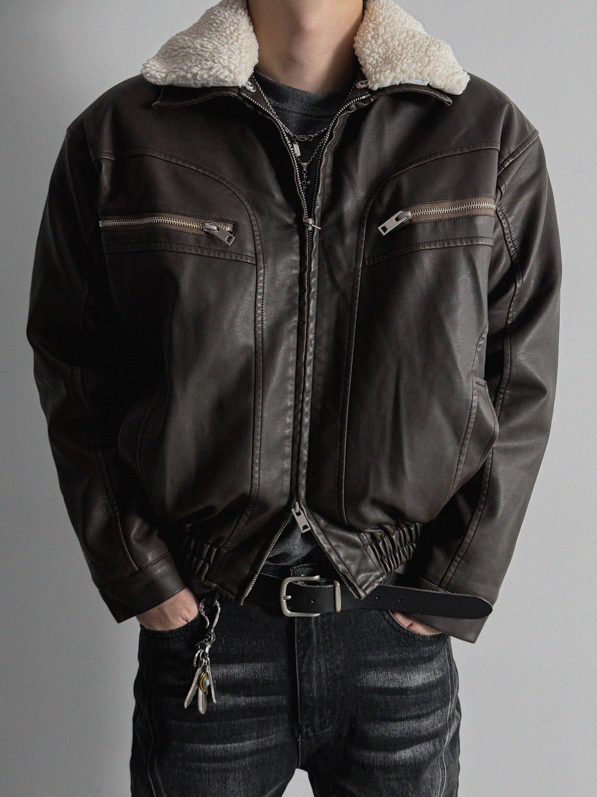-러프한 원담감의 레더 패딩 자켓