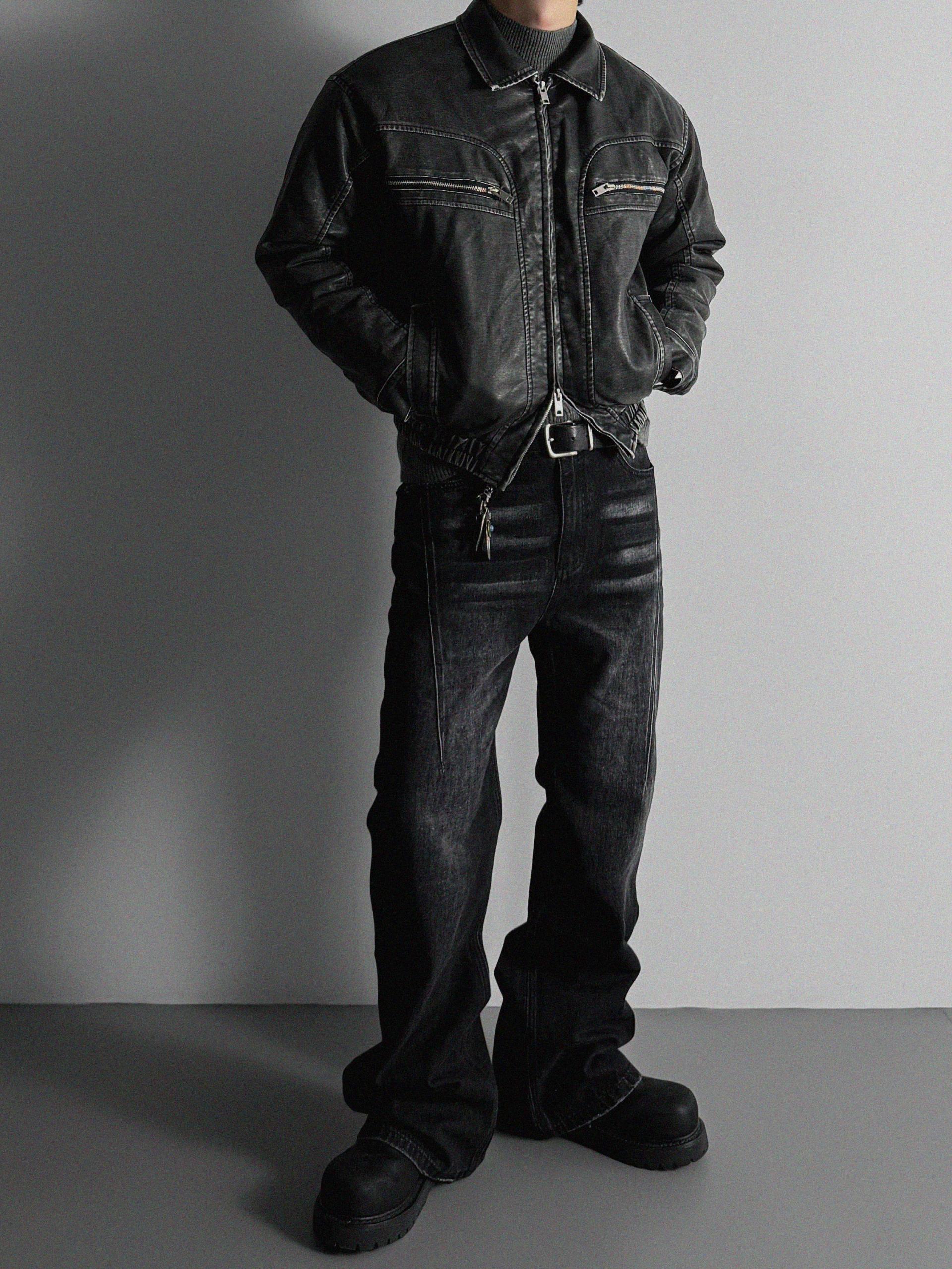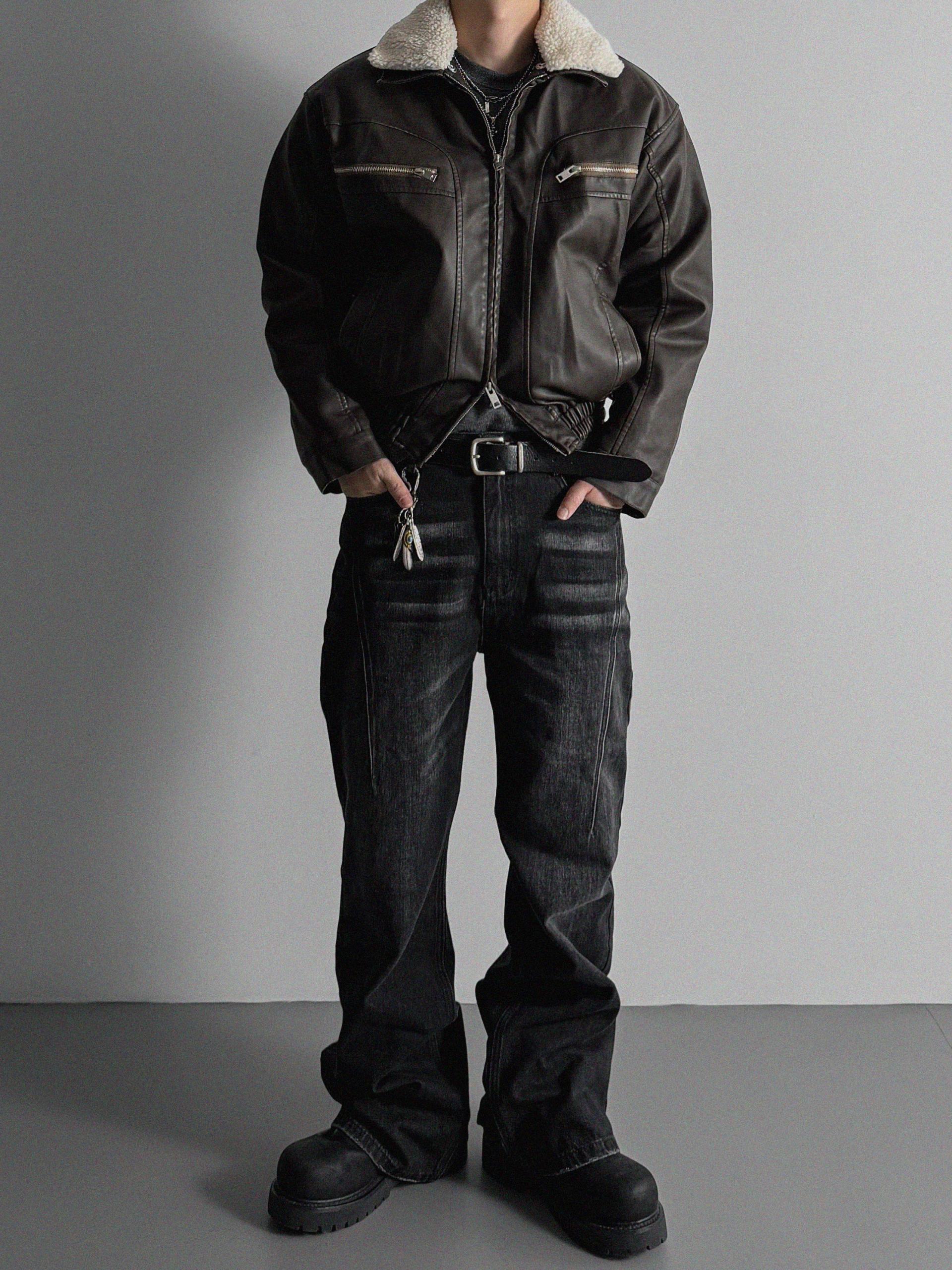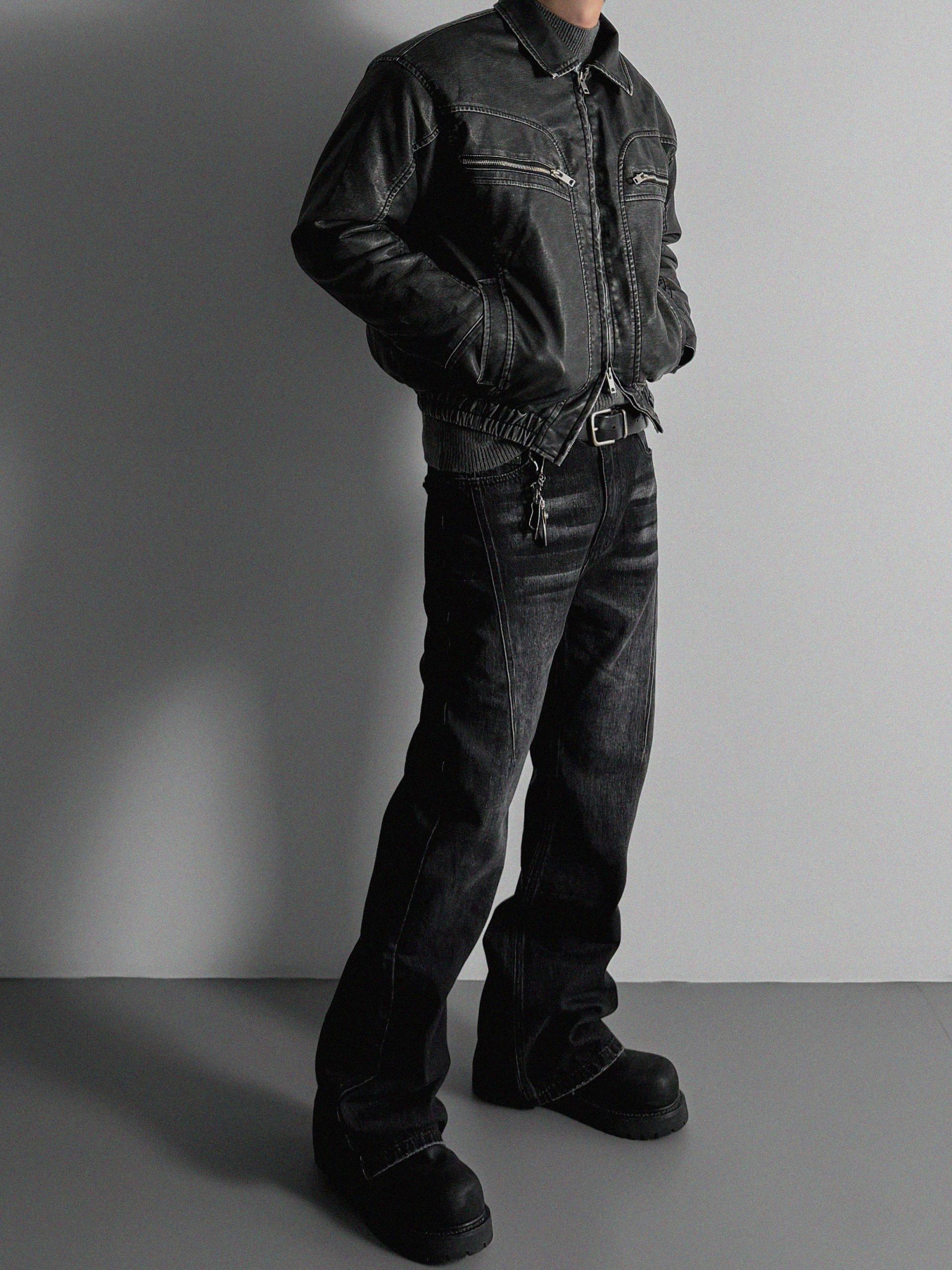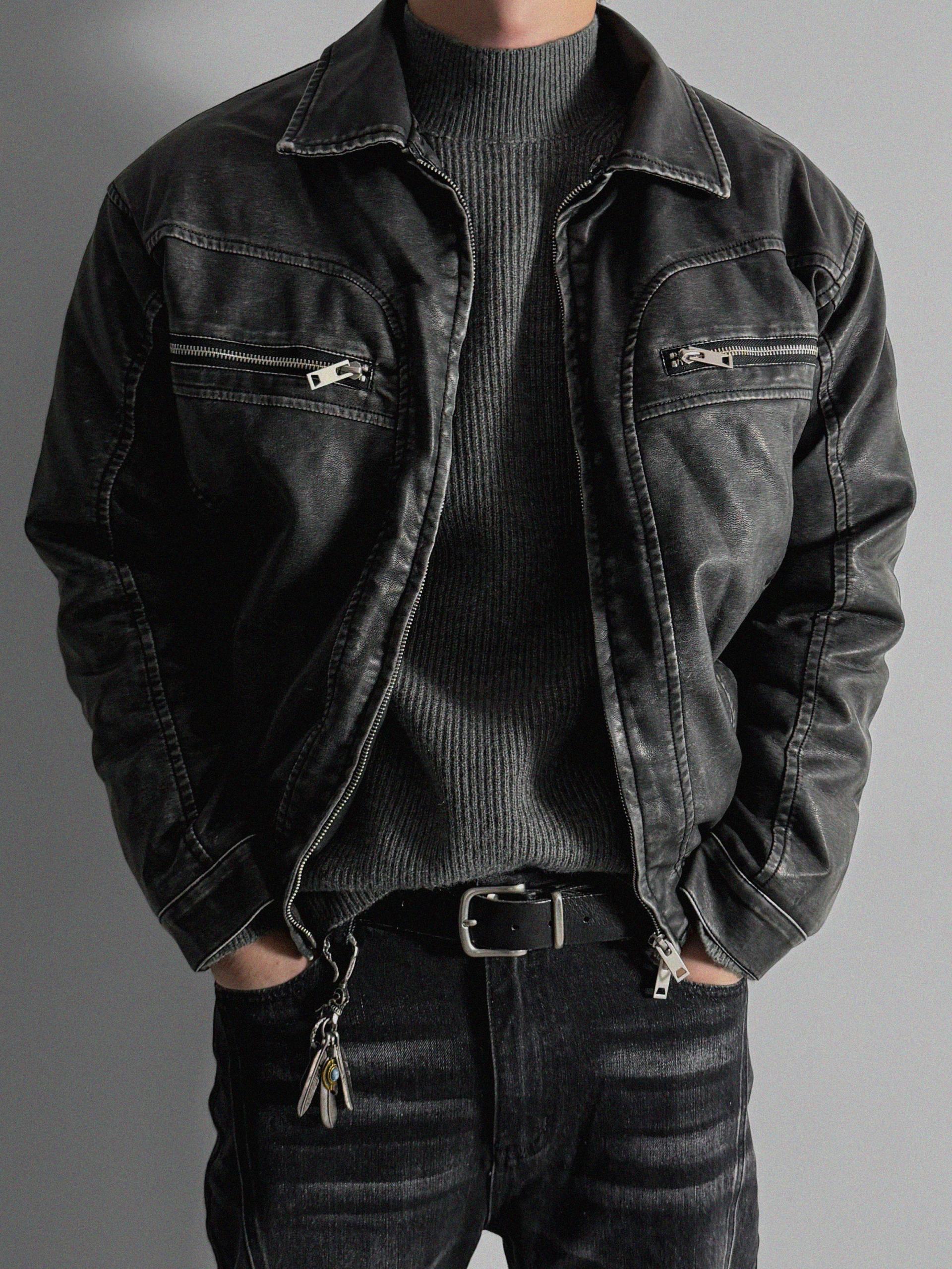 -러프한 원담감의 레더 패딩 자켓