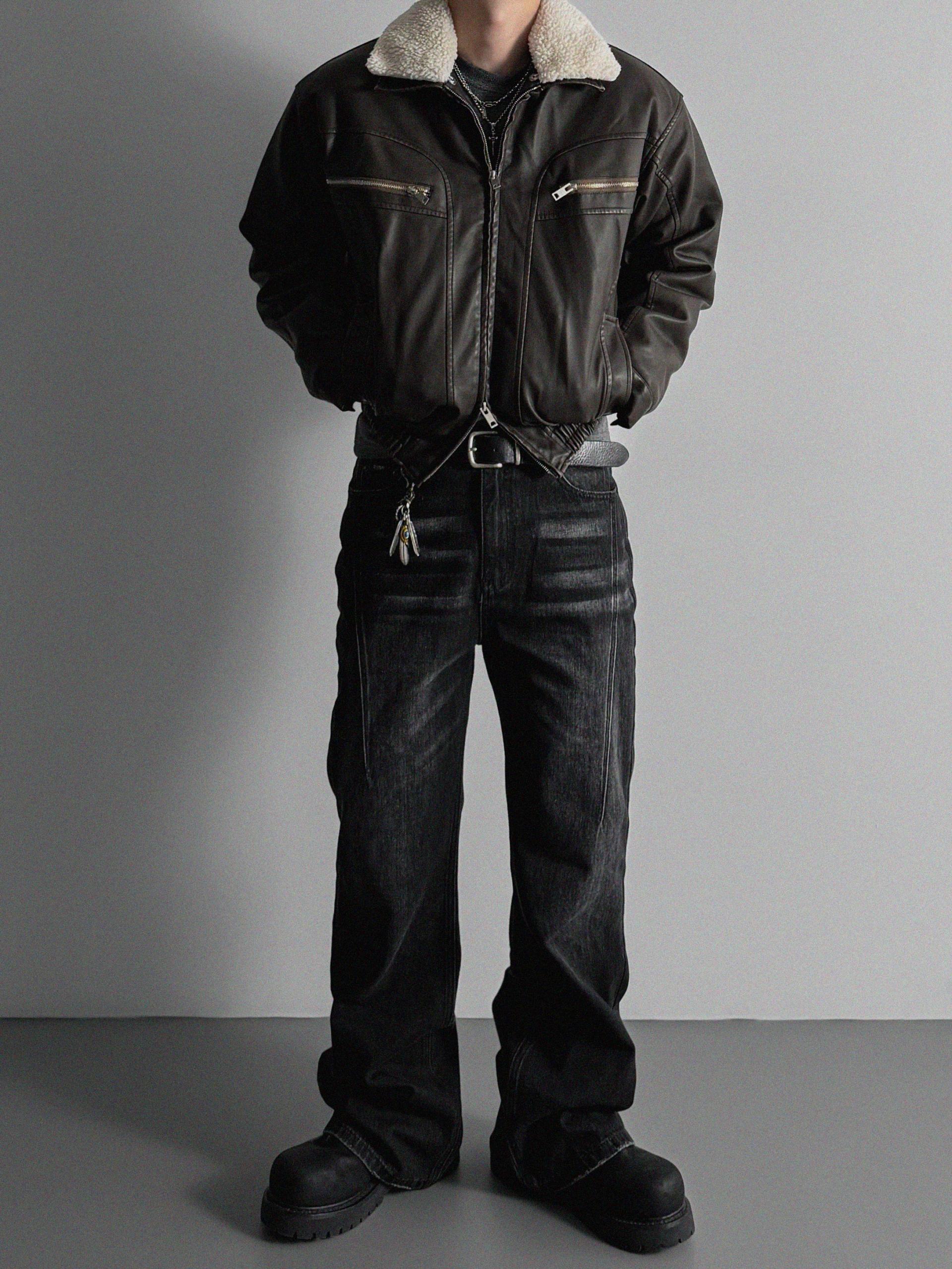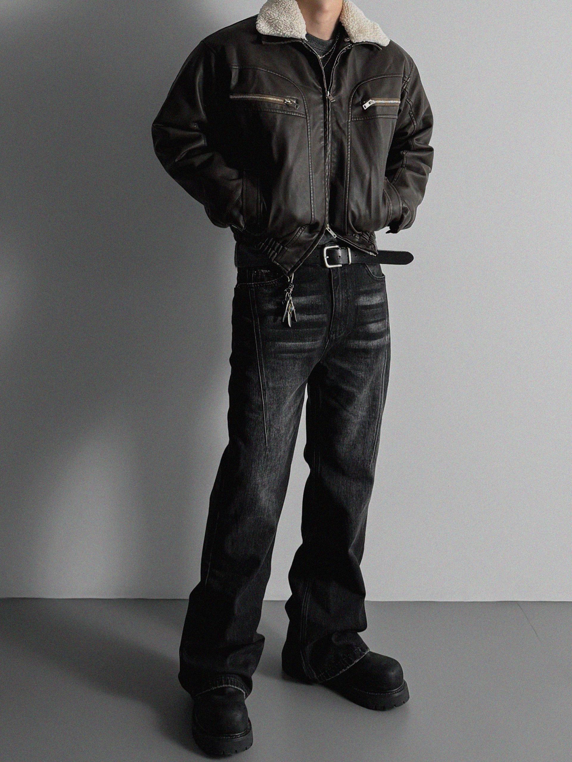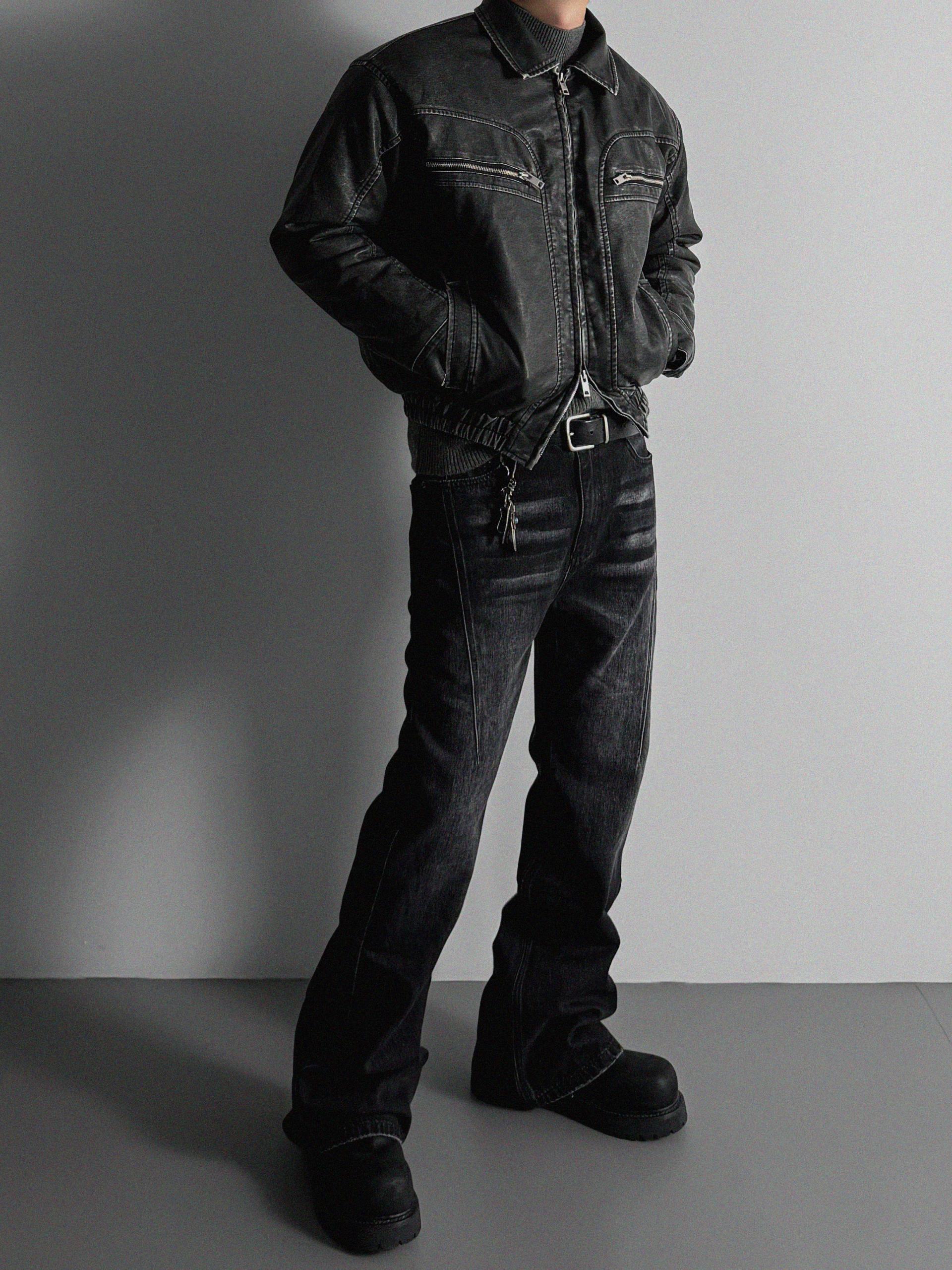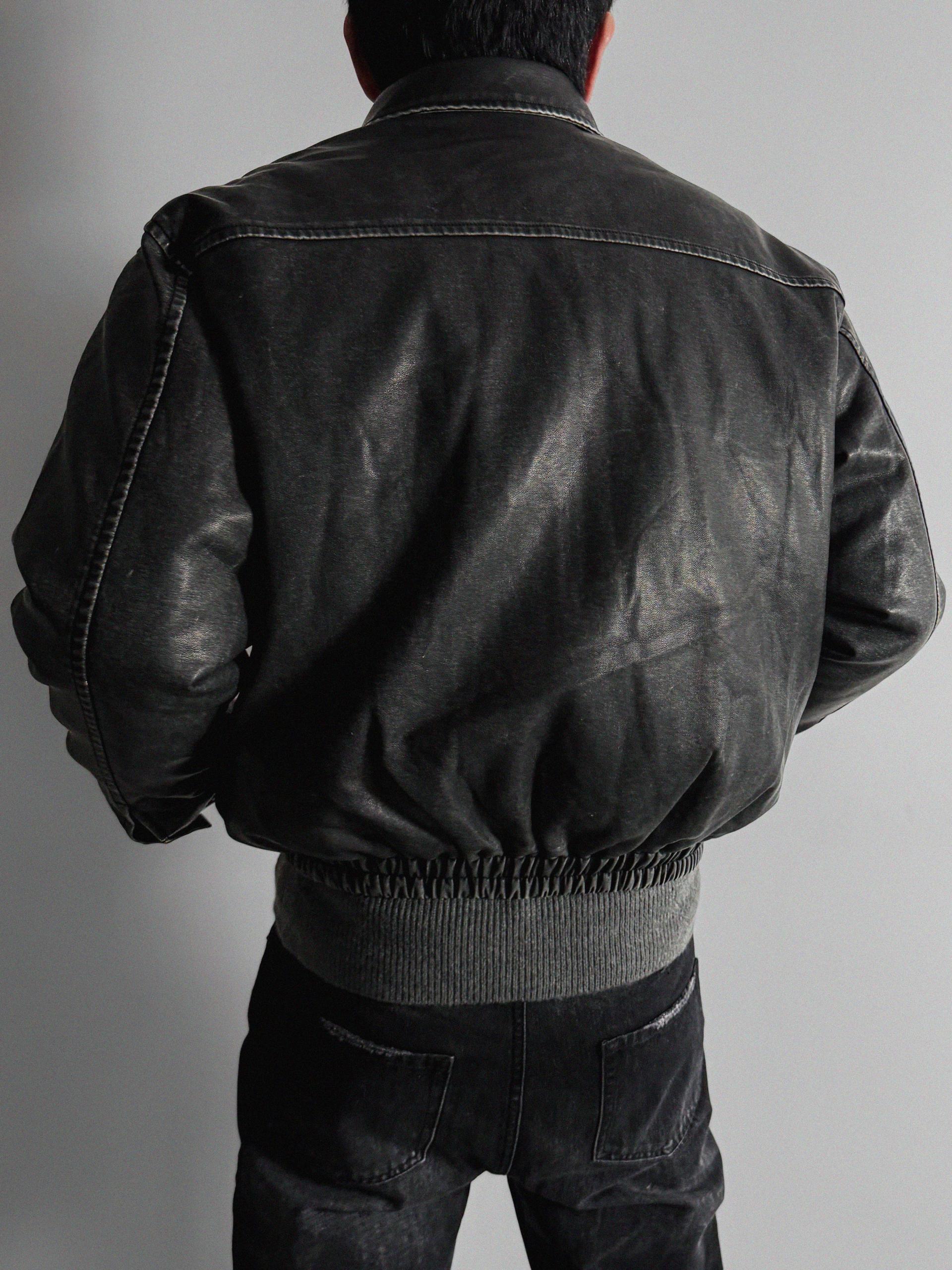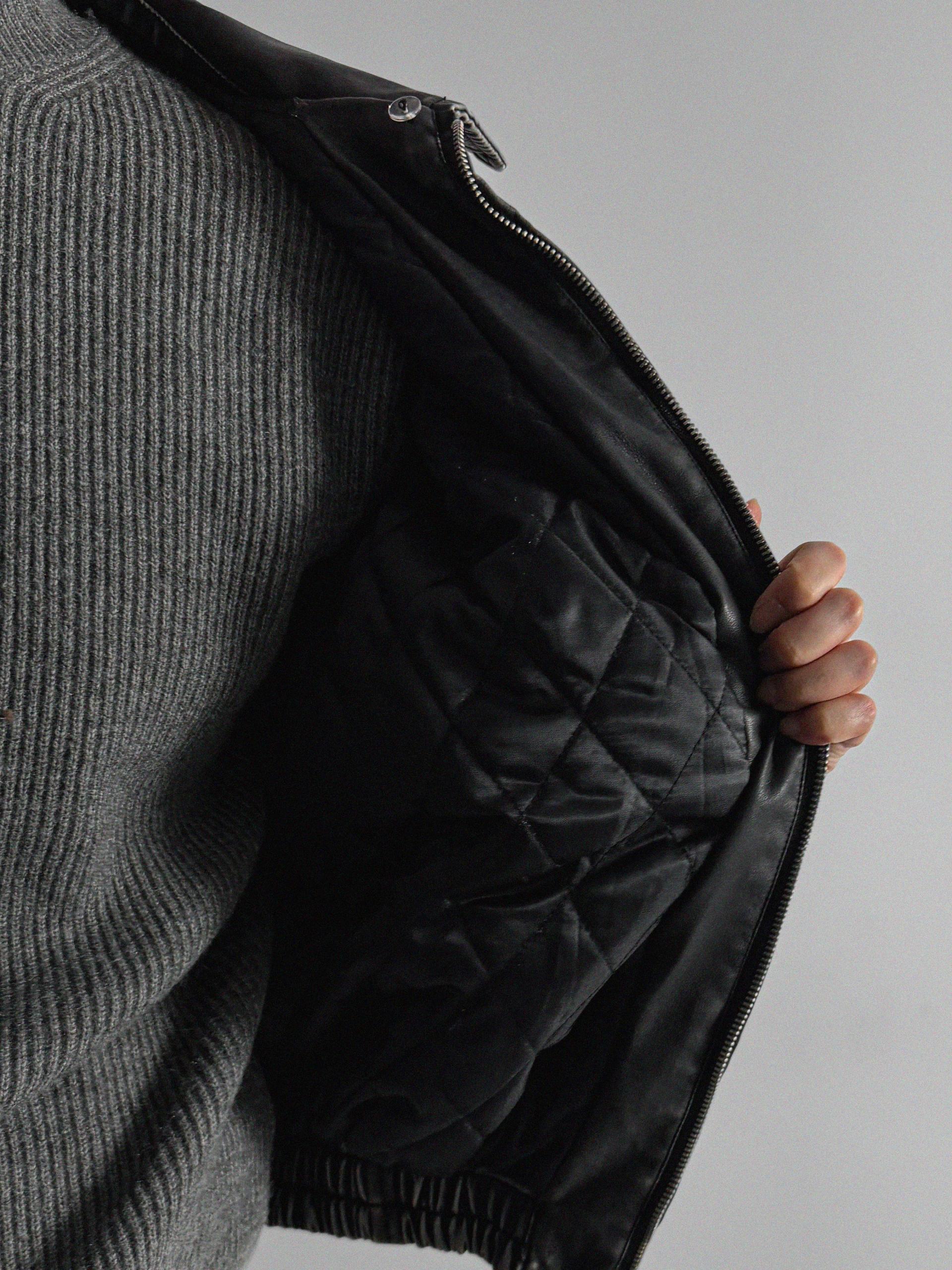 -러프한 원담감의 레더 패딩 자켓