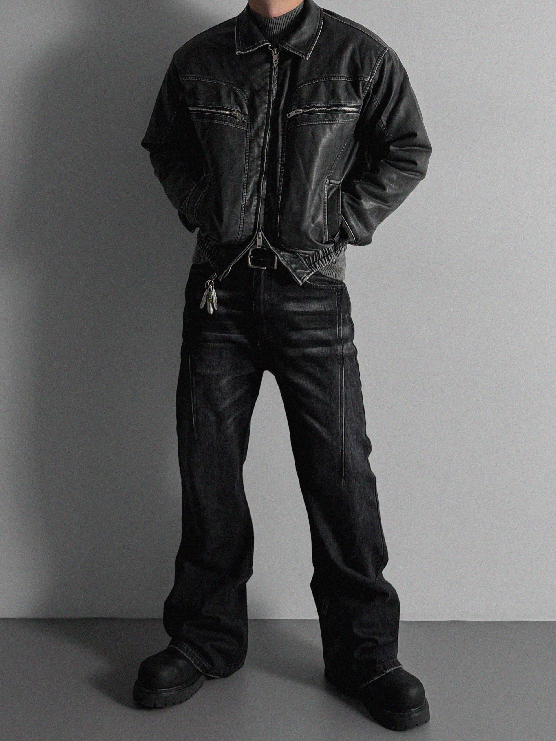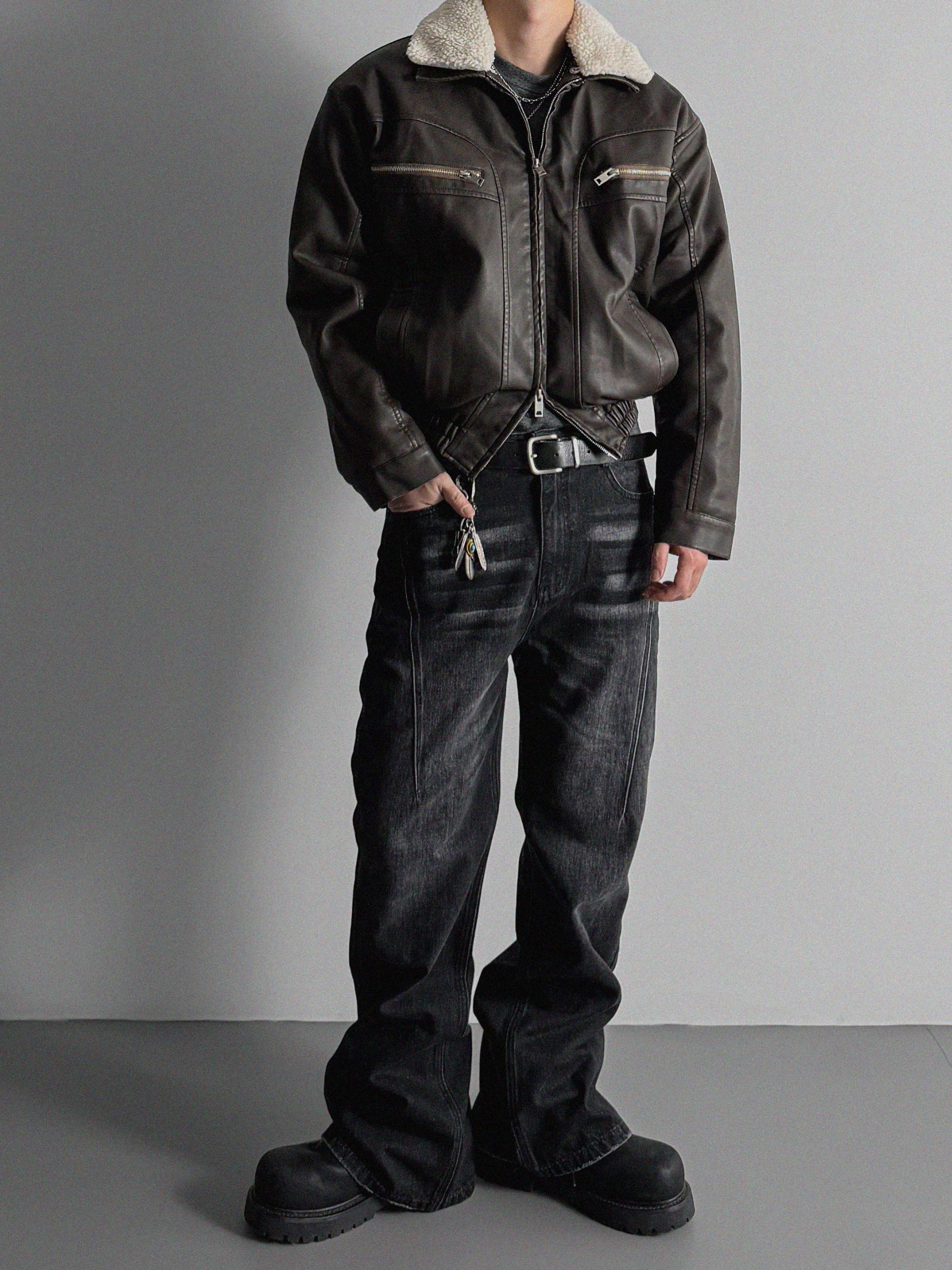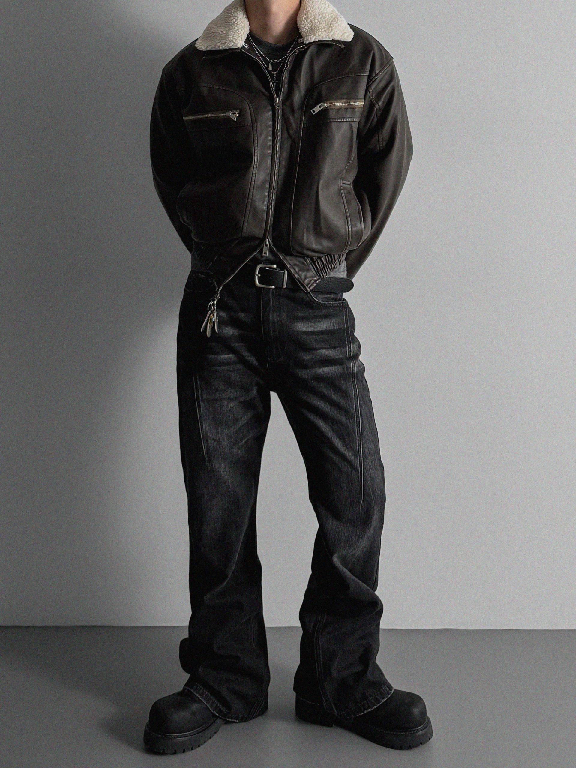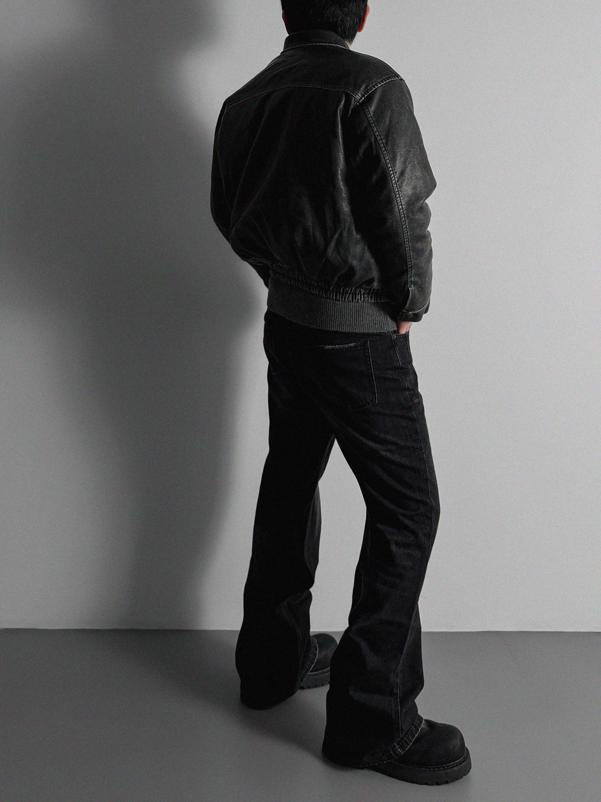 -러프한 원담감의 레더 패딩 자켓