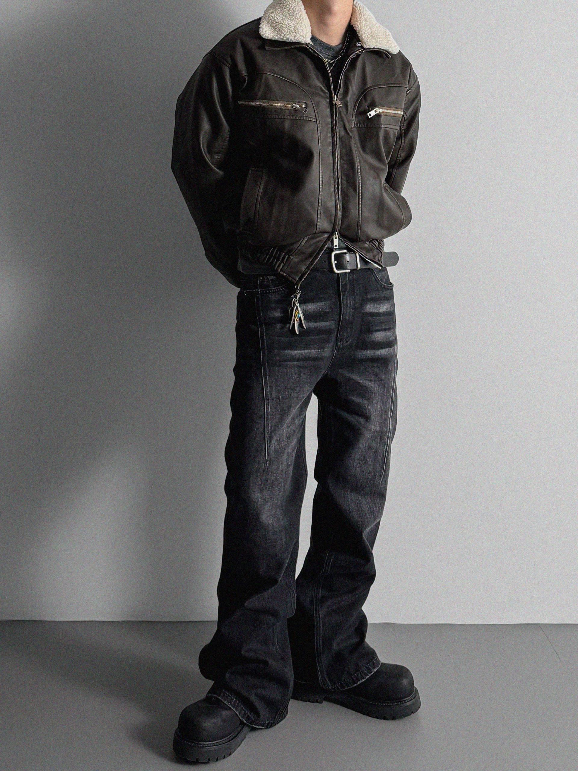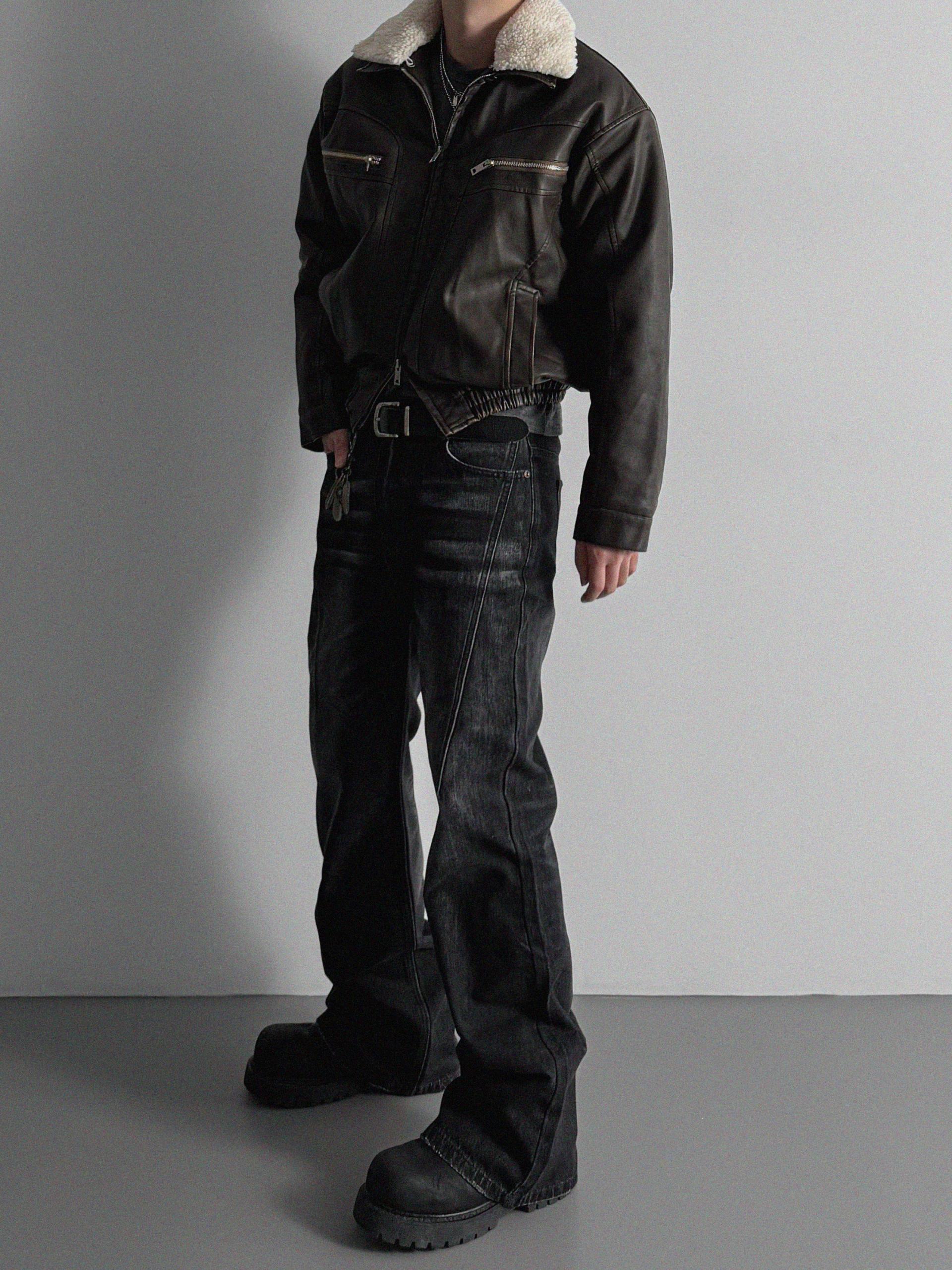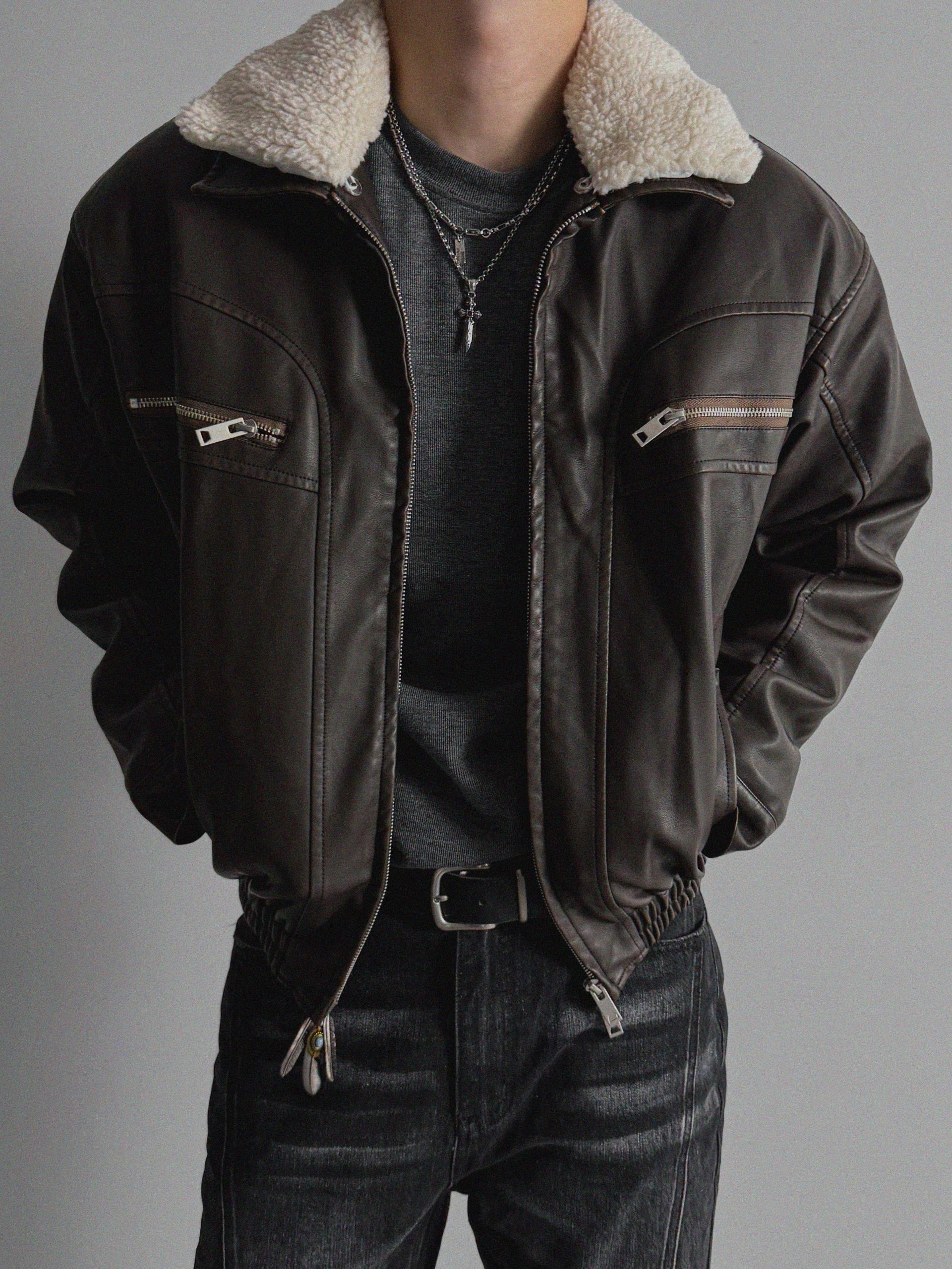 유니트 레더 무스탕 패디드 자켓