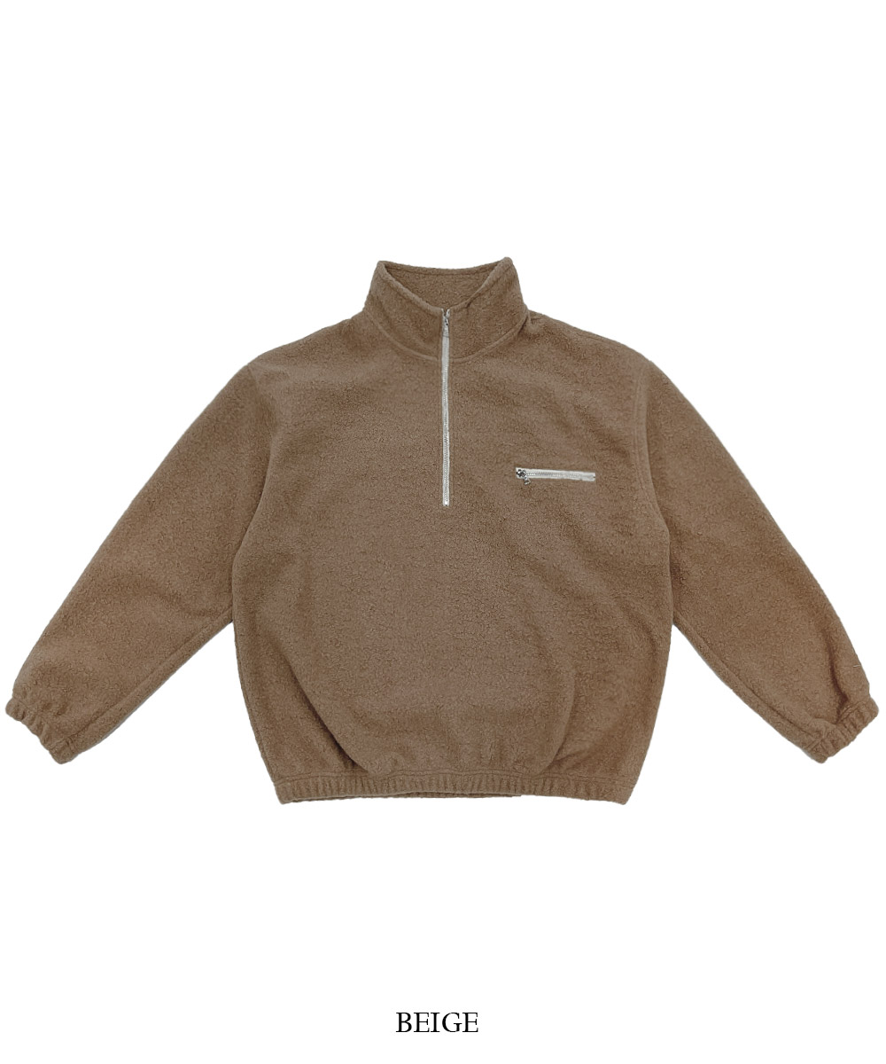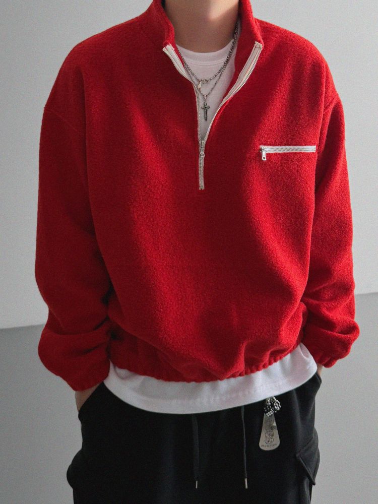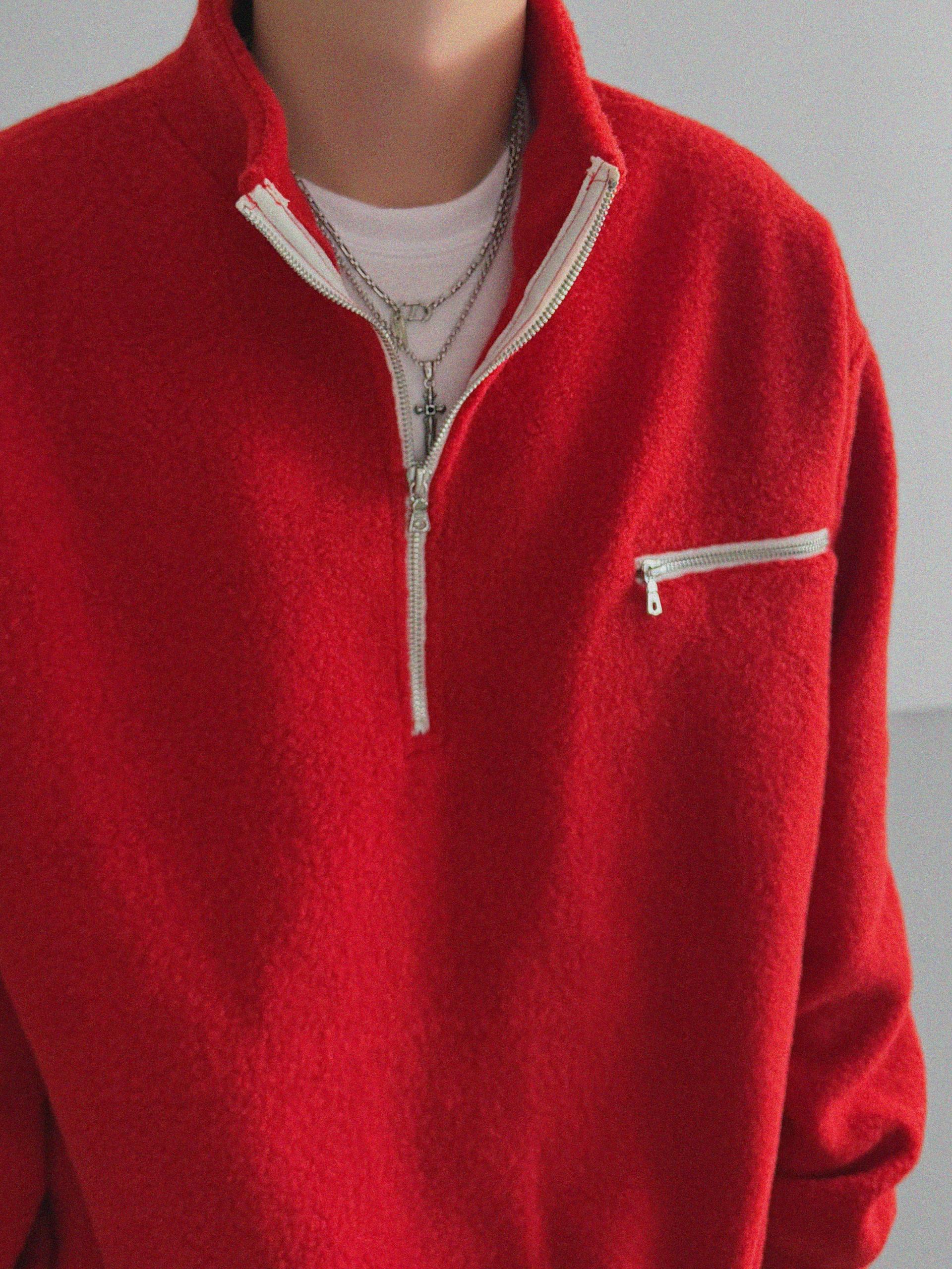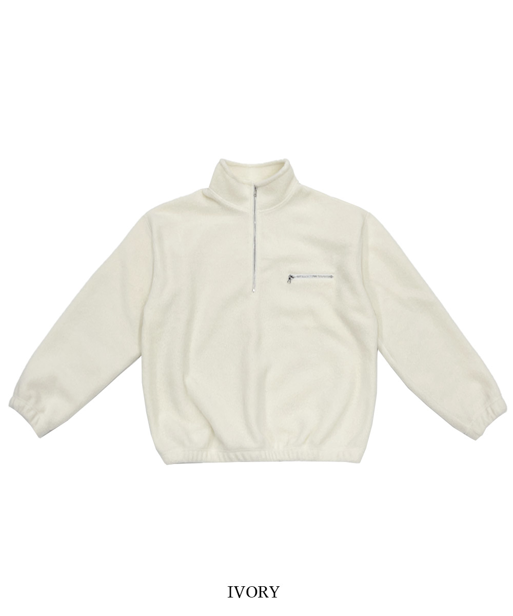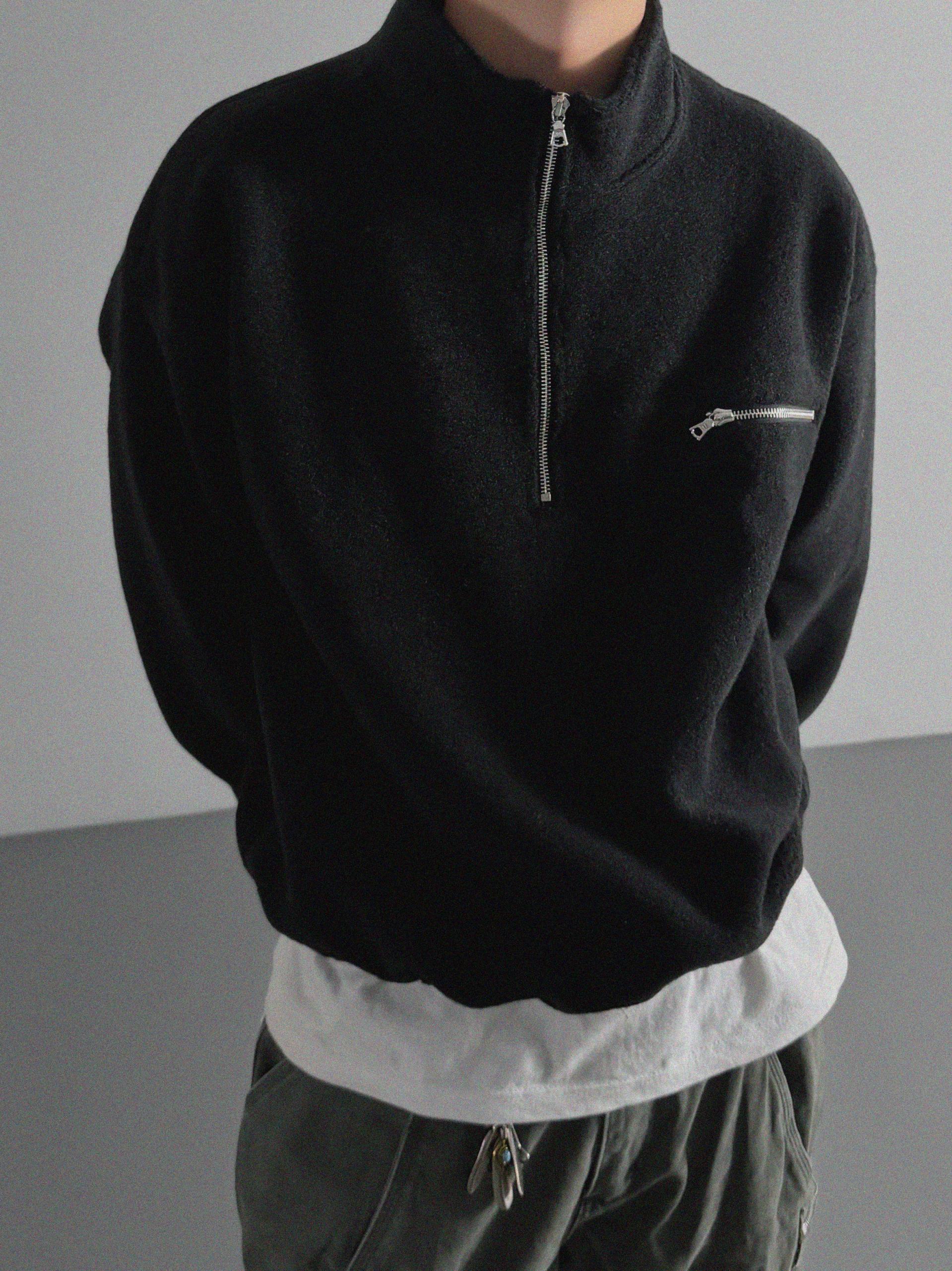-하이넥 반 집업, 왼쪽 가슴 지퍼 포켓