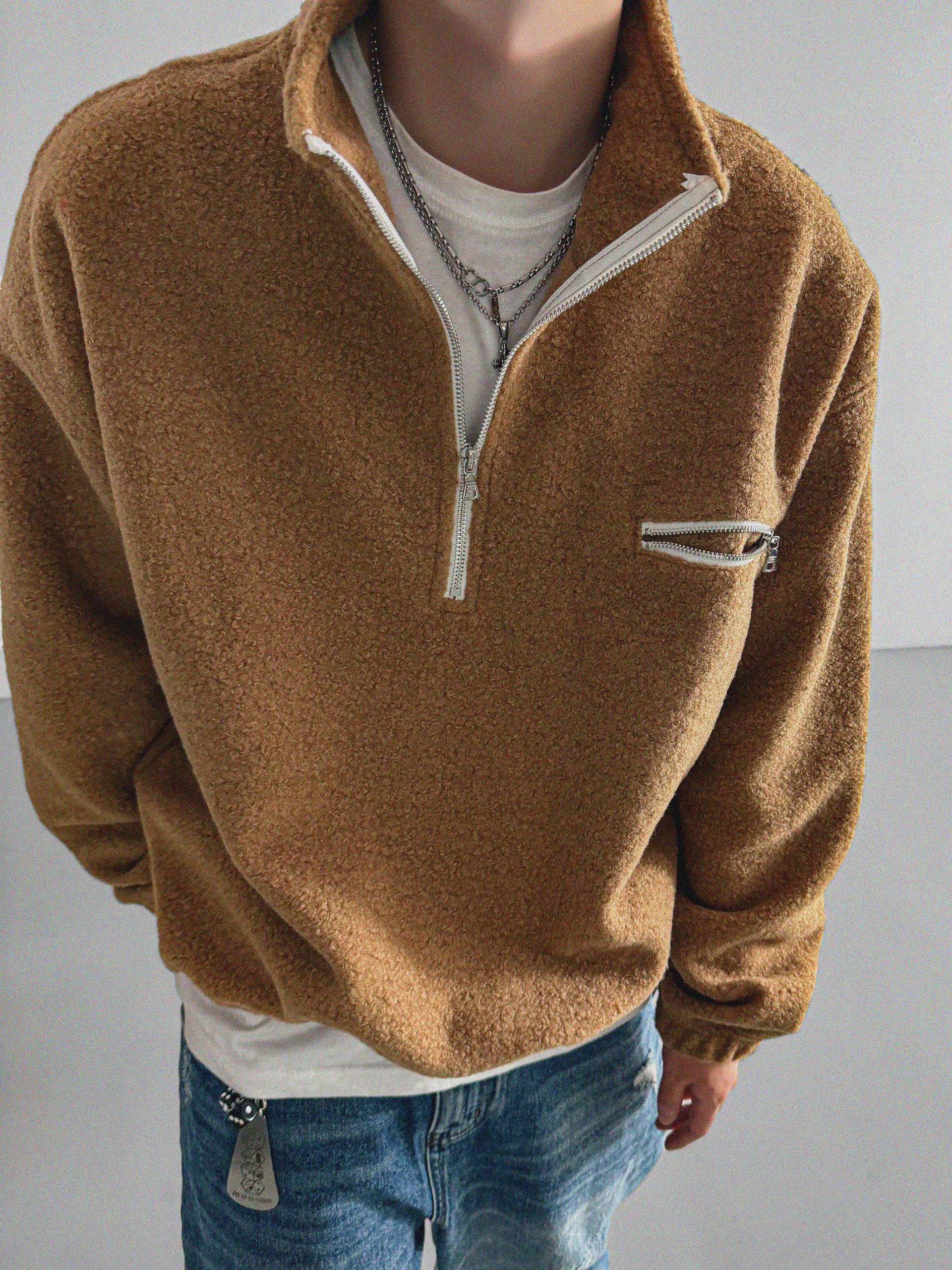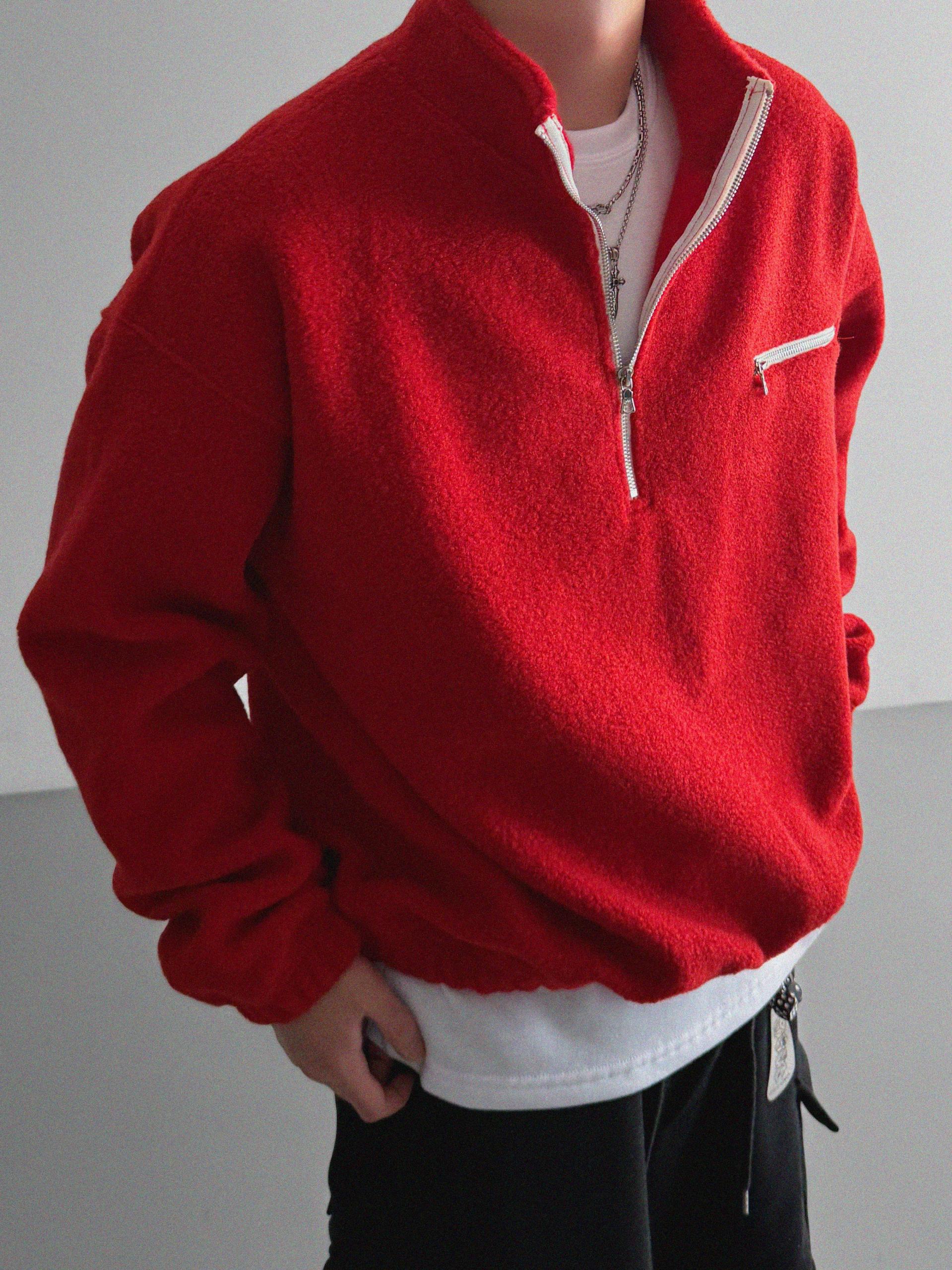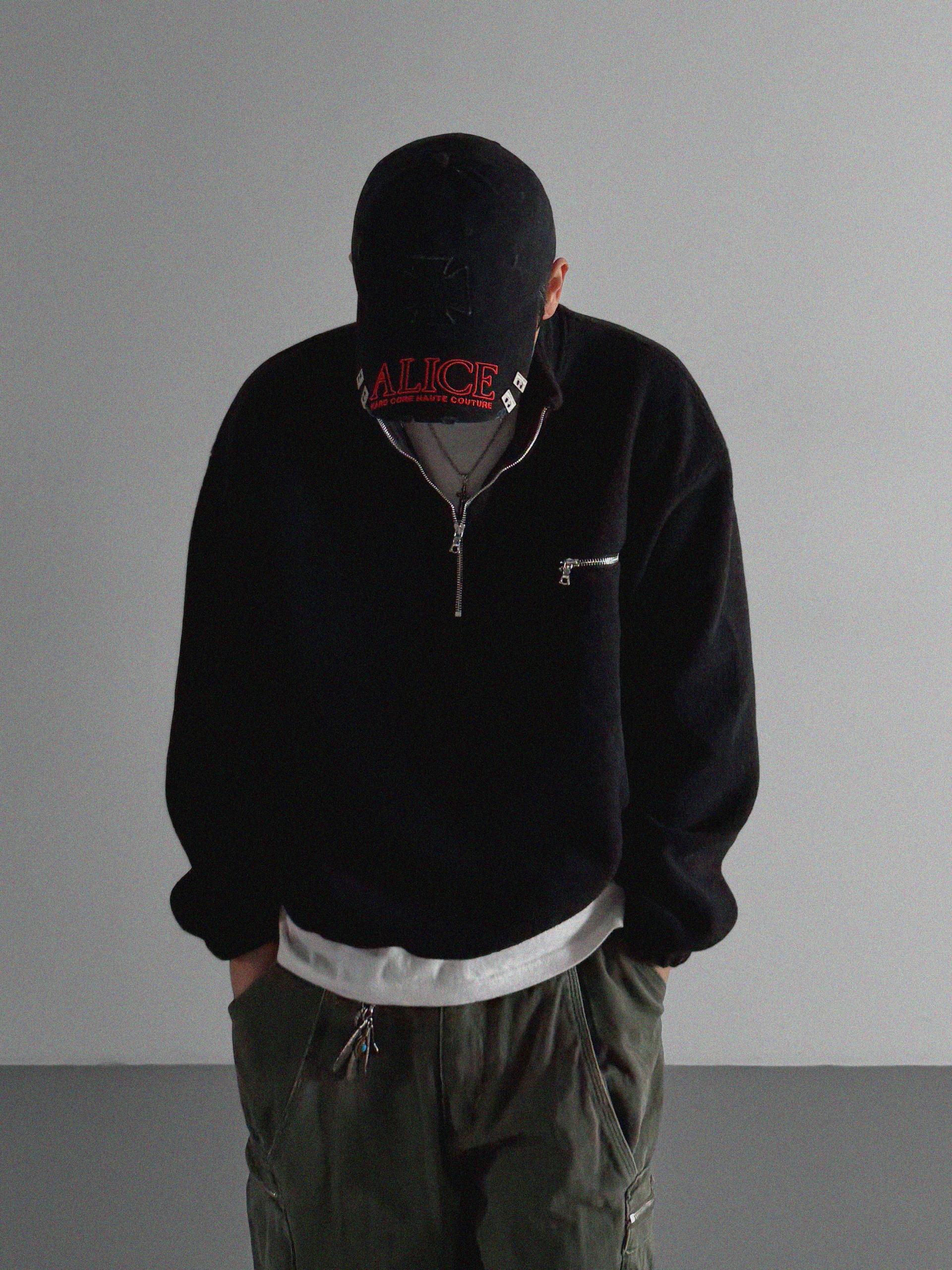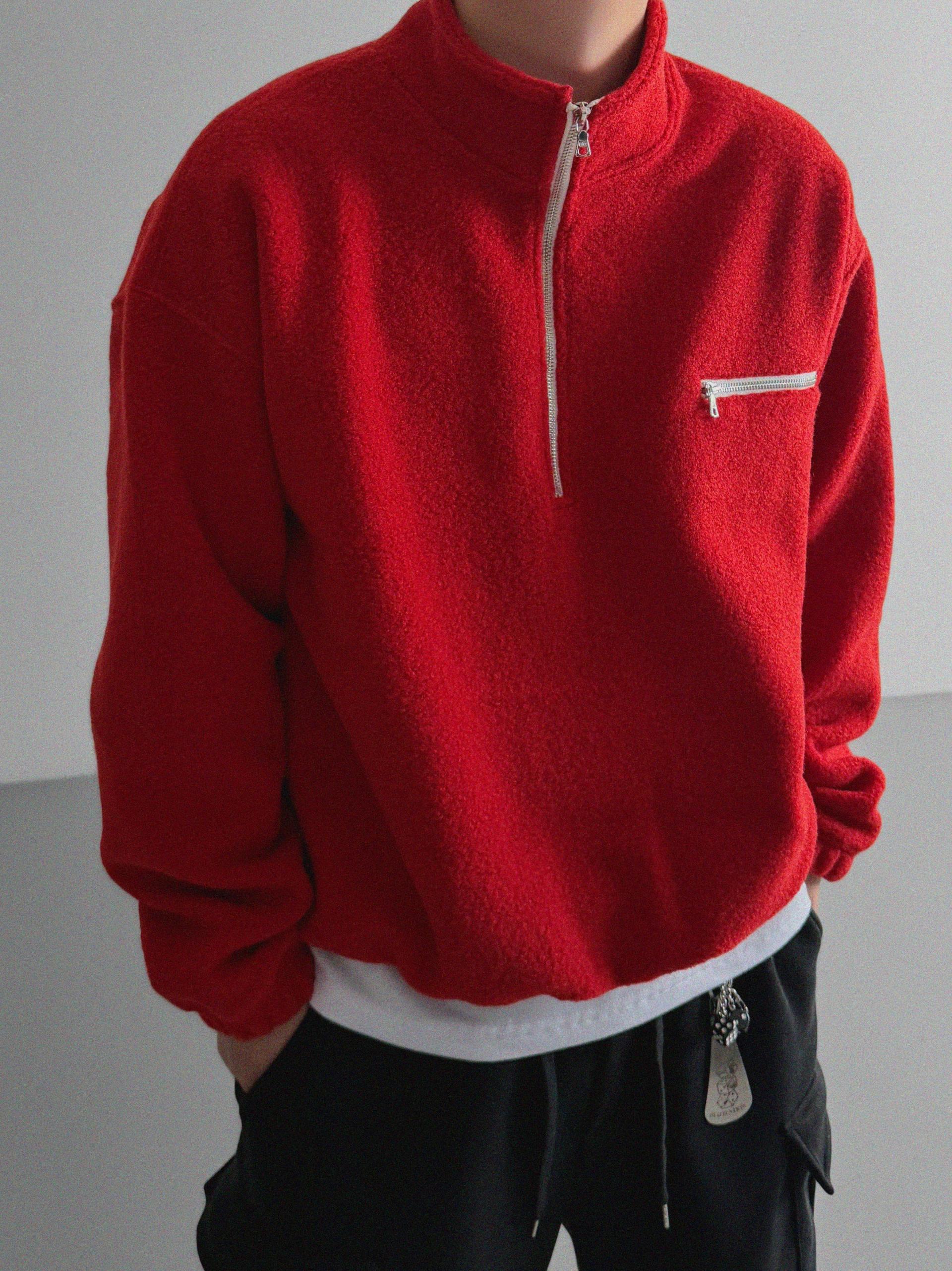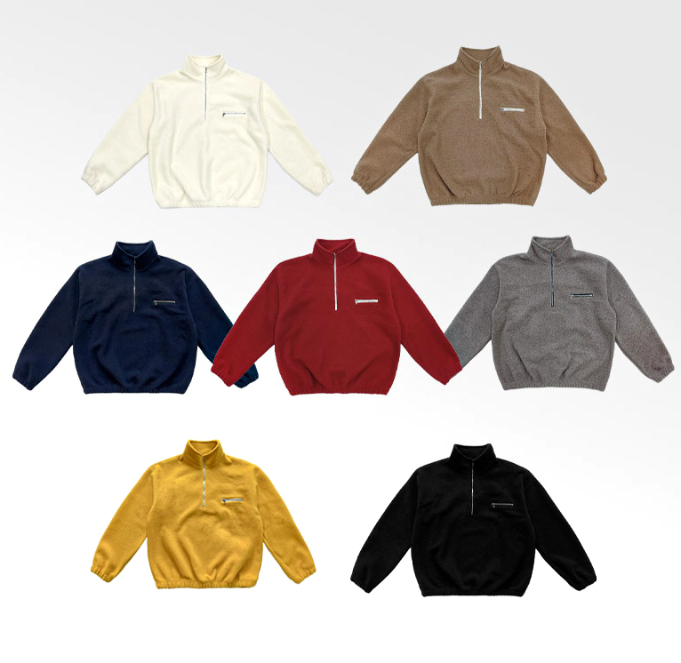 -하이넥 반 집업, 왼쪽 가슴 지퍼 포켓