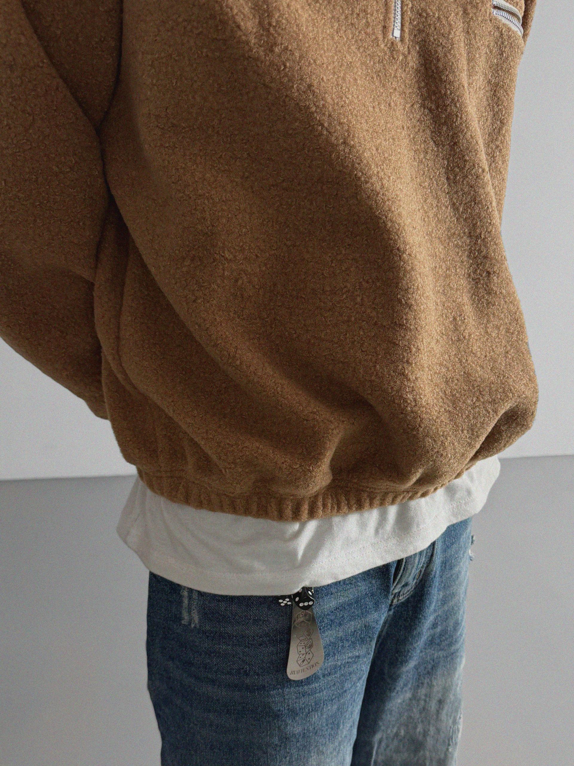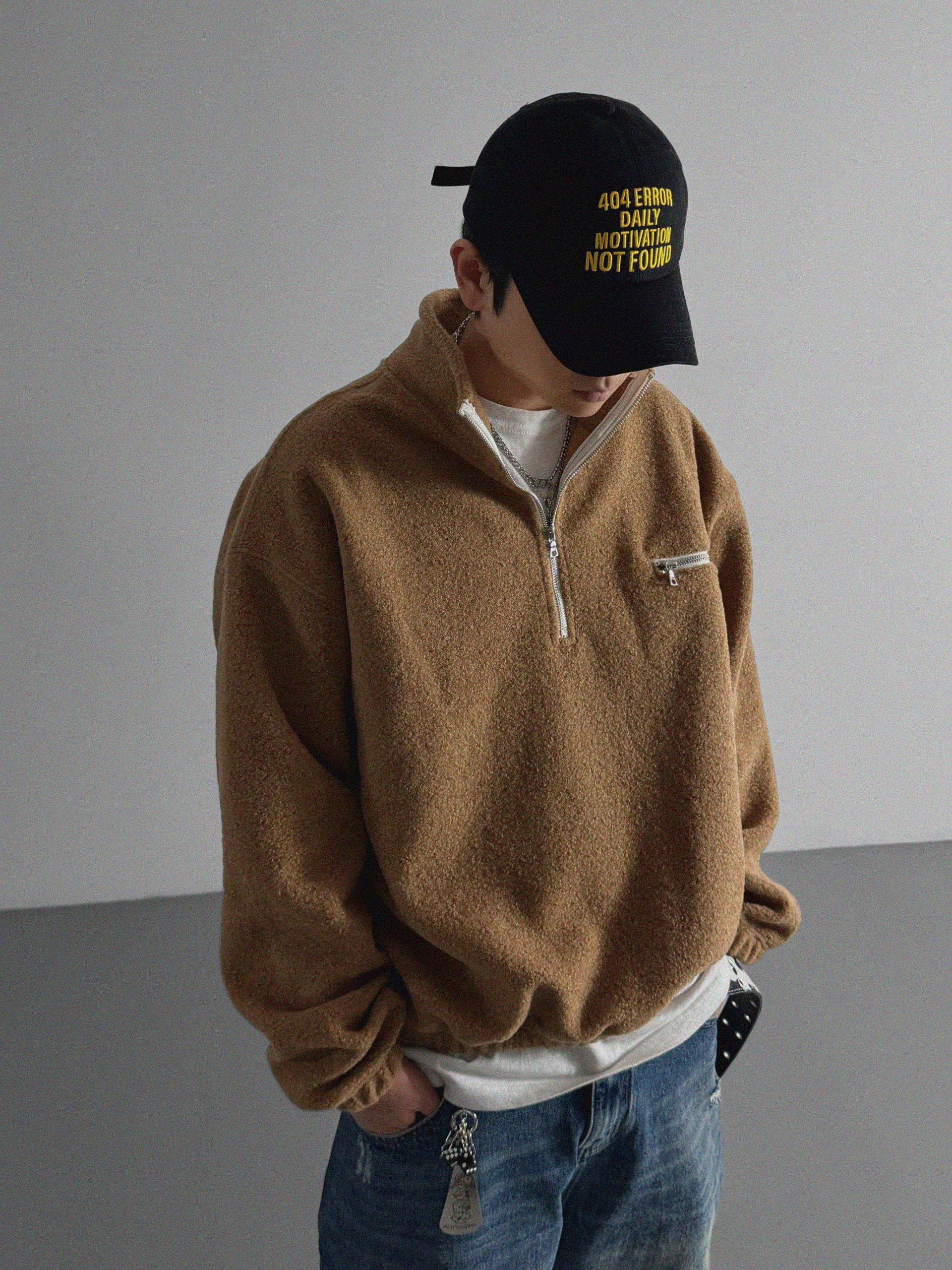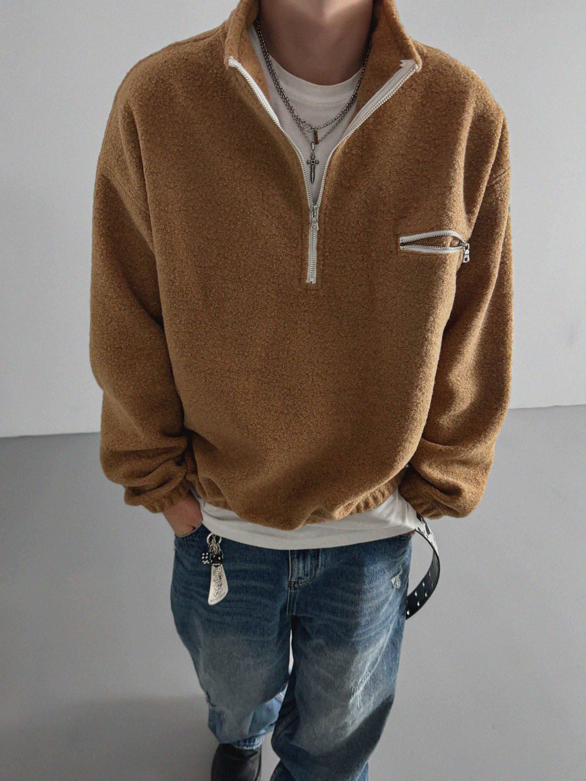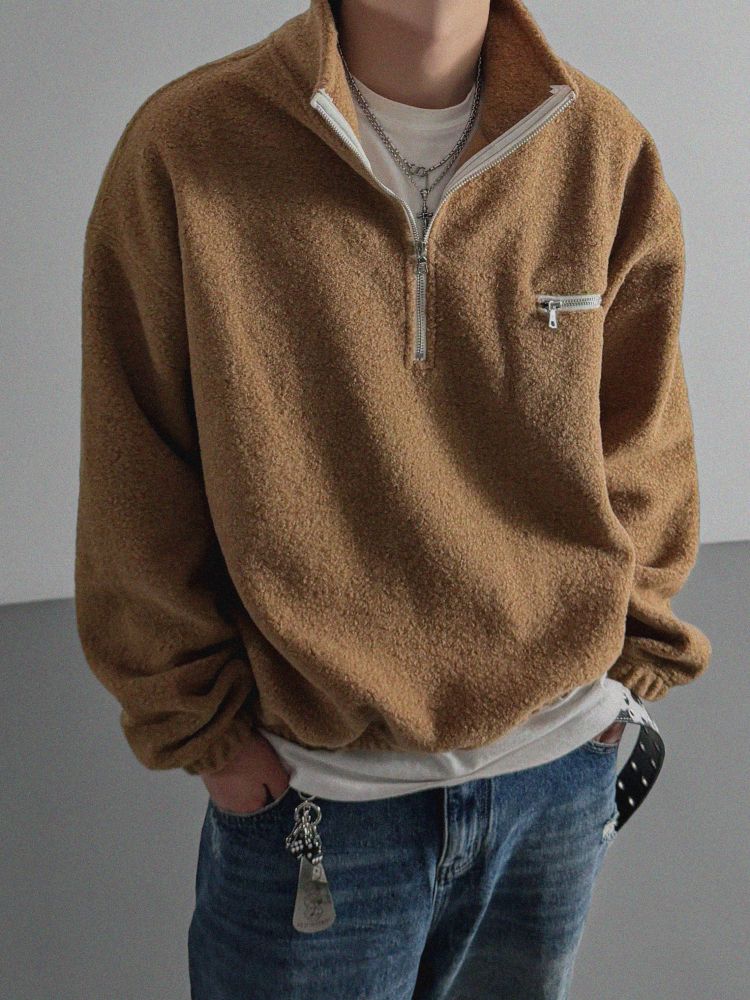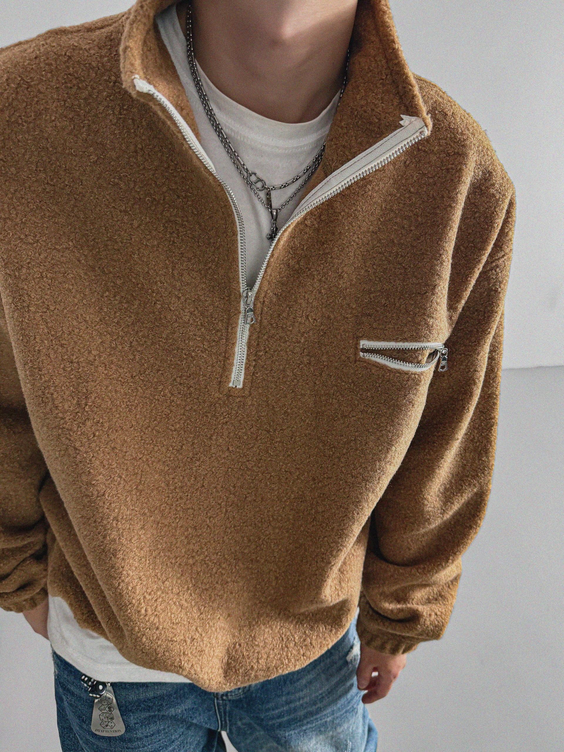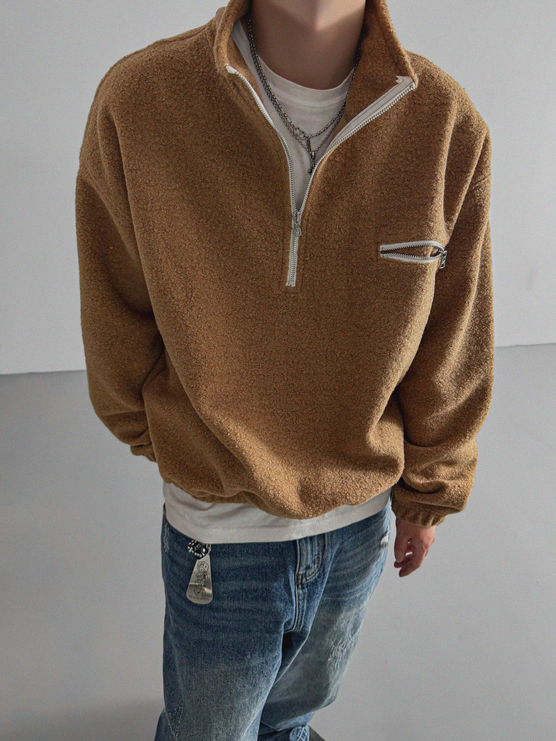 -하이넥 반 집업, 왼쪽 가슴 지퍼 포켓