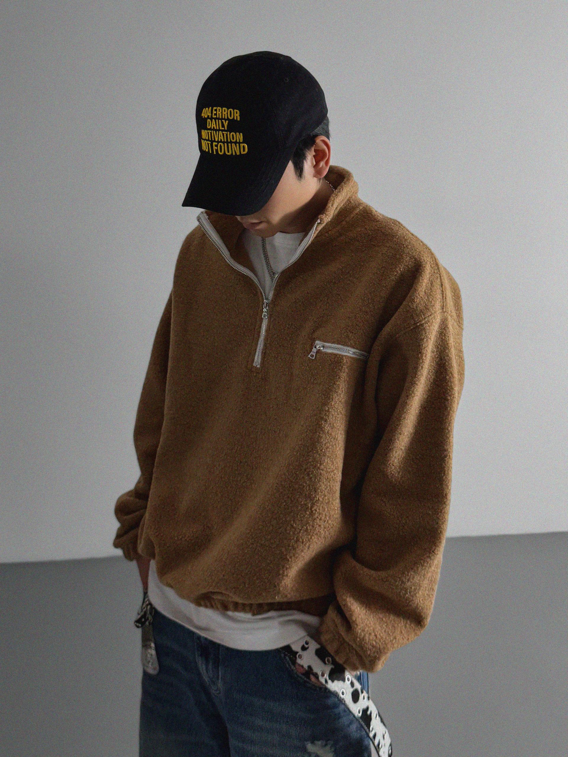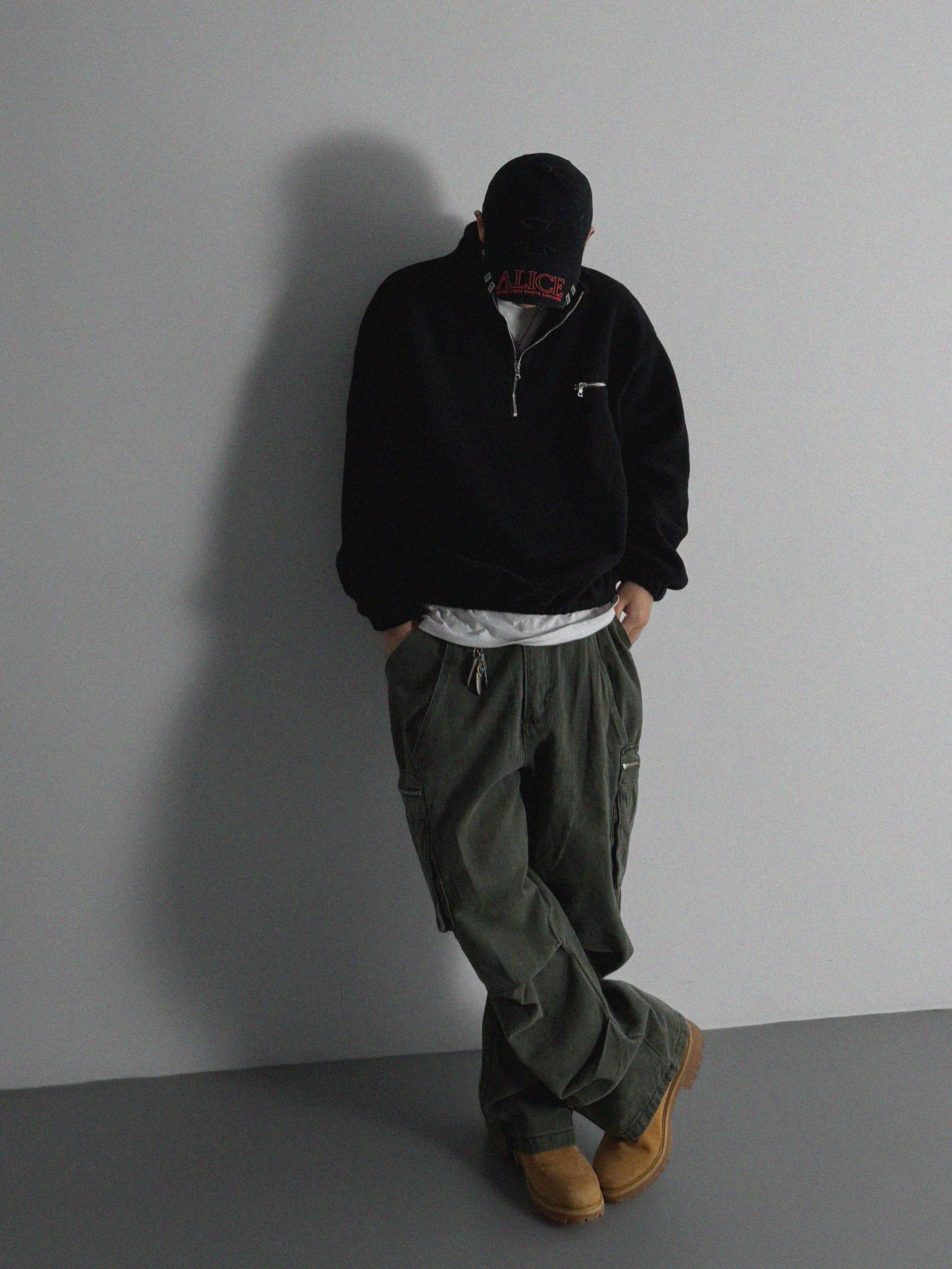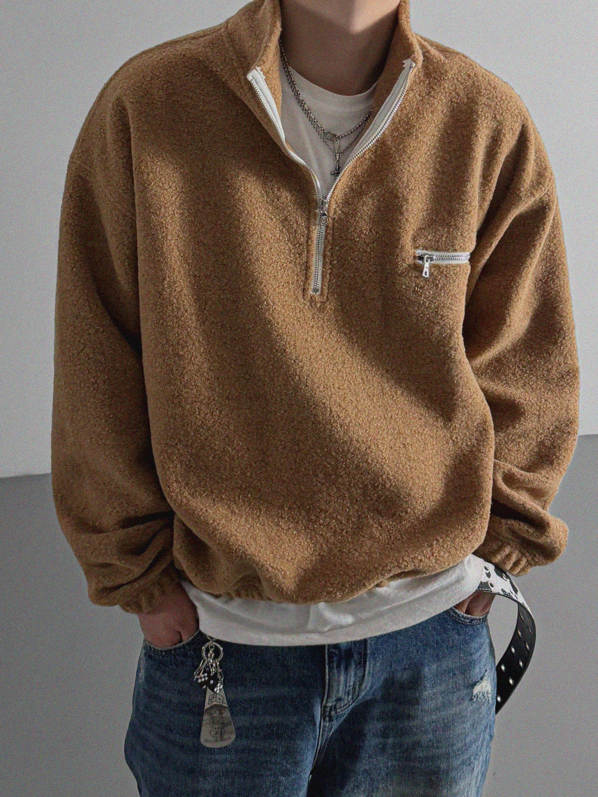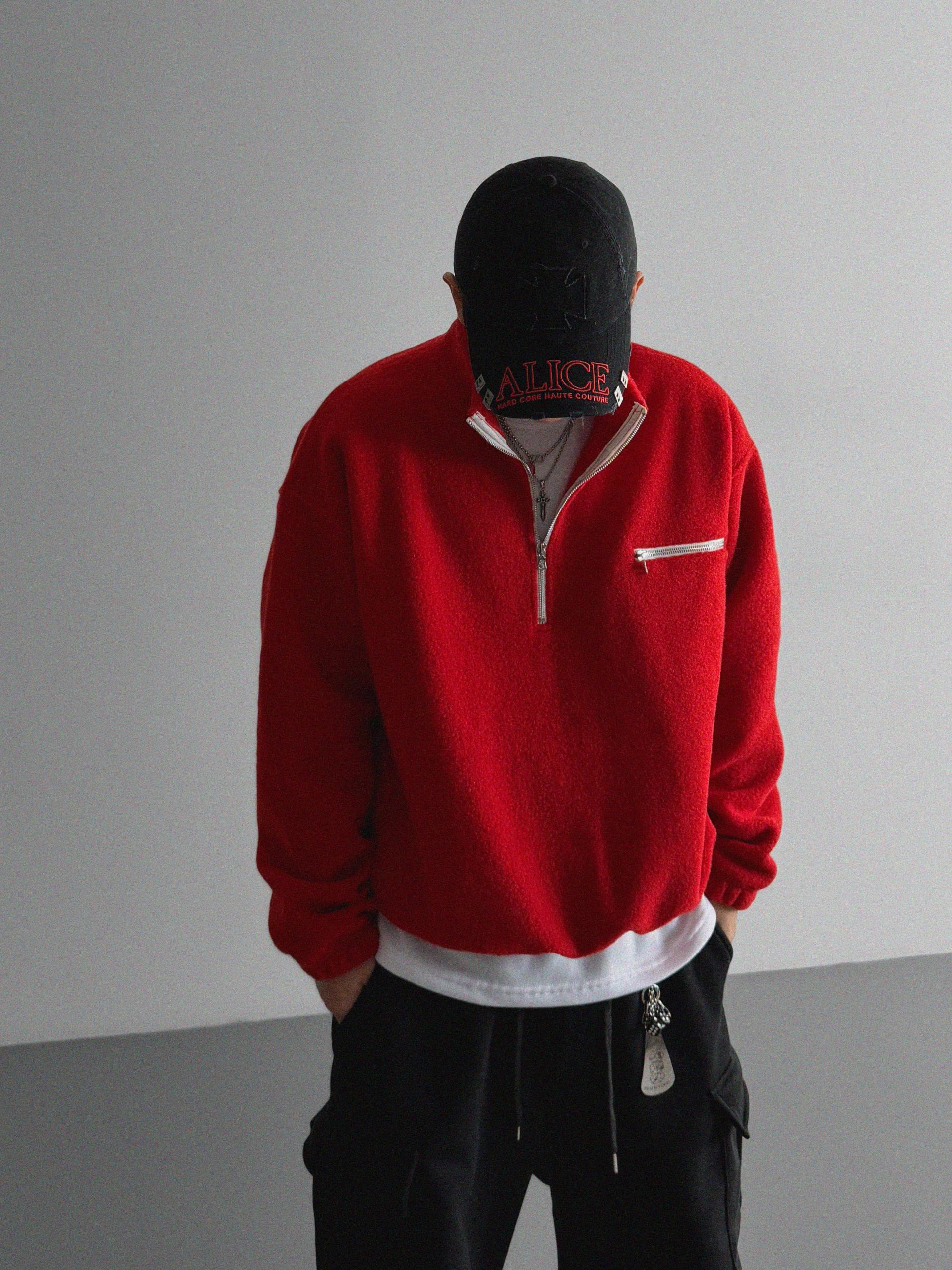 -하이넥 반 집업, 왼쪽 가슴 지퍼 포켓