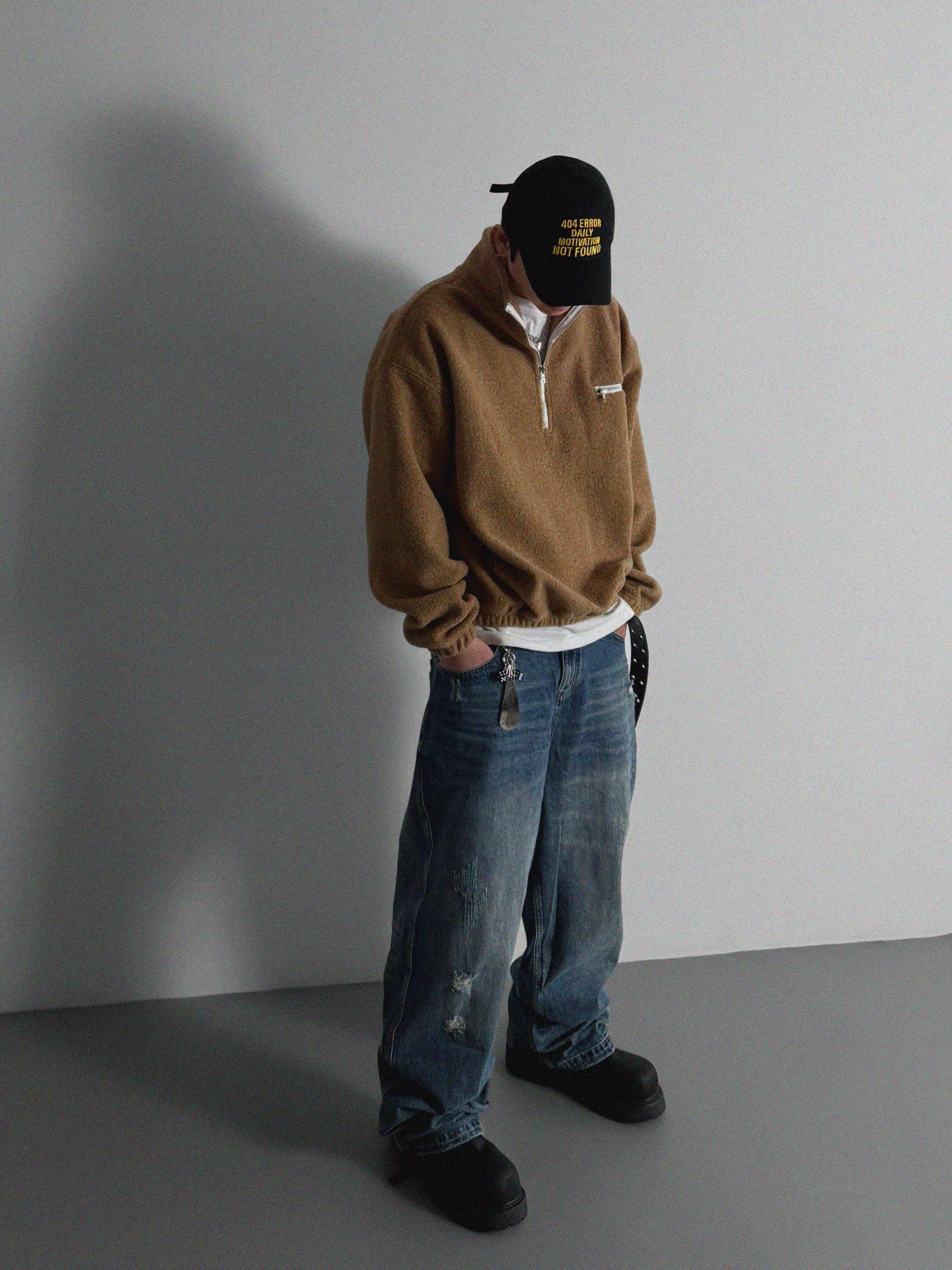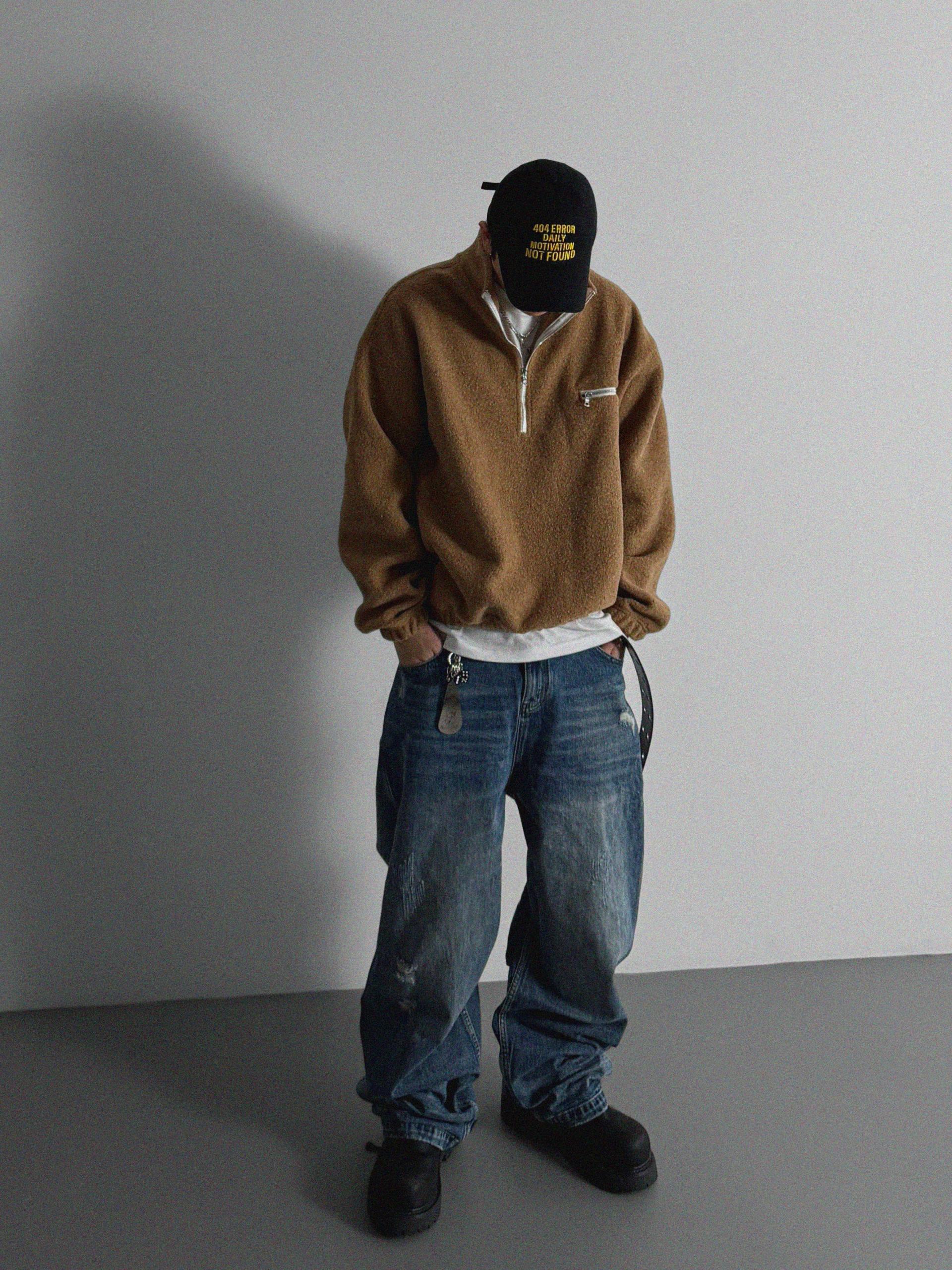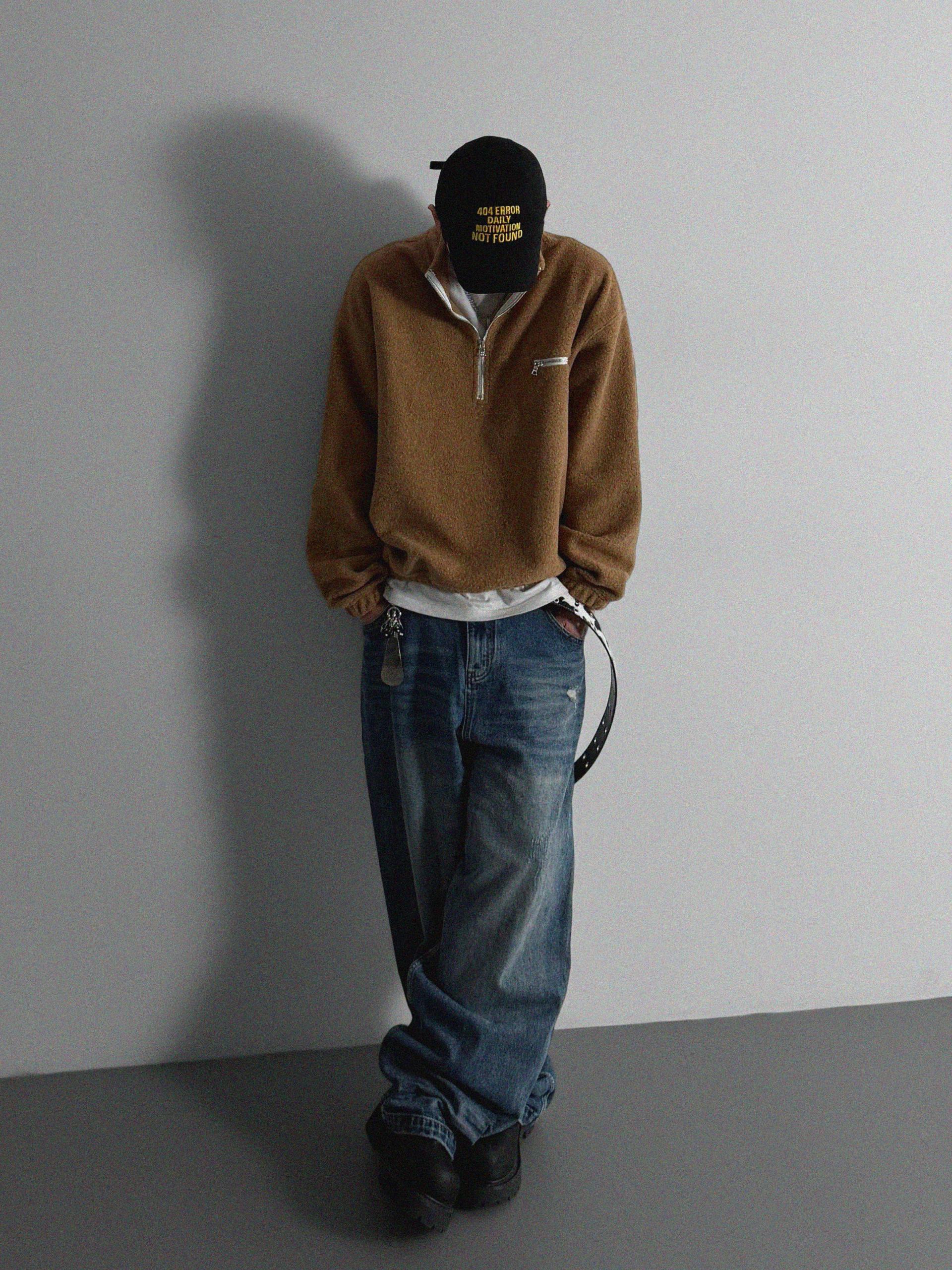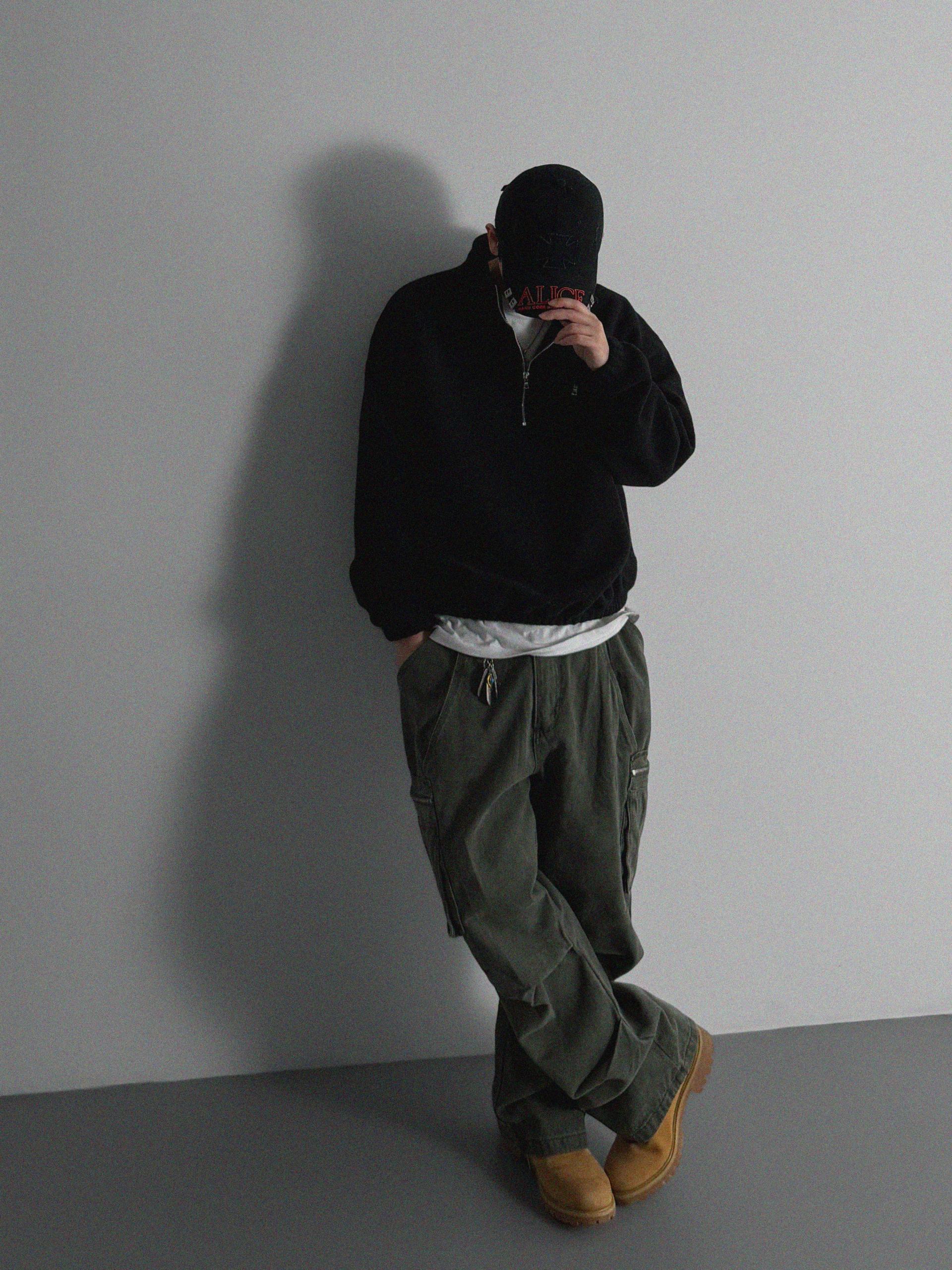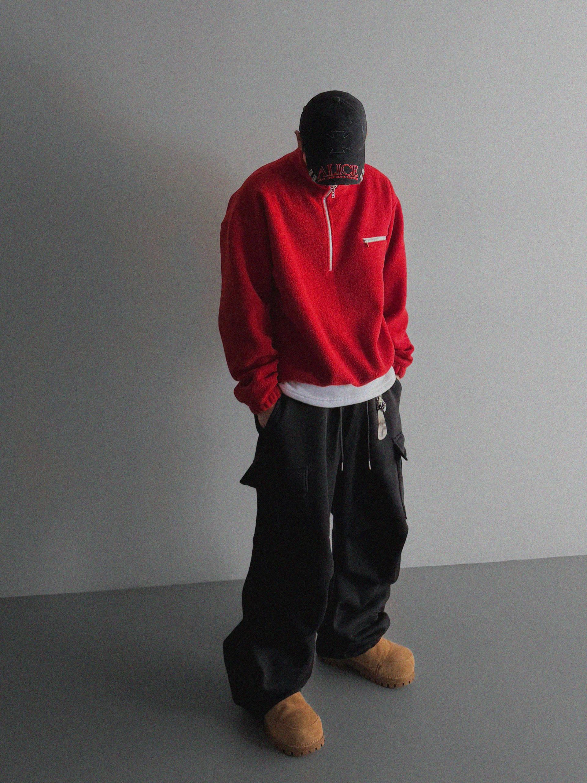 -하이넥 반 집업, 왼쪽 가슴 지퍼 포켓