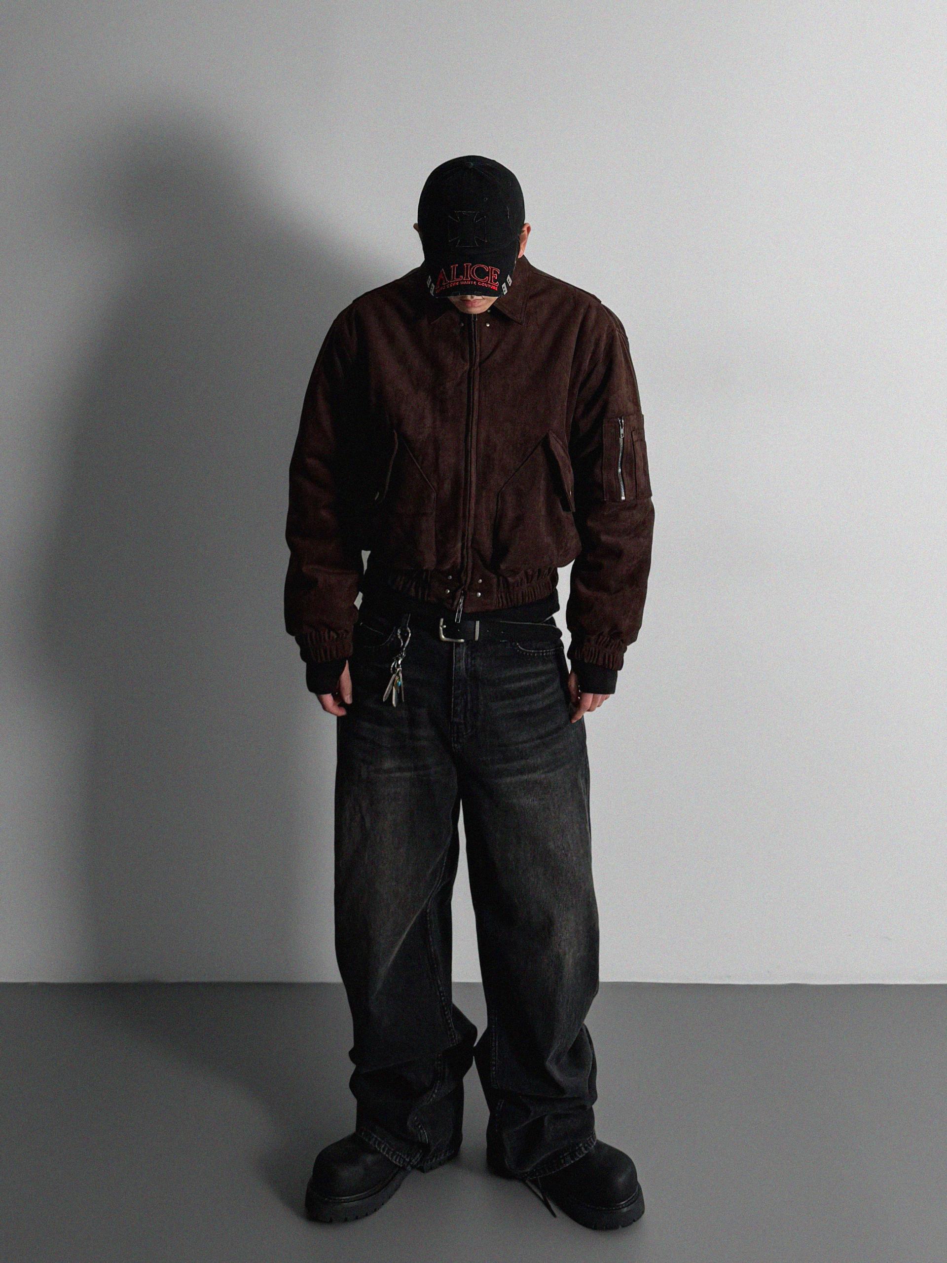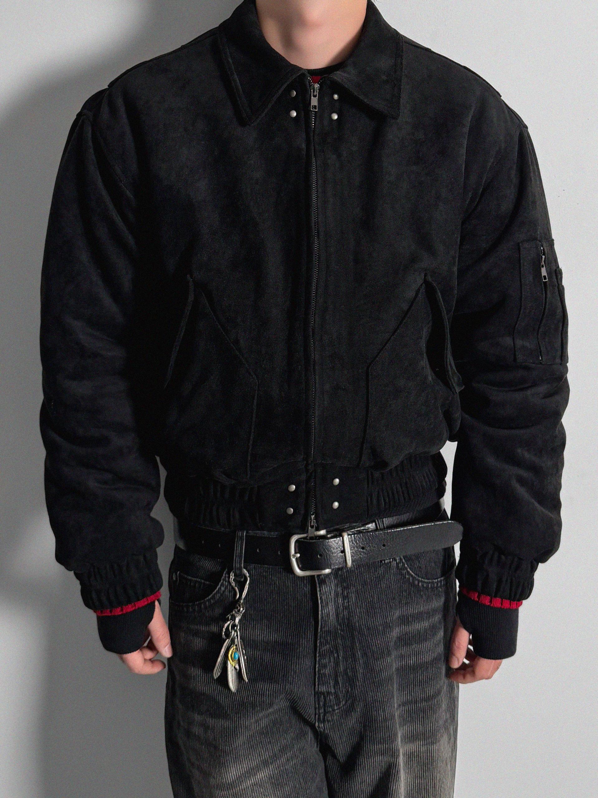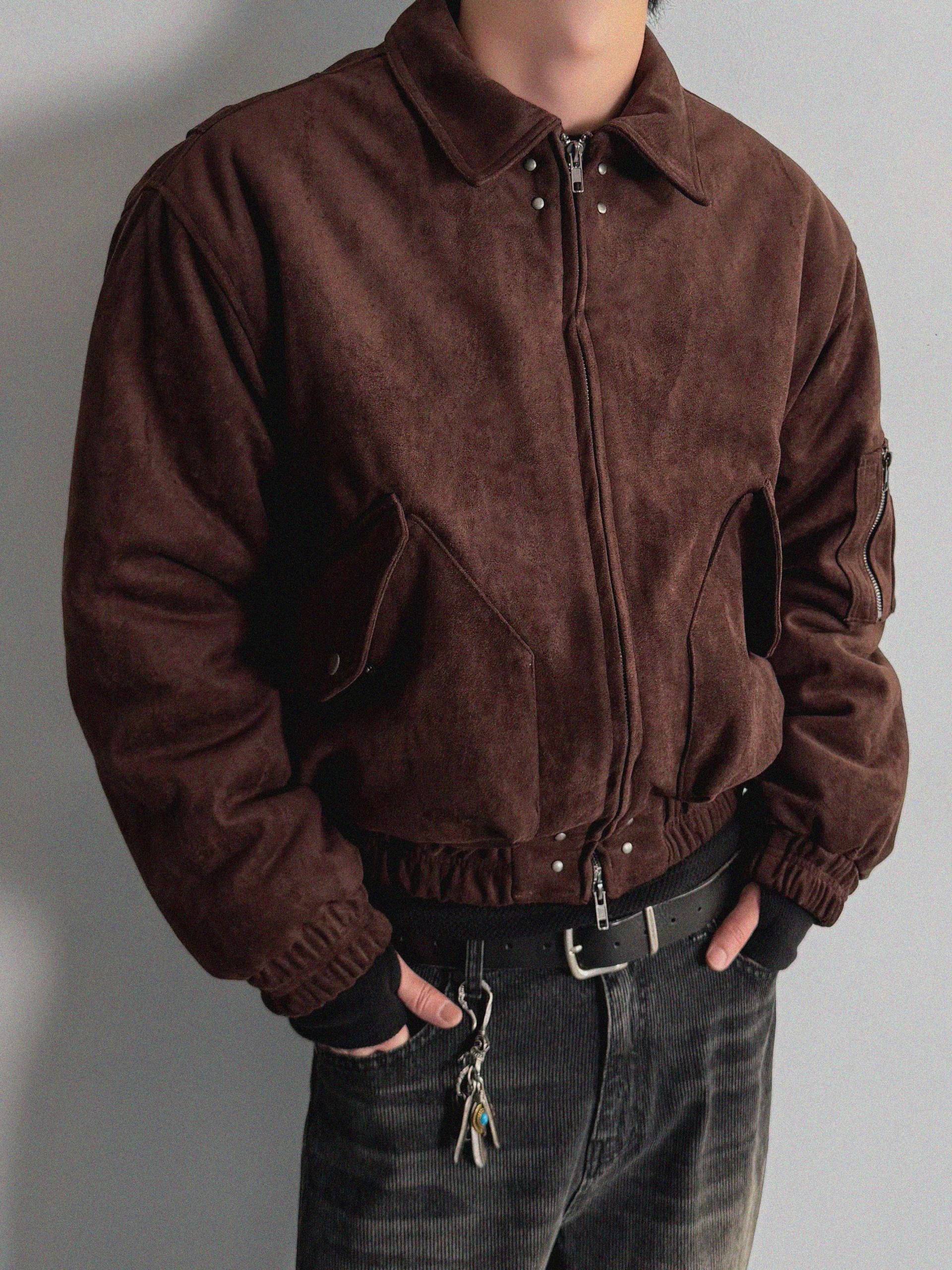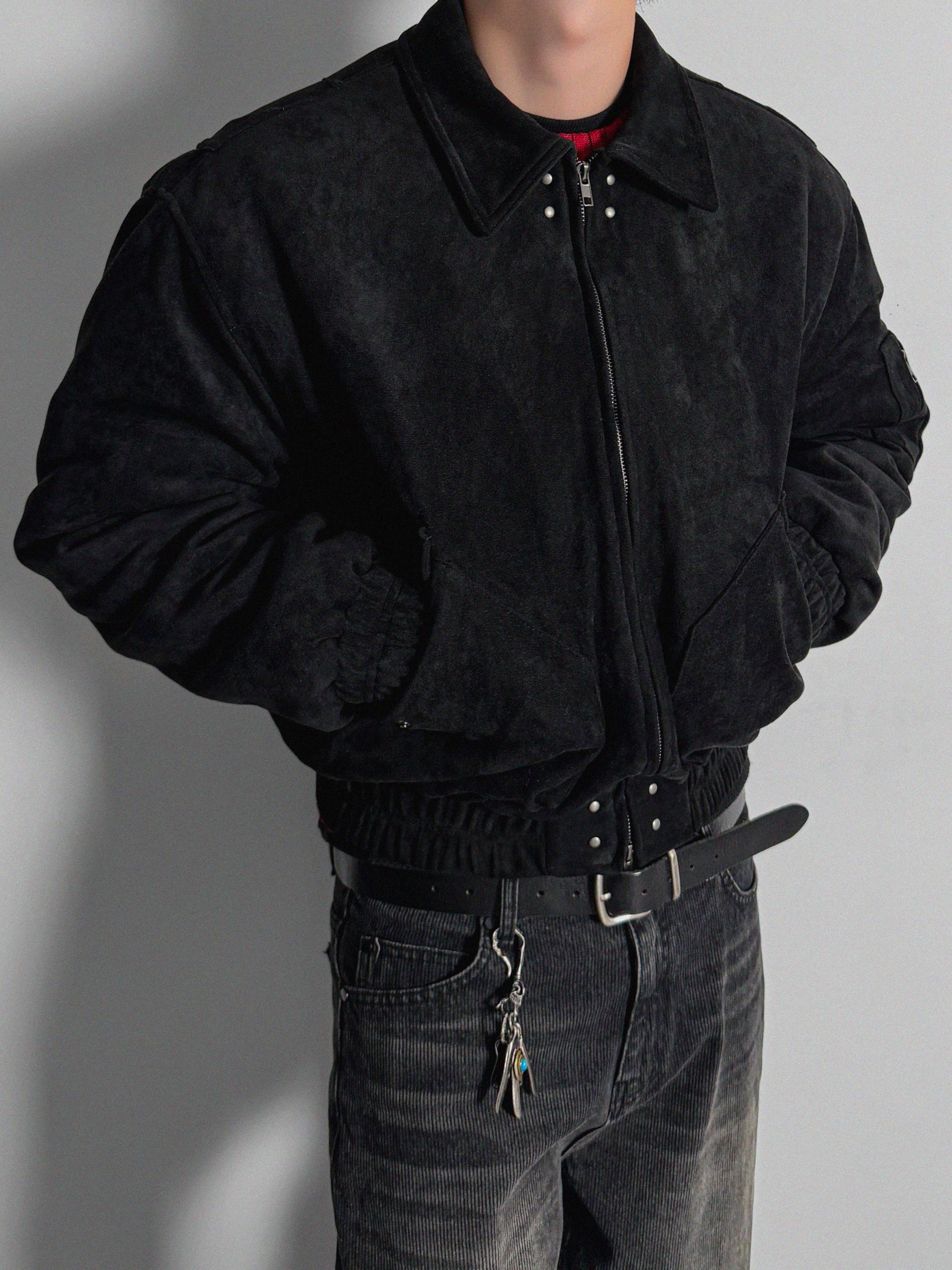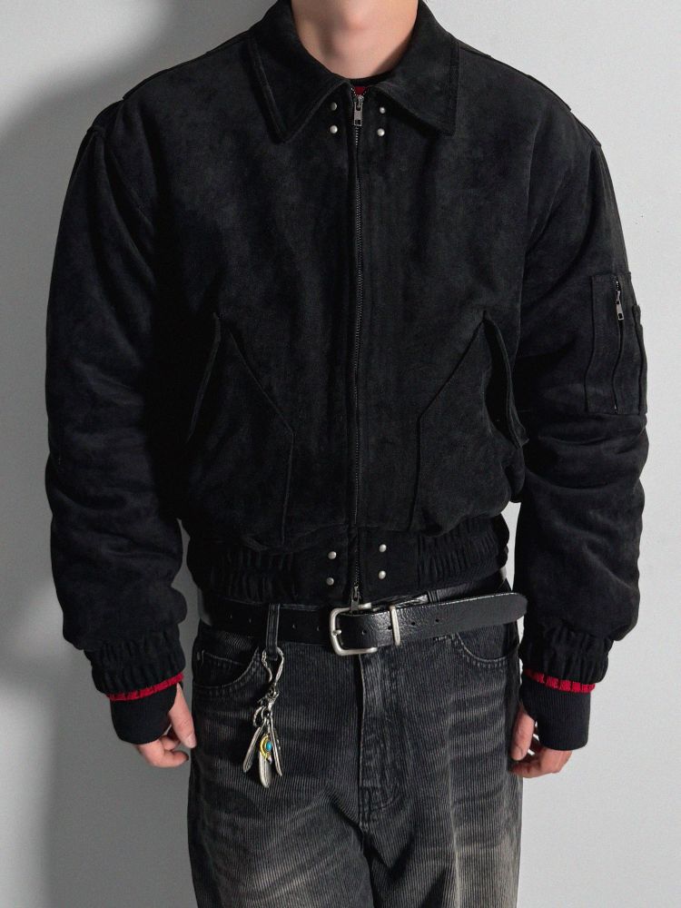 리벳 스웨이드 크롭 플라이트 자켓