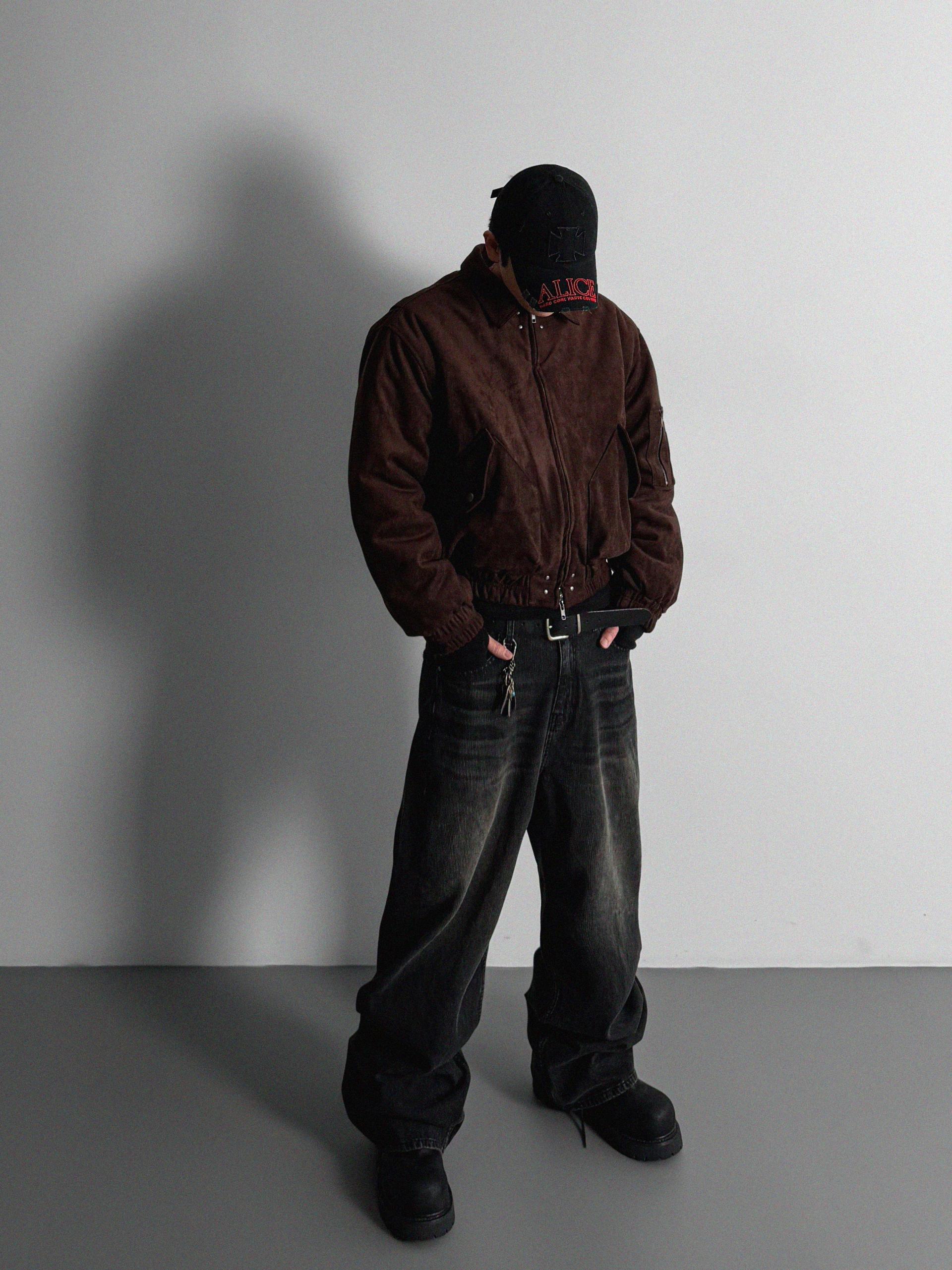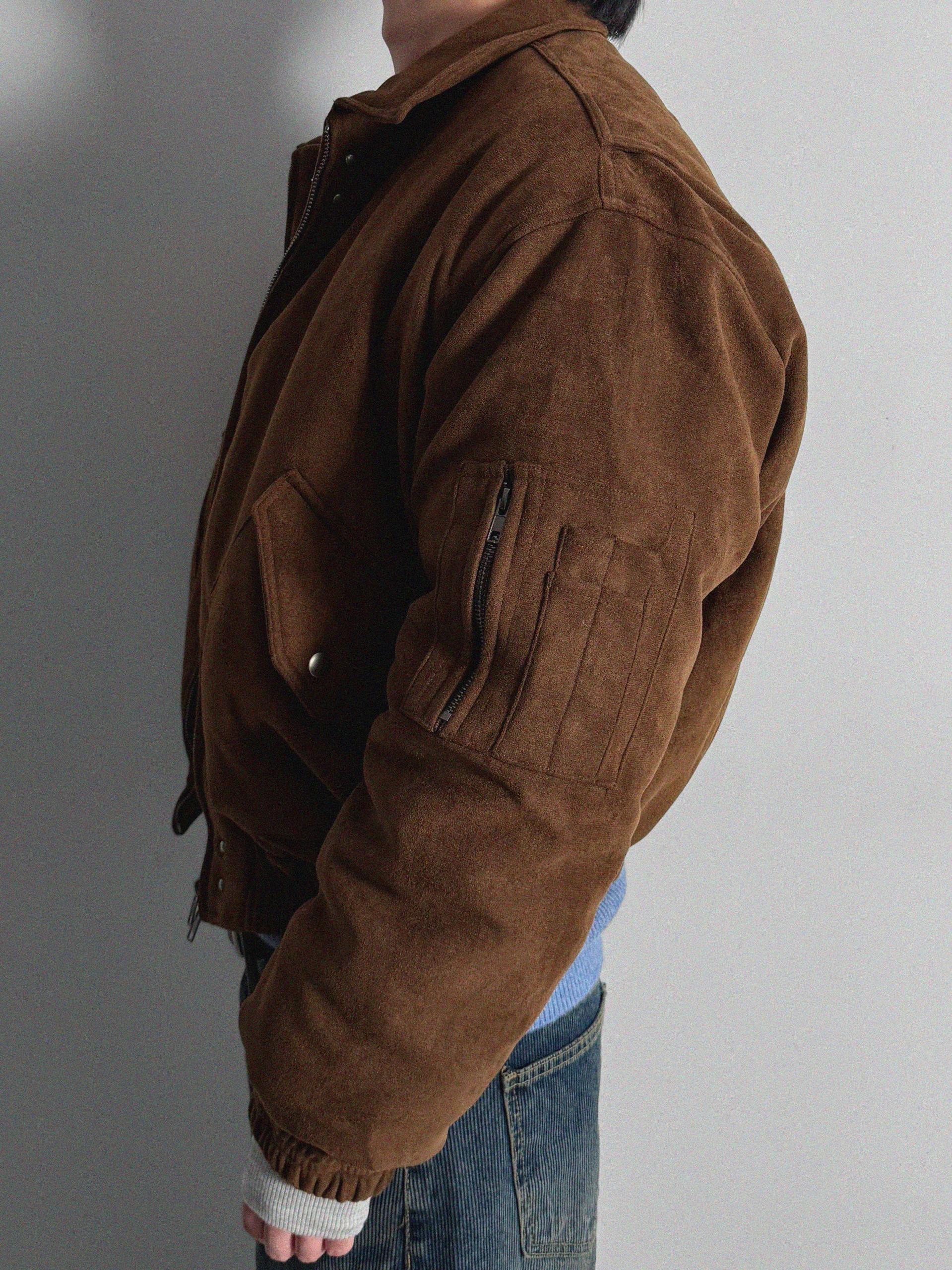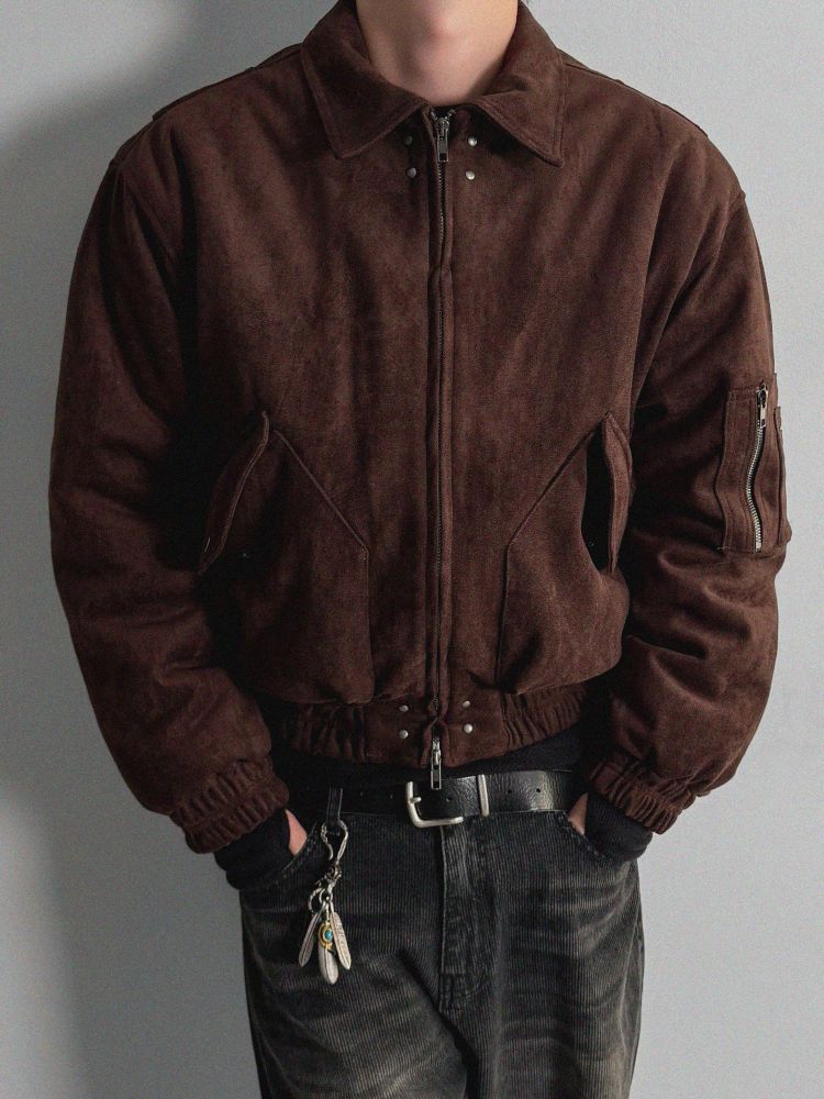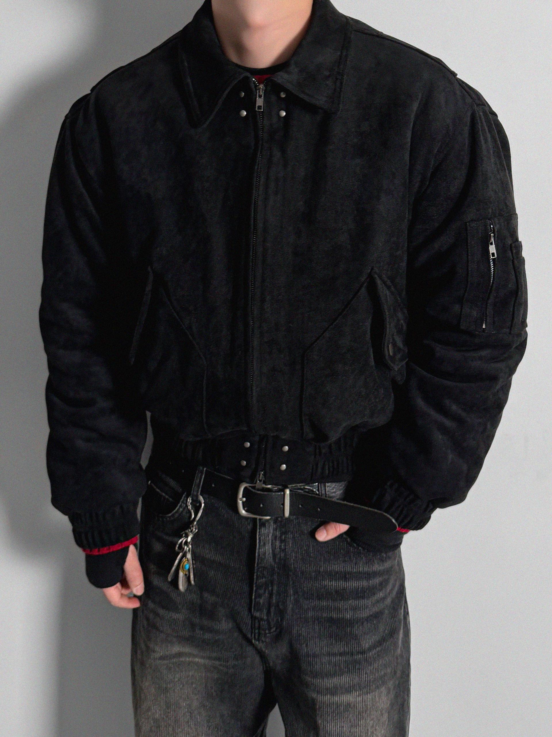 리벳 스웨이드 크롭 플라이트 자켓