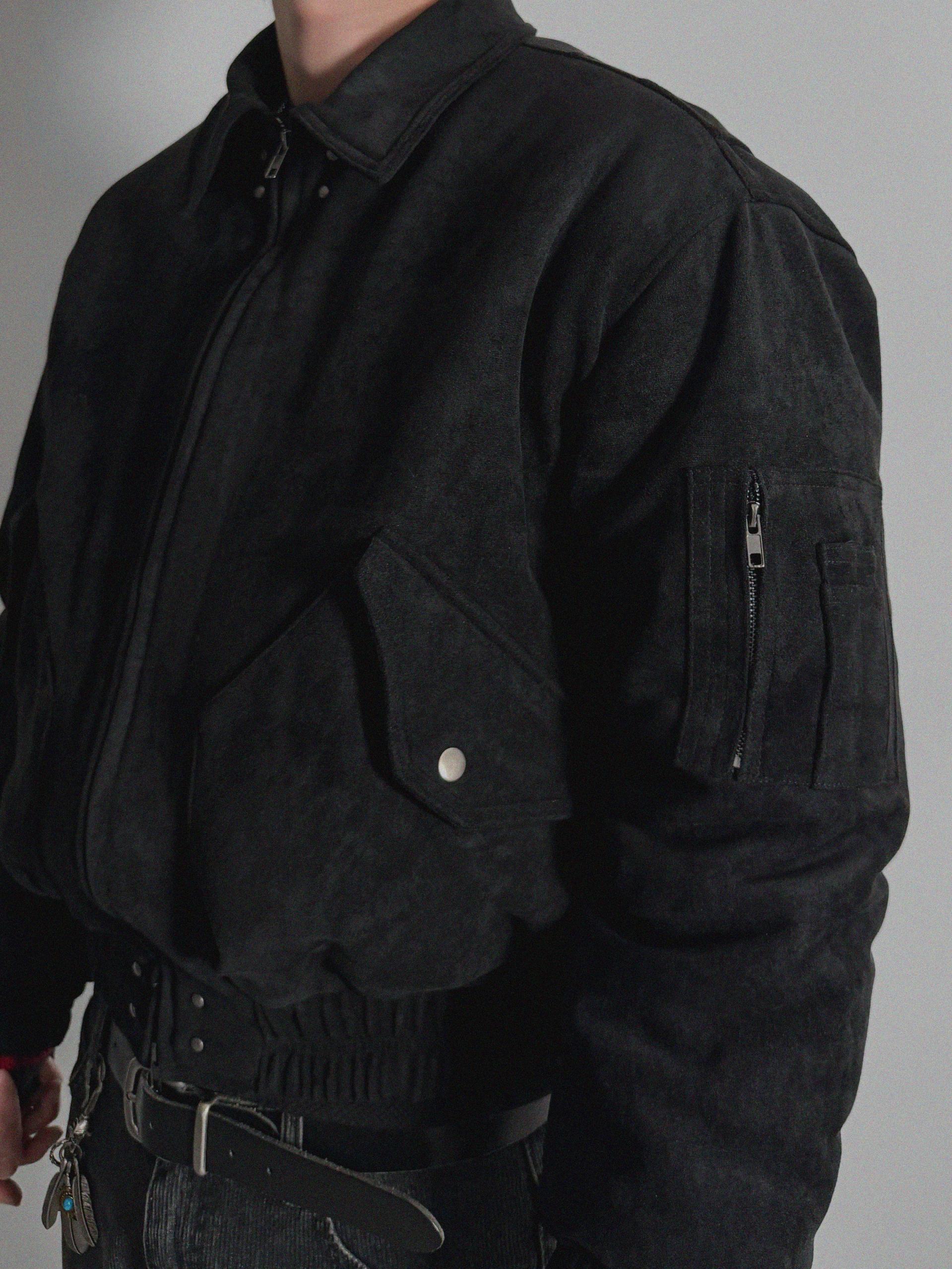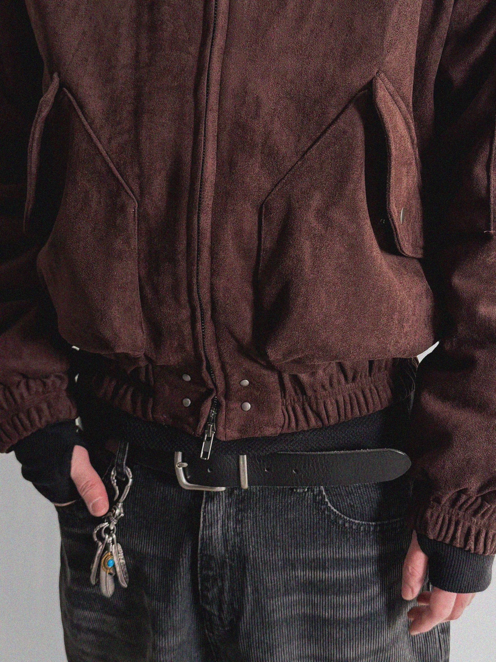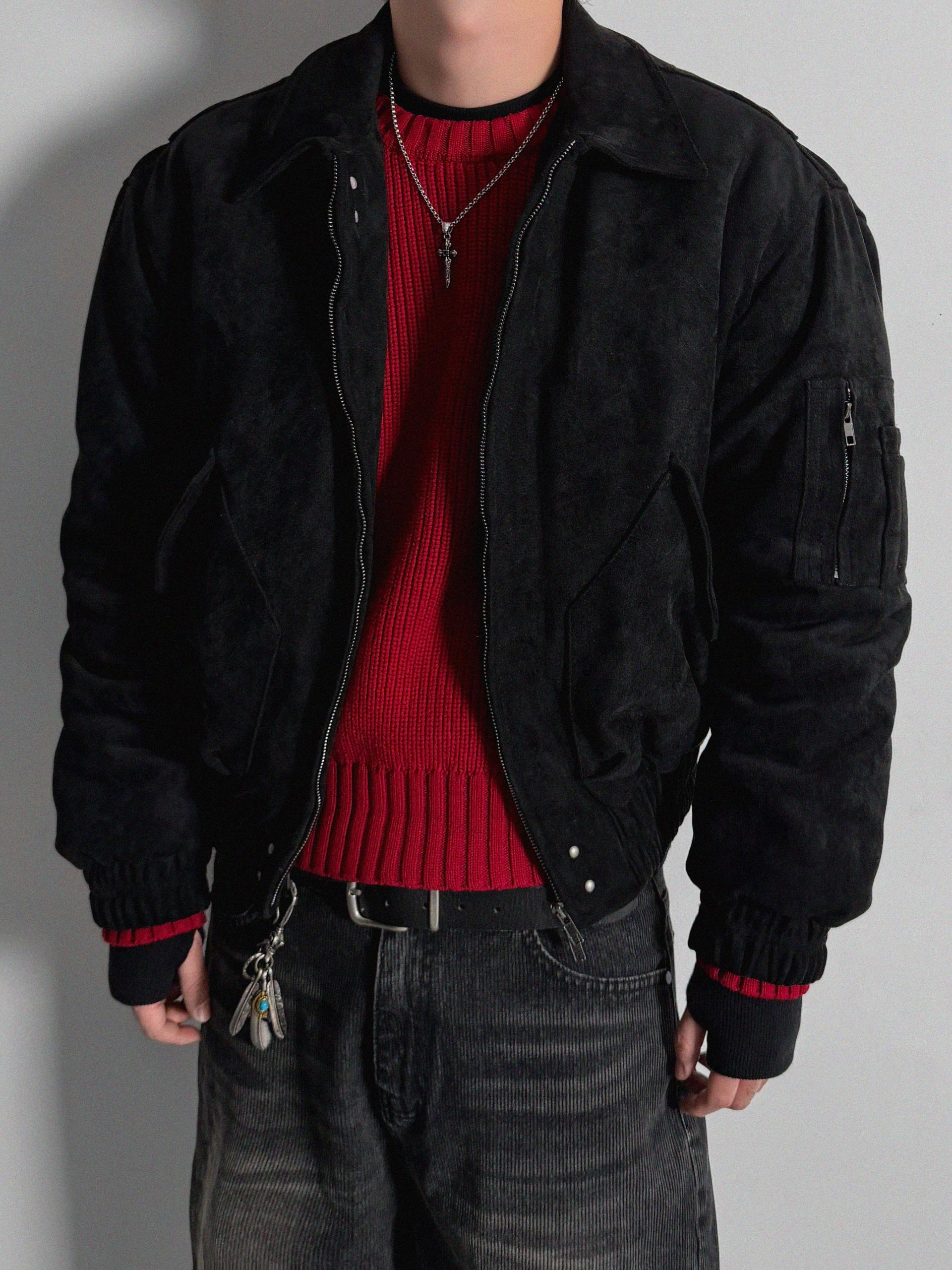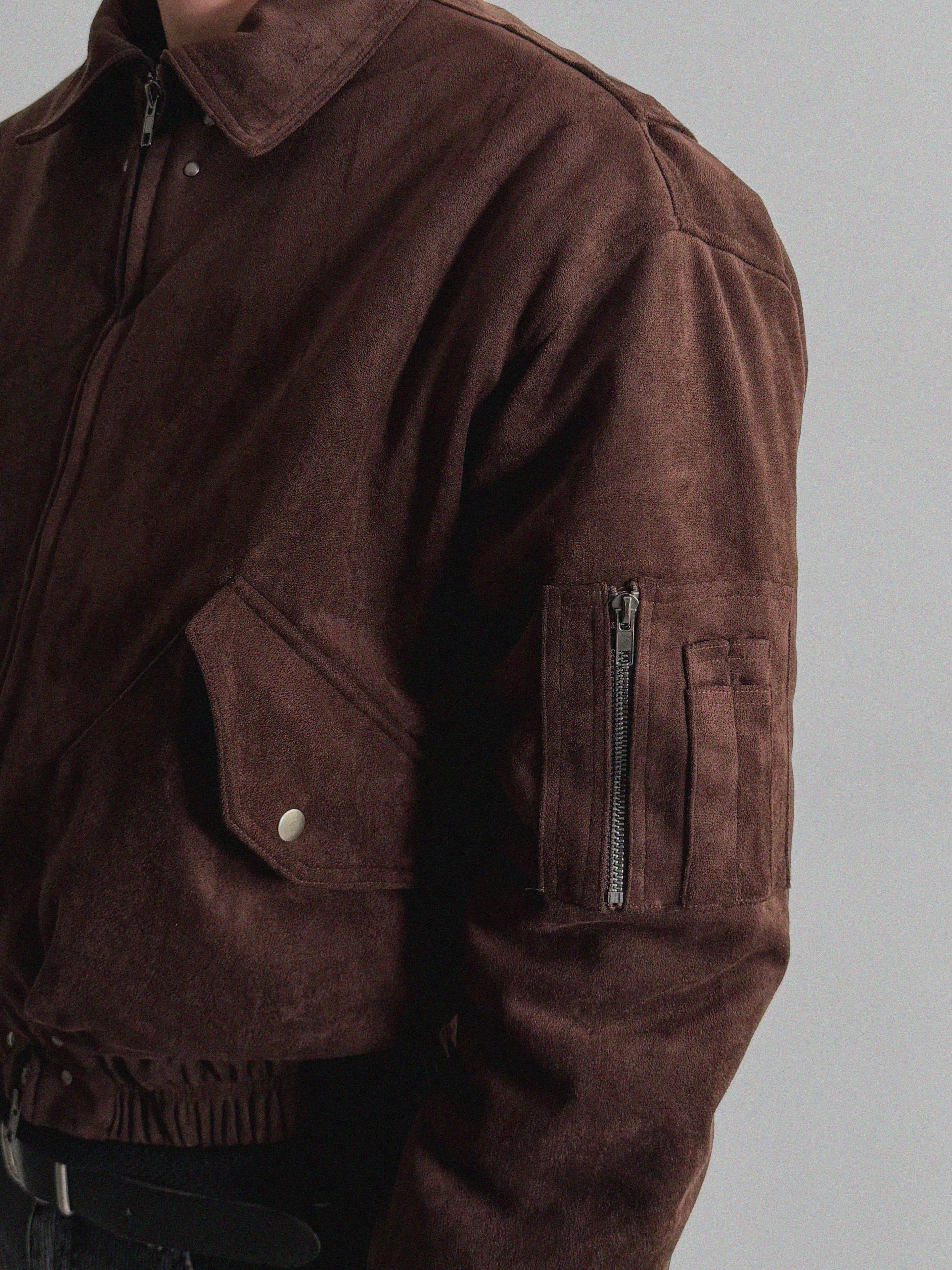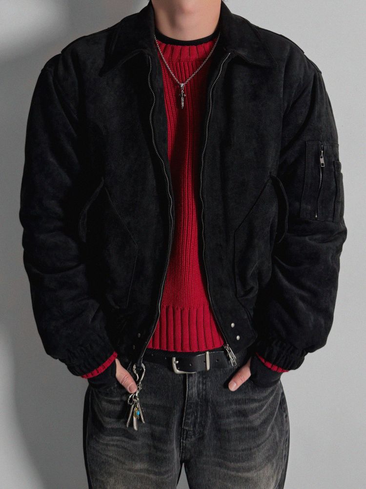 리벳 스웨이드 크롭 플라이트 자켓