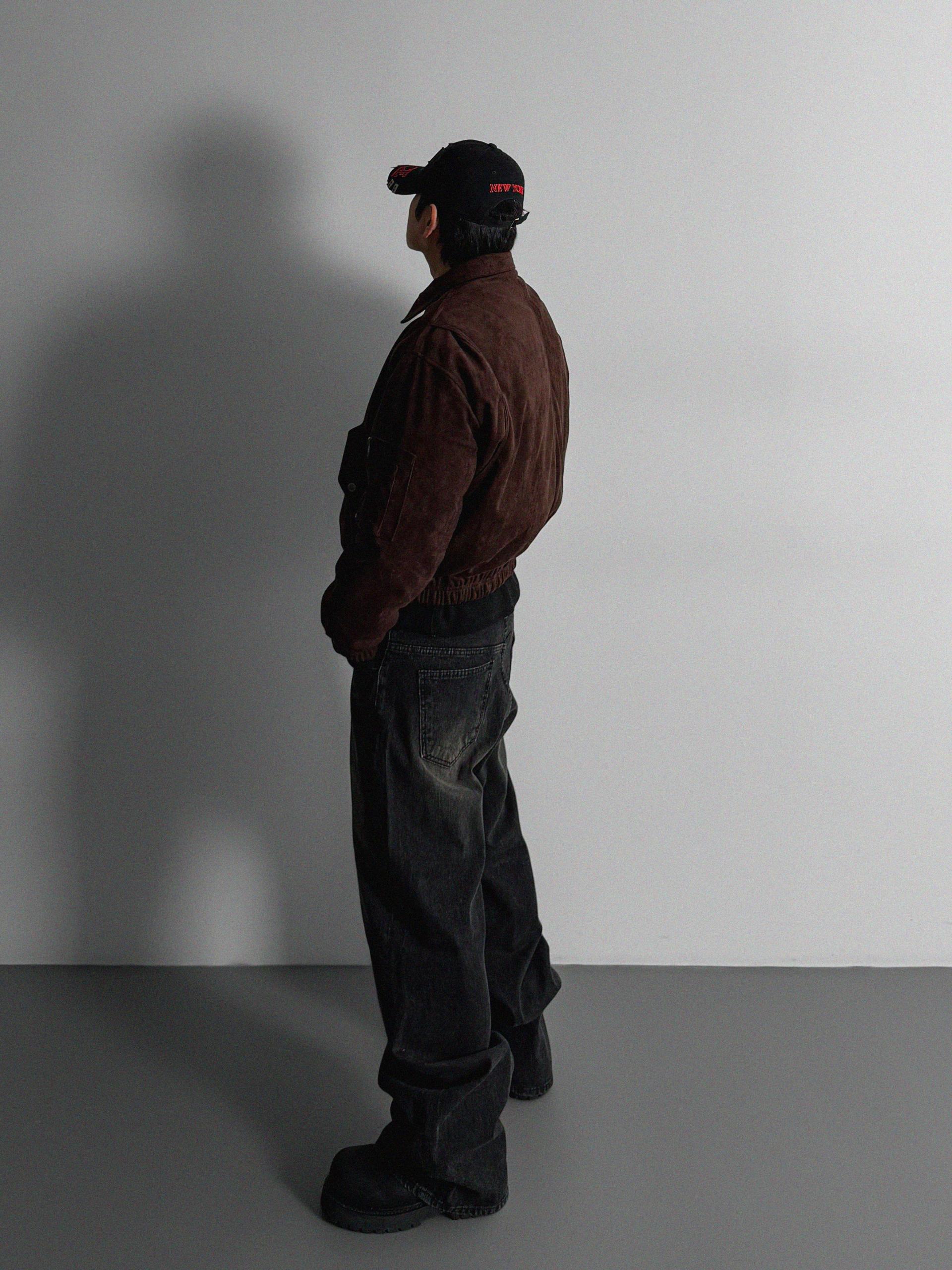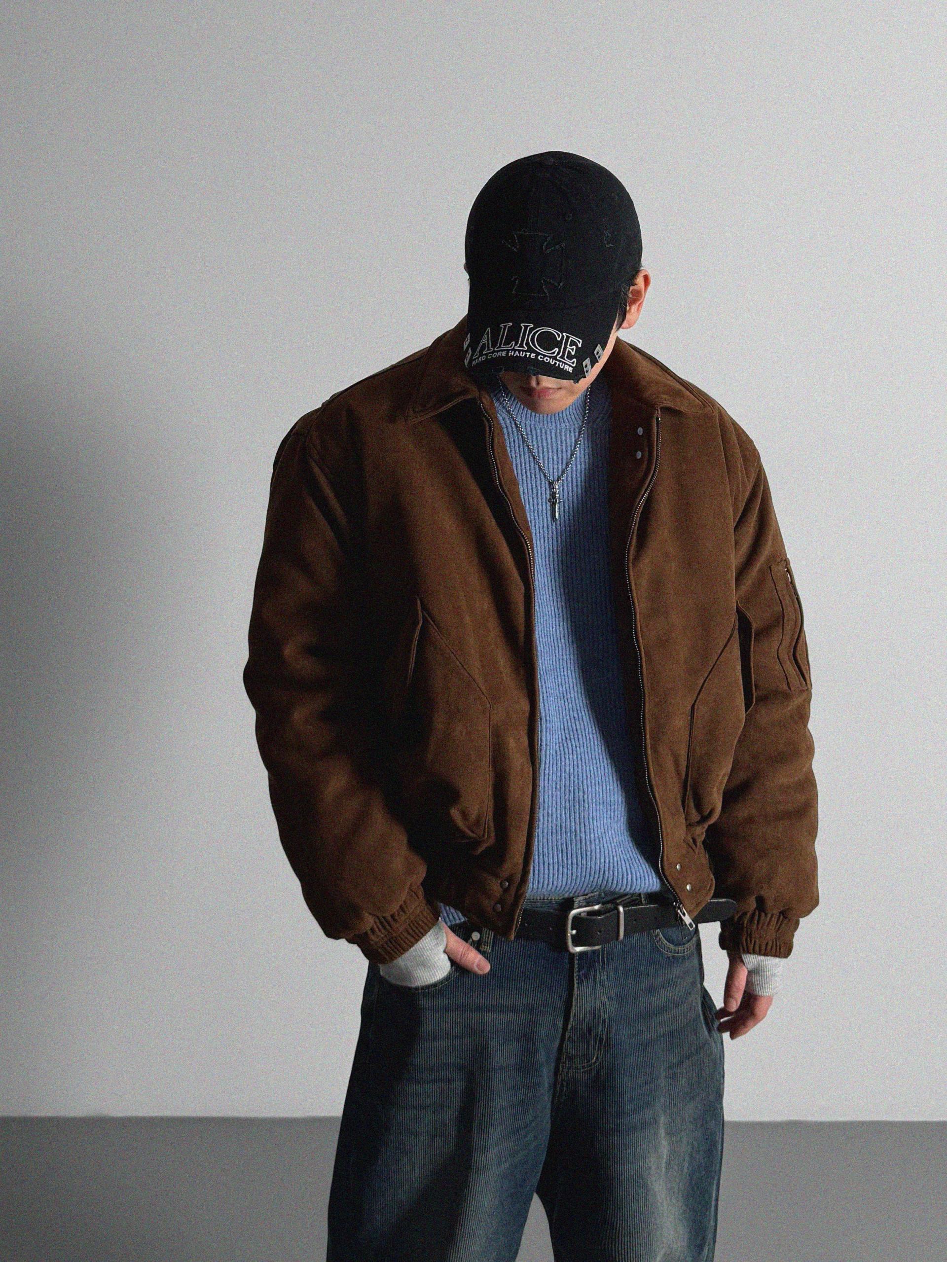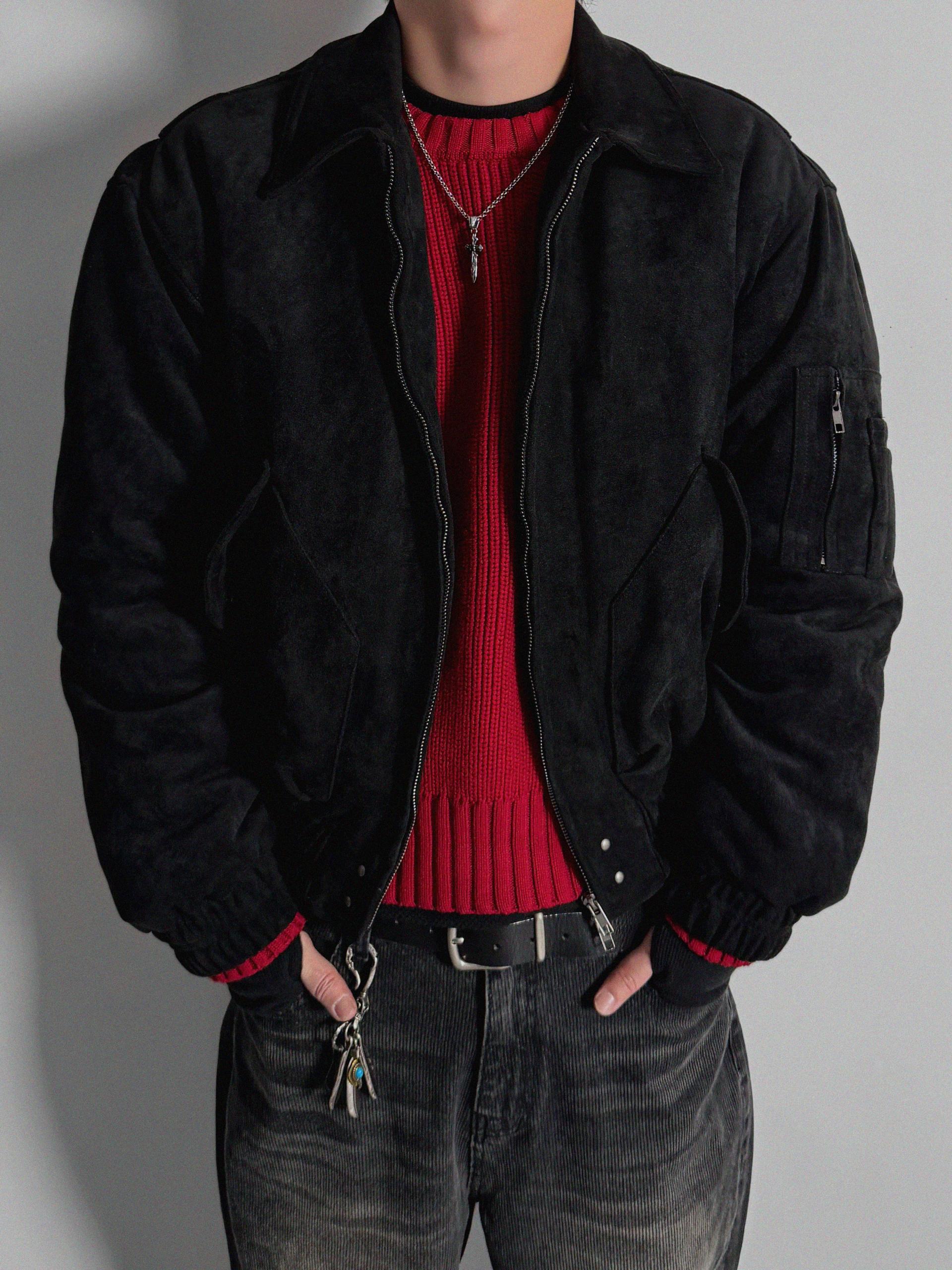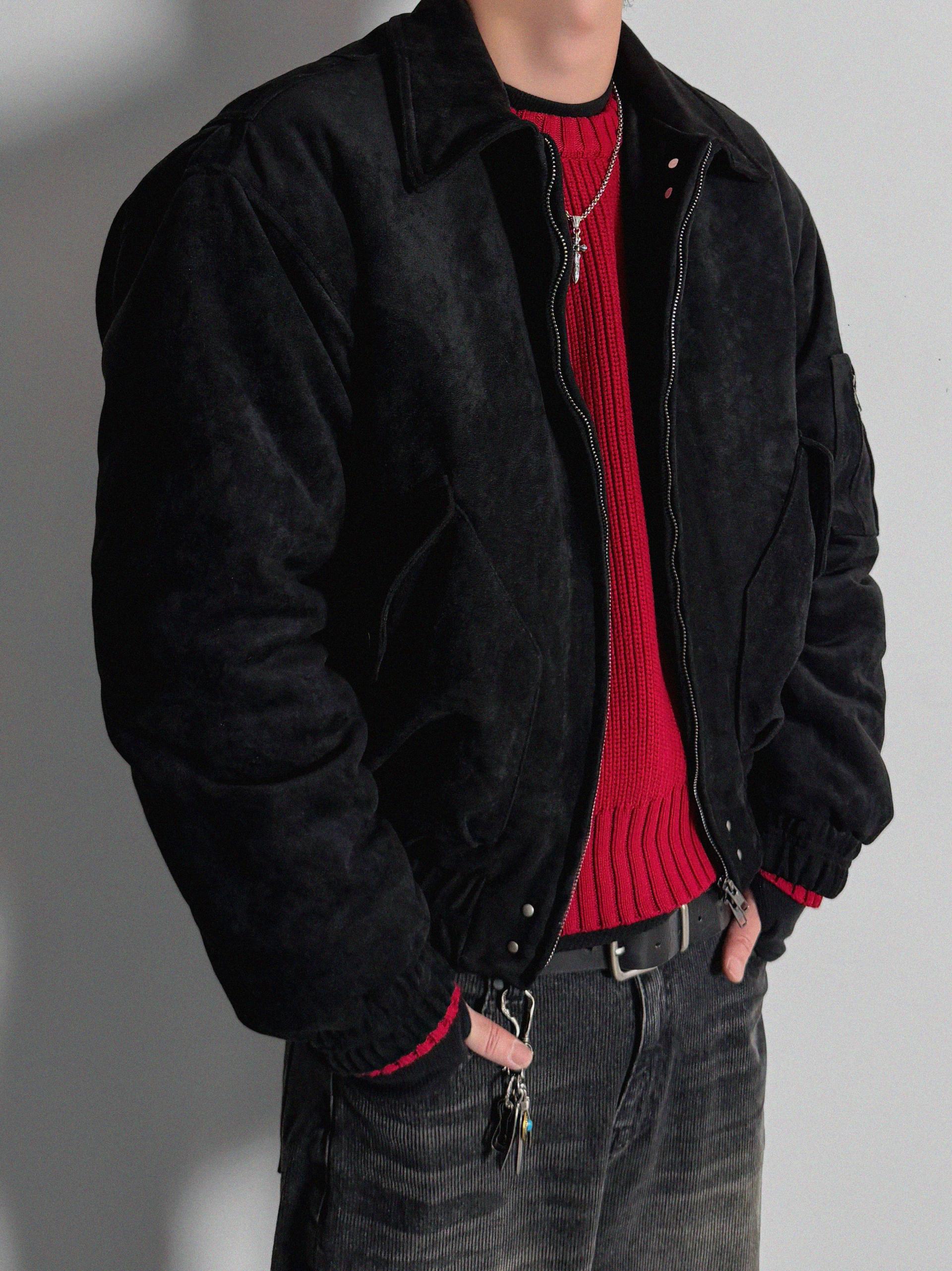 리벳 스웨이드 크롭 플라이트 자켓