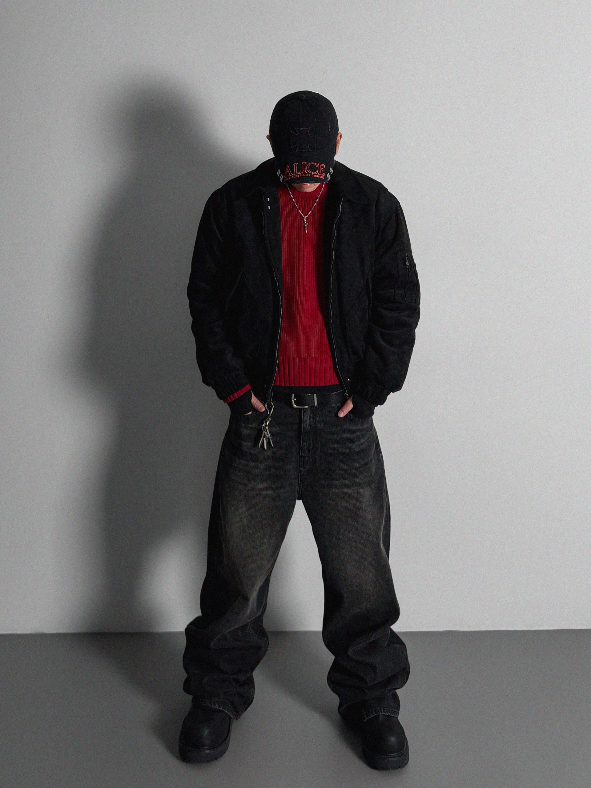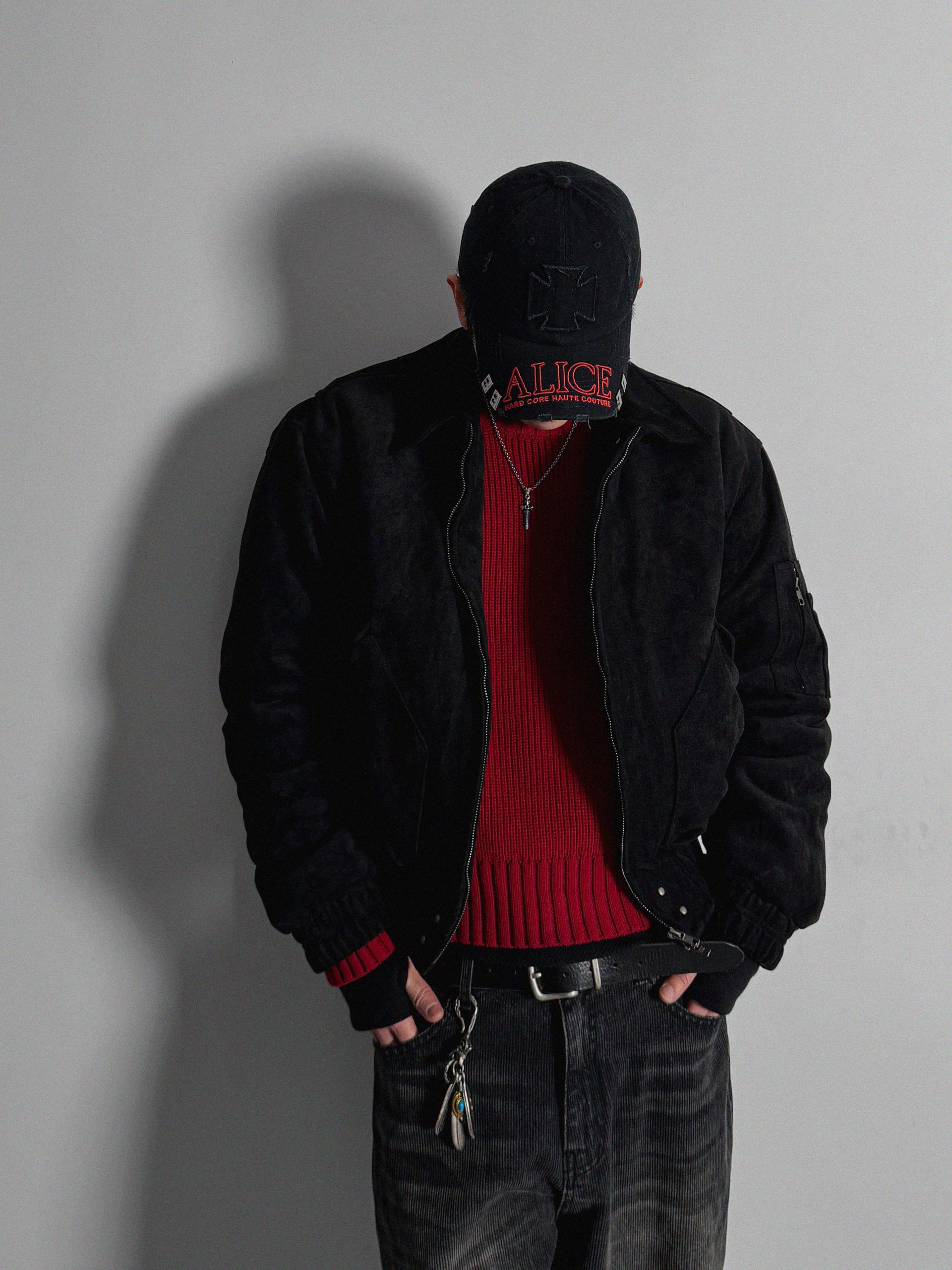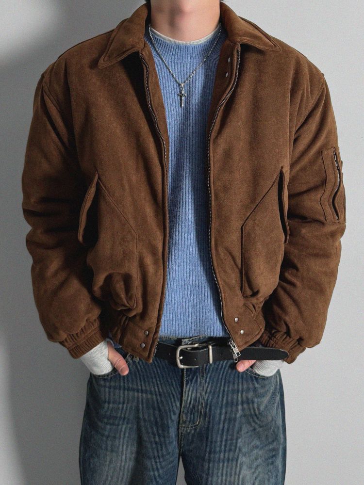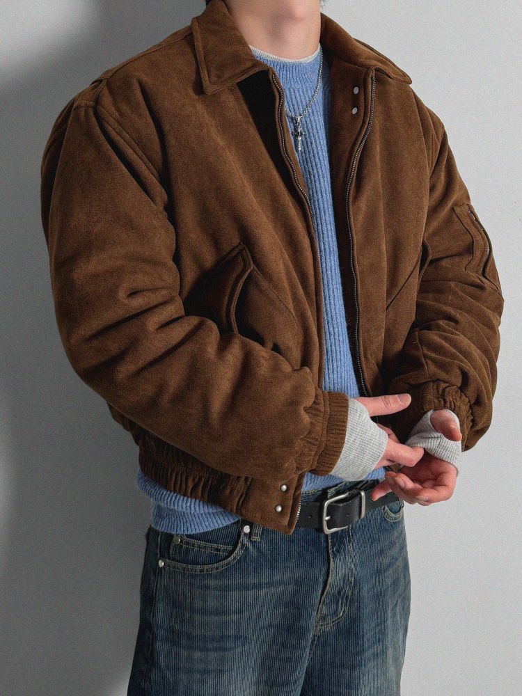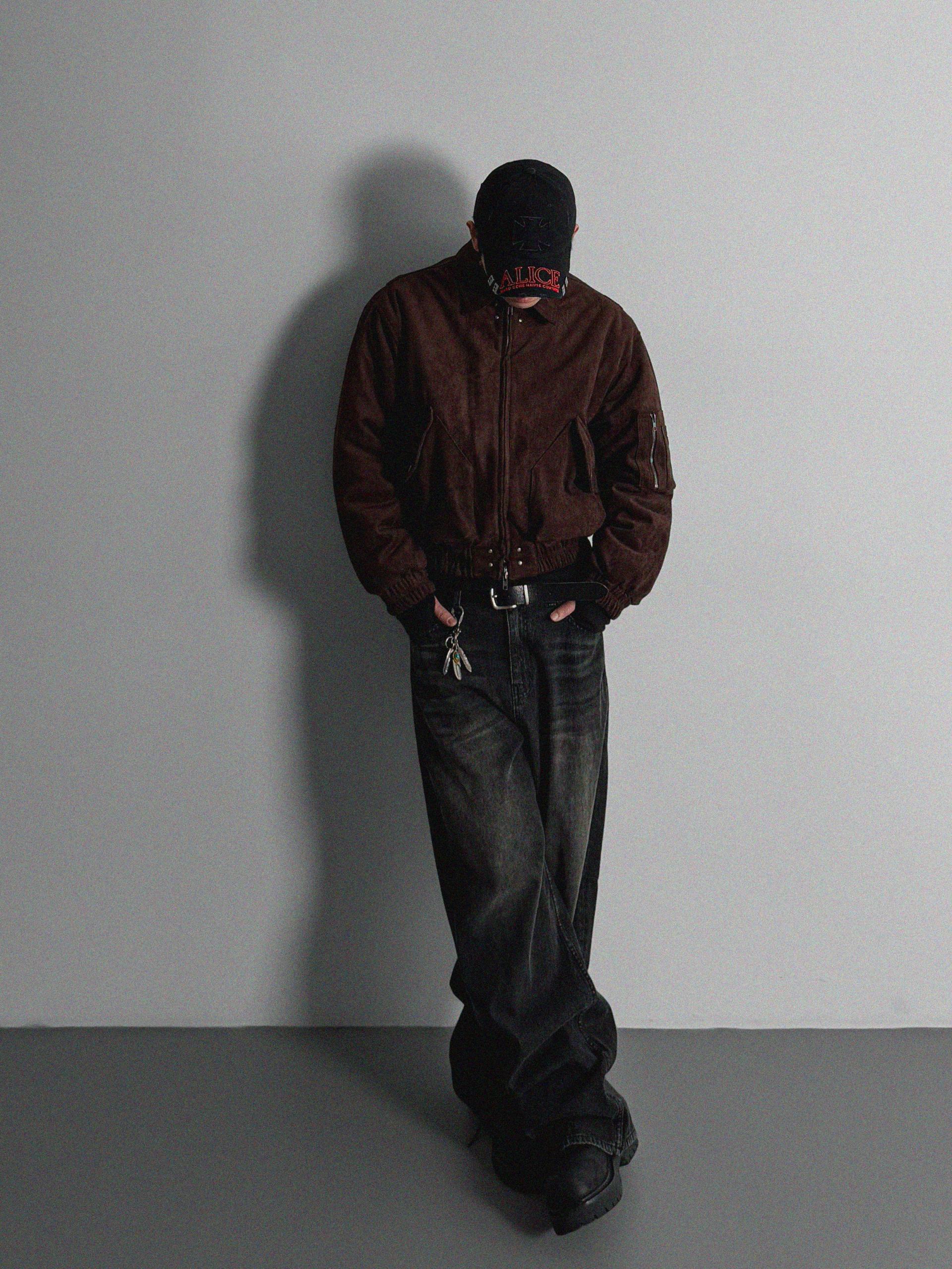 리벳 스웨이드 크롭 플라이트 자켓