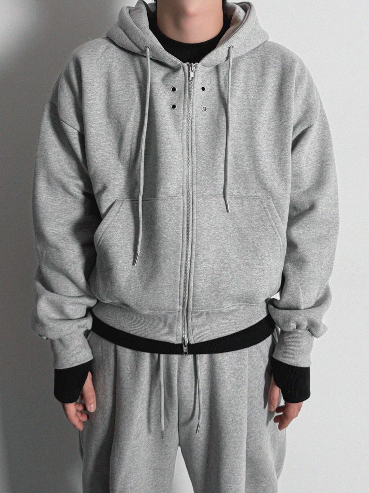 [SET] 테리 기모 크롭 후드 집업