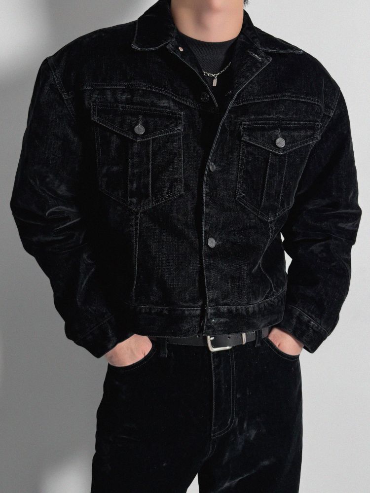 벨벳 데님 웨스턴 패디드 자켓