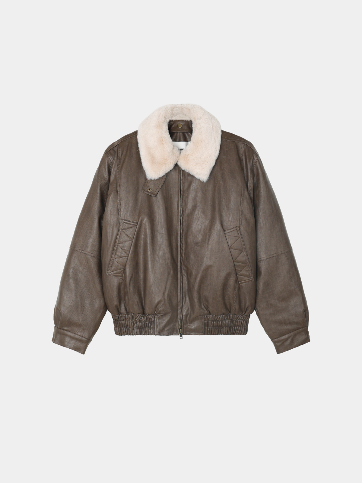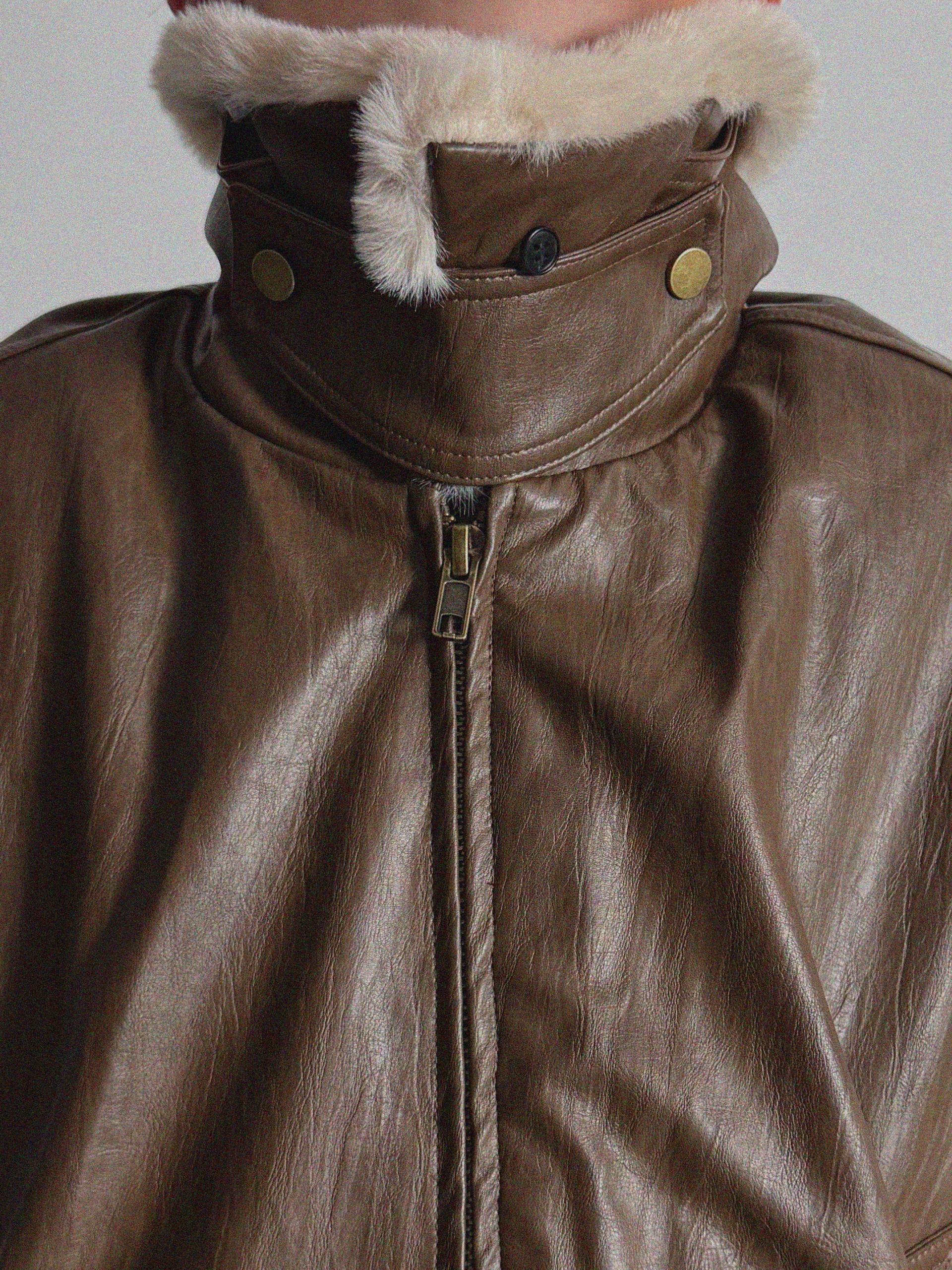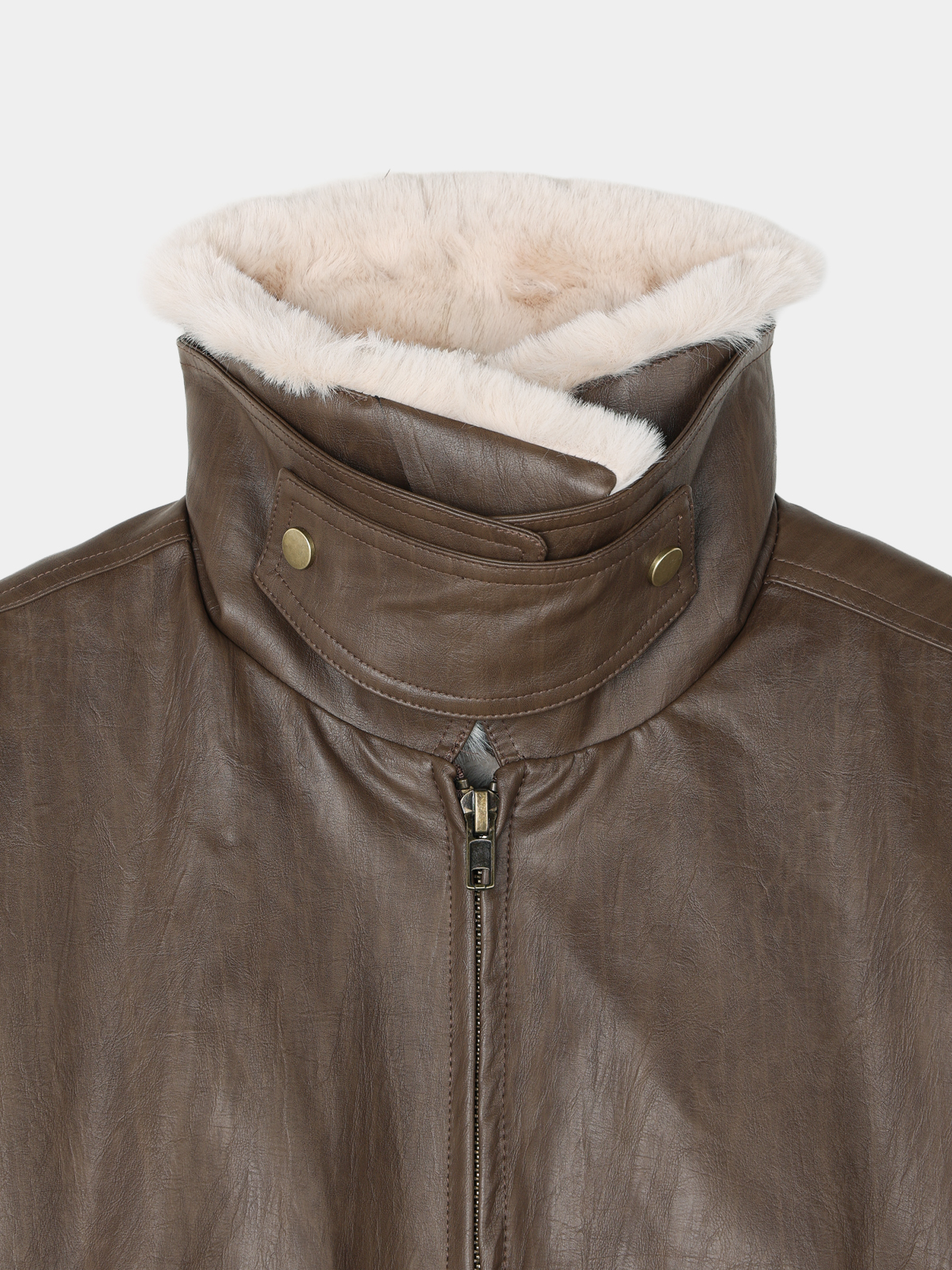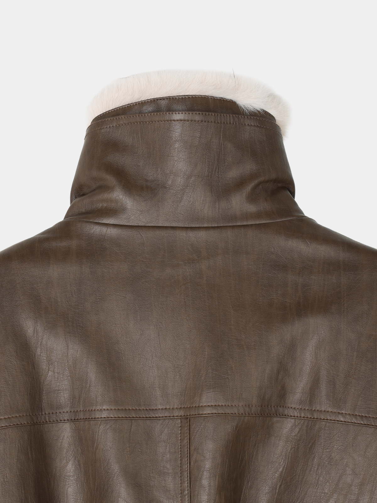 - 뻣뻣하지 않고 부드러운 비건 레더로 착용감이 매우 뛰어난 레더 무스탕